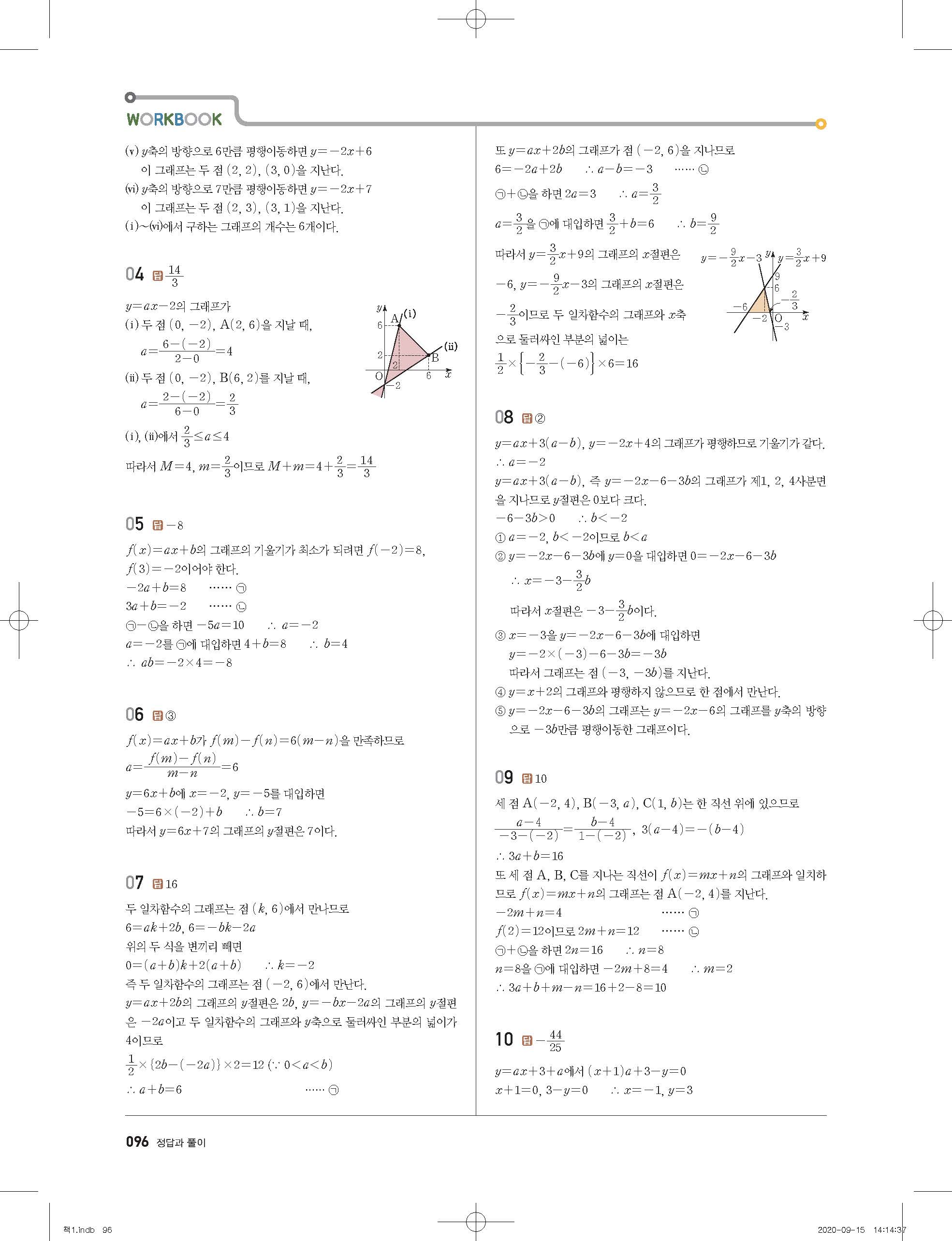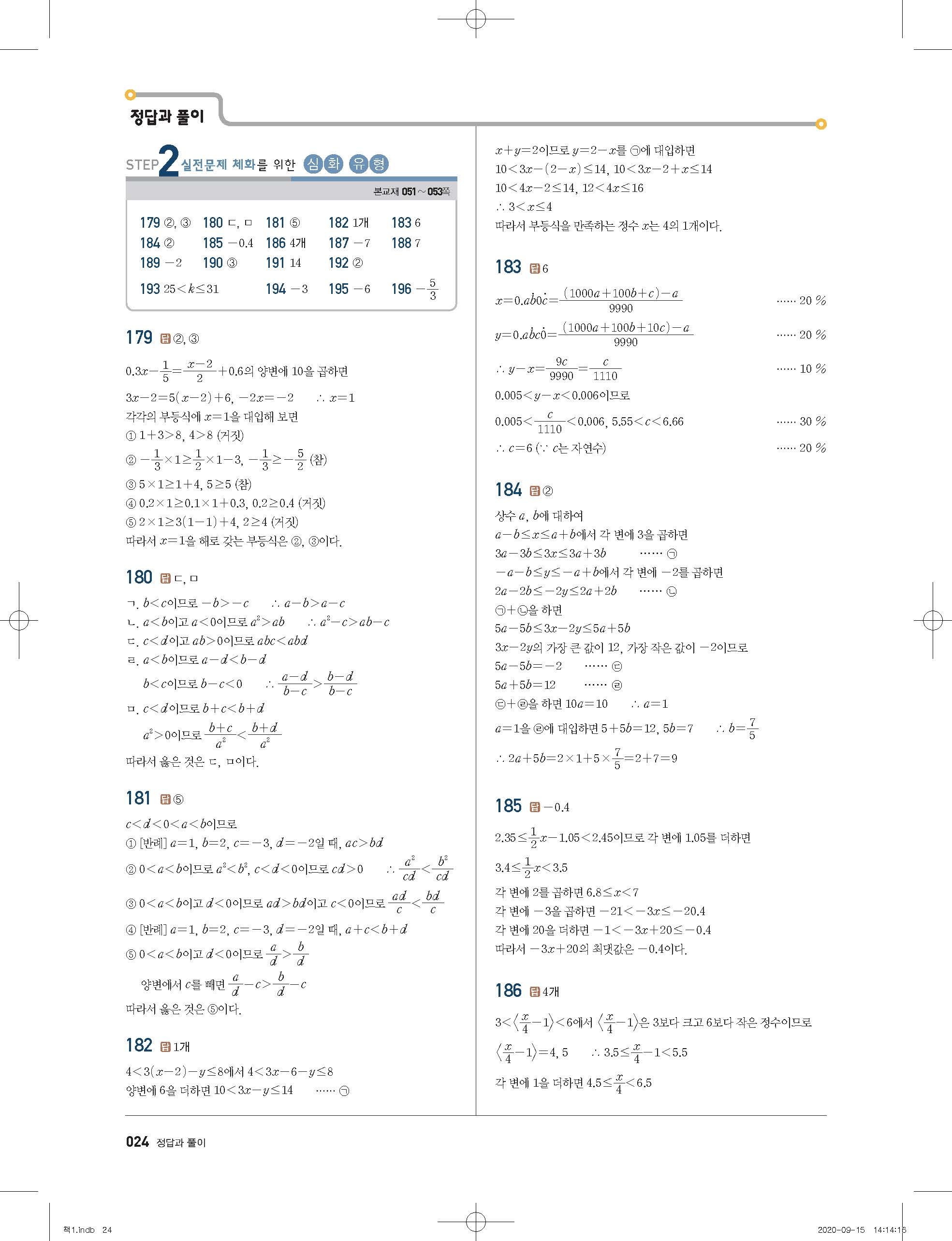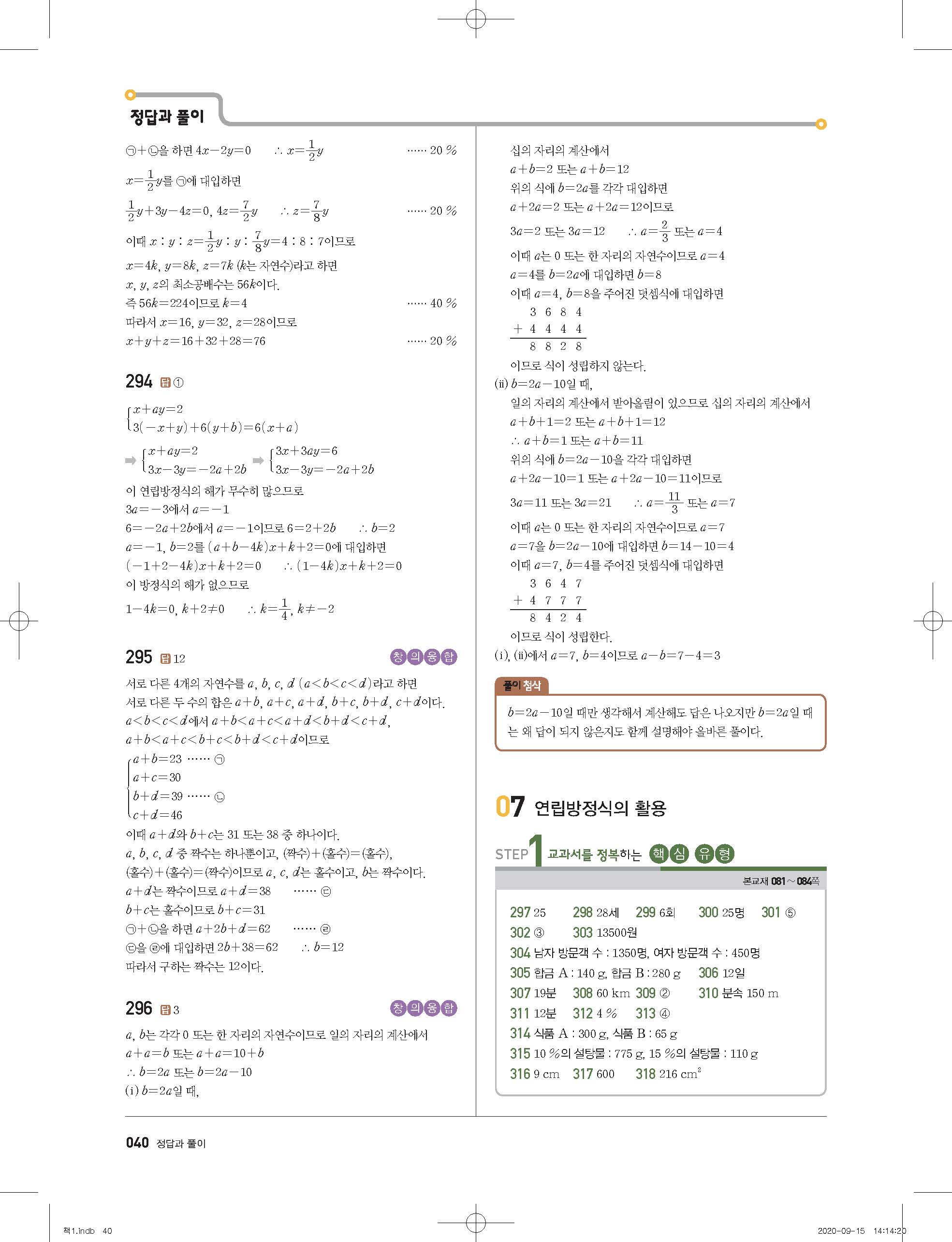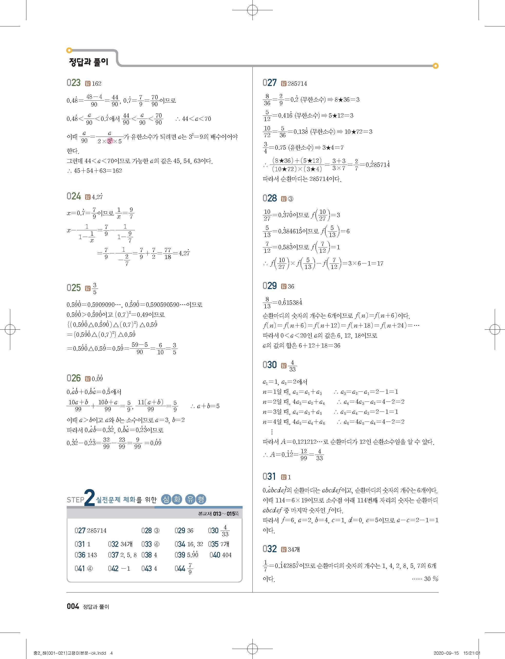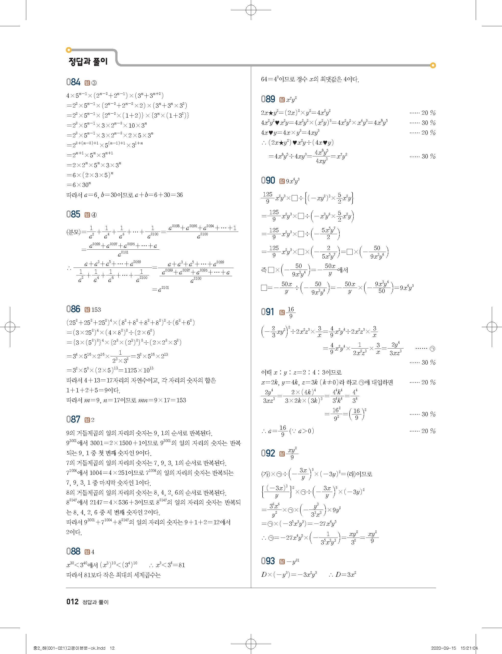 고쟁이 유형 심화 중등수학2상 2-1 사진답지 빠른답지 모바일최적화