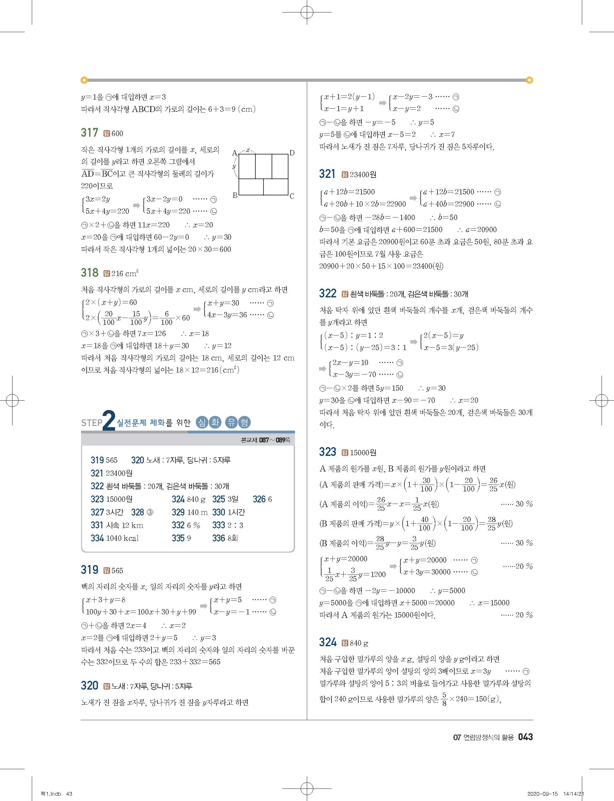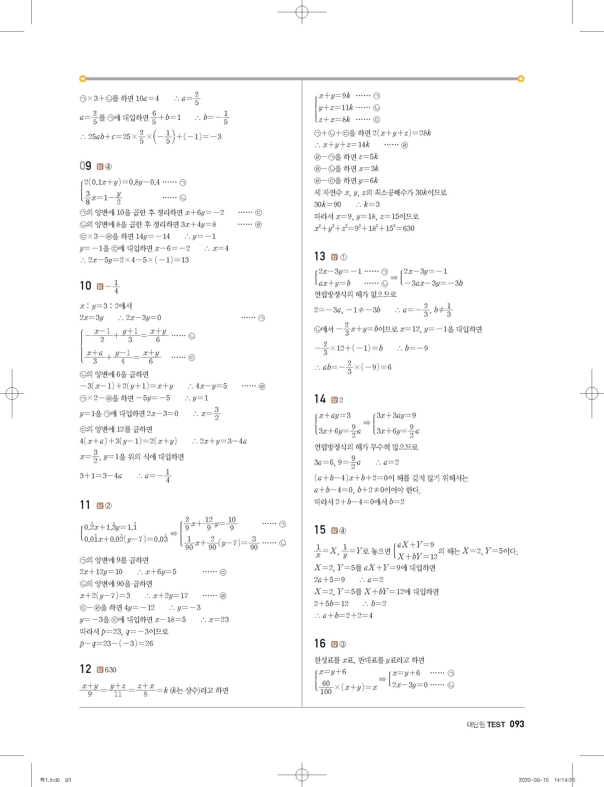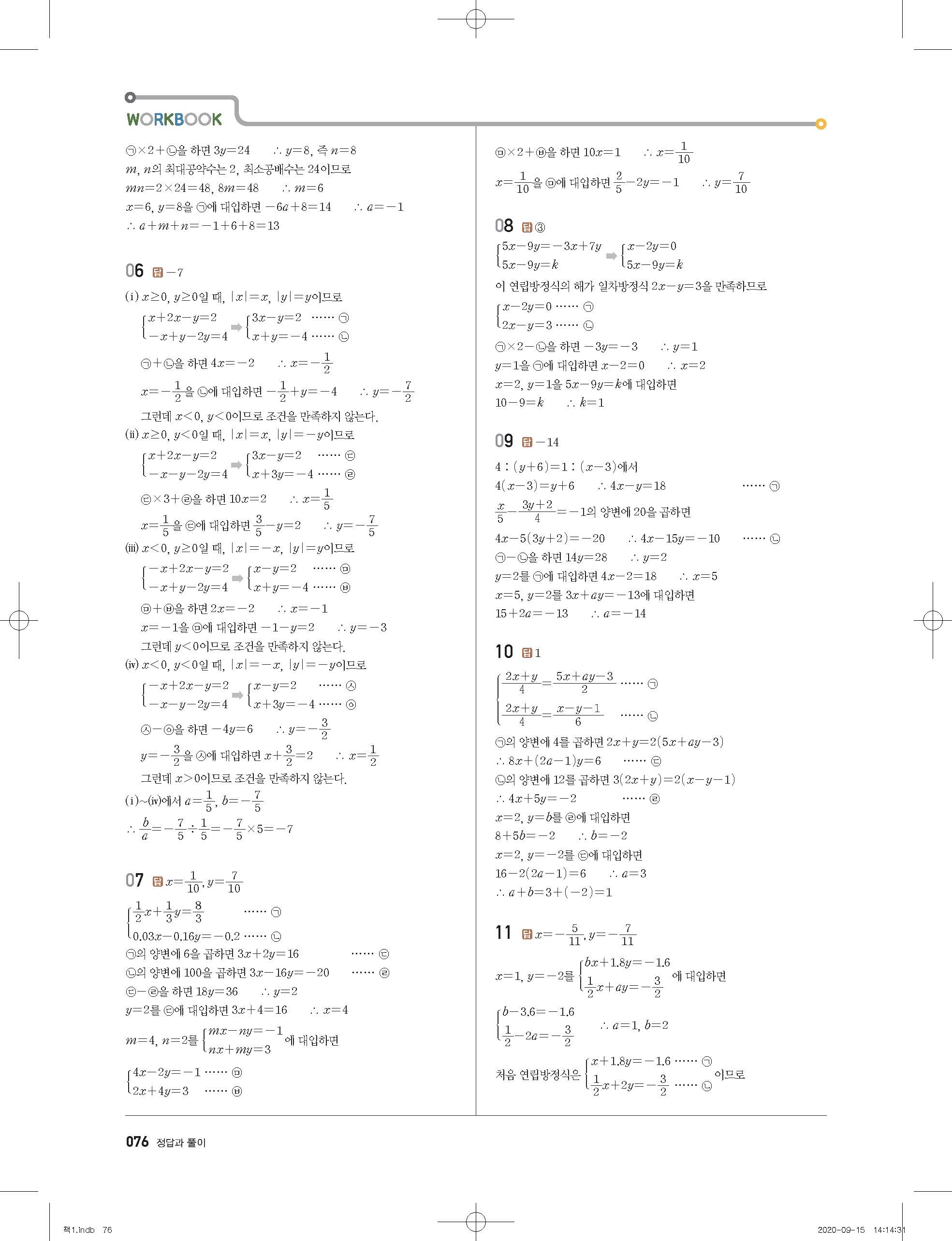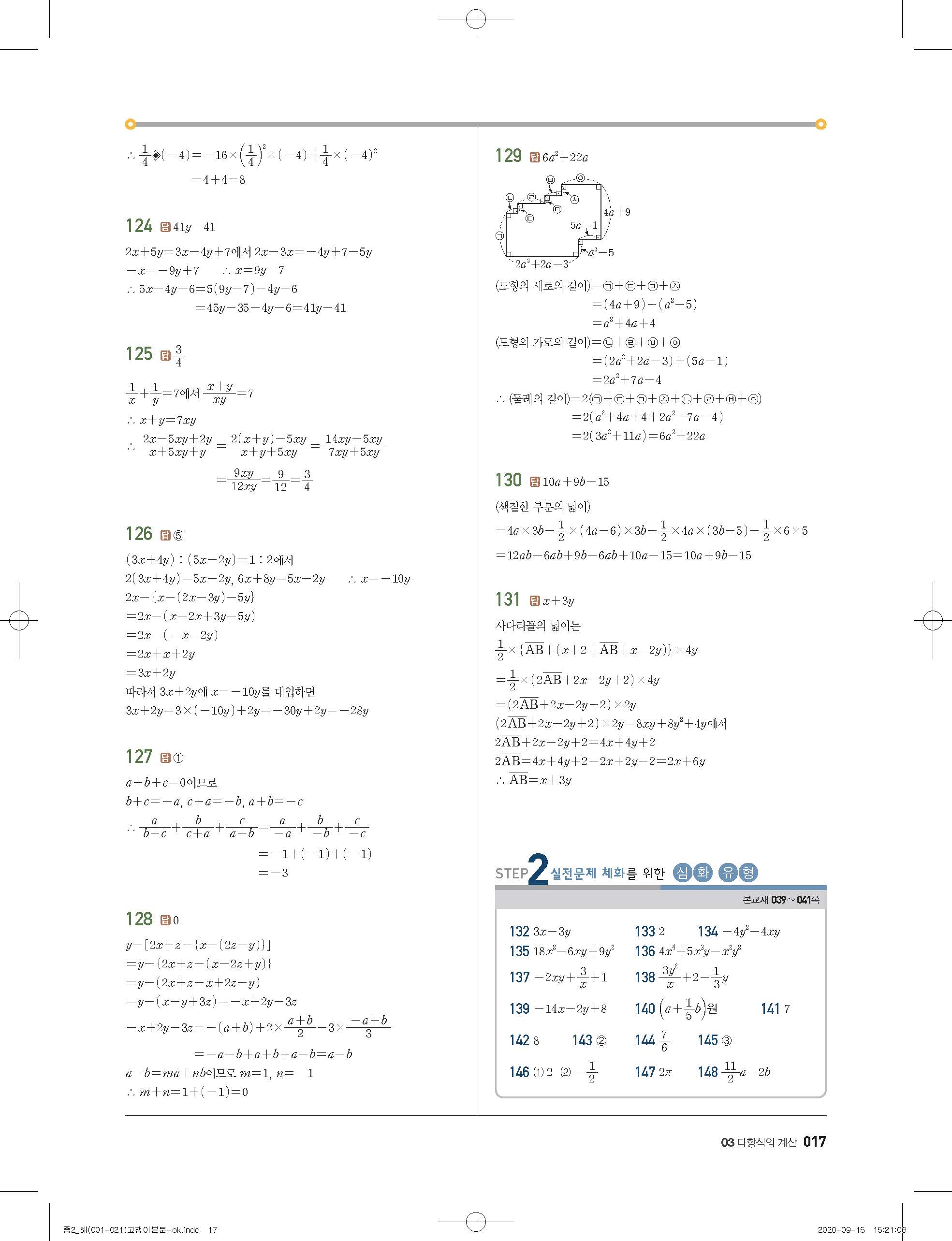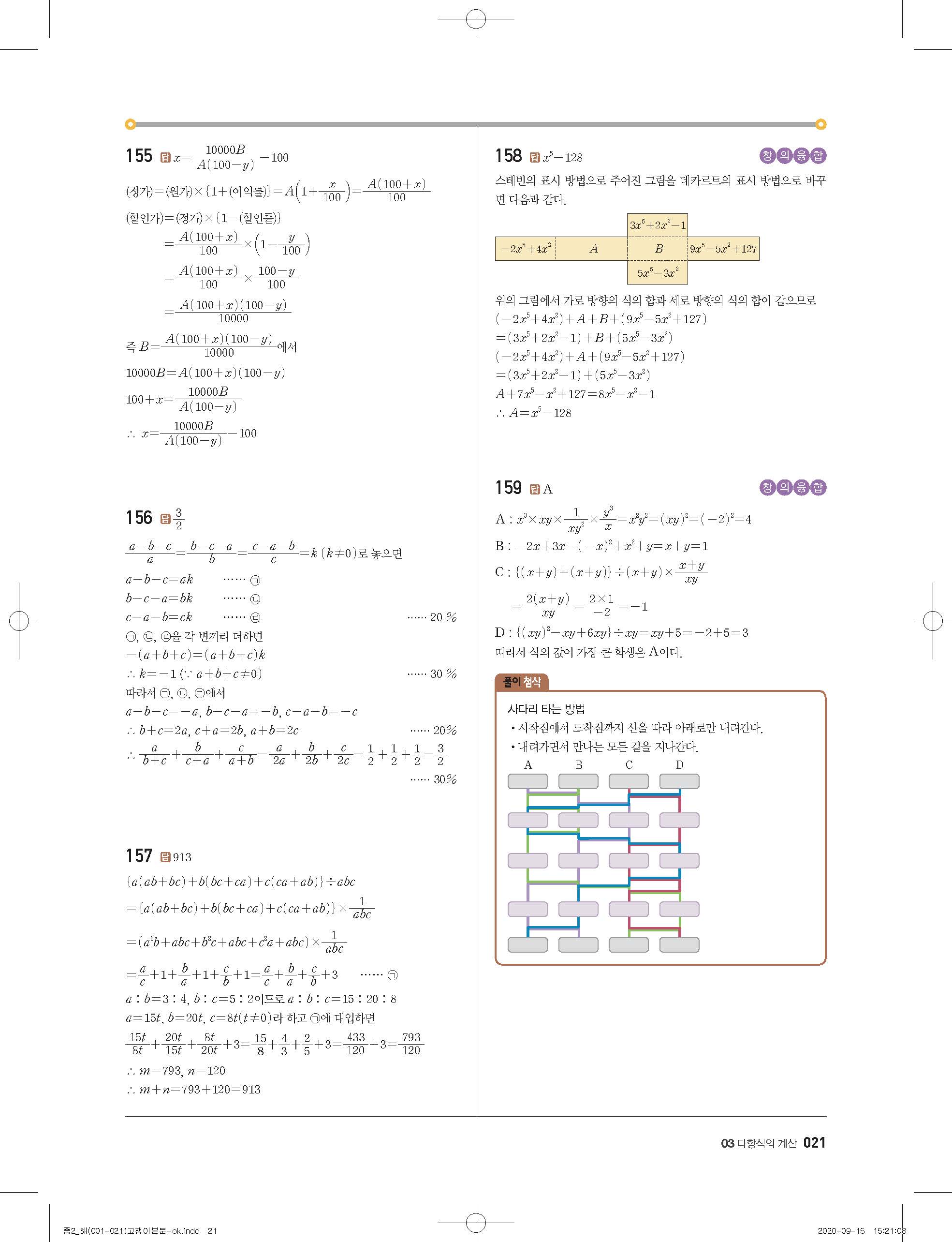 고쟁이 유형 심화 중등수학2상 2-1 사진답지 빠른답지 모바일최적화