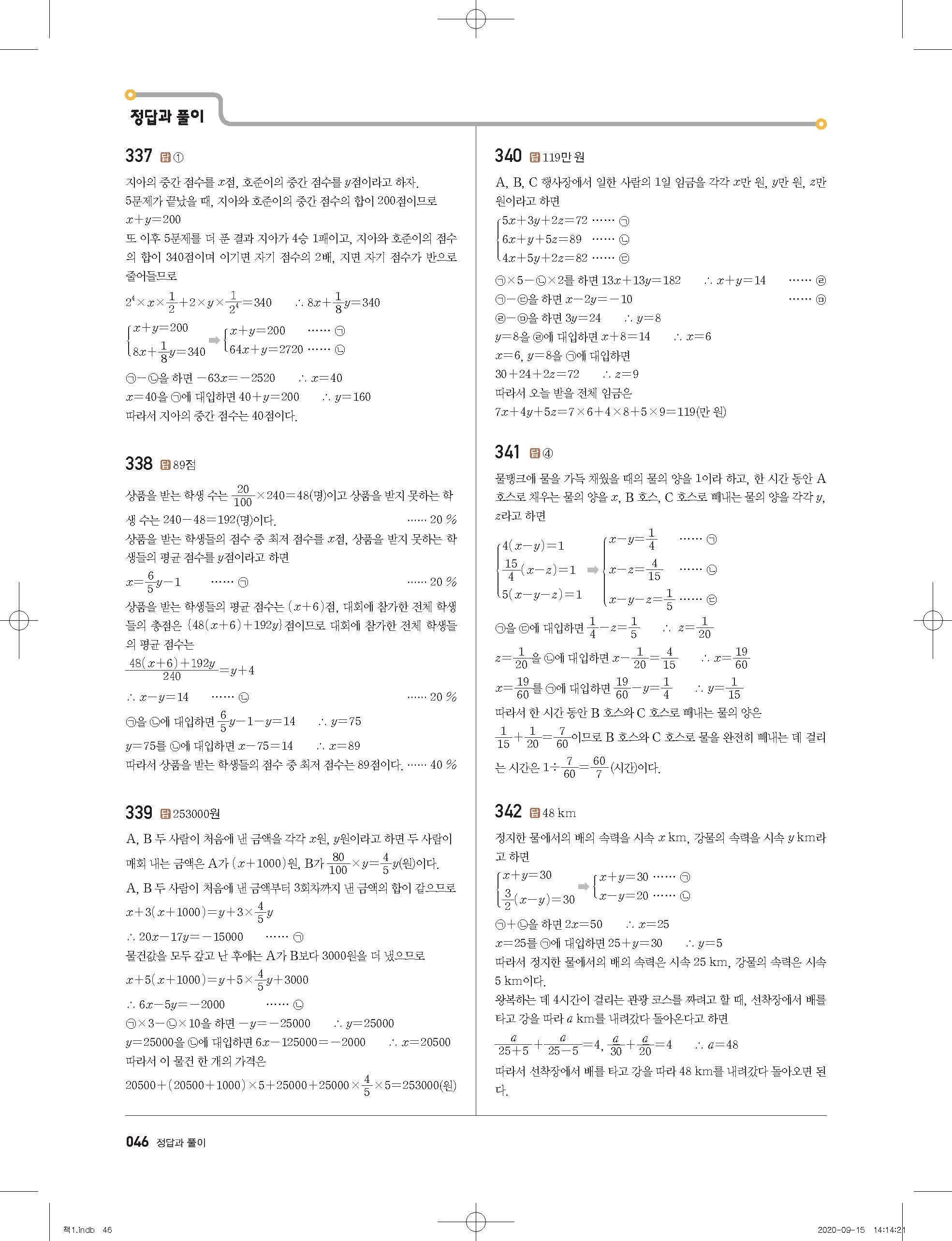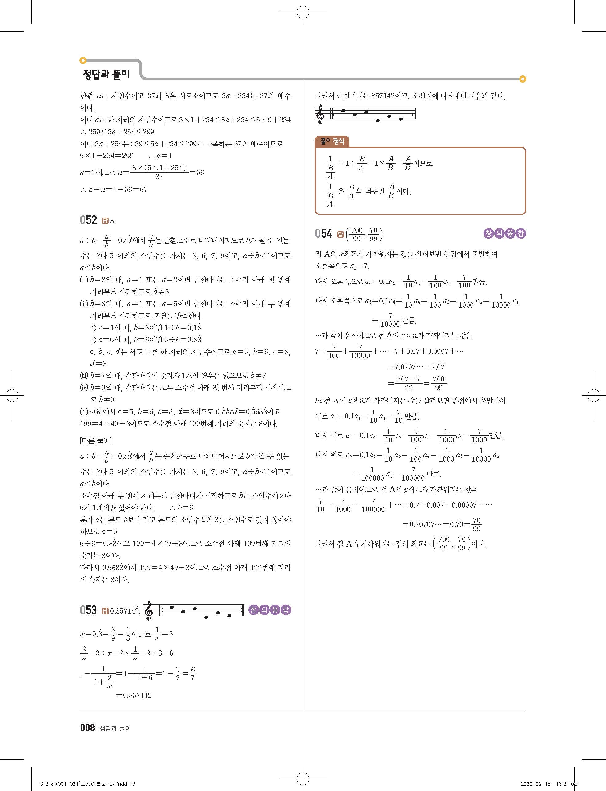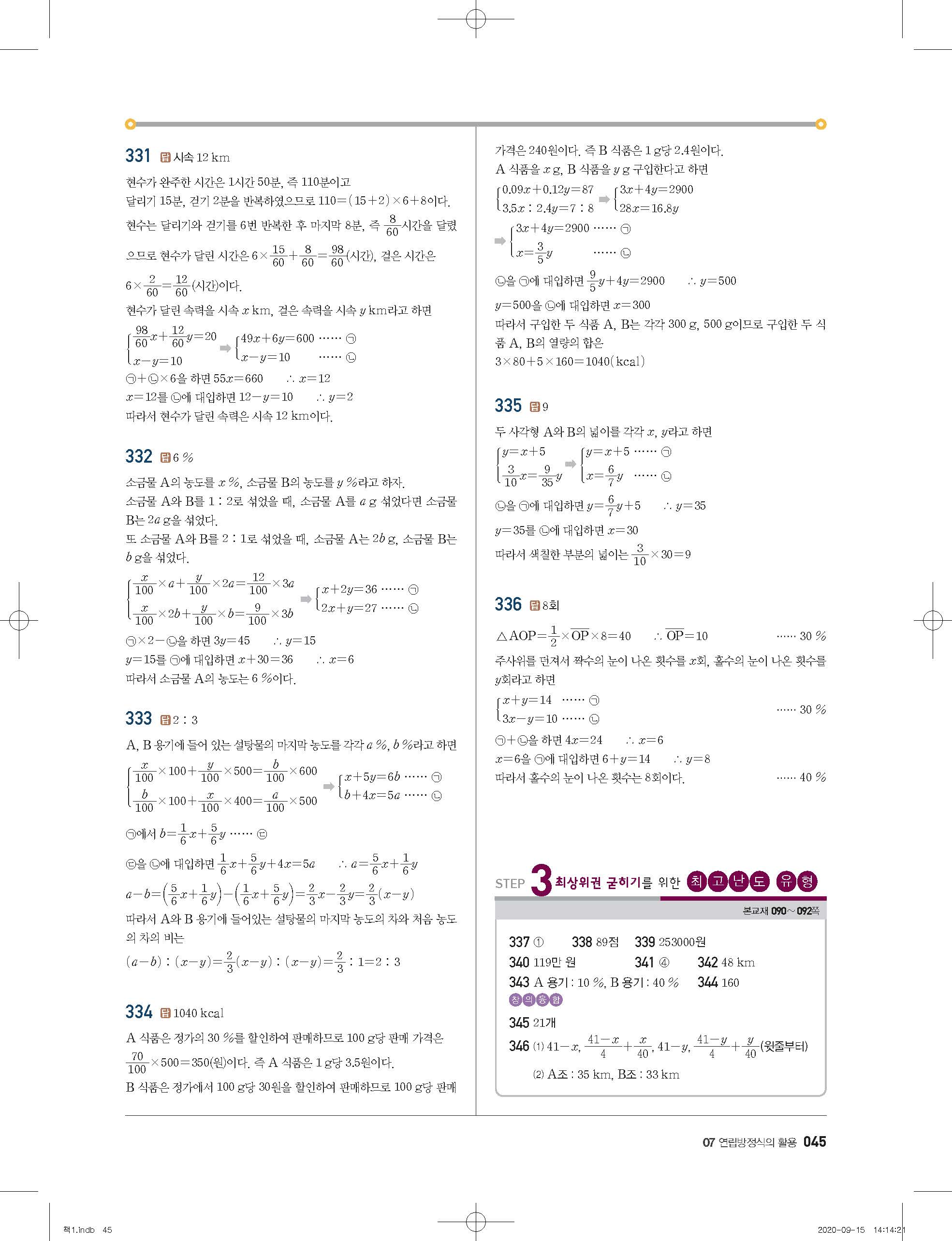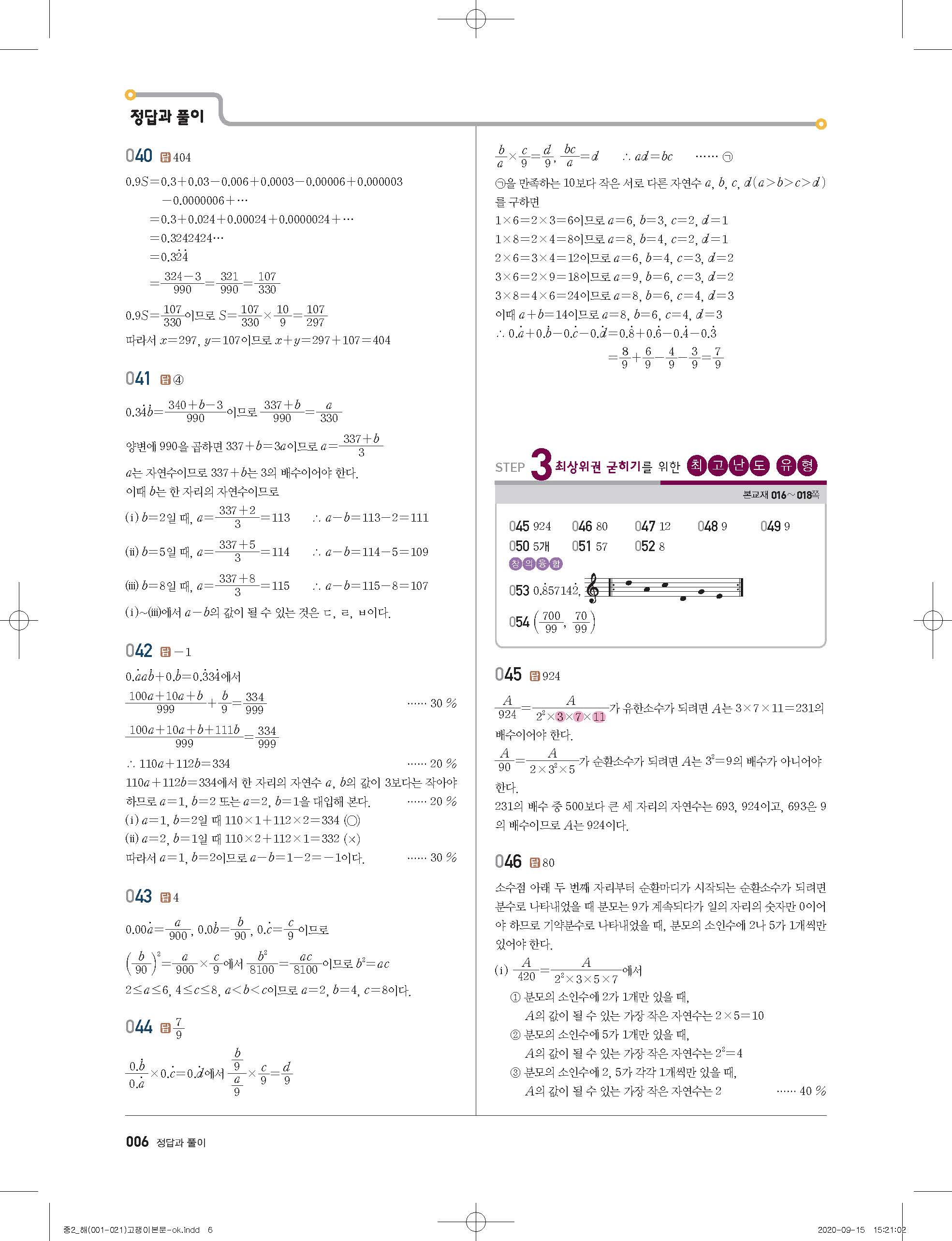 고쟁이 유형 심화 중등수학2상 2-1 사진답지 빠른답지 모바일최적화