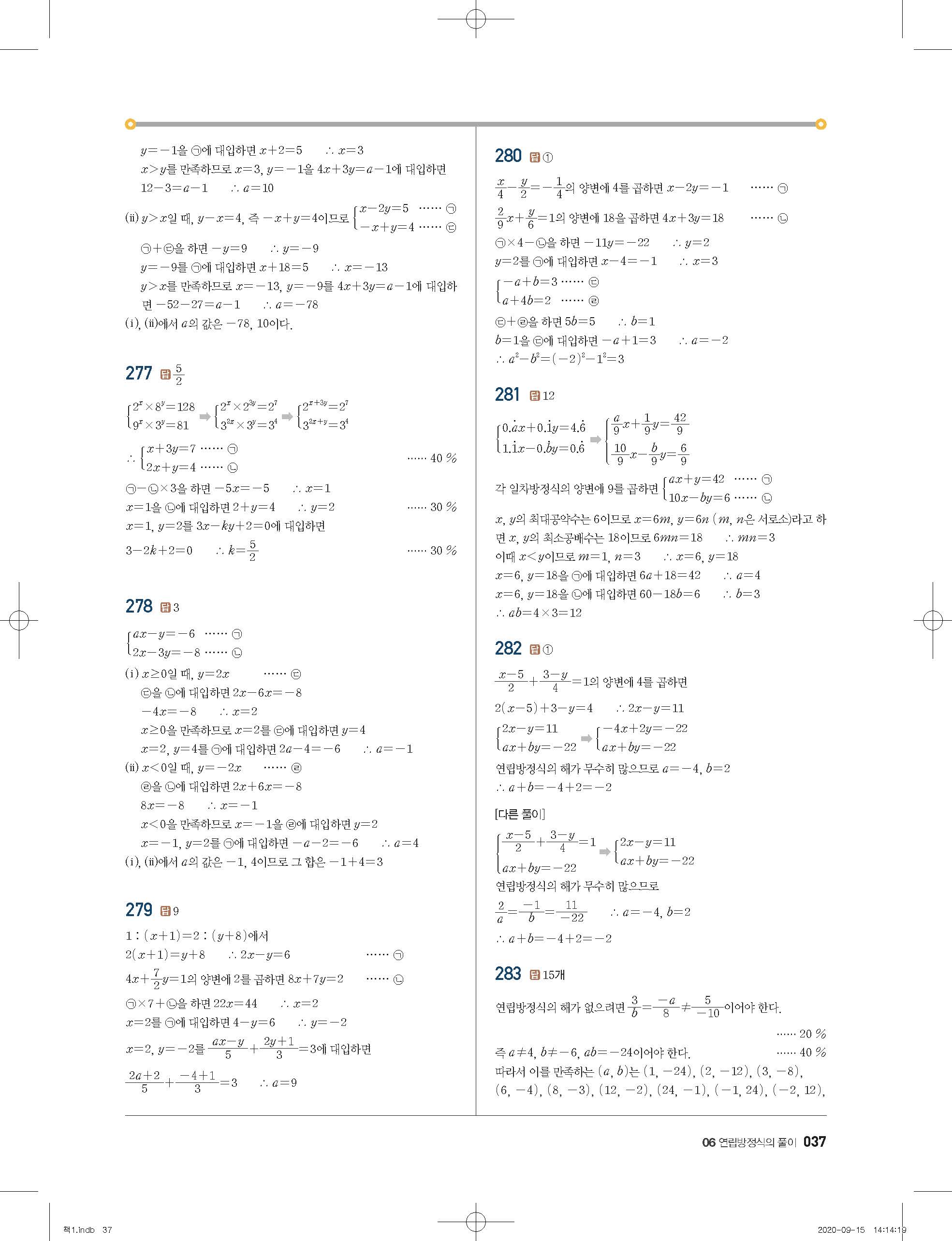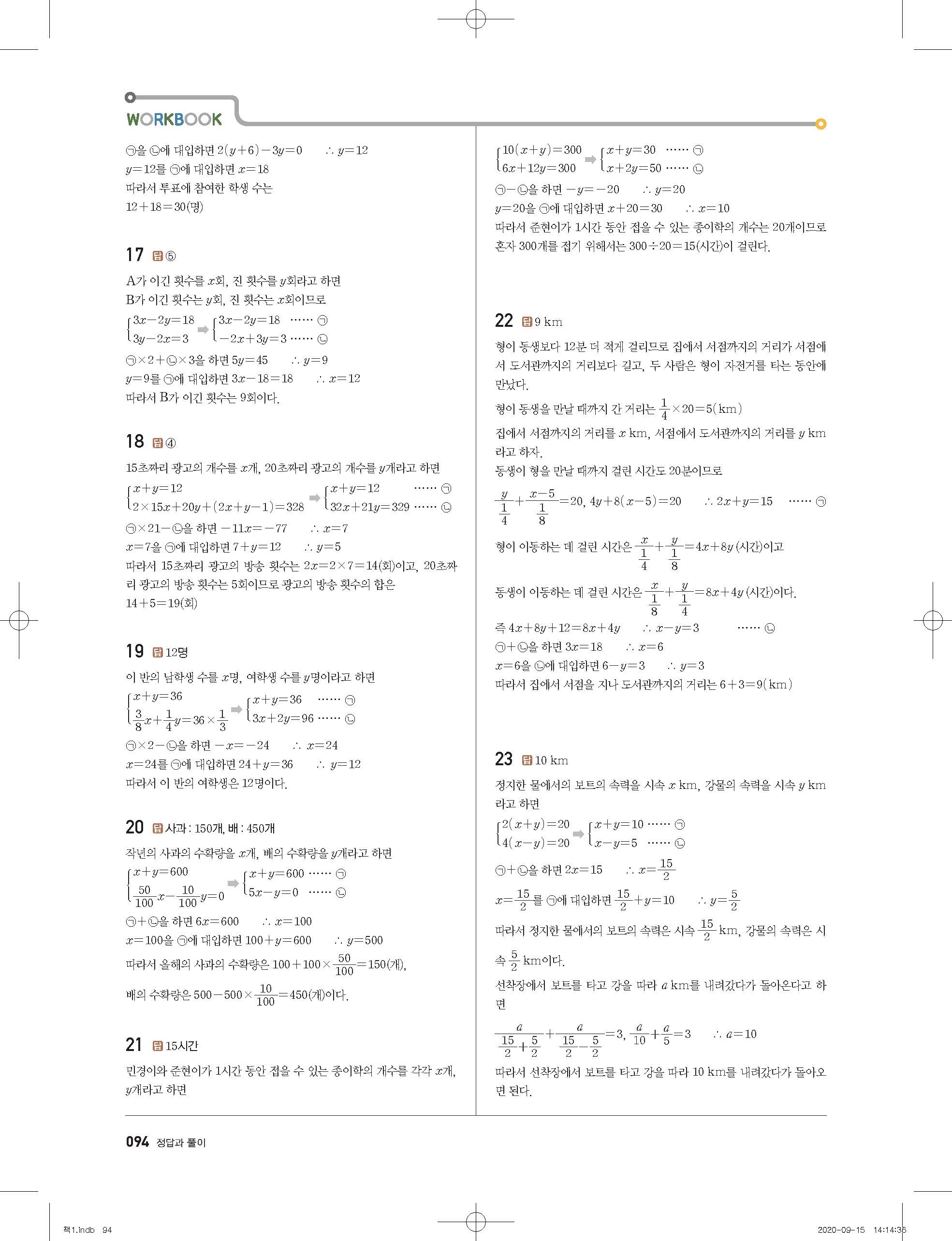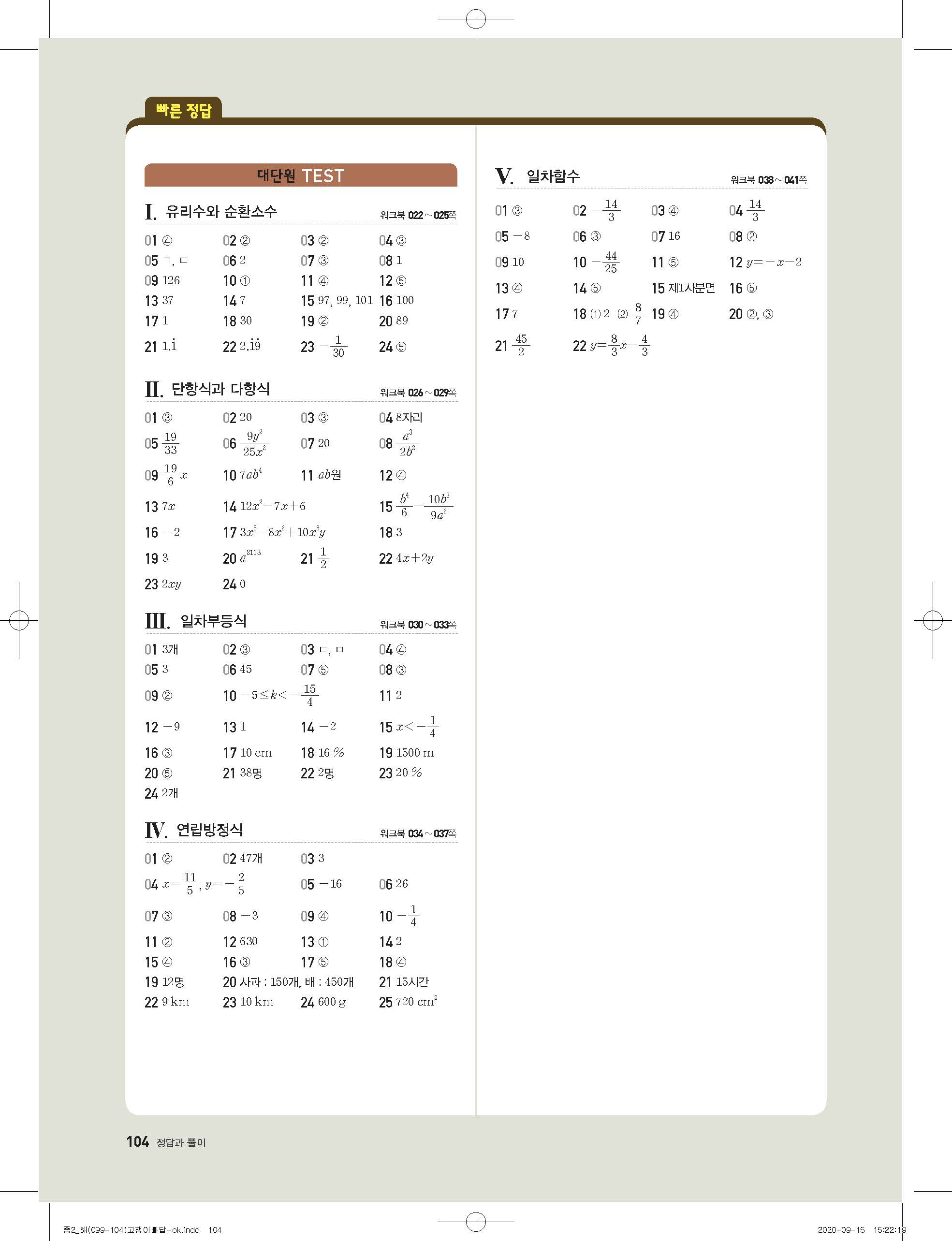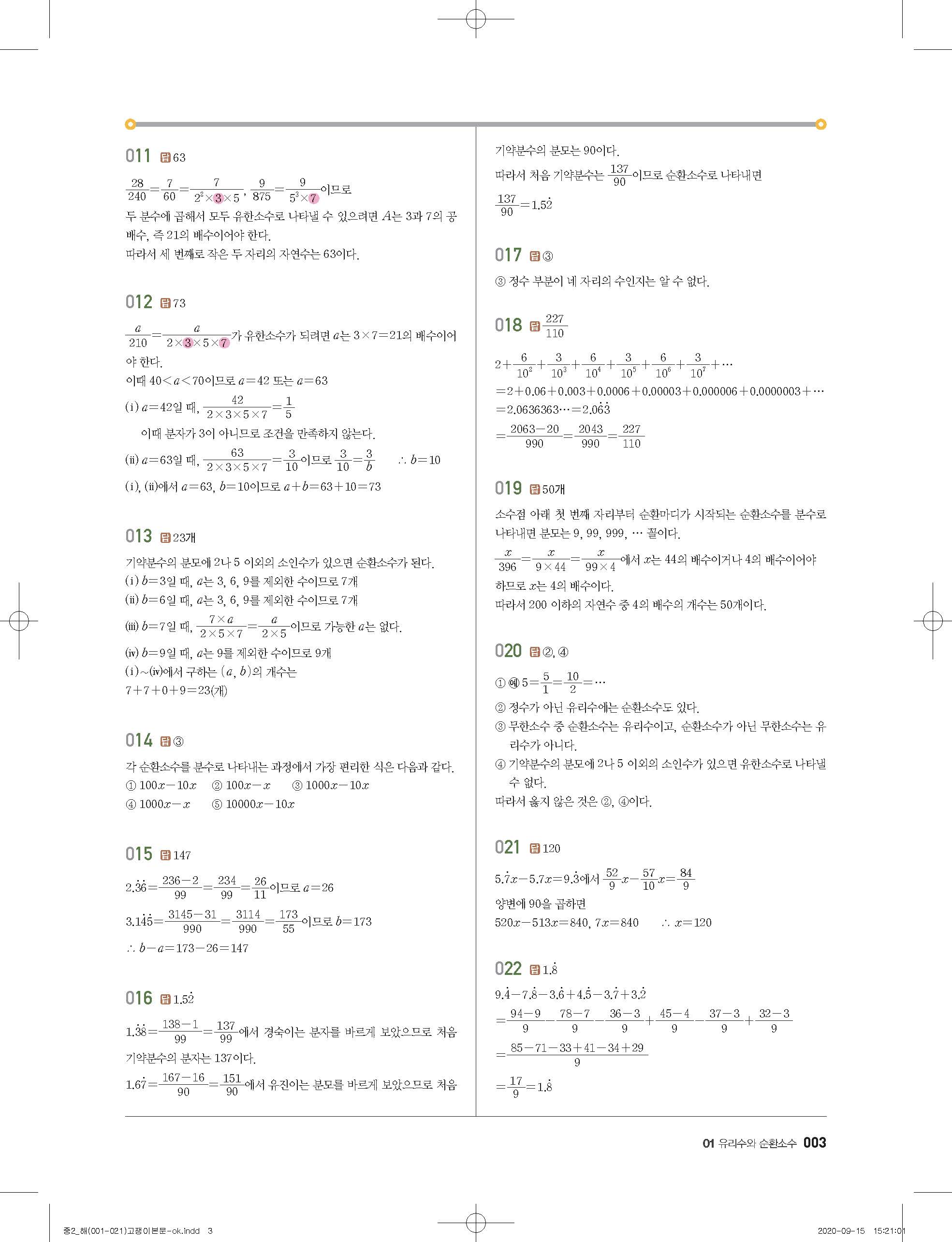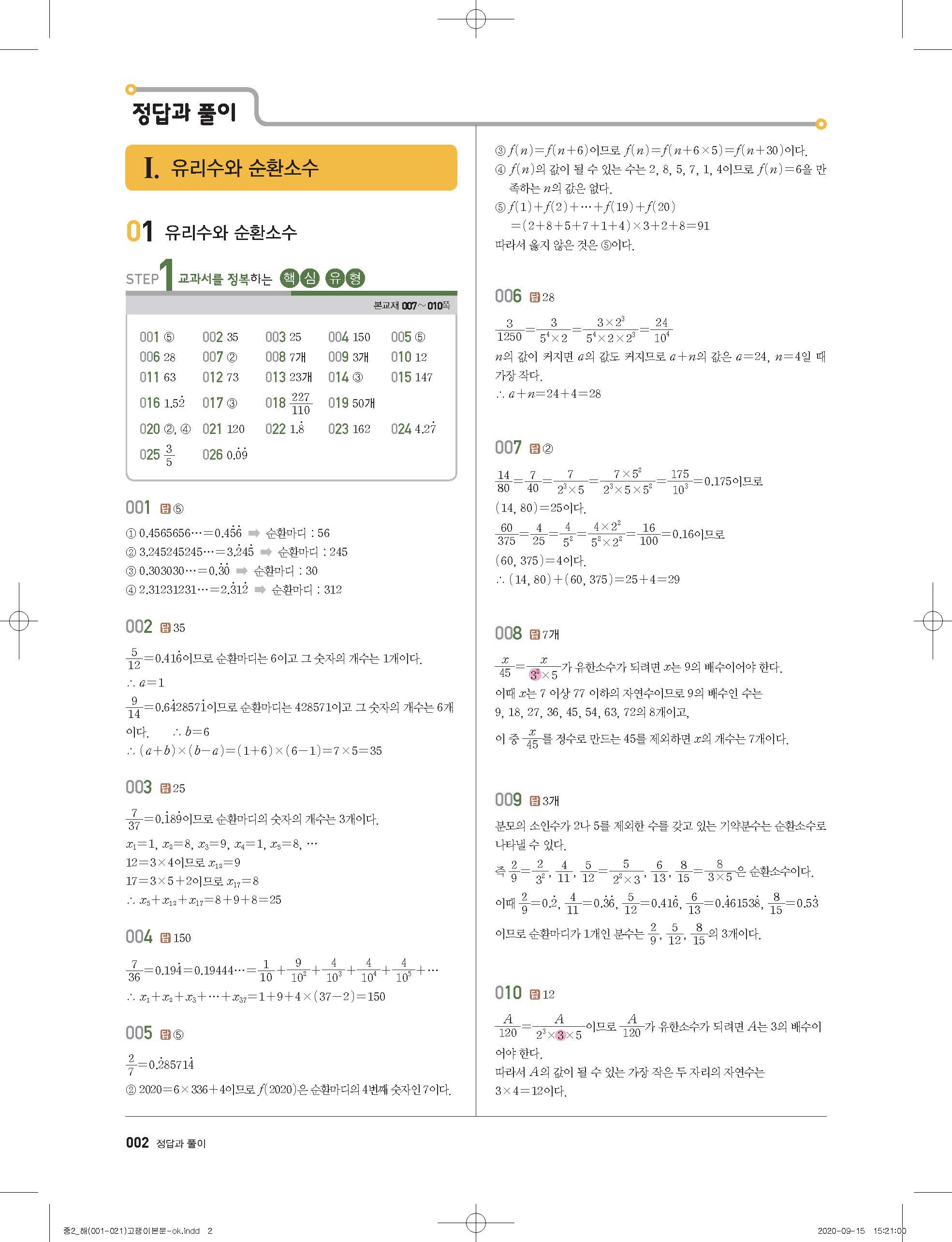 고쟁이 유형 심화 중등수학2상 2-1 사진답지 빠른답지 모바일최적화
