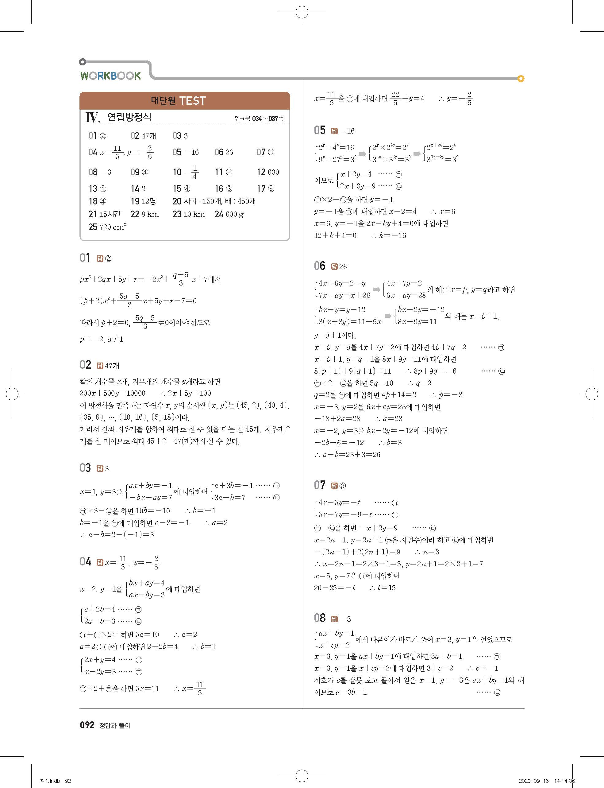 다운로드 받을필요 없이 바로 볼수 있는 모바일에 최적화된 답지 입니다