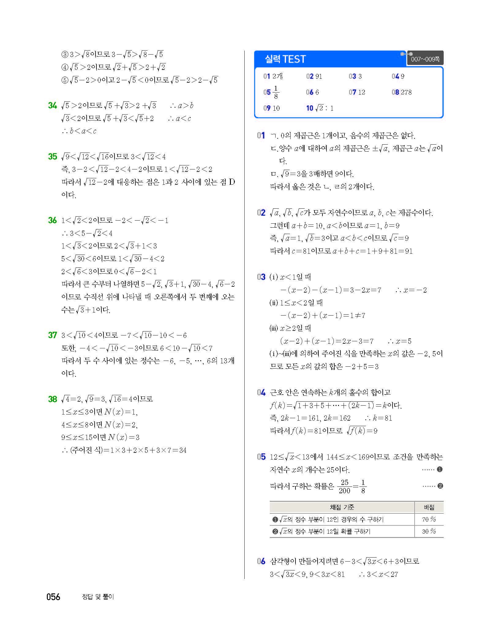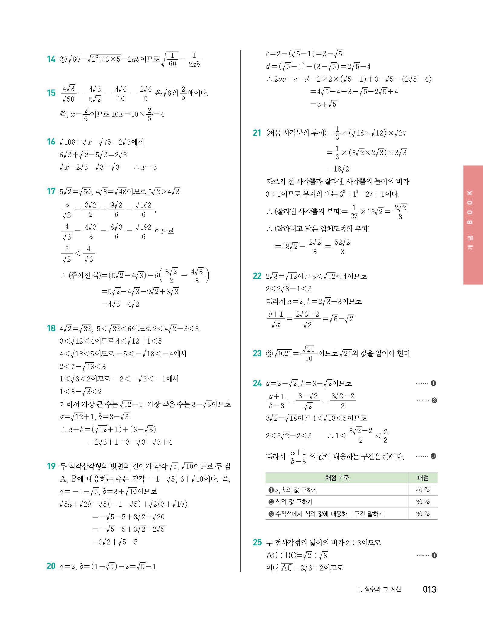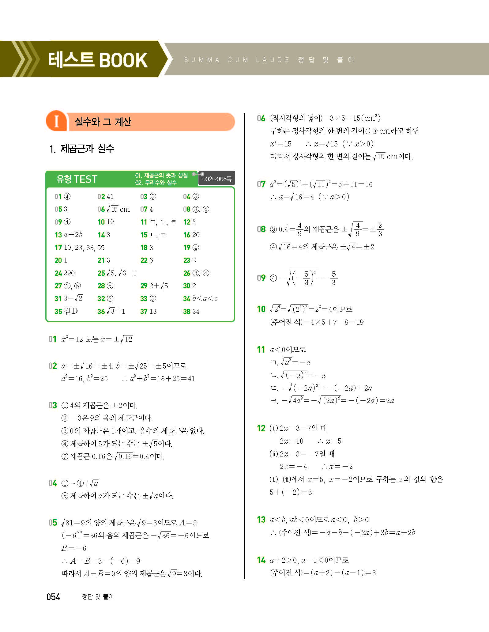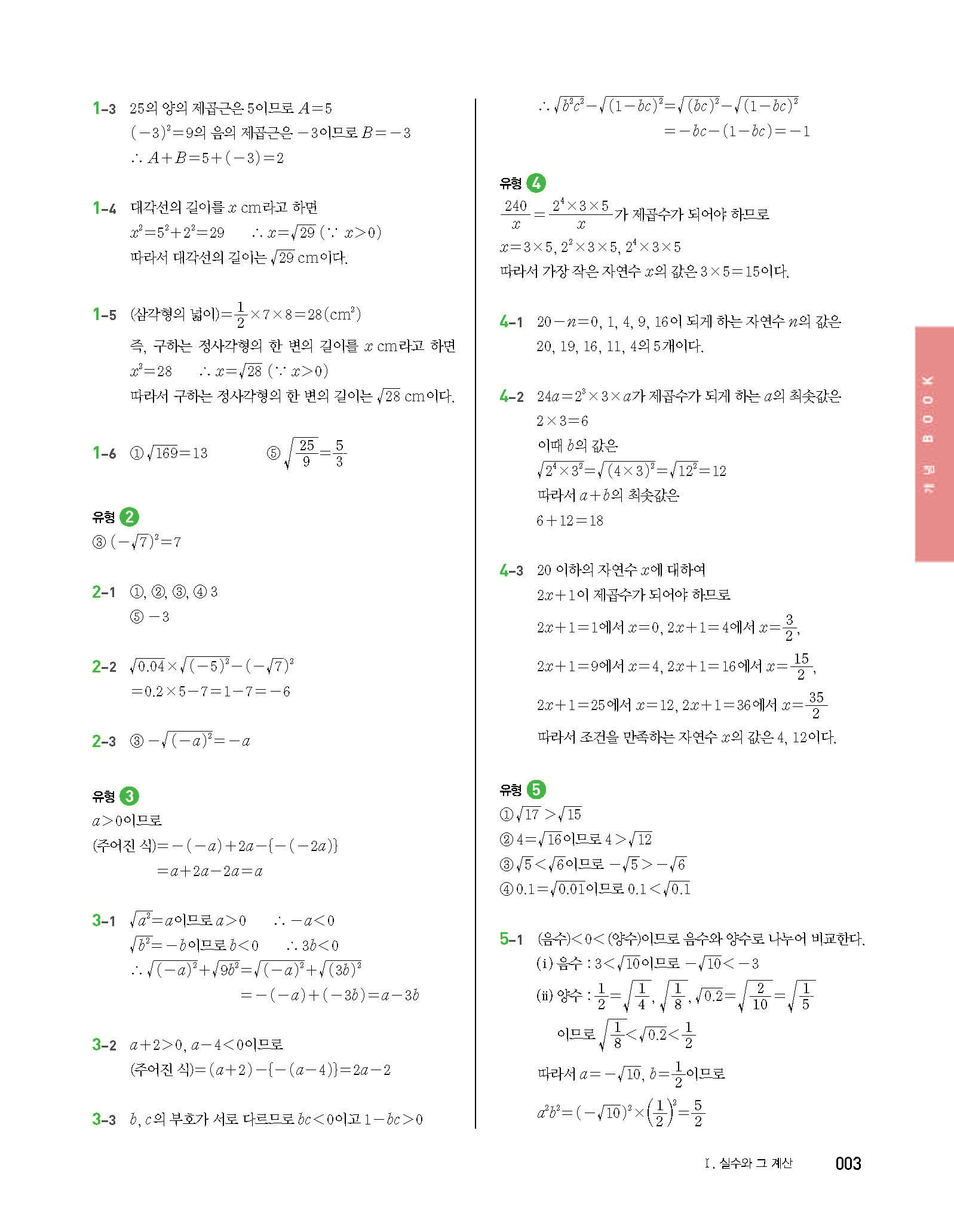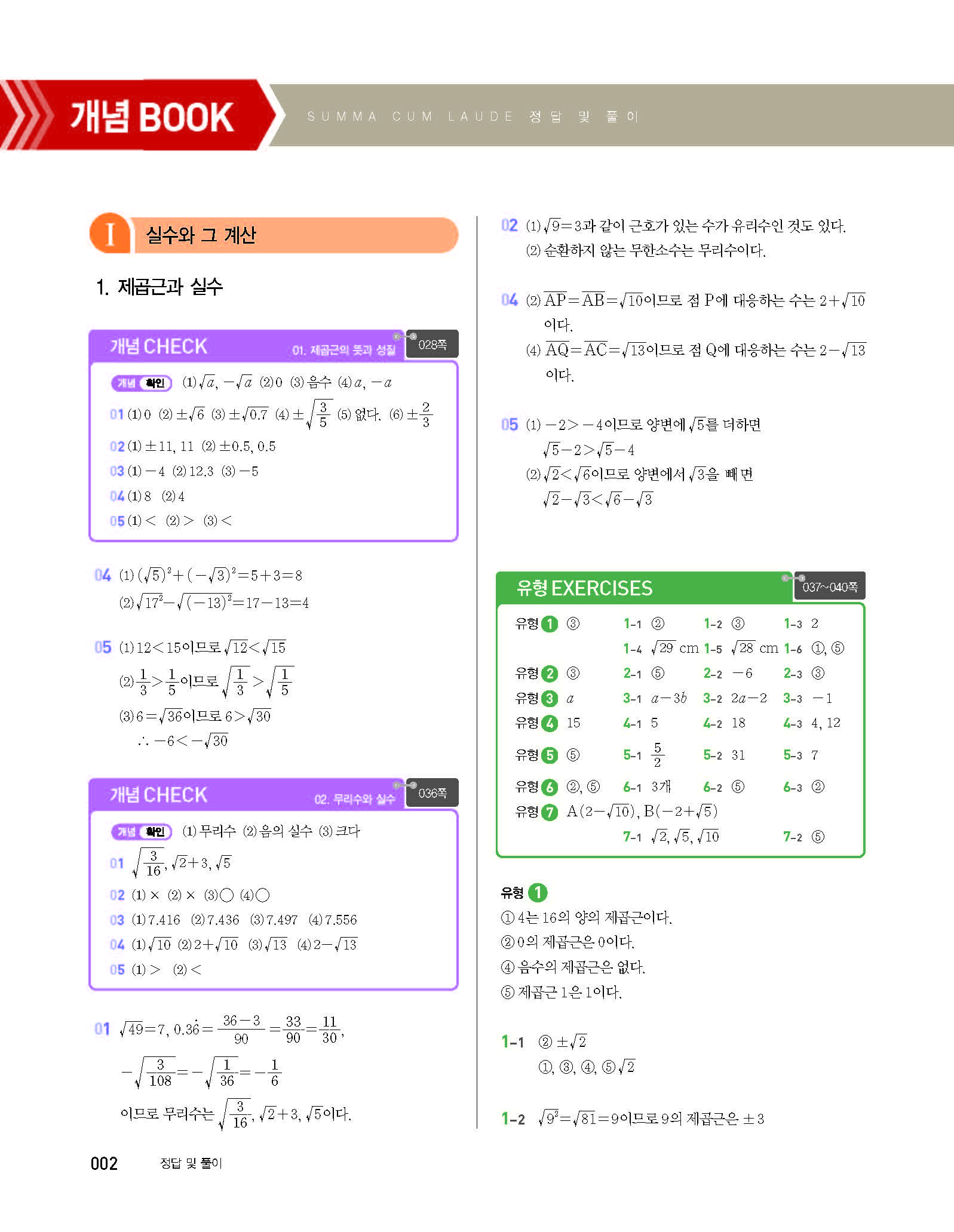 숨마쿰라우데 중학수학 개념기본서 중3상 3-1 사진답지 빠른답지 모바일최적화