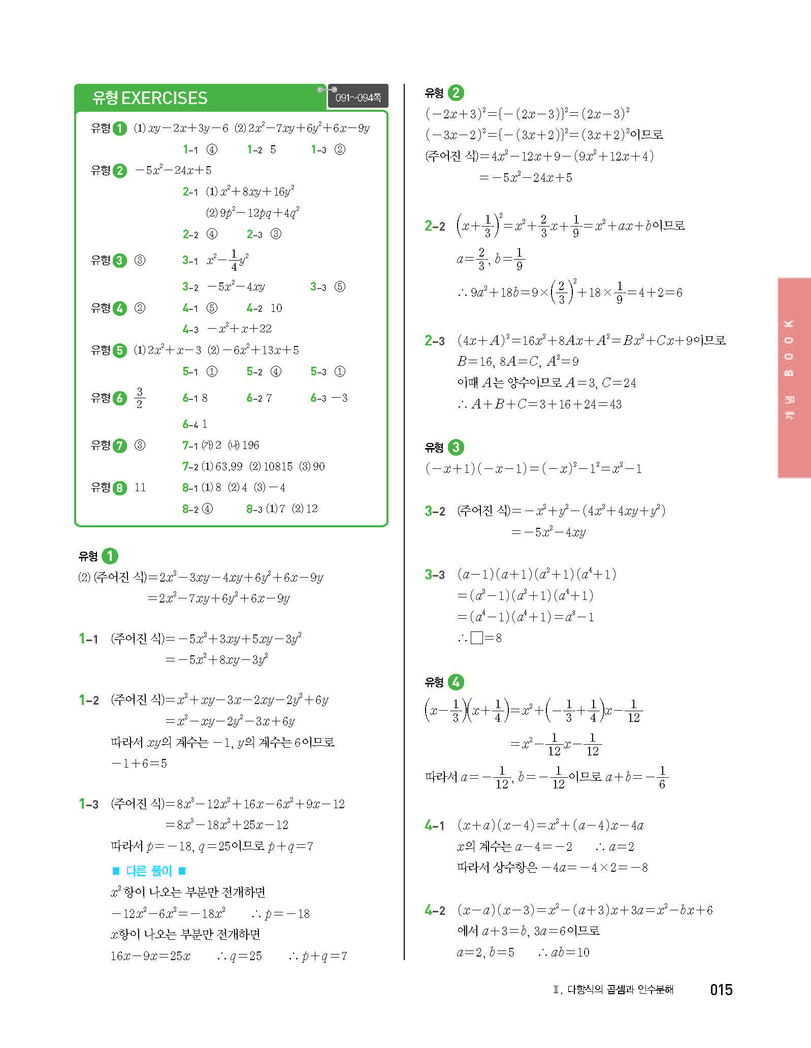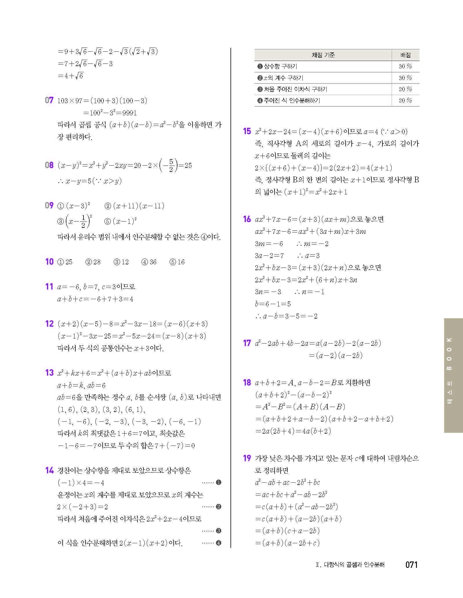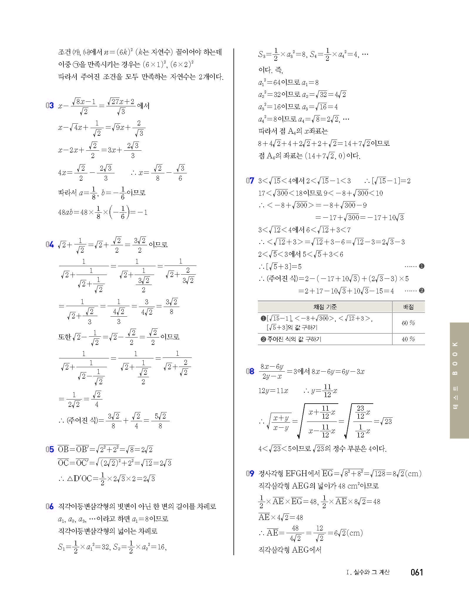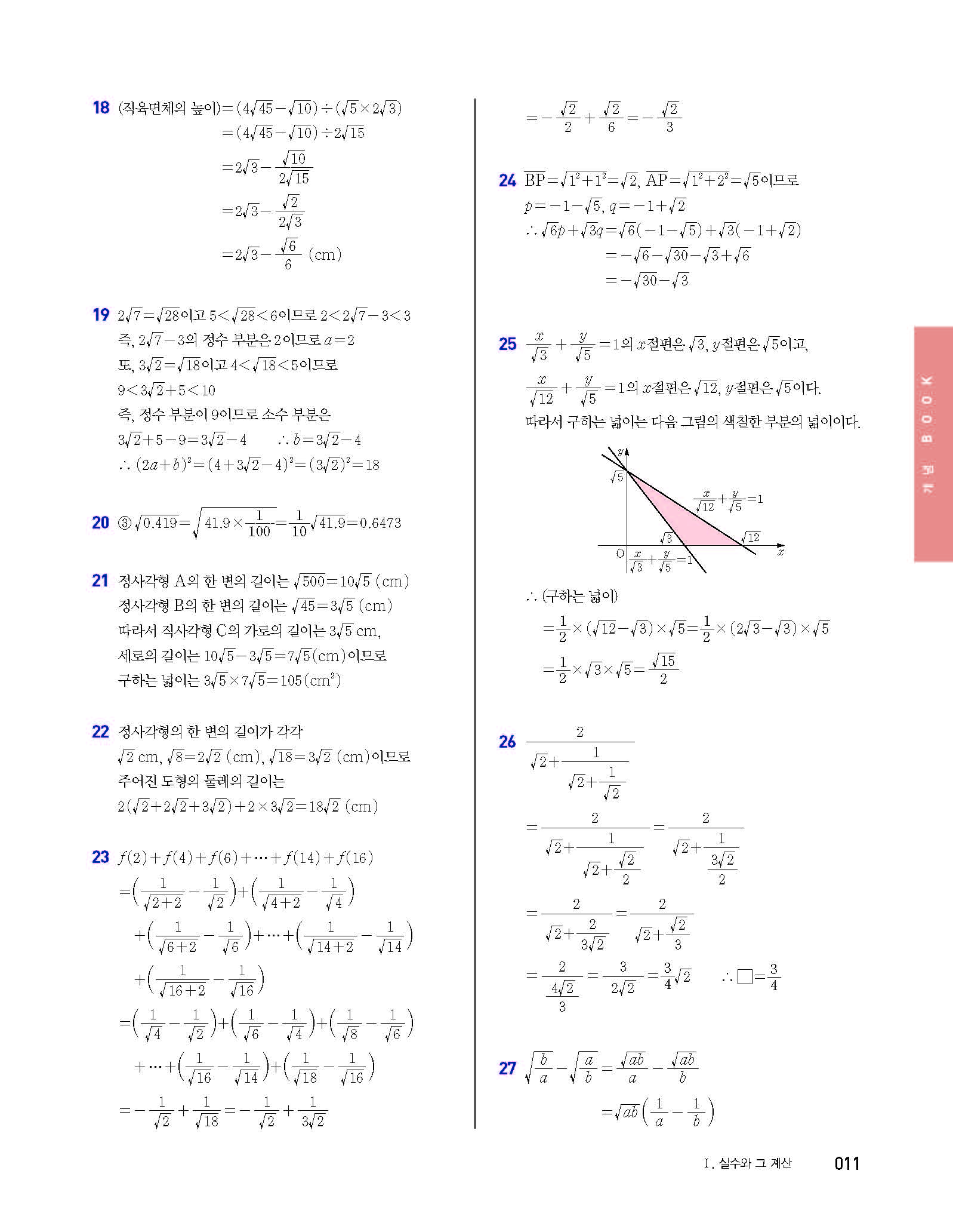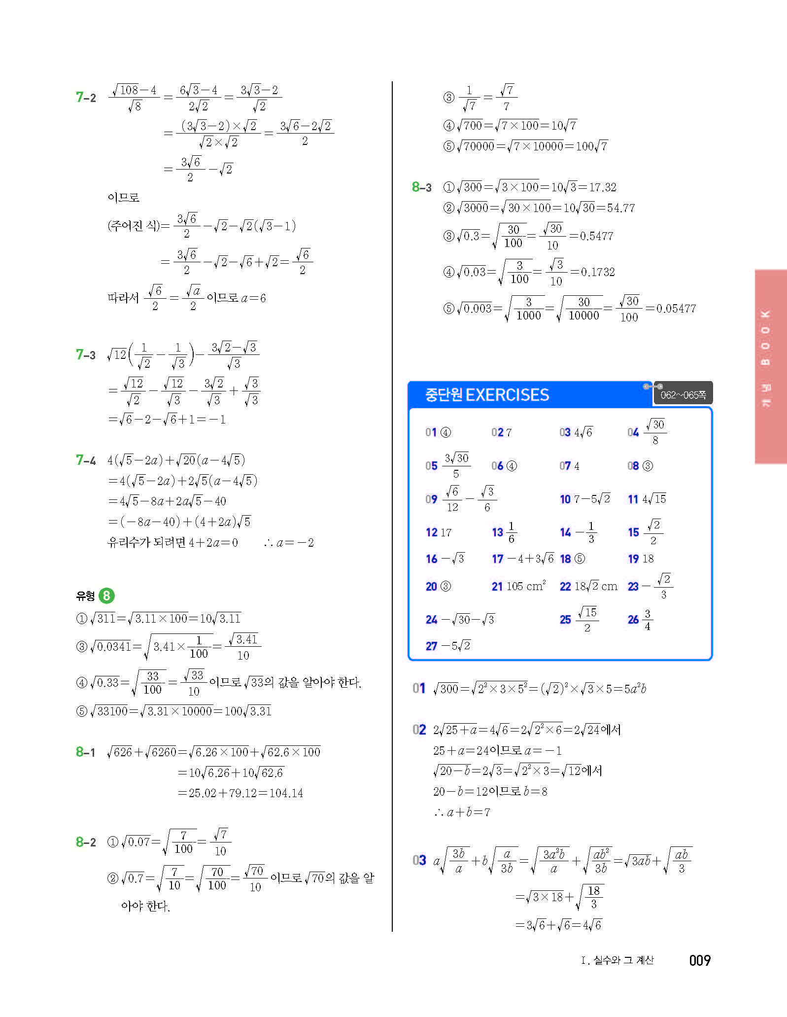 숨마쿰라우데 중학수학 개념기본서 중3상 3-1 사진답지 빠른답지 모바일최적화