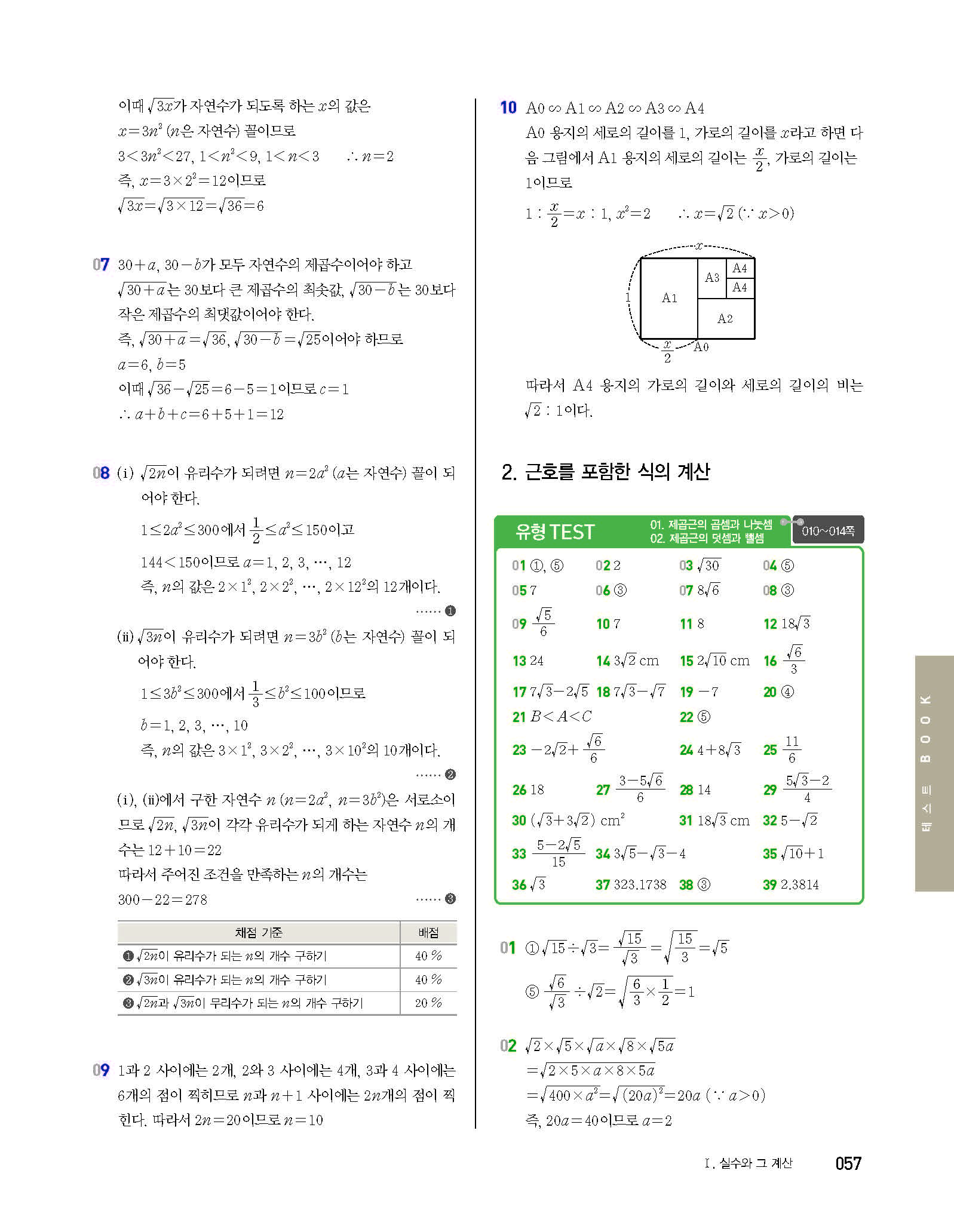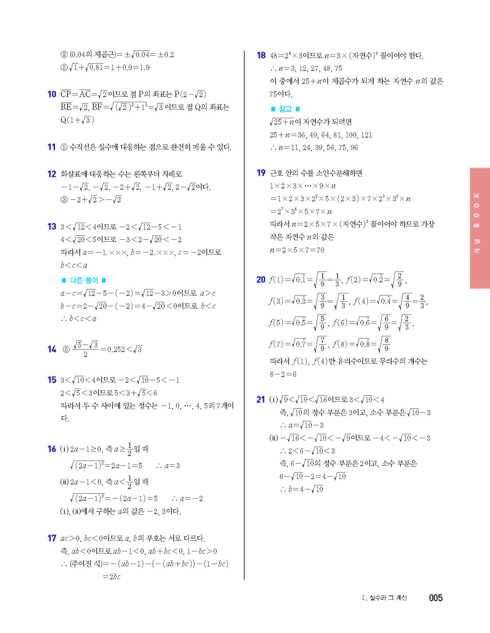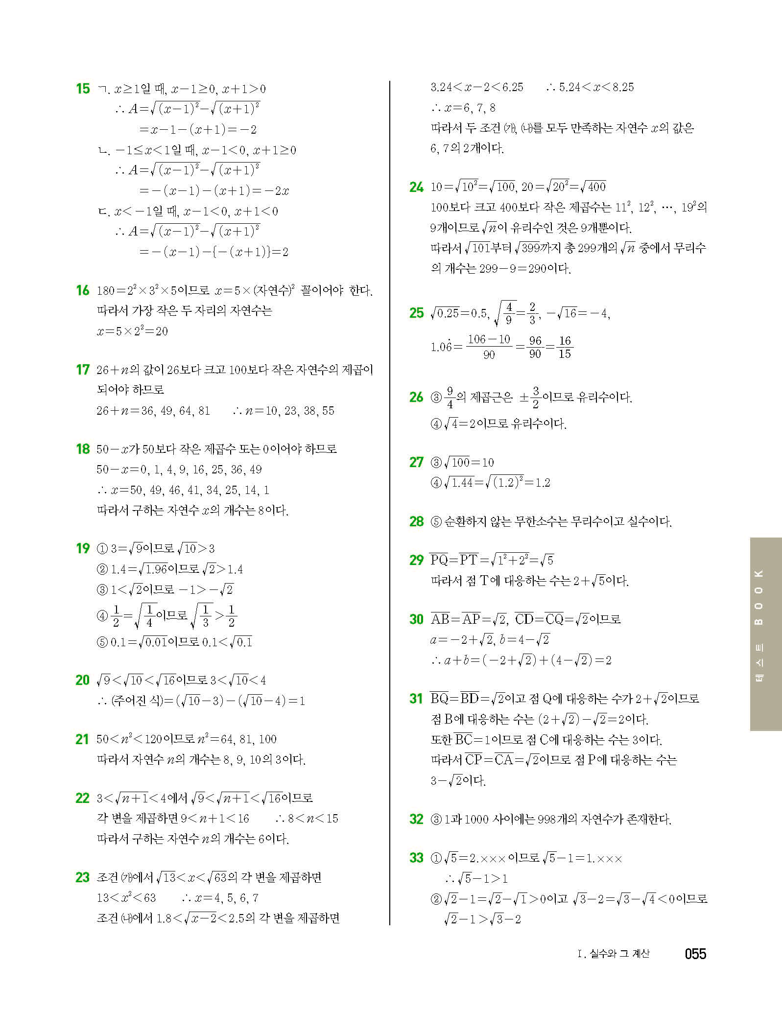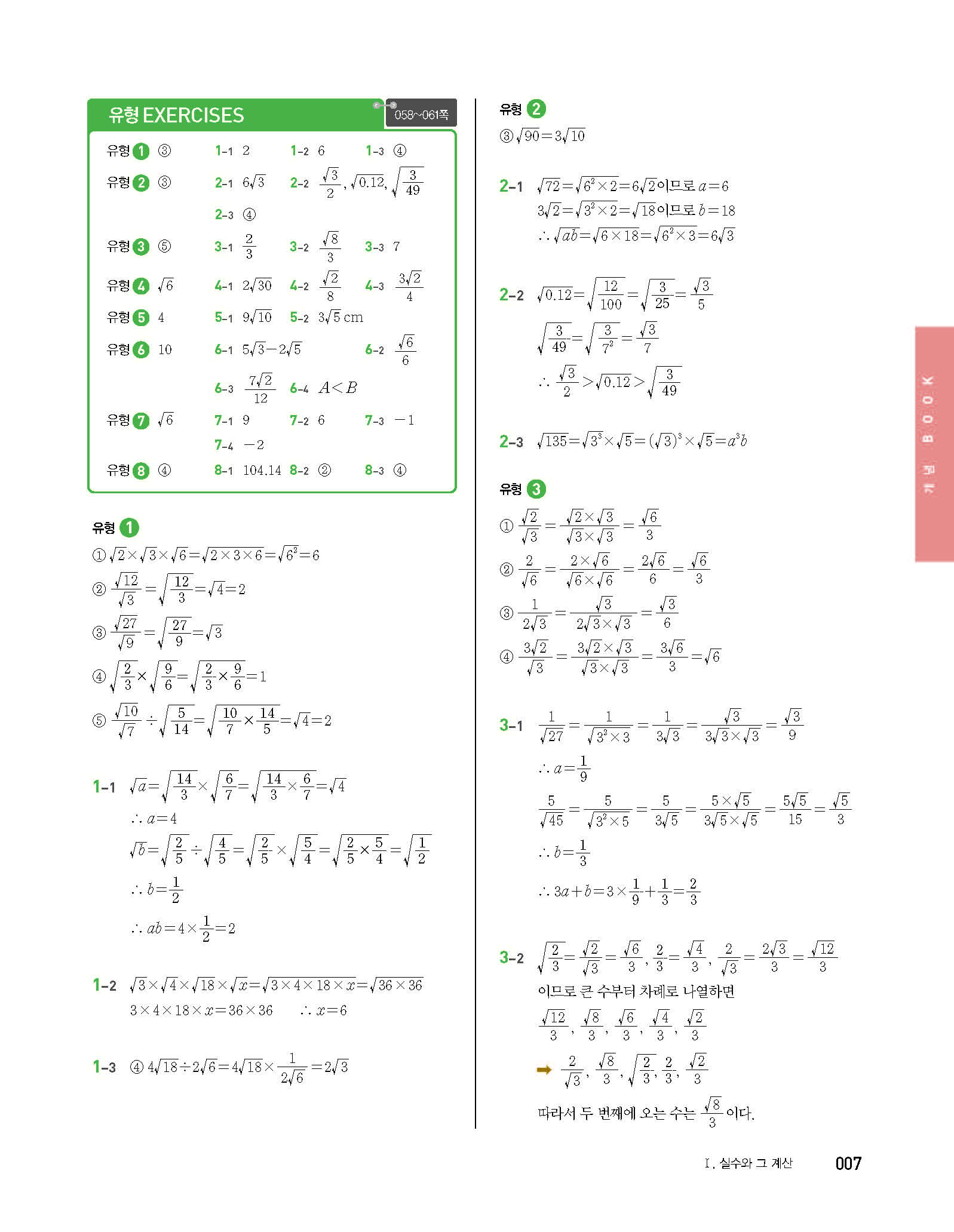 숨마쿰라우데 중학수학 개념기본서 중3상 3-1 사진답지 빠른답지 모바일최적화