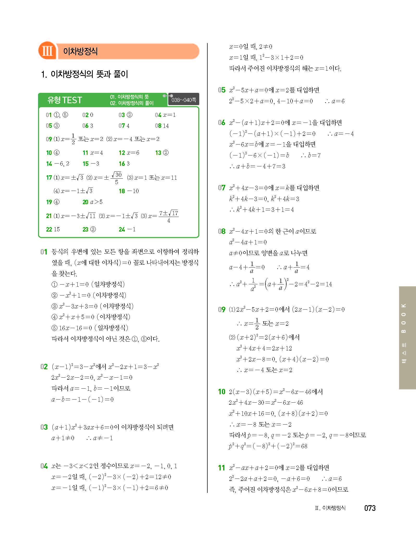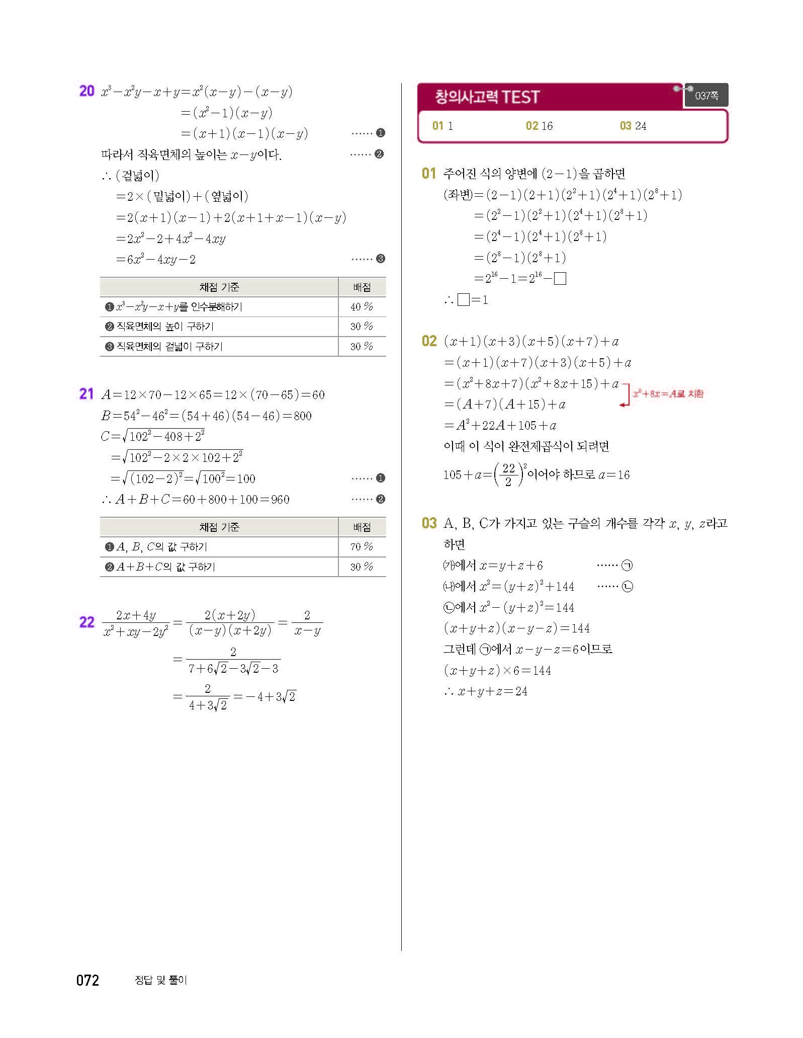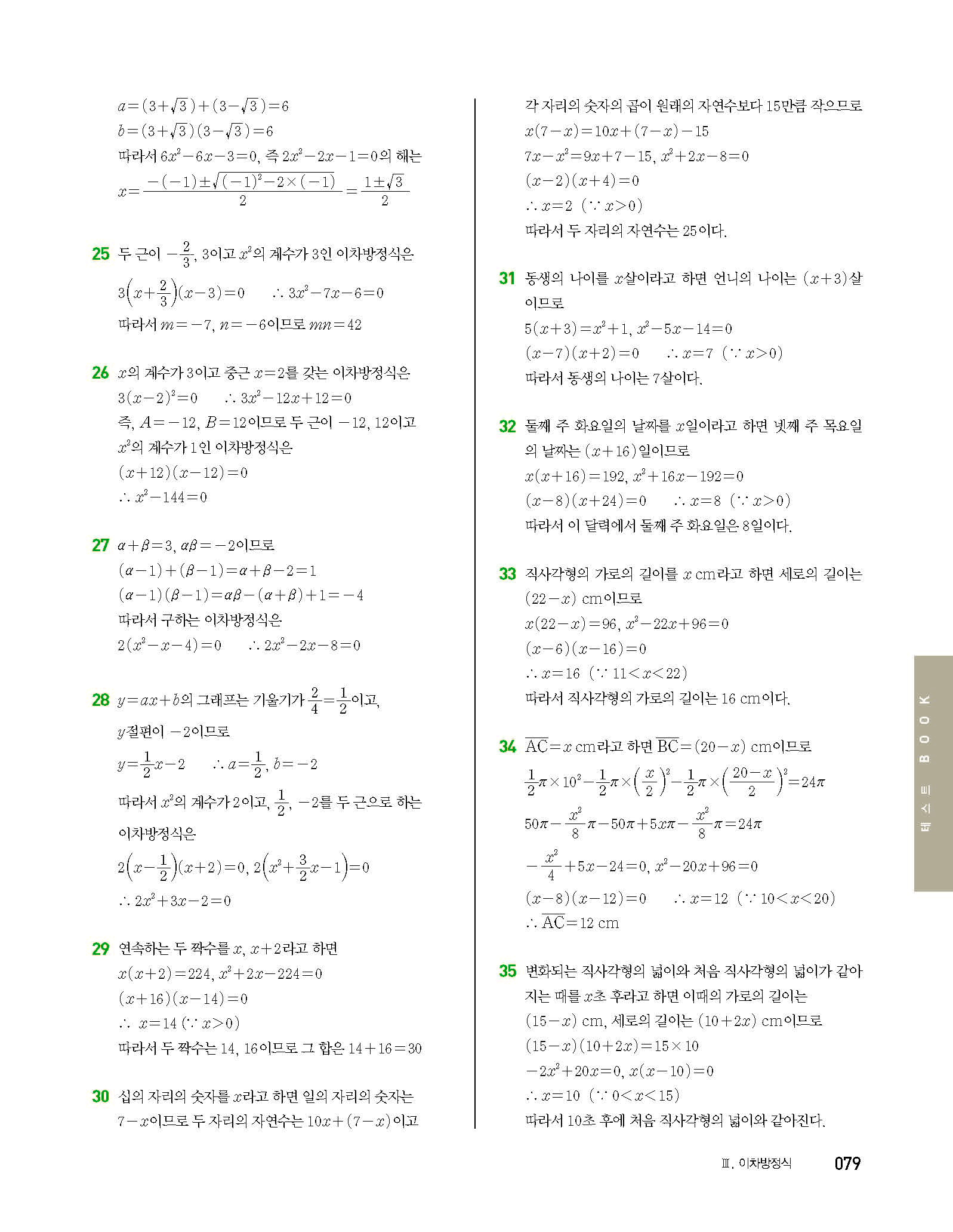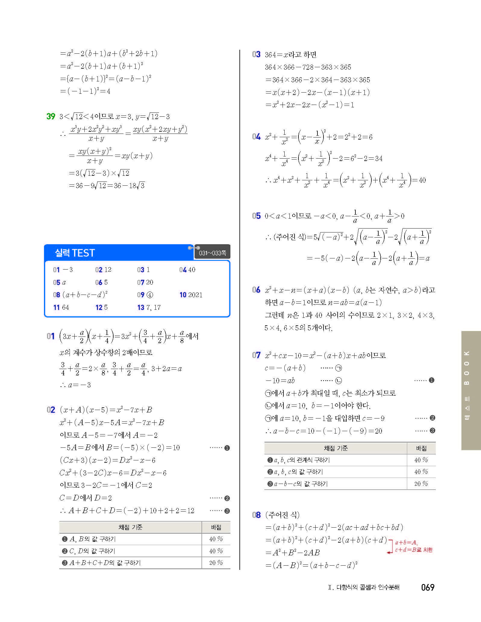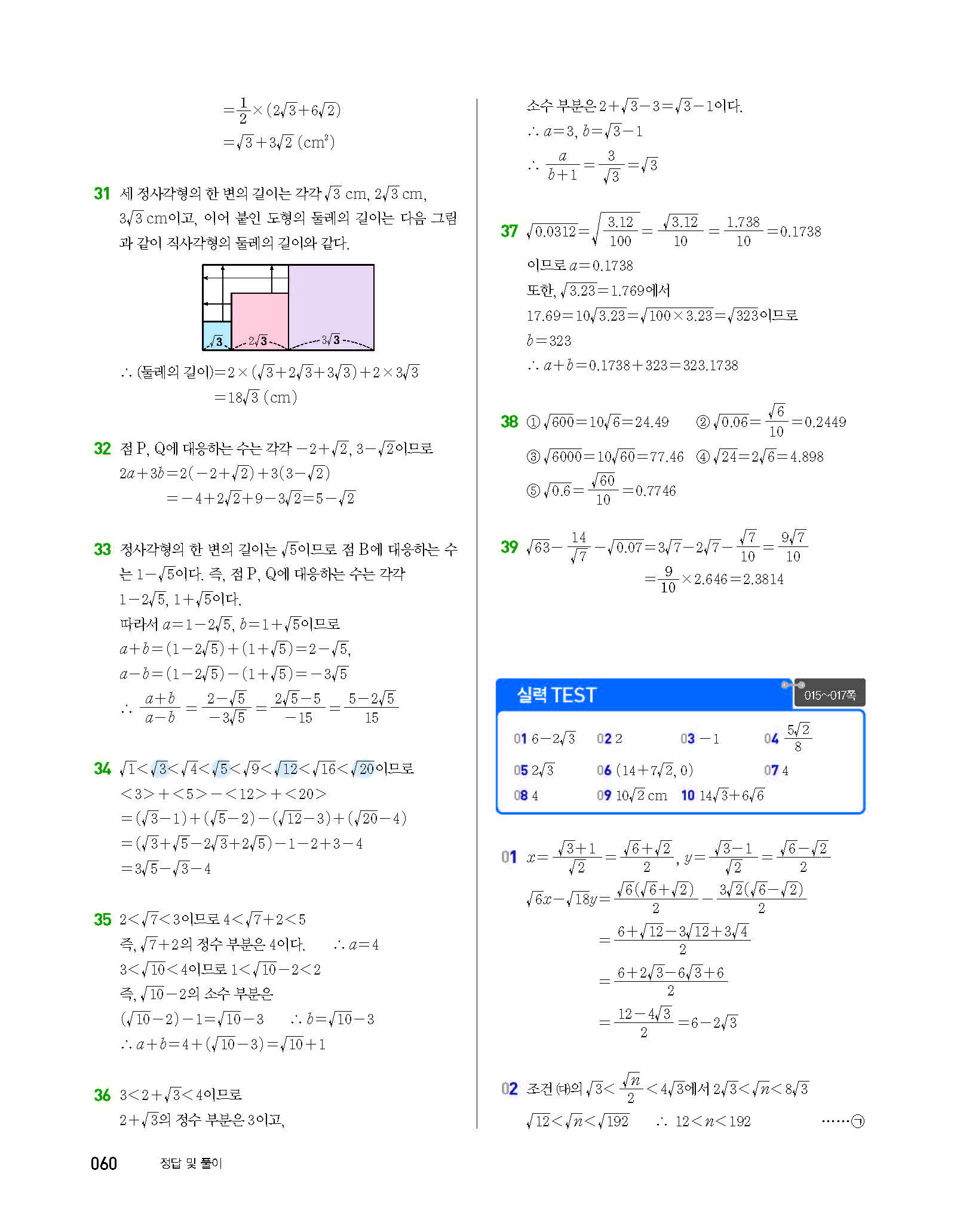숨마쿰라우데 중학수학 개념기본서 중3상 3-1 사진답지 빠른답지 모바일최적화