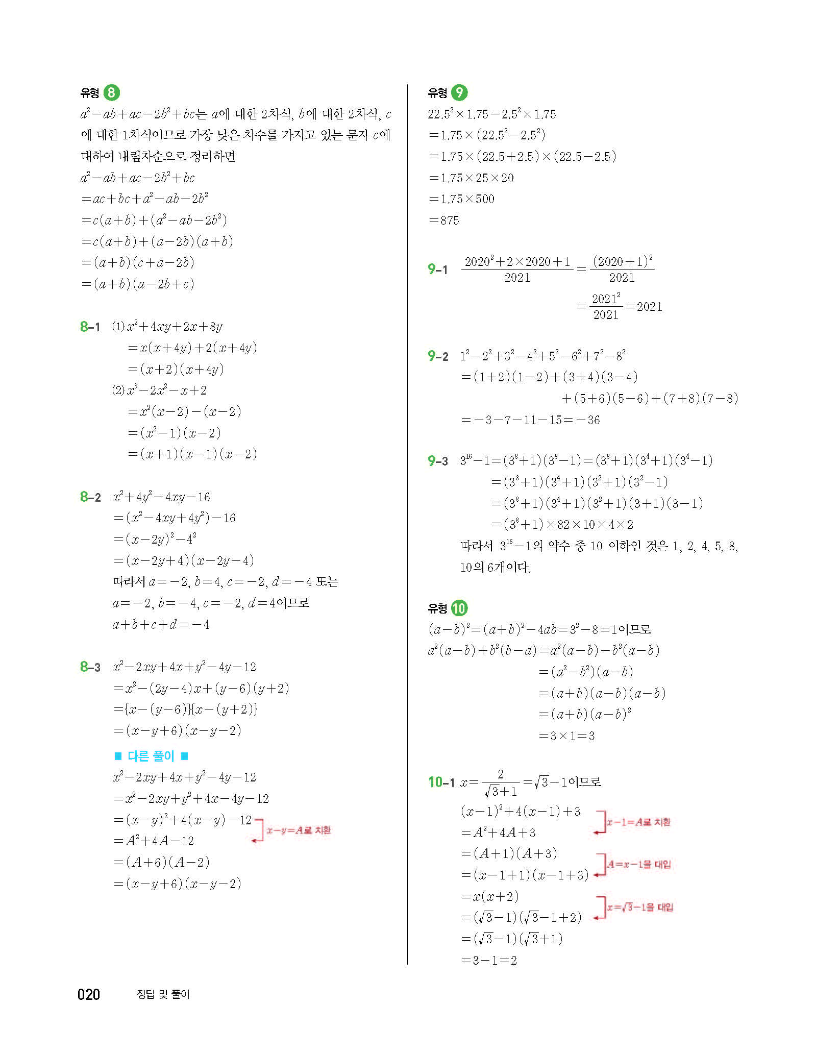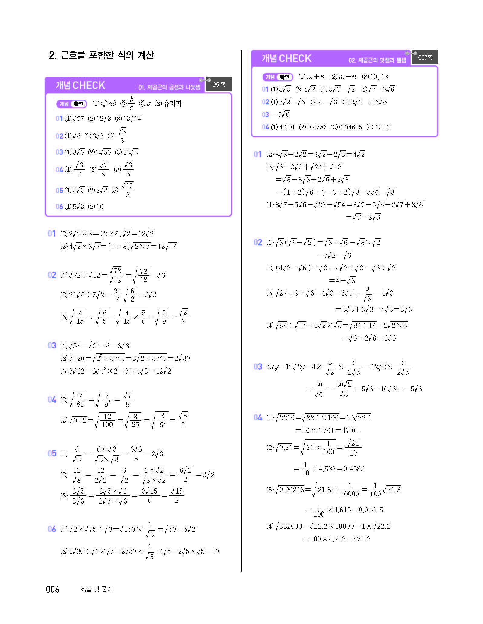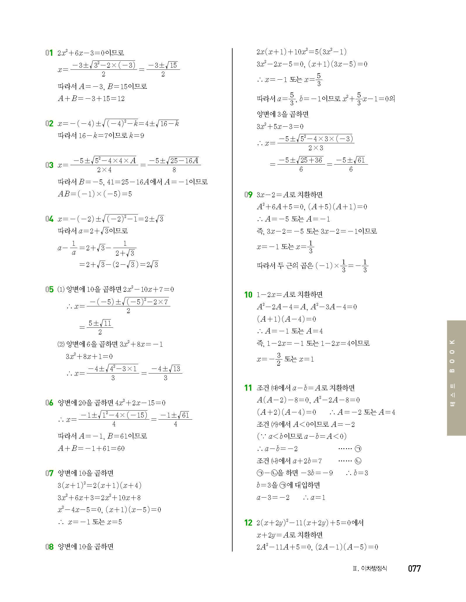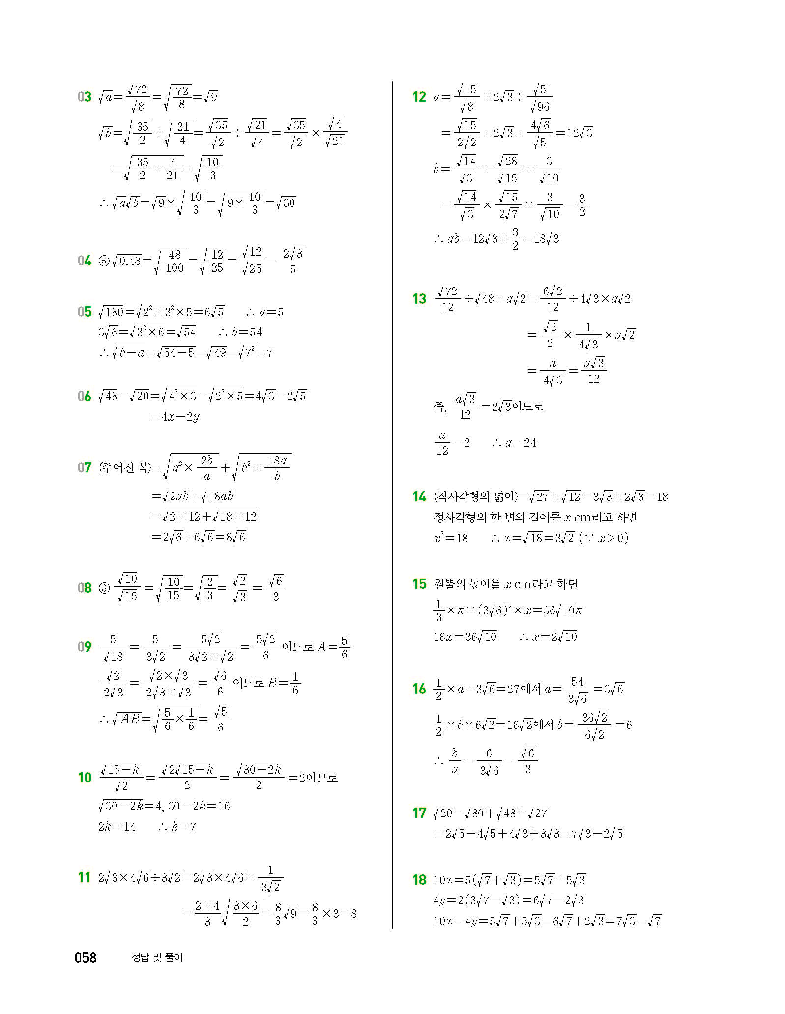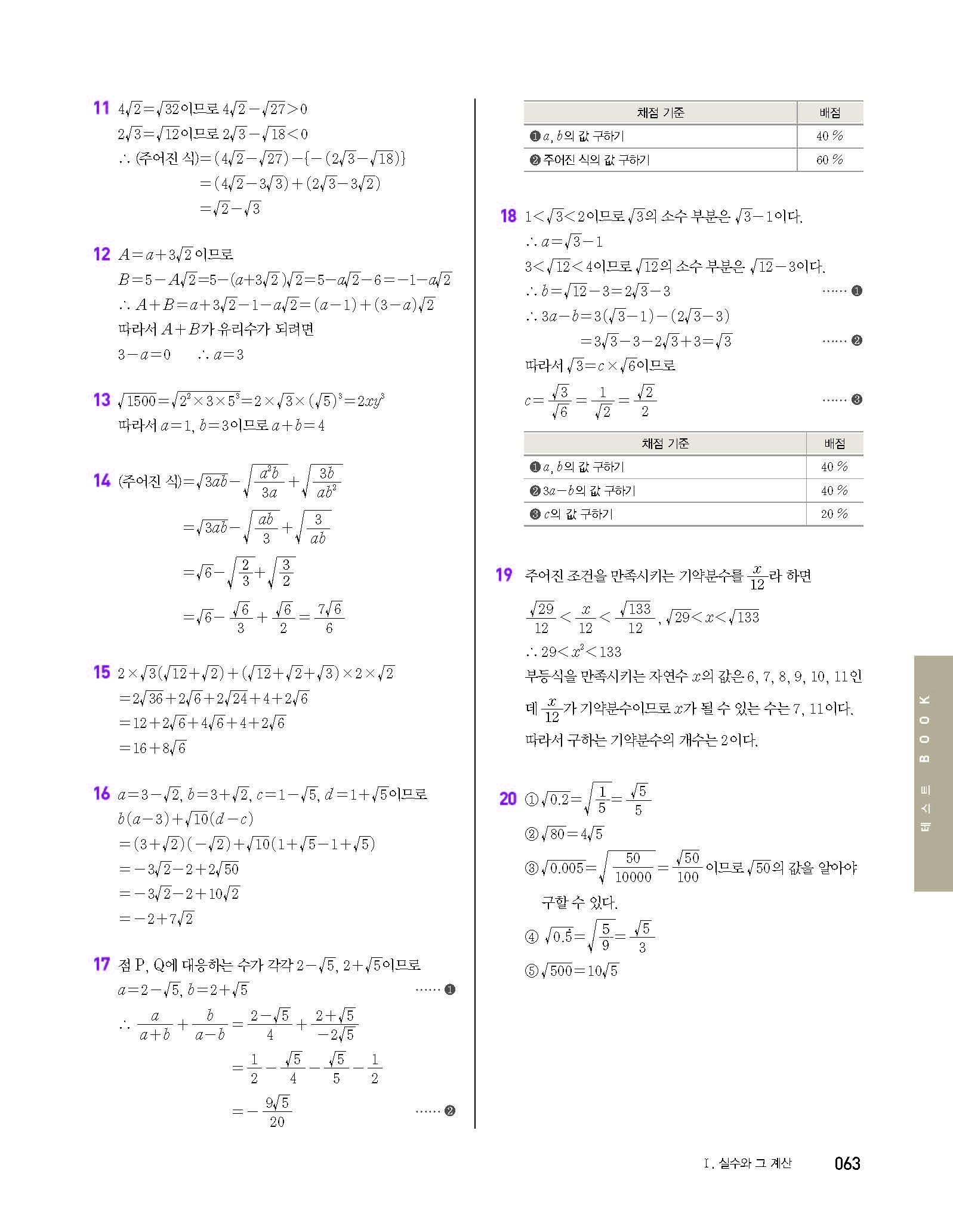 숨마쿰라우데 중학수학 개념기본서 중3상 3-1 사진답지 빠른답지 모바일최적화