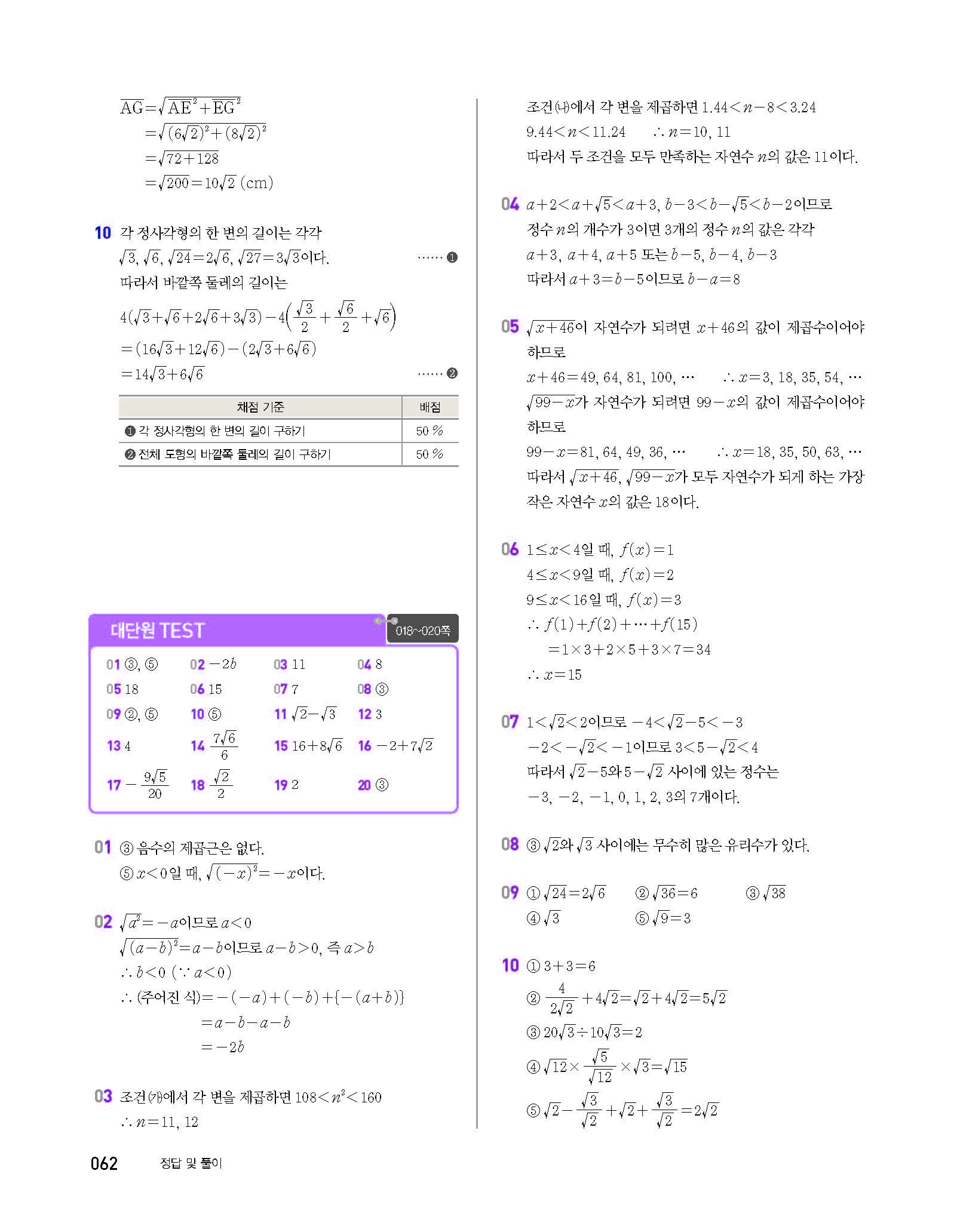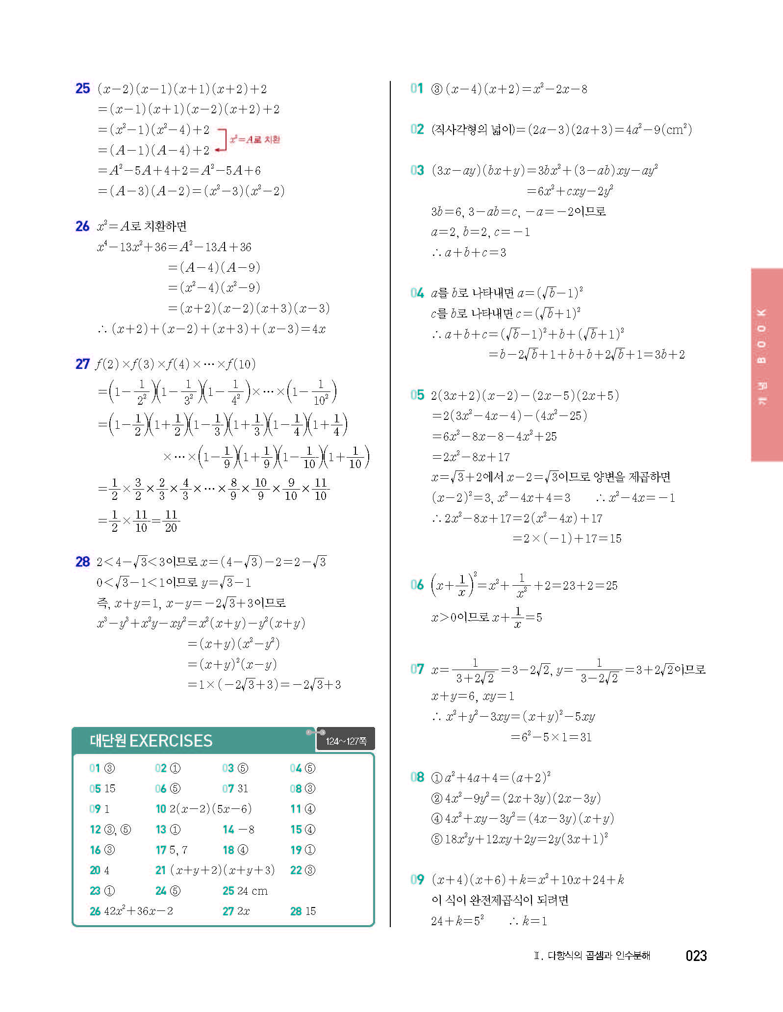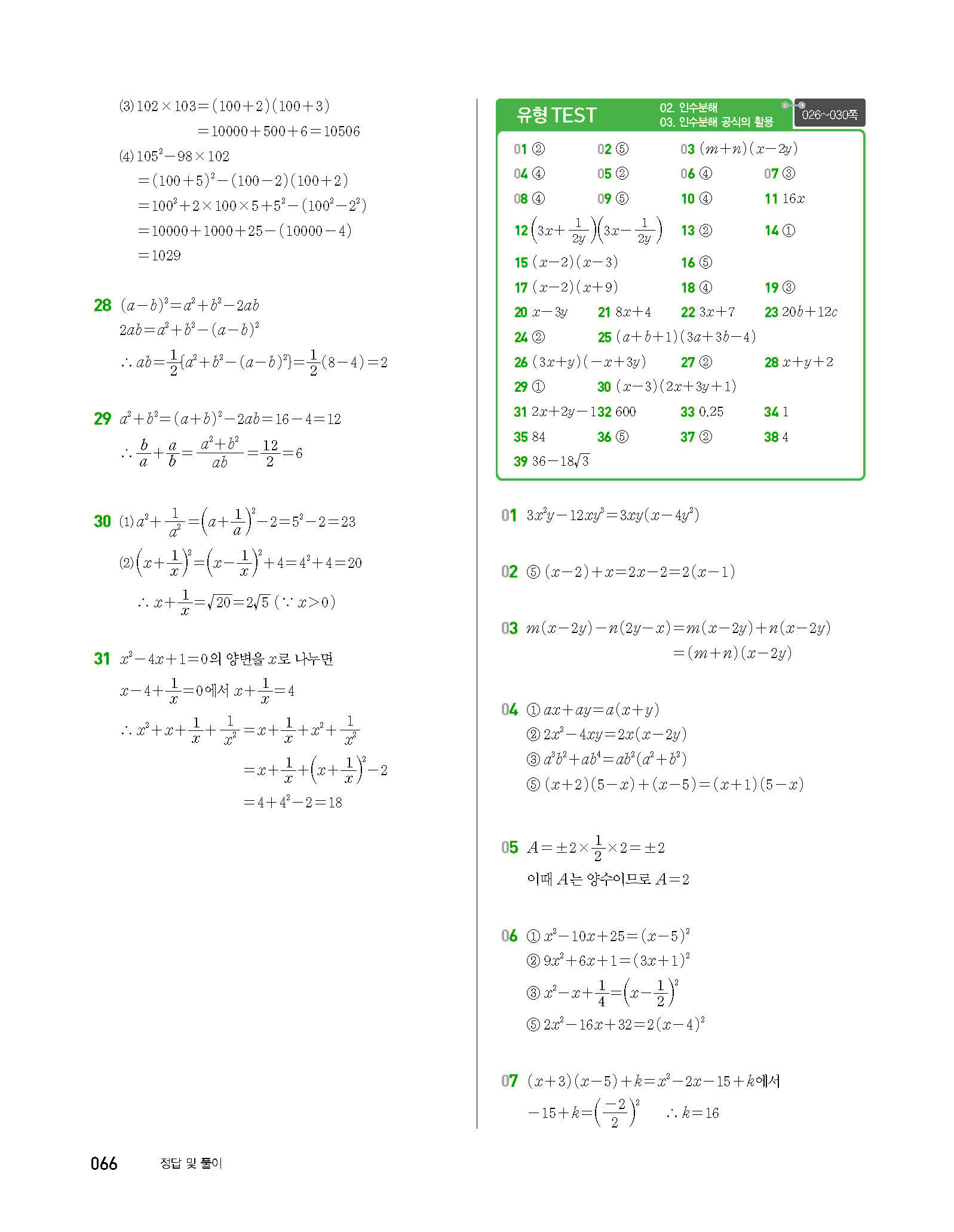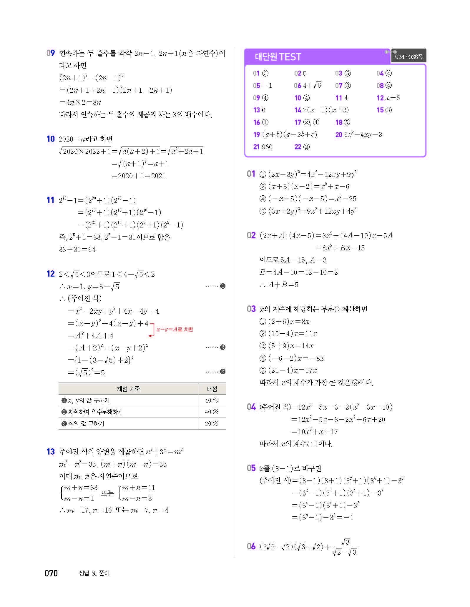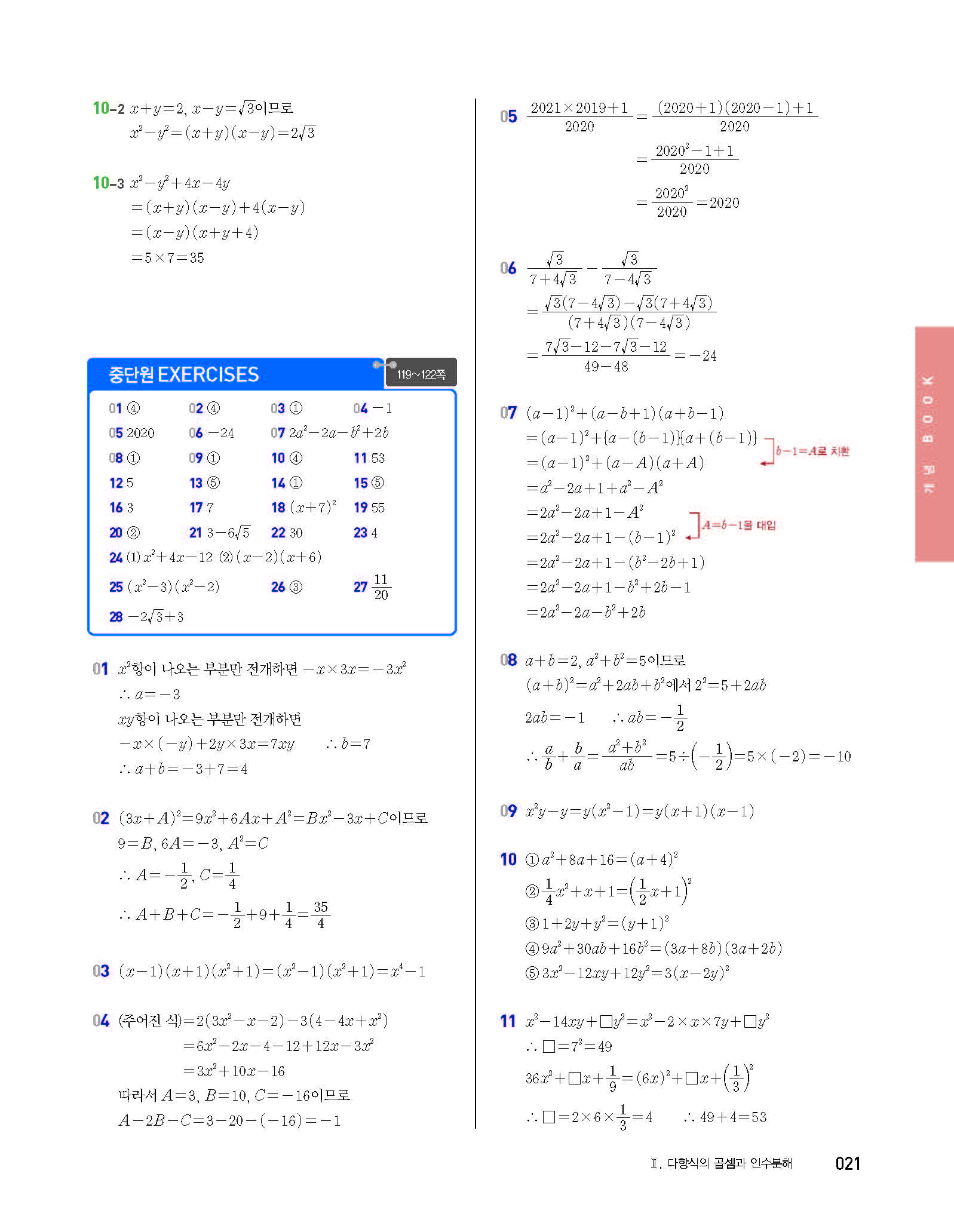 숨마쿰라우데 중학수학 개념기본서 중3상 3-1 사진답지 빠른답지 모바일최적화