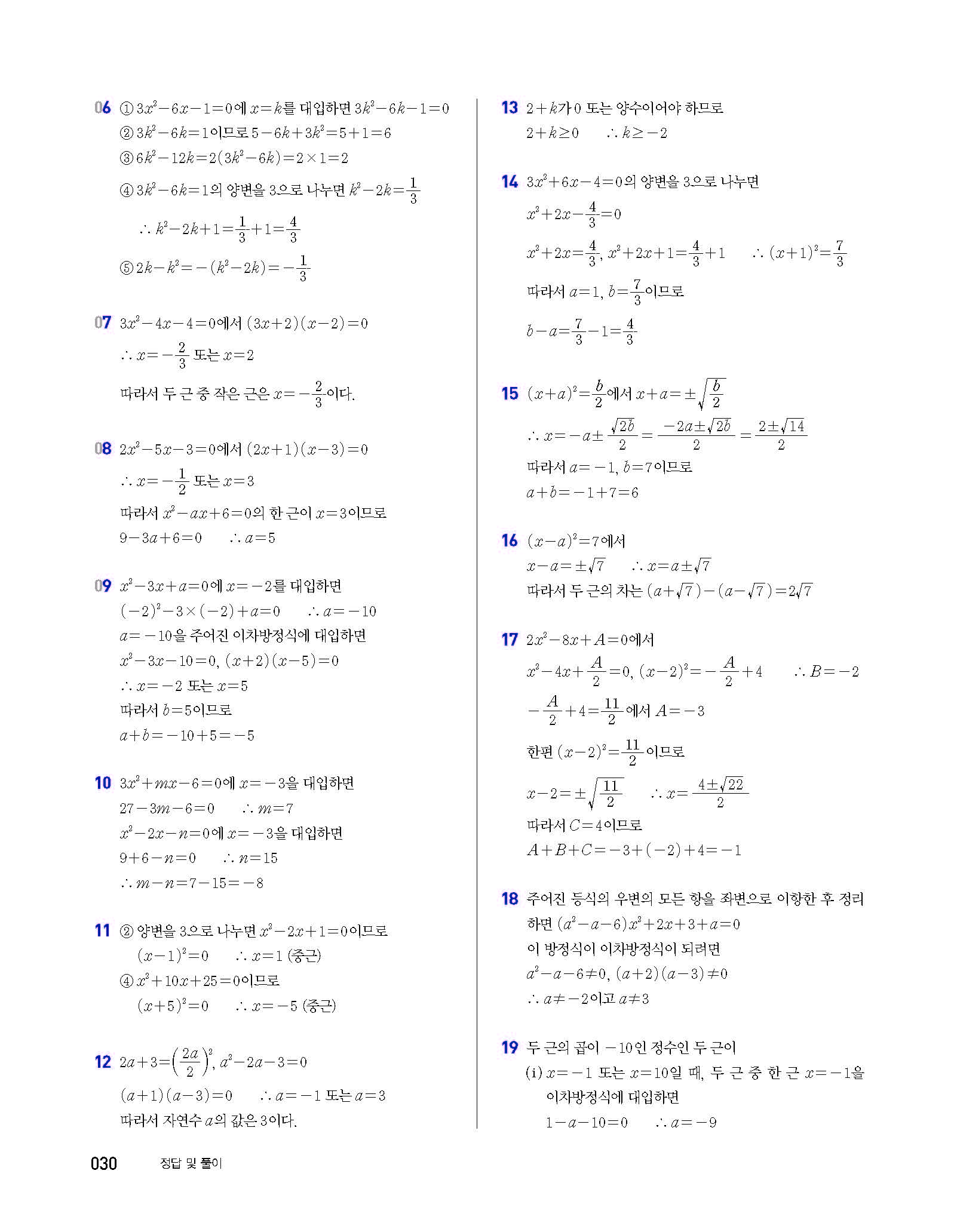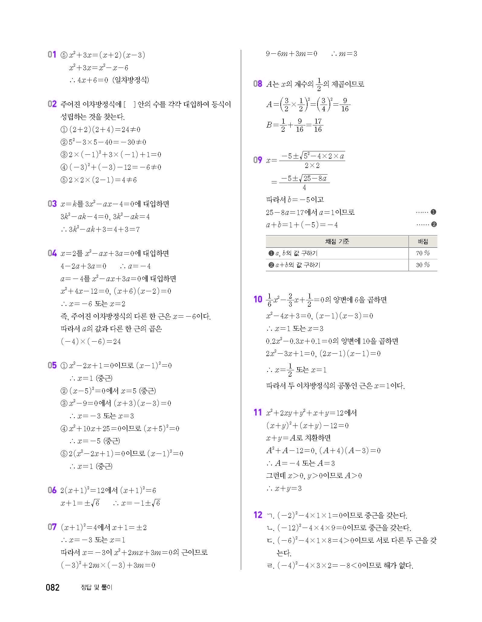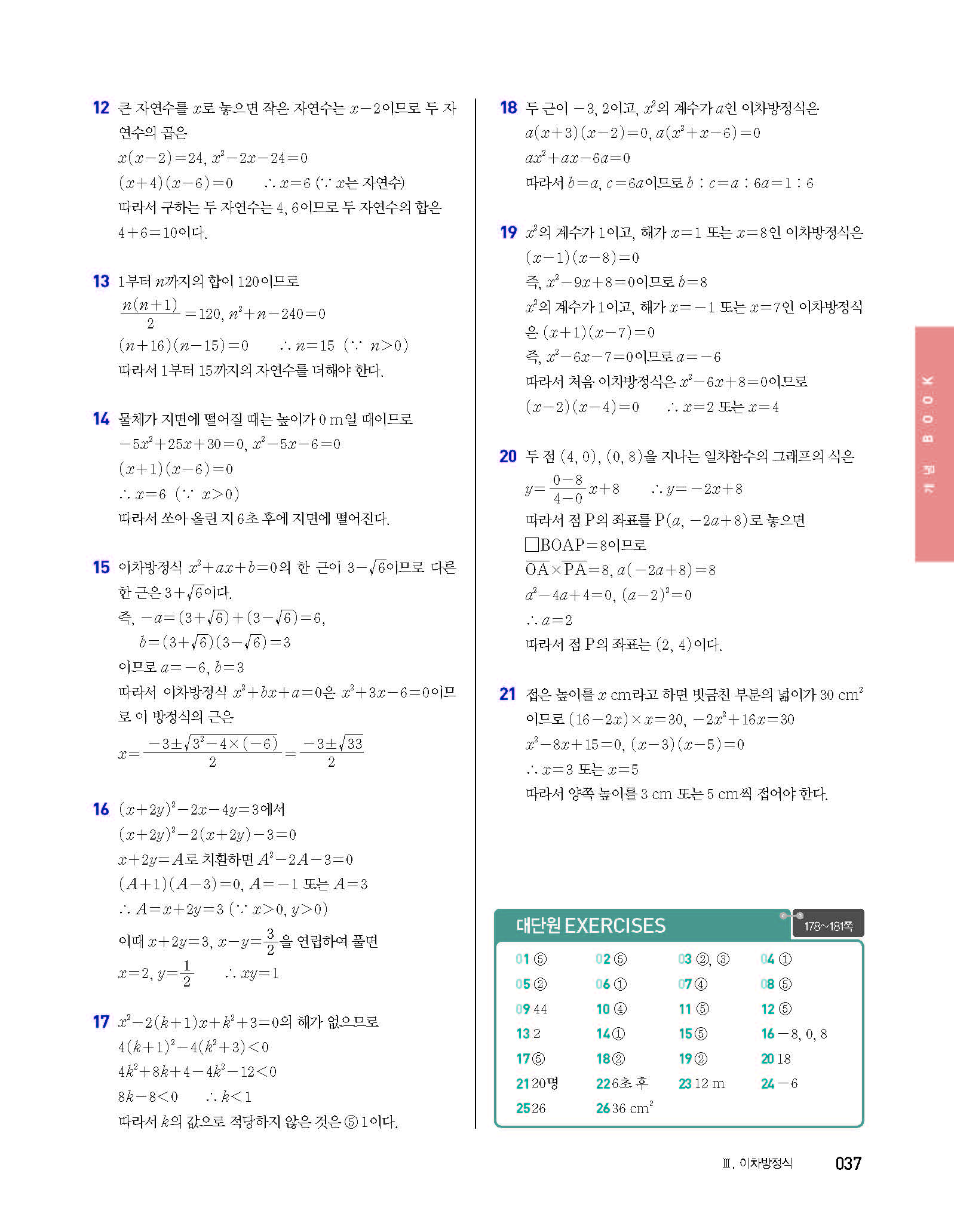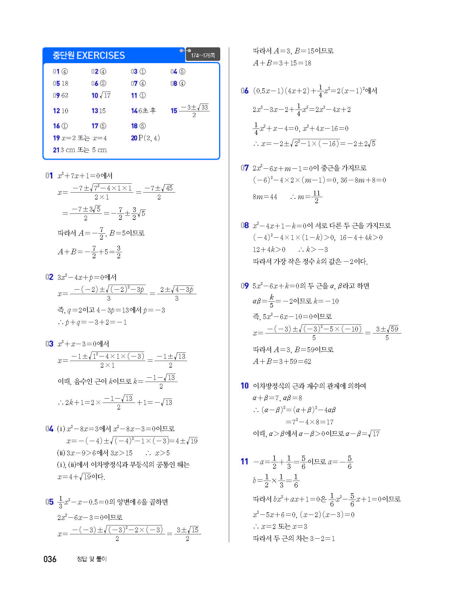 | 천재교육 이준열 중3 수학교과서 답지 | |