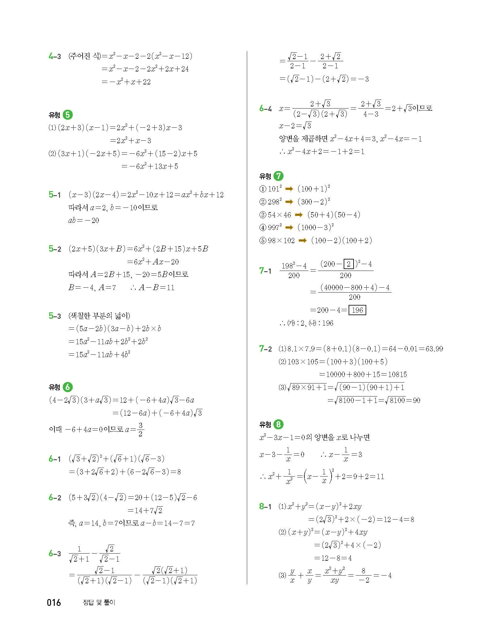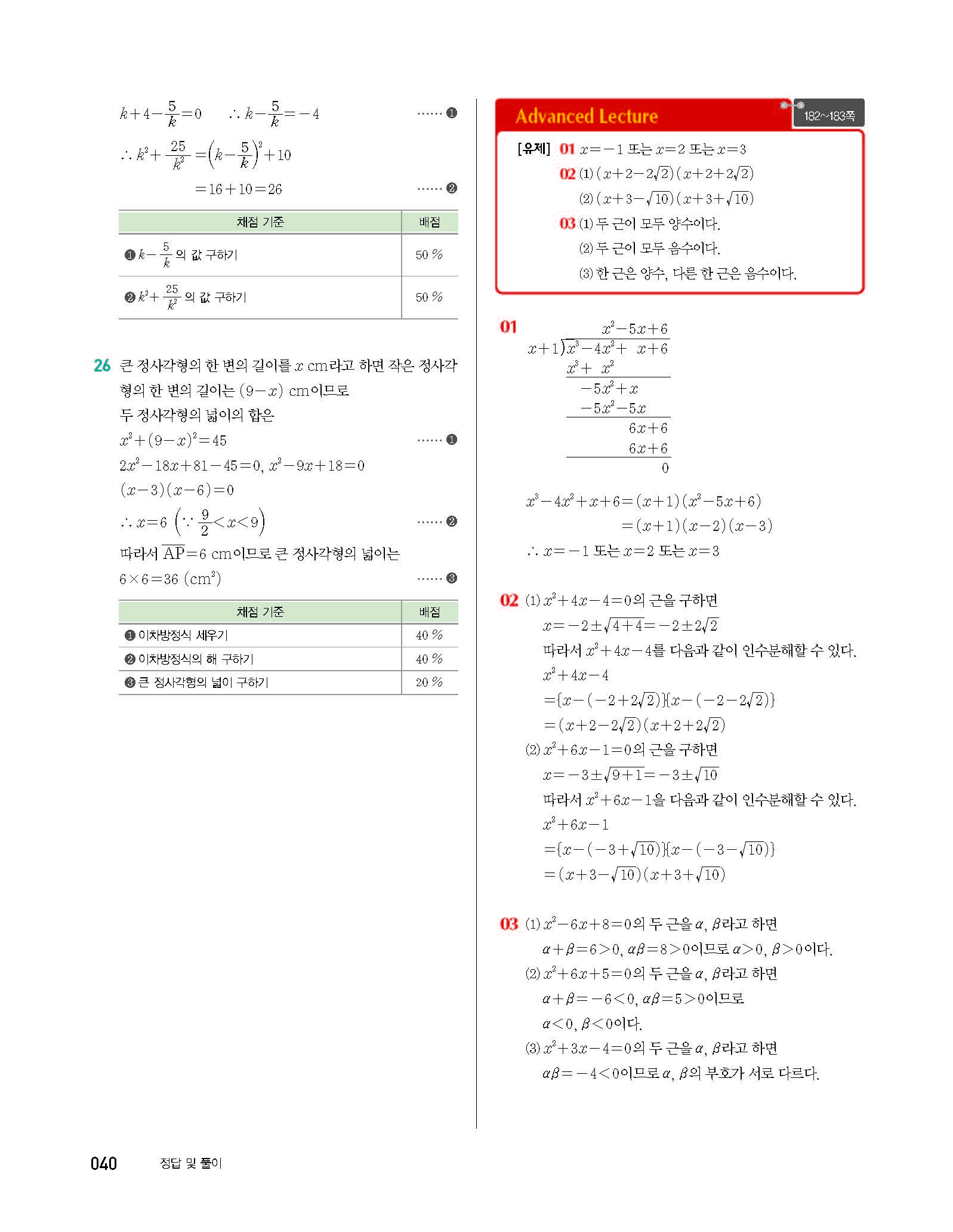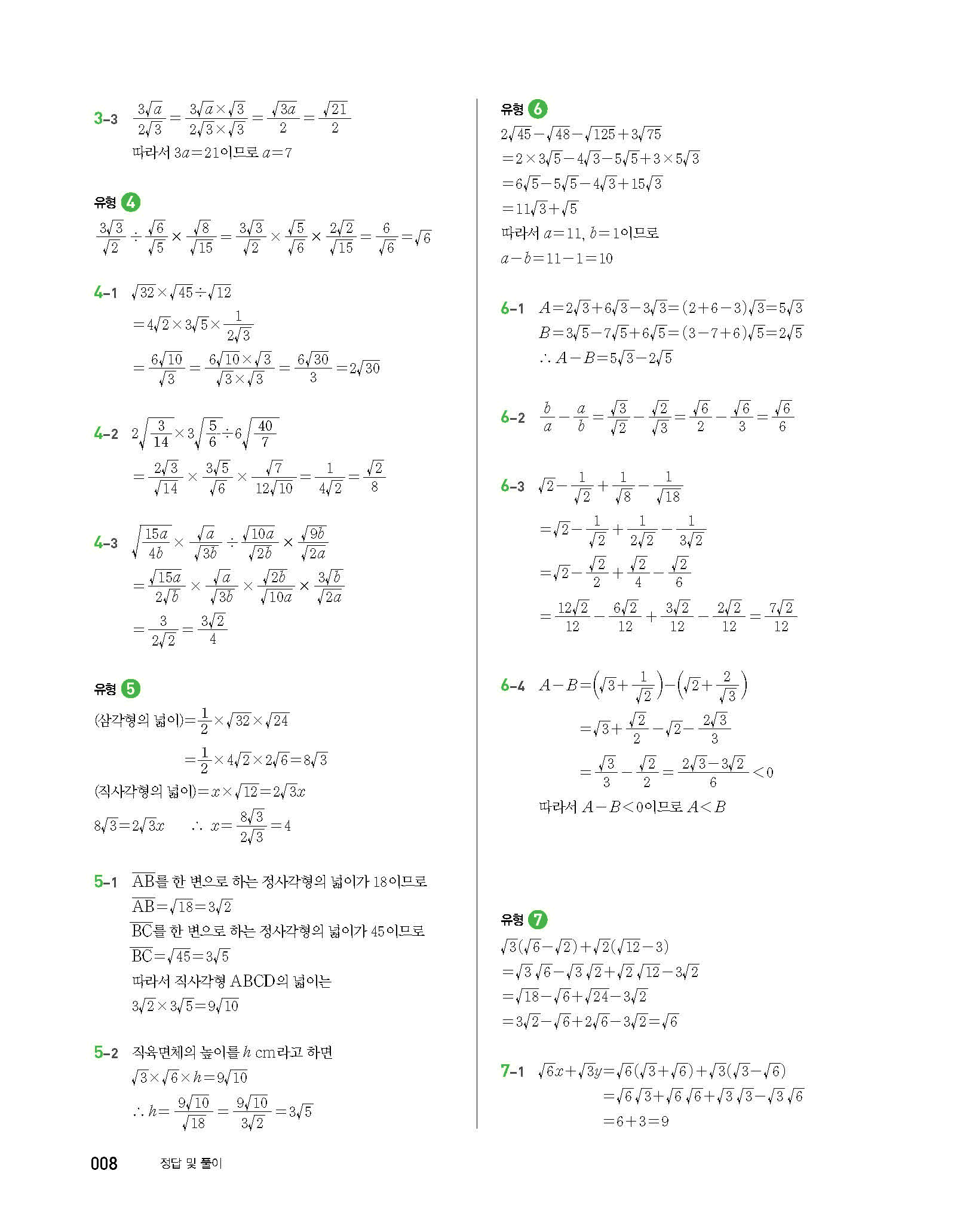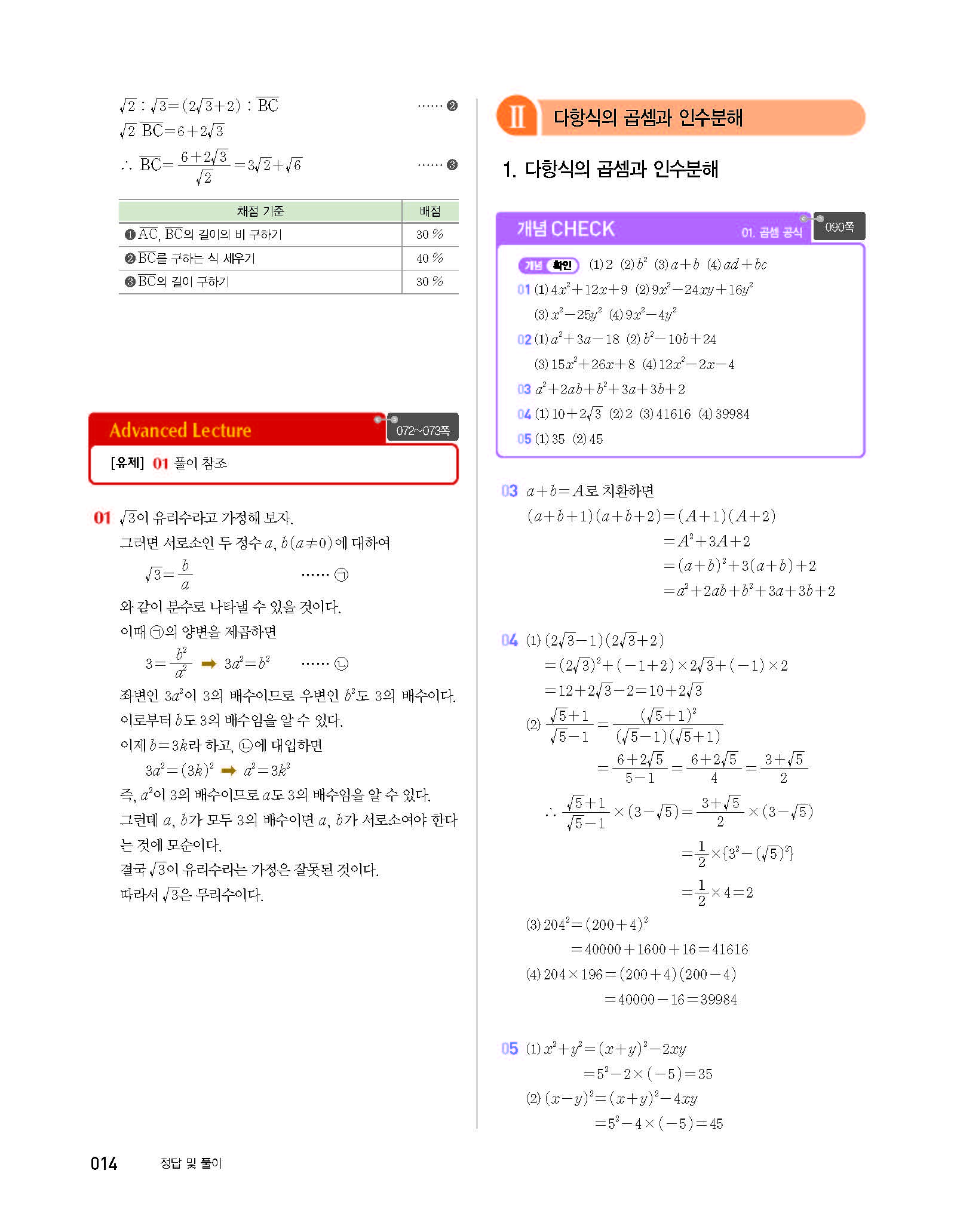 | 천재교육 이준열 중3 수학교과서 답지 | |