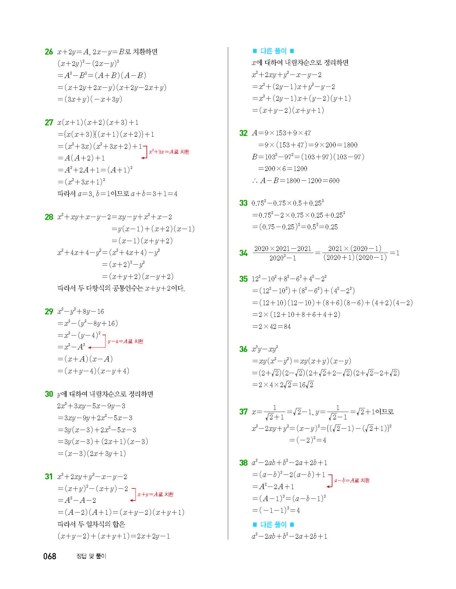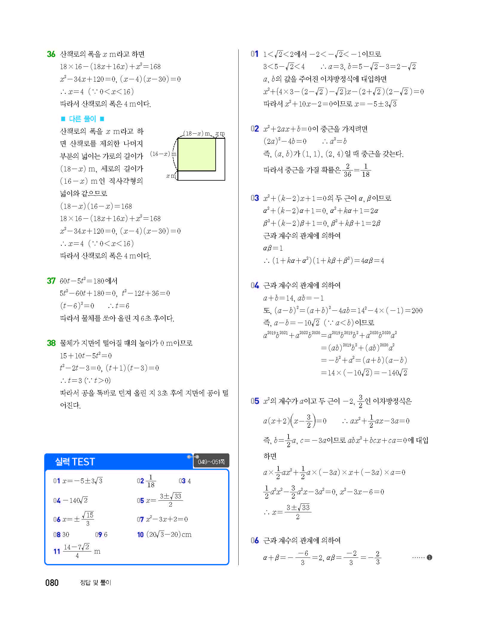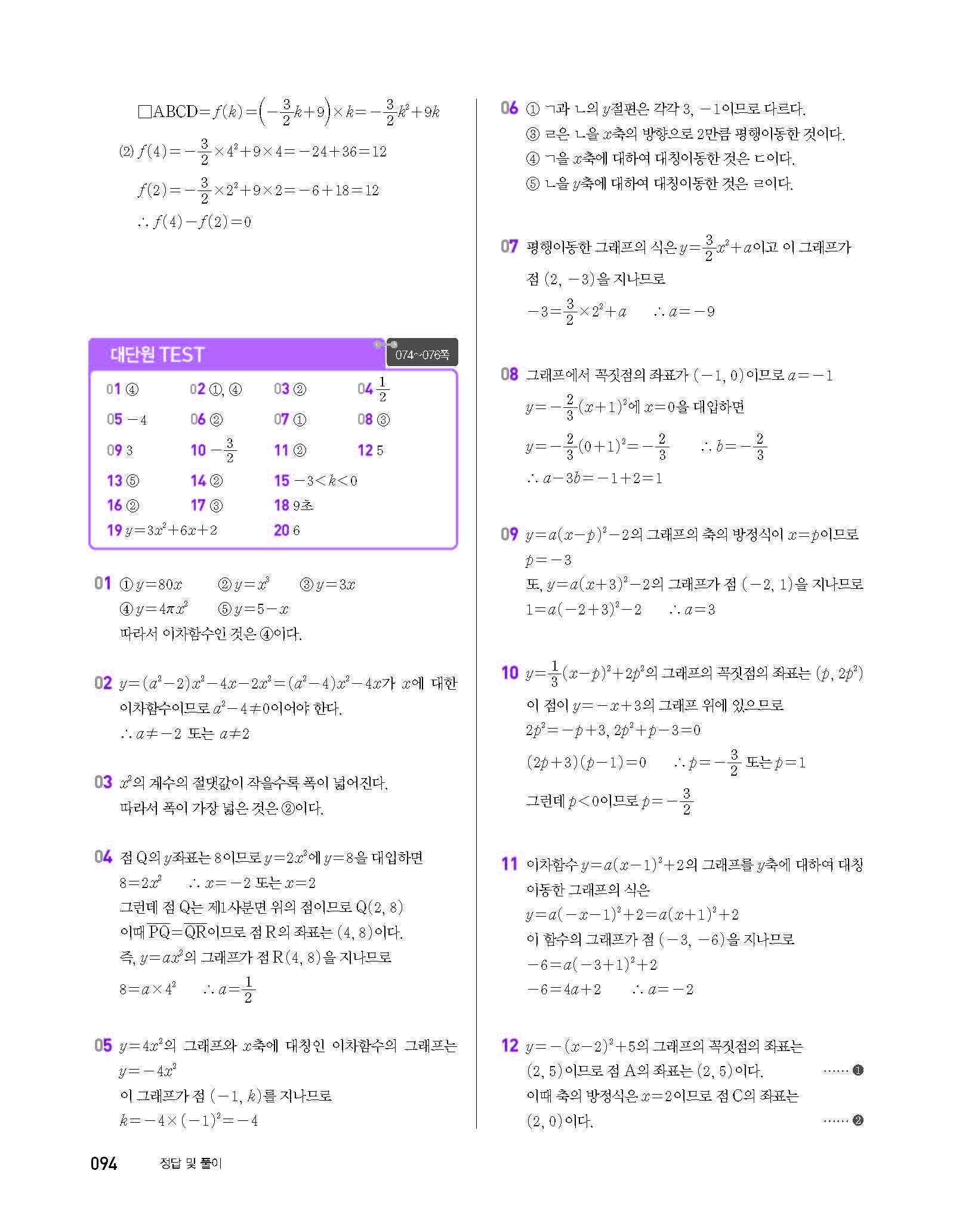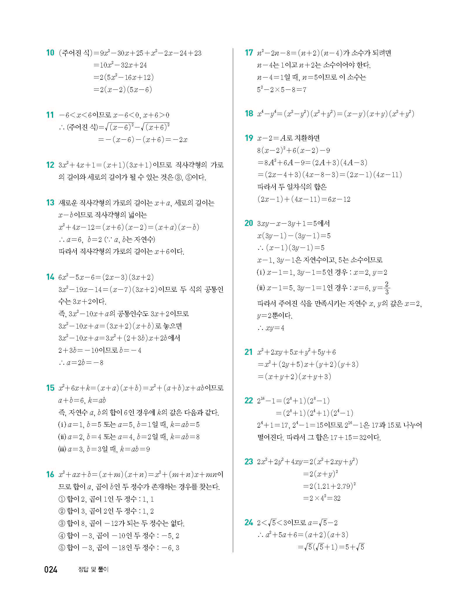 | 천재교육 이준열 중3 수학교과서 답지 | |