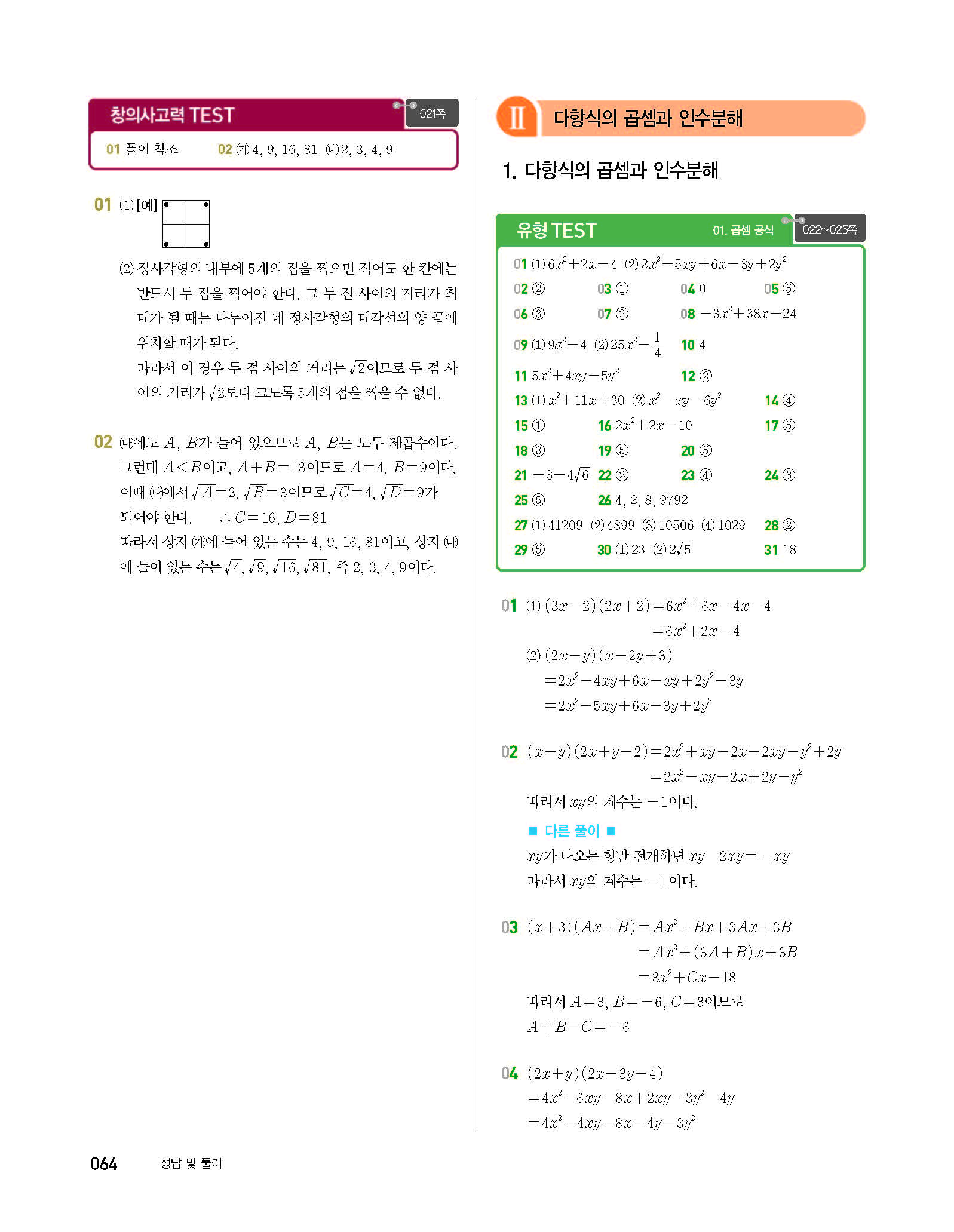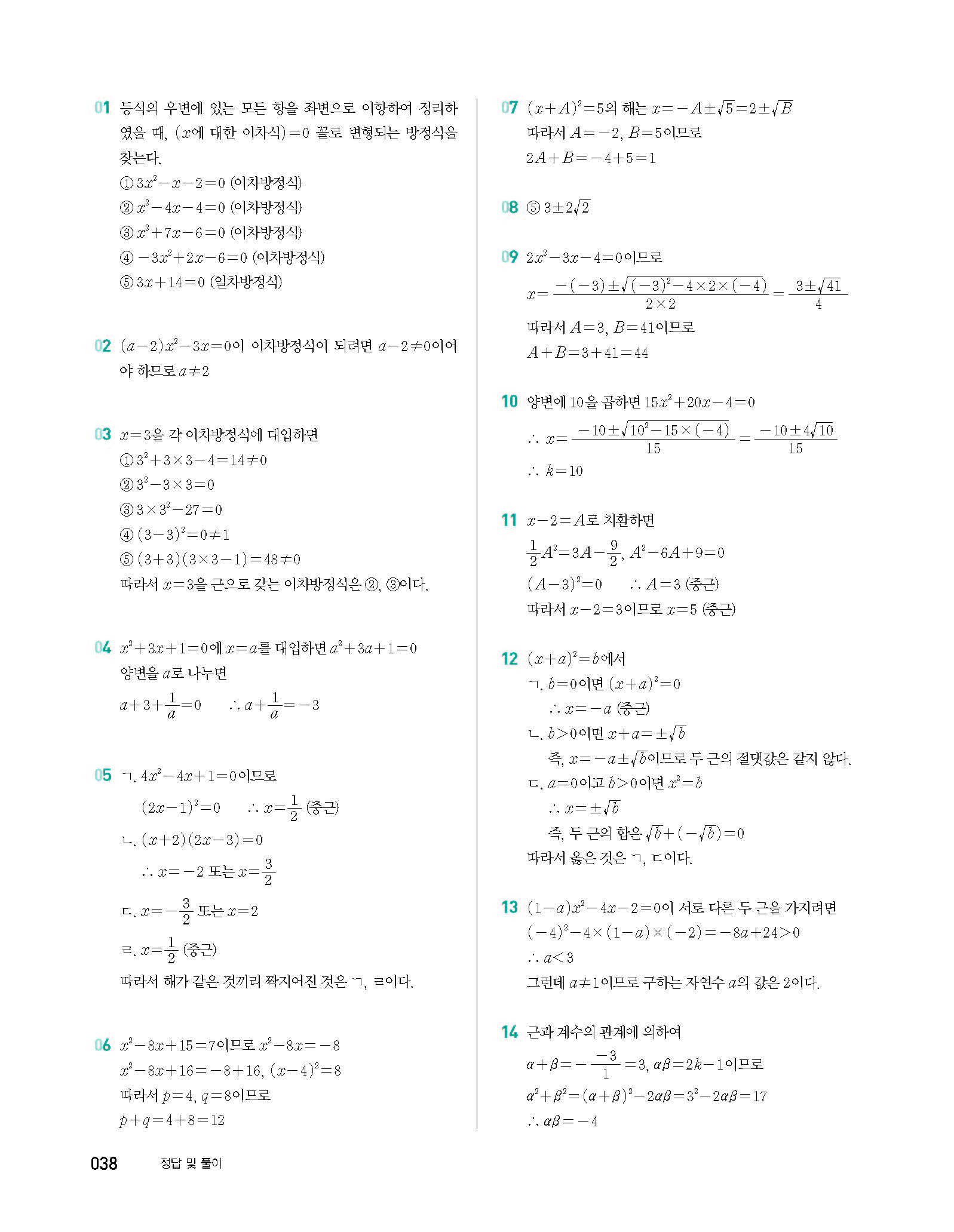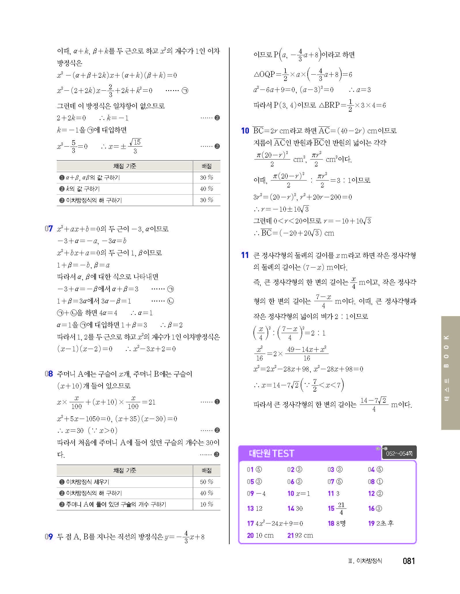 | 교학사 고호경 중3 수학교과서 답지 | |