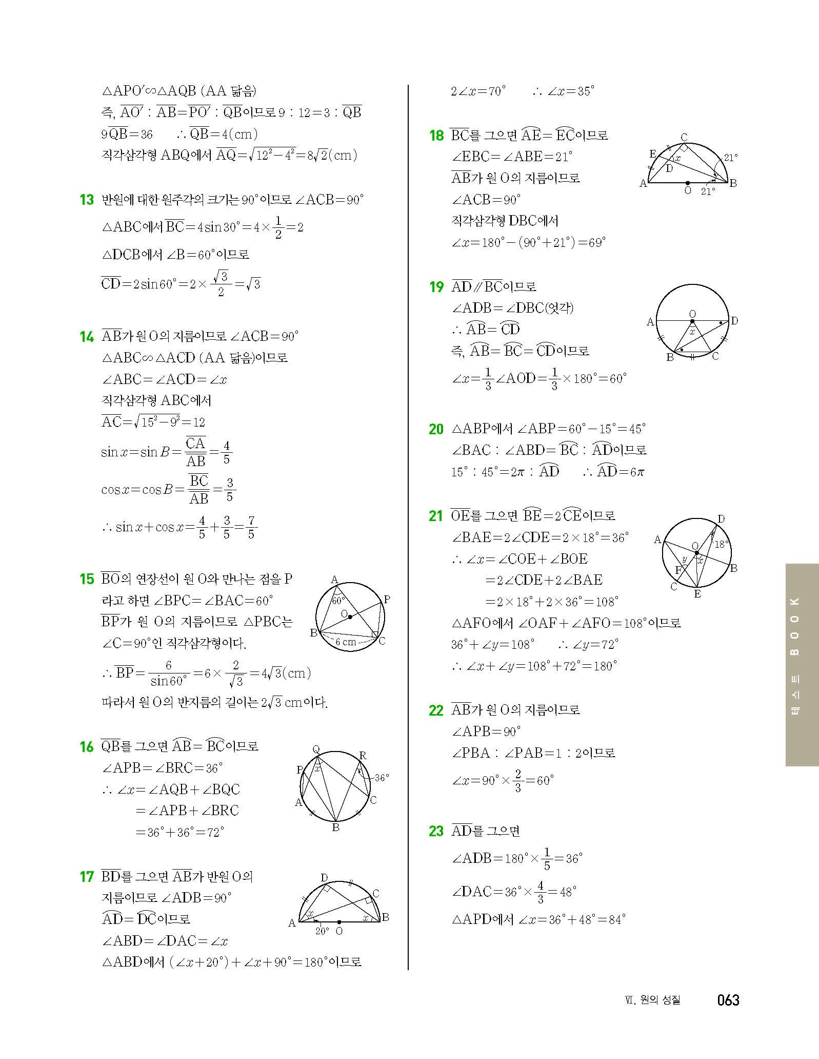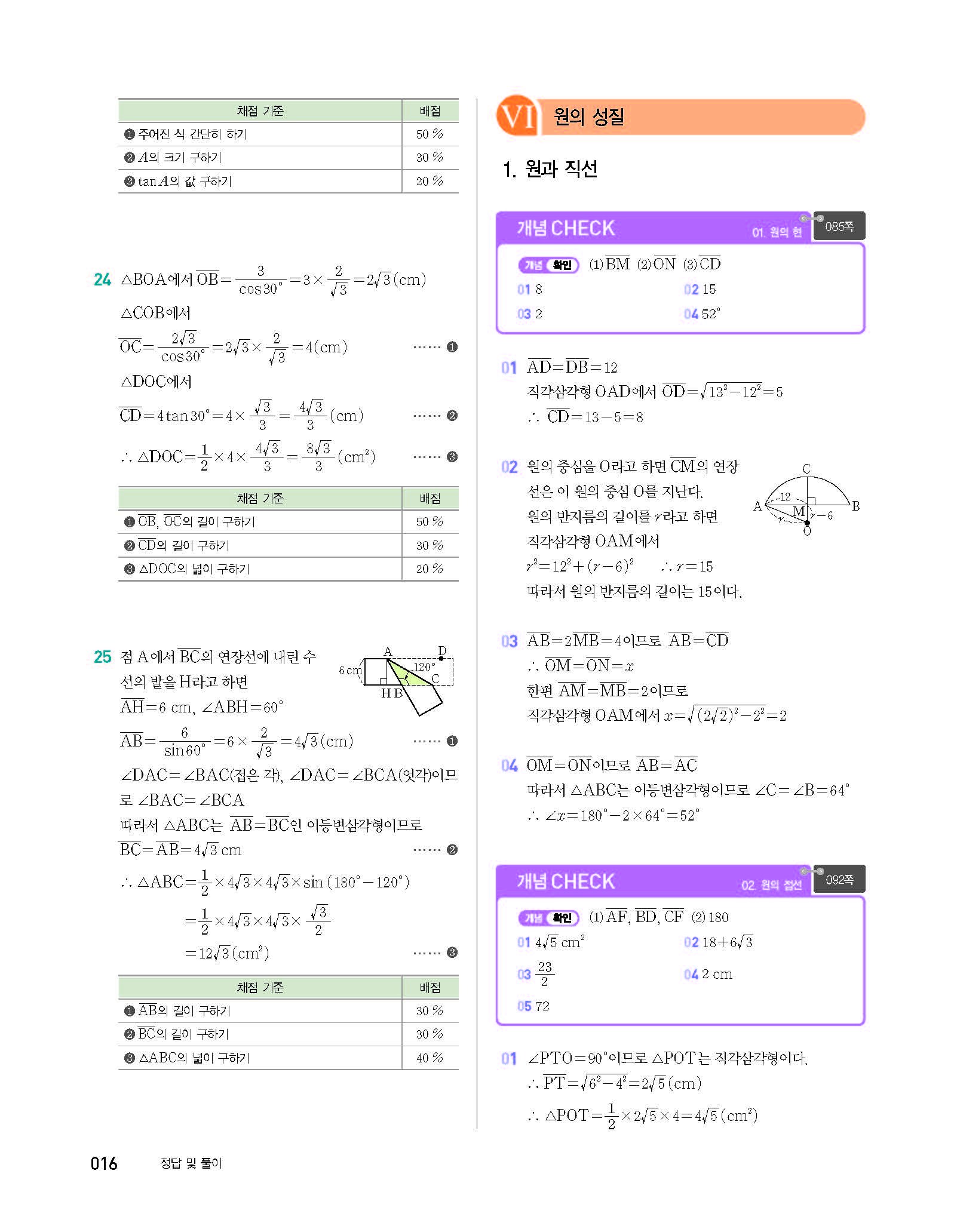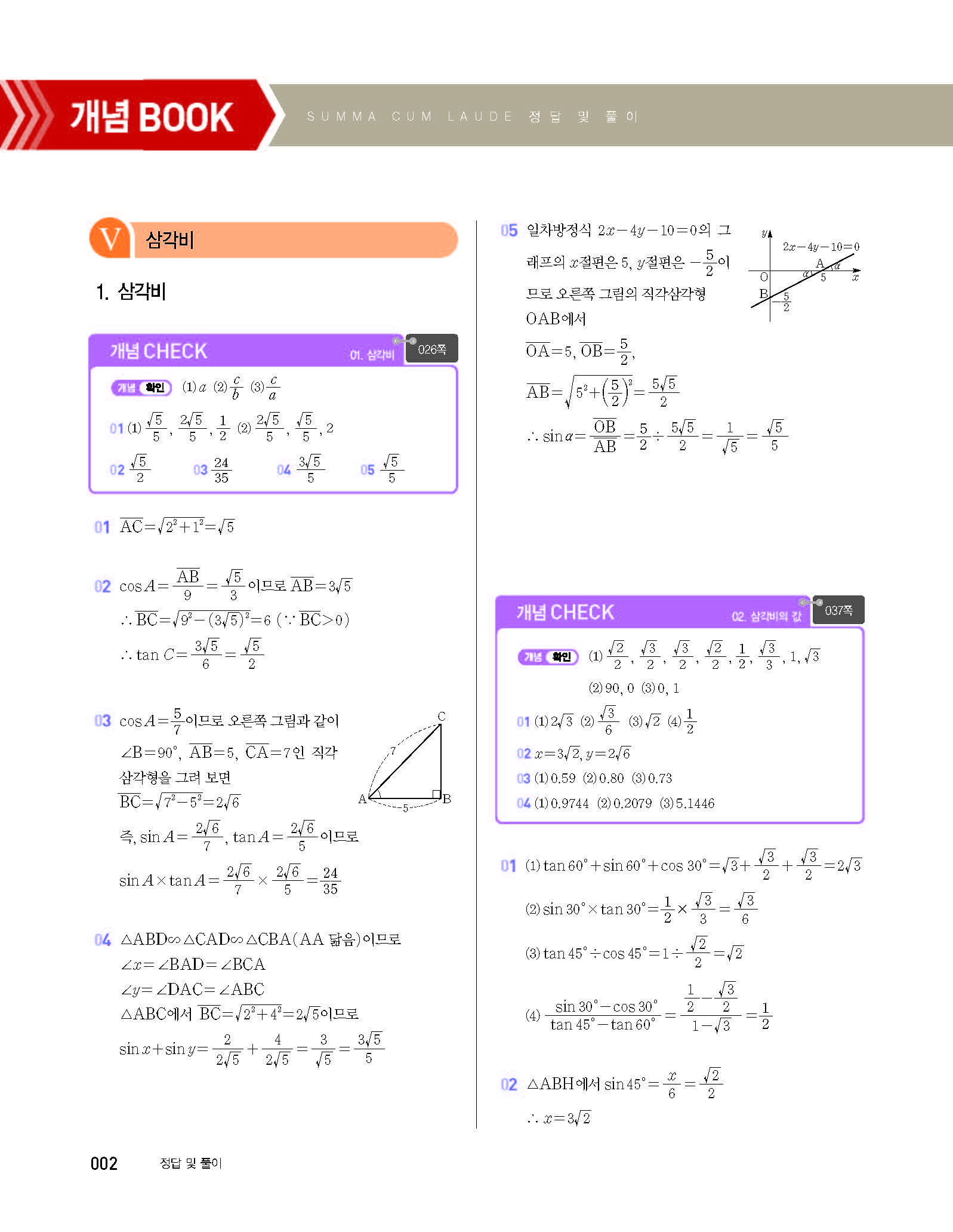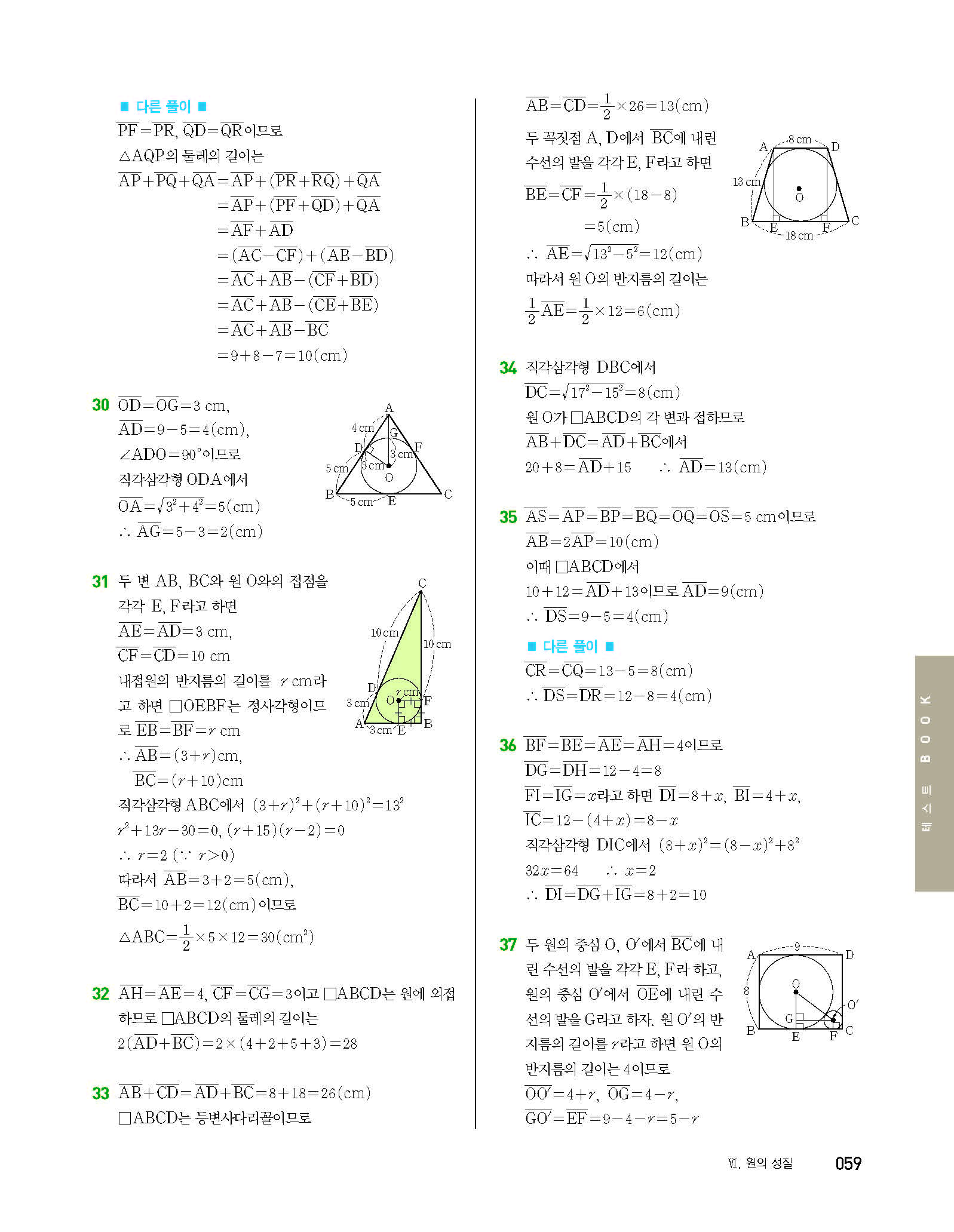 숨마쿰라우데 중학수학 개념기본서 중3하 3-2 사진답지 빠른답지 모바일최적화