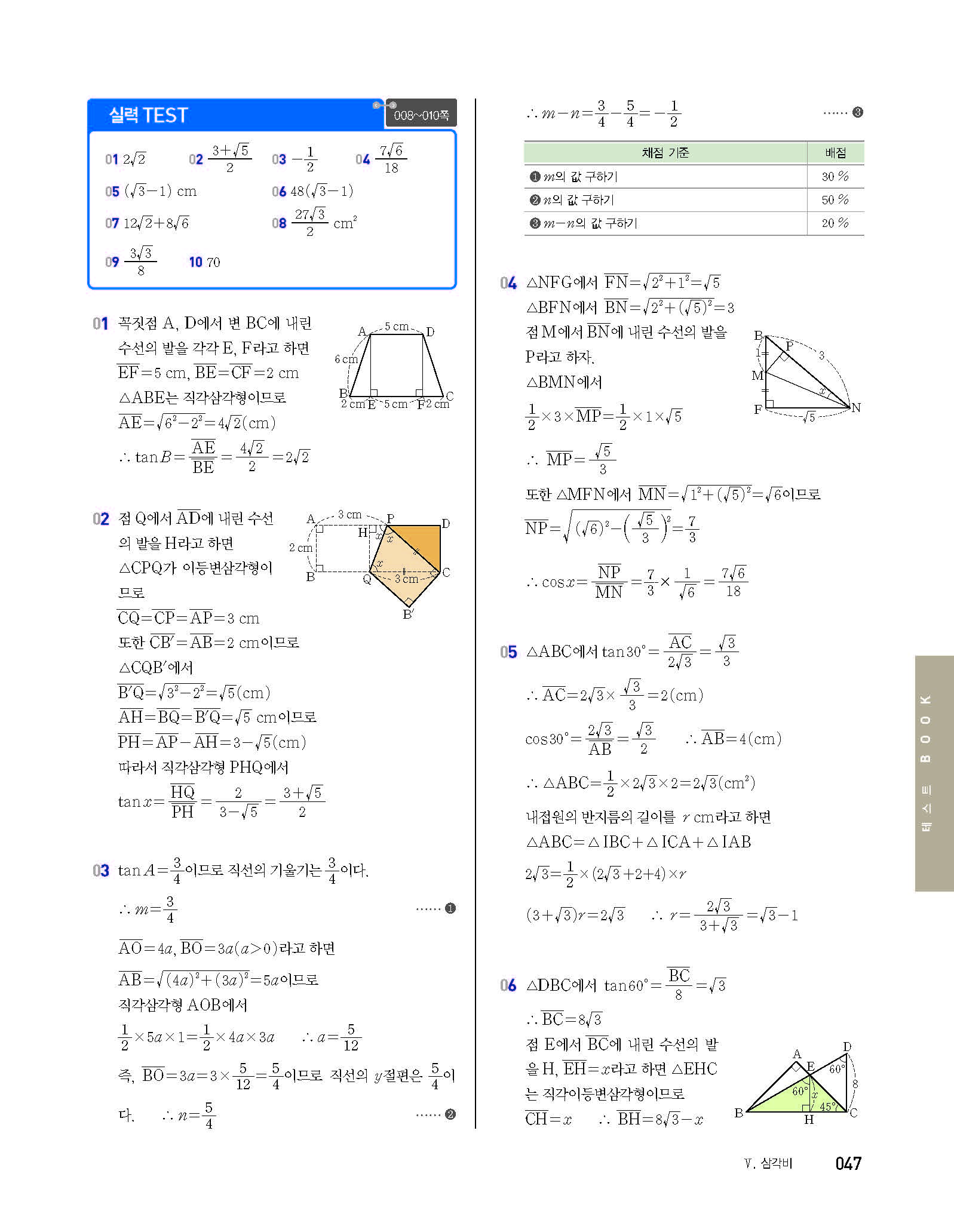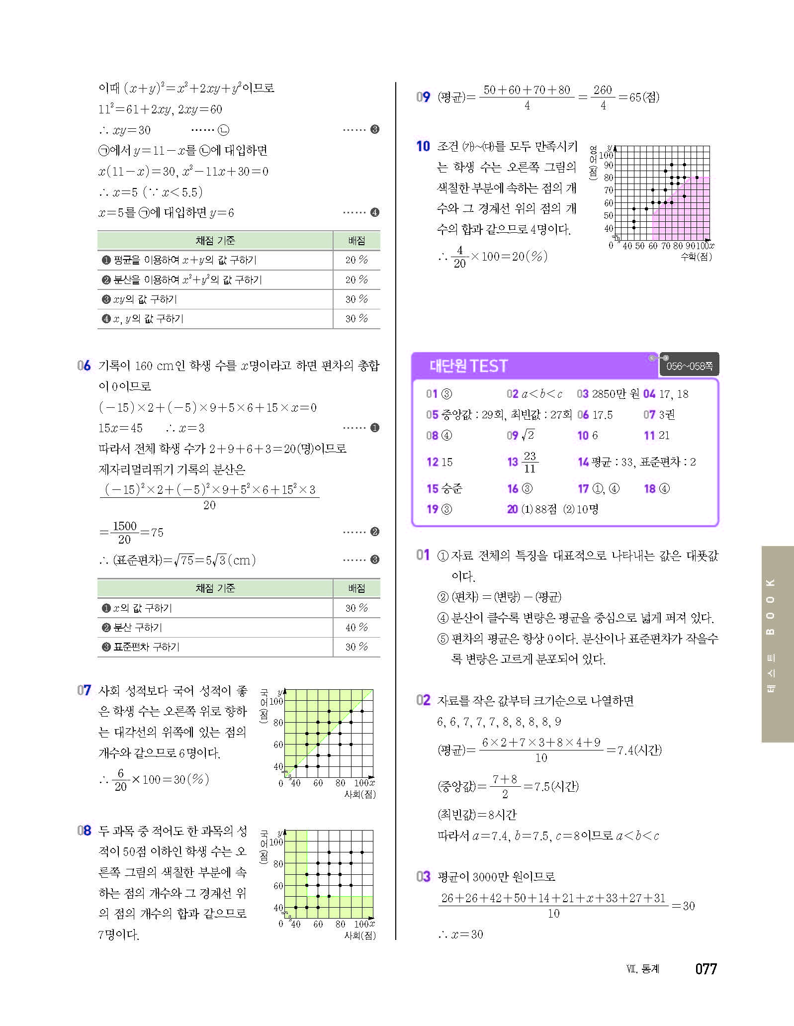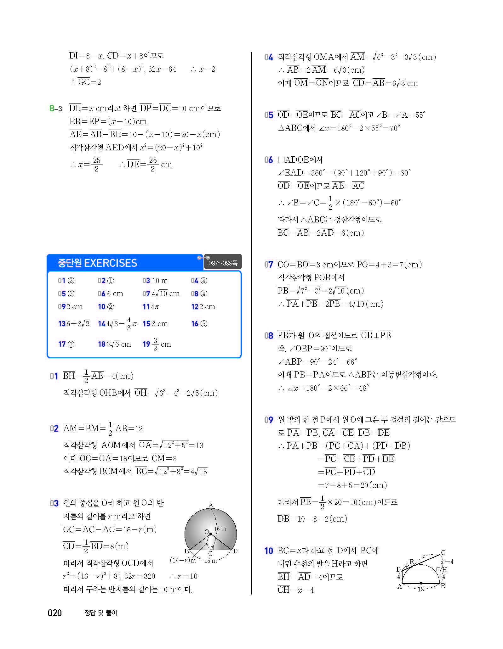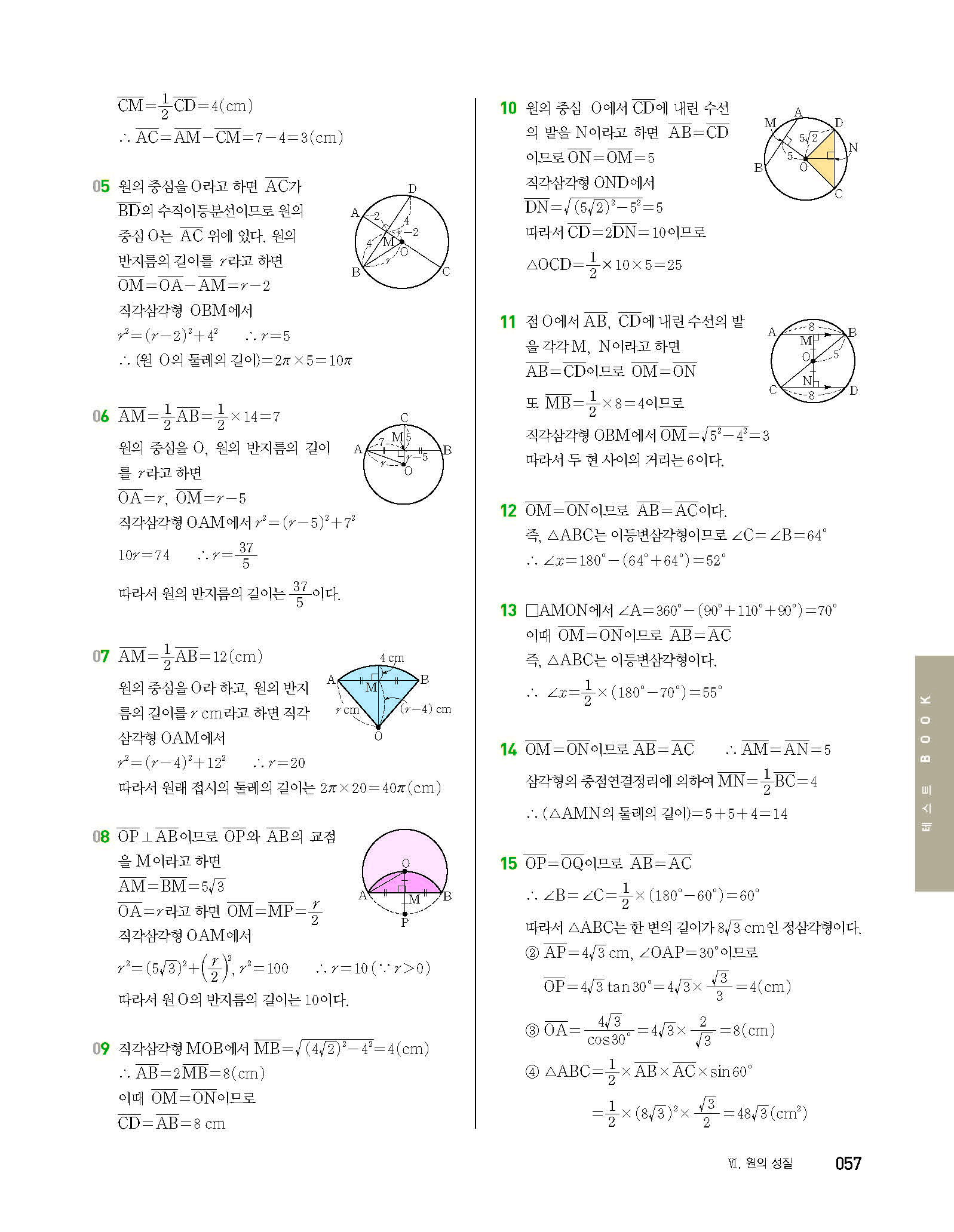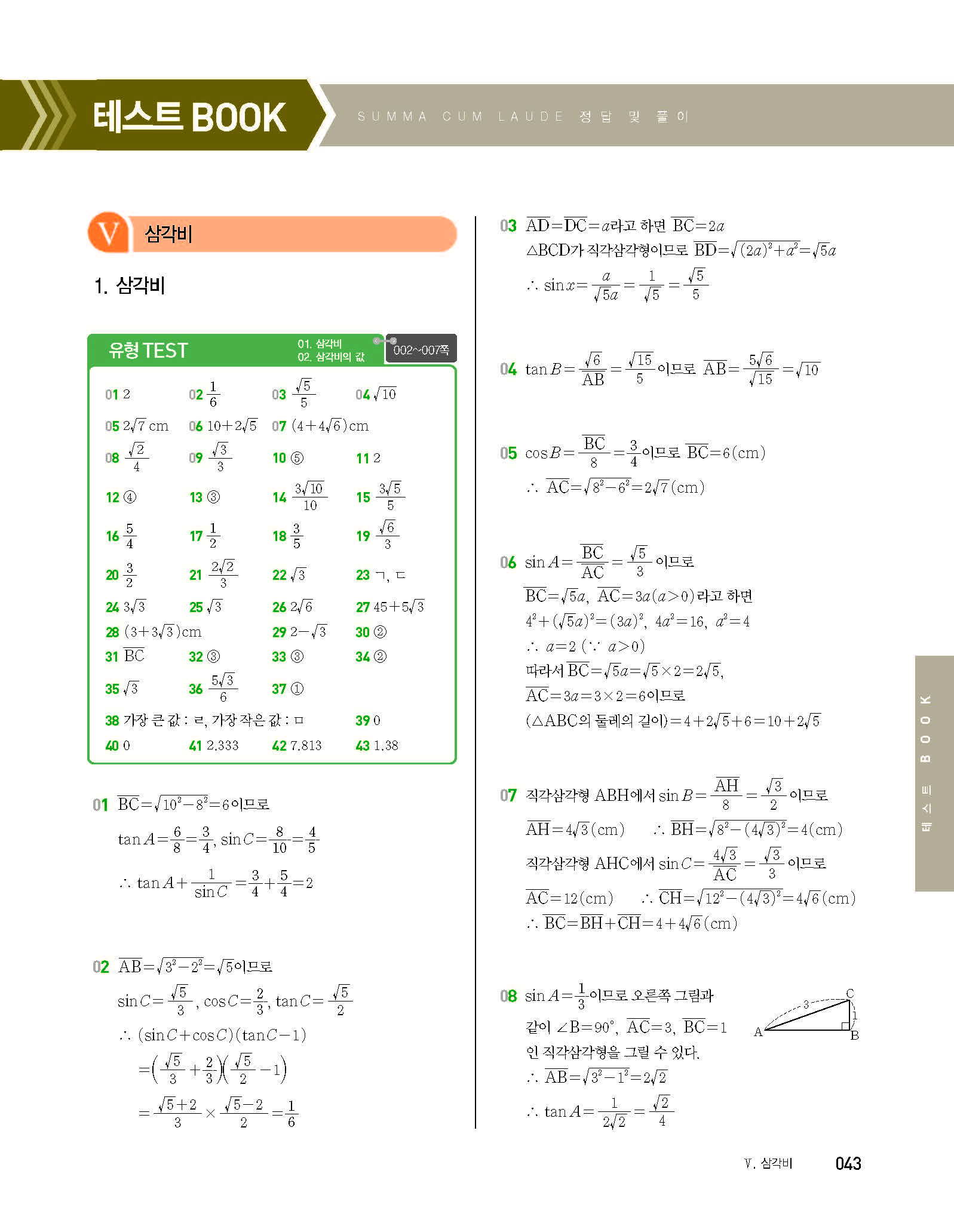 숨마쿰라우데 중학수학 개념기본서 중3하 3-2 사진답지 빠른답지 모바일최적화