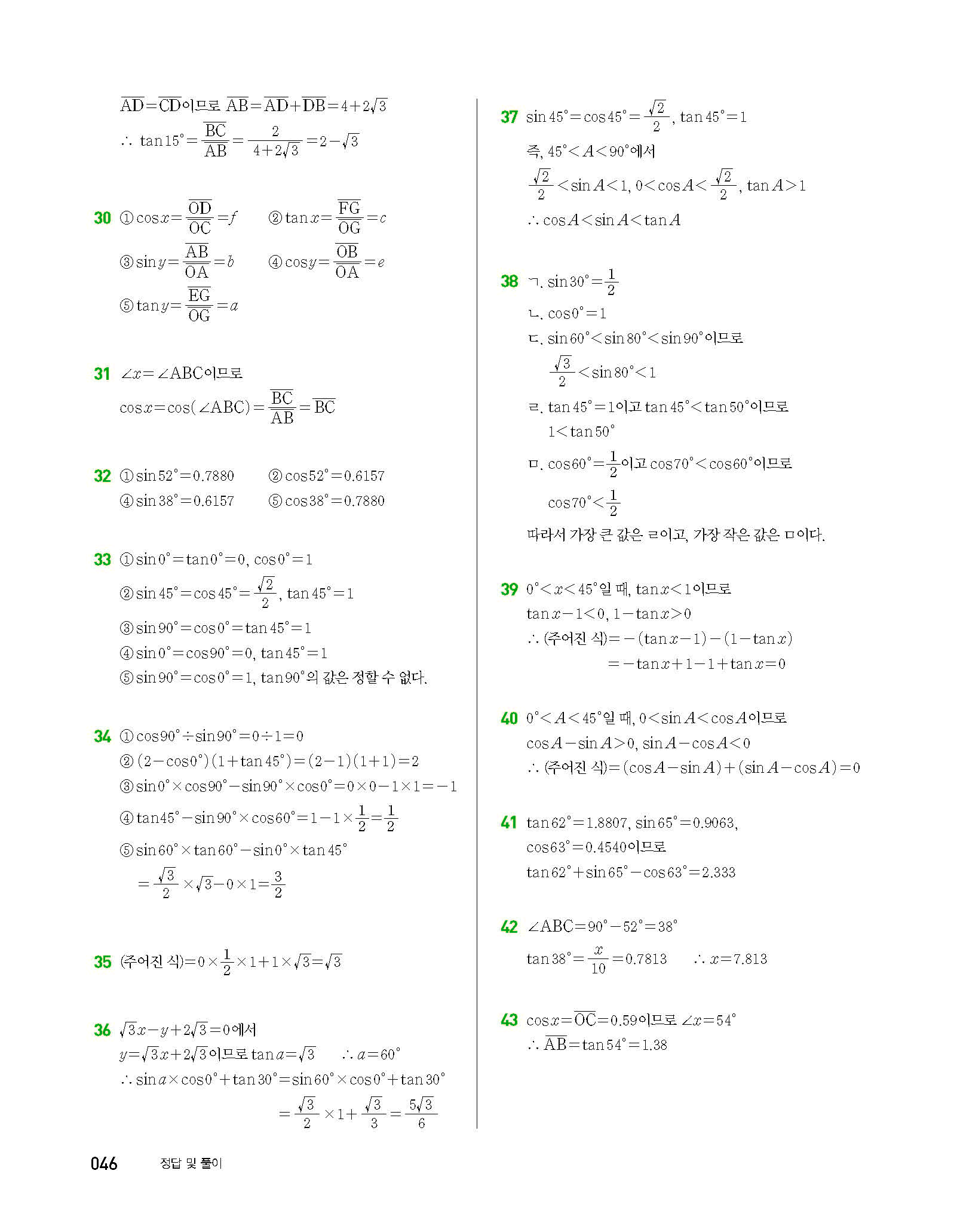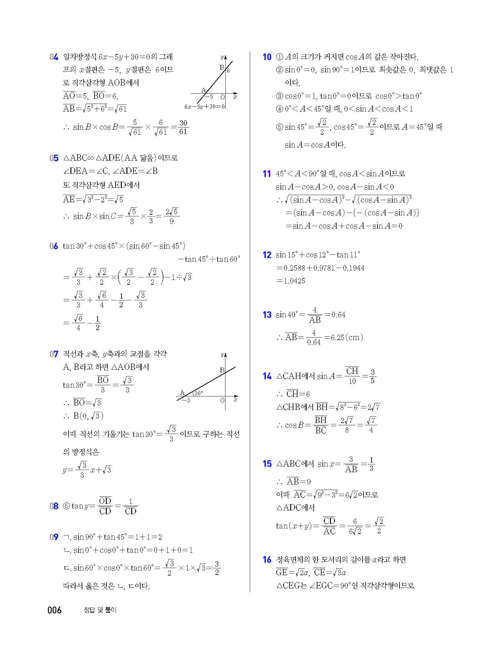 | 교학사 고호경 중3 수학교과서 답지 | |