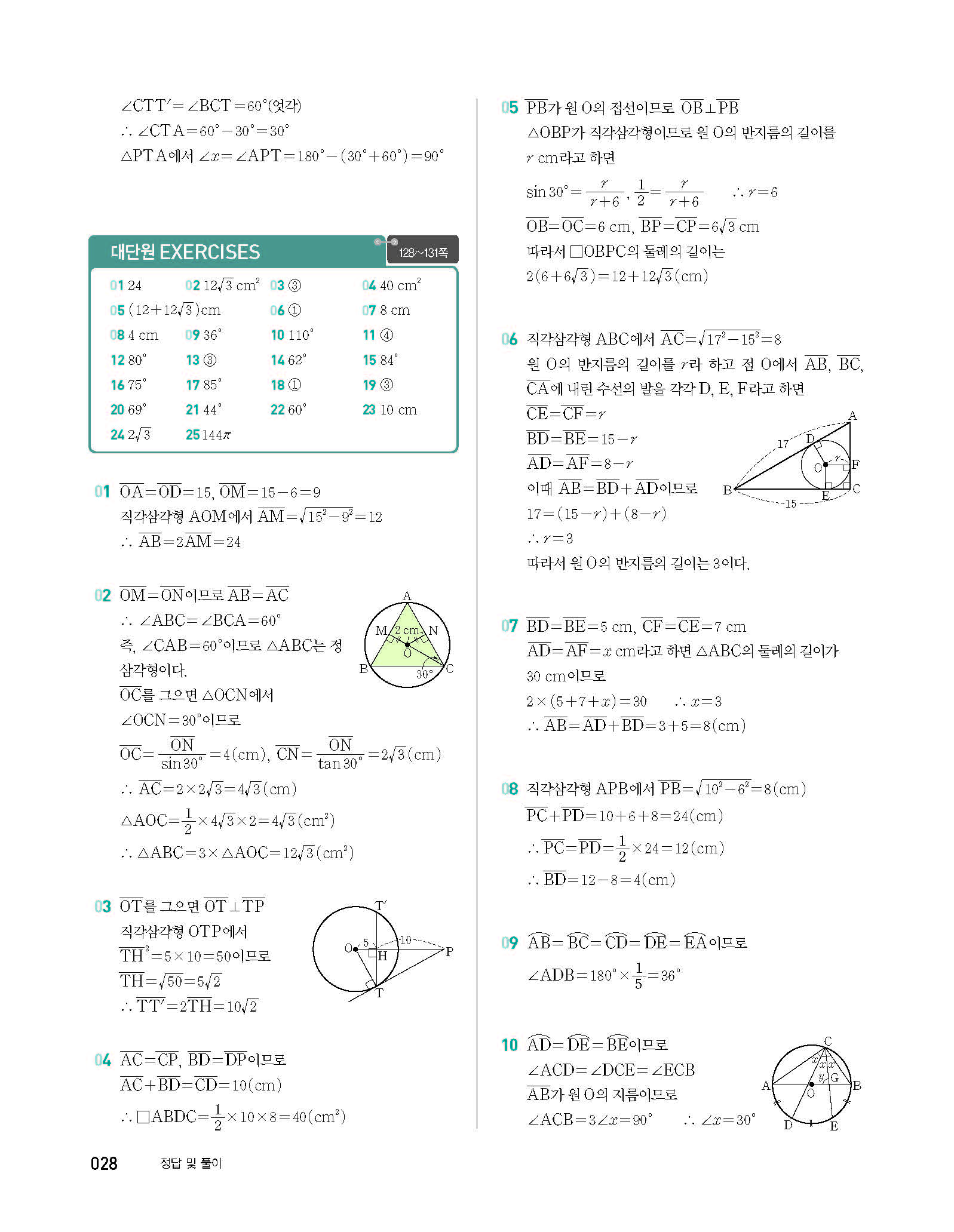 | 천재교육 류희찬 중3 수학교과서 답지 | |