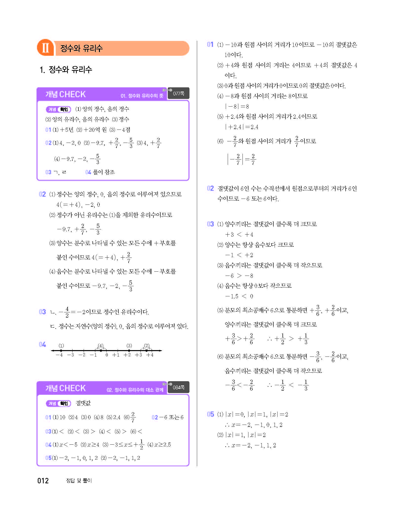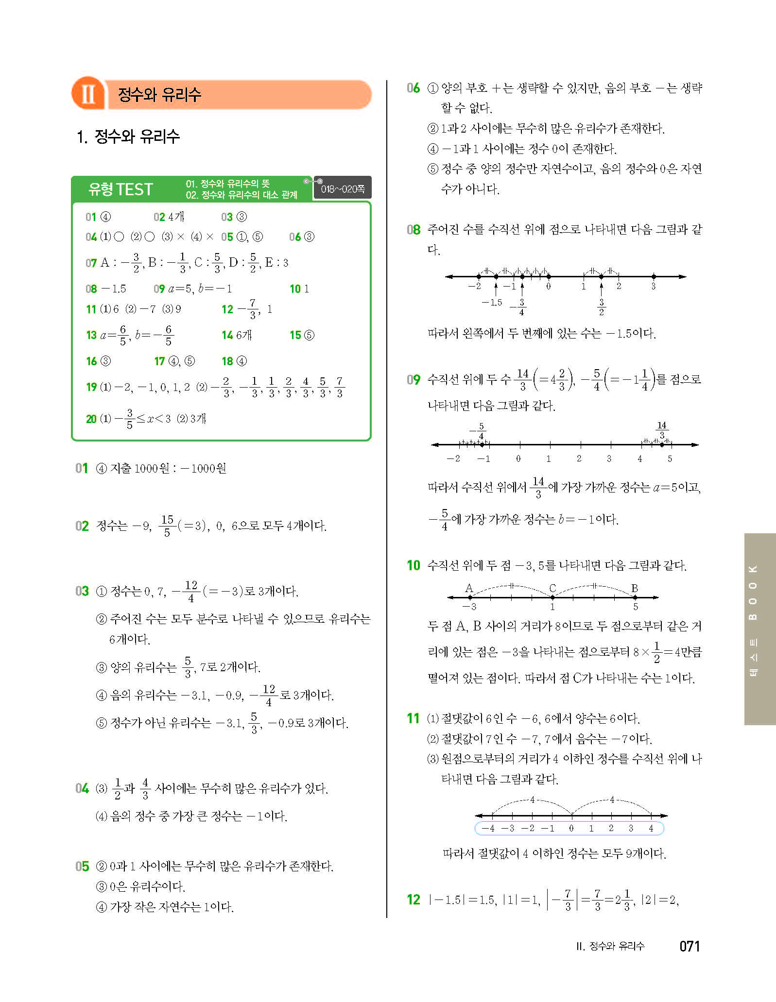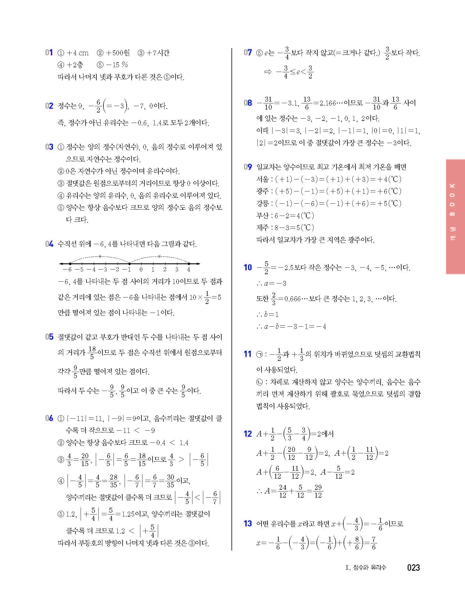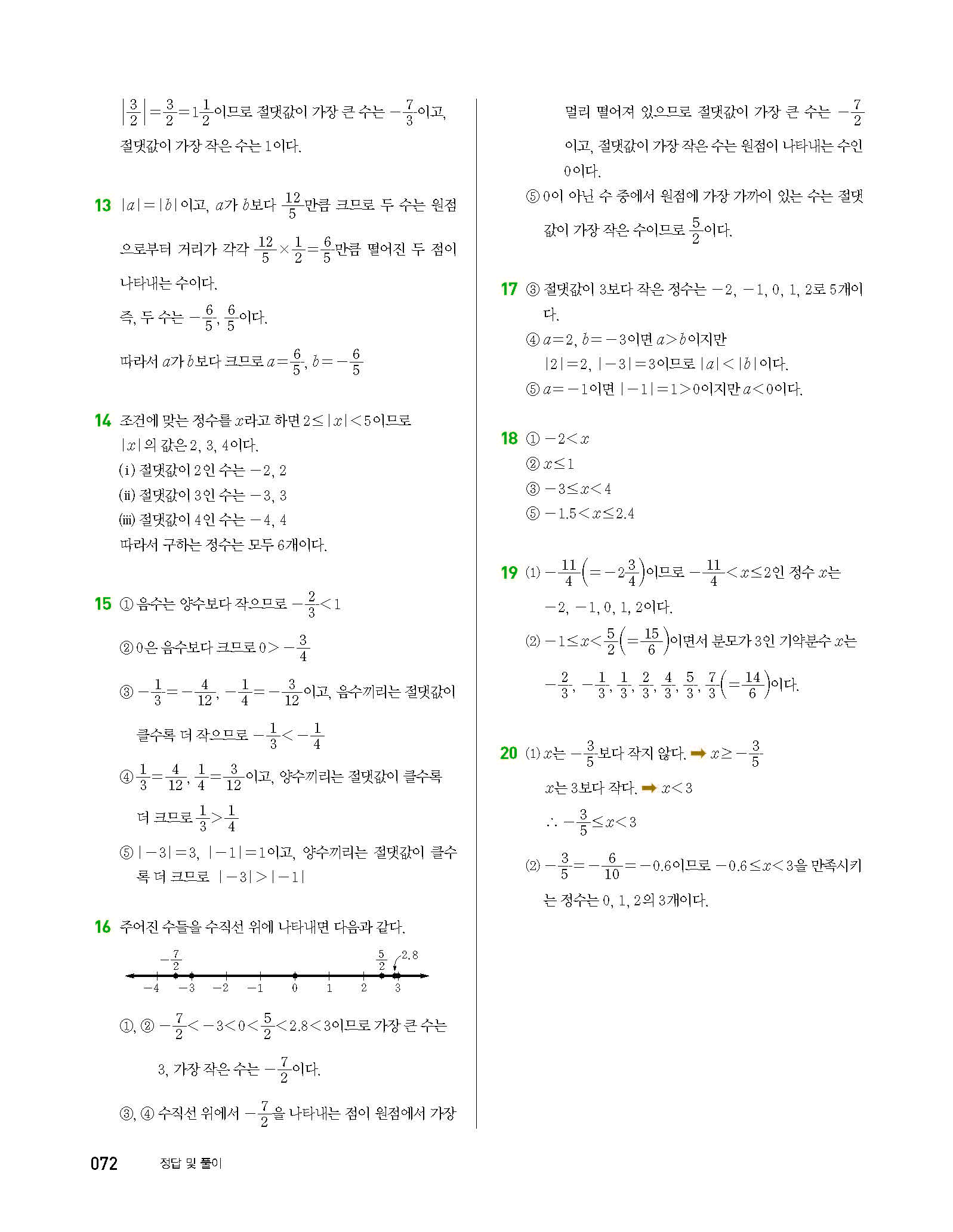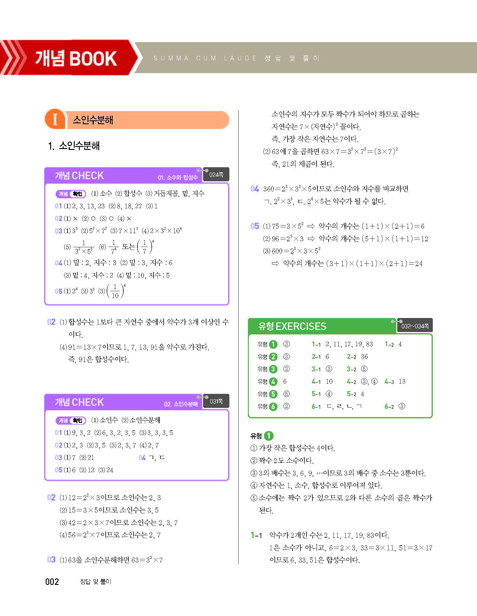 숨마쿰라우데 중학수학 개념기본서 중1상 1-1 사진답지 빠른답지 모바일최적화