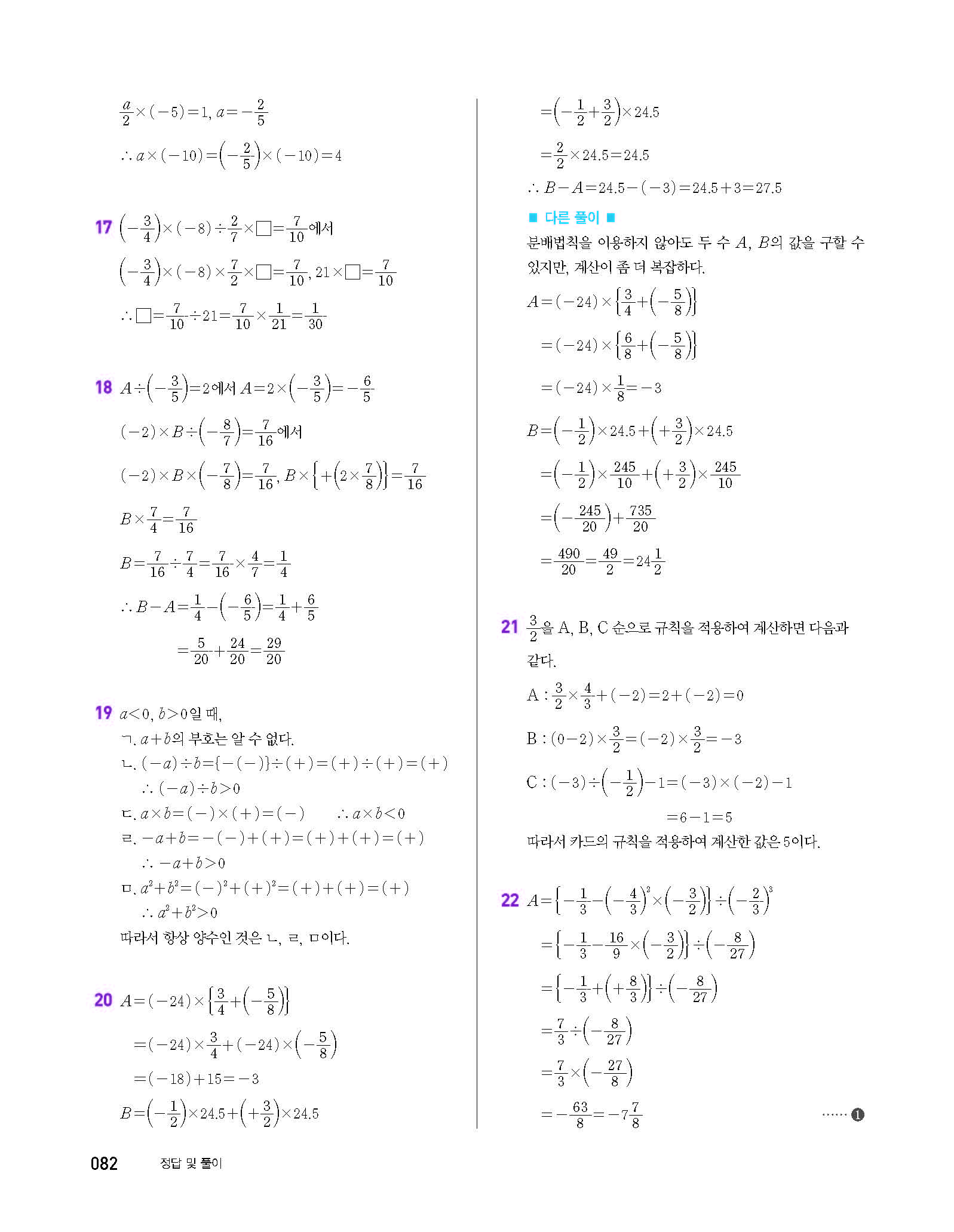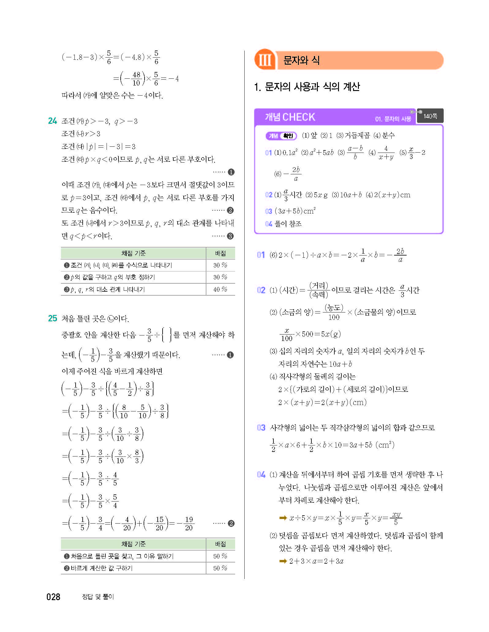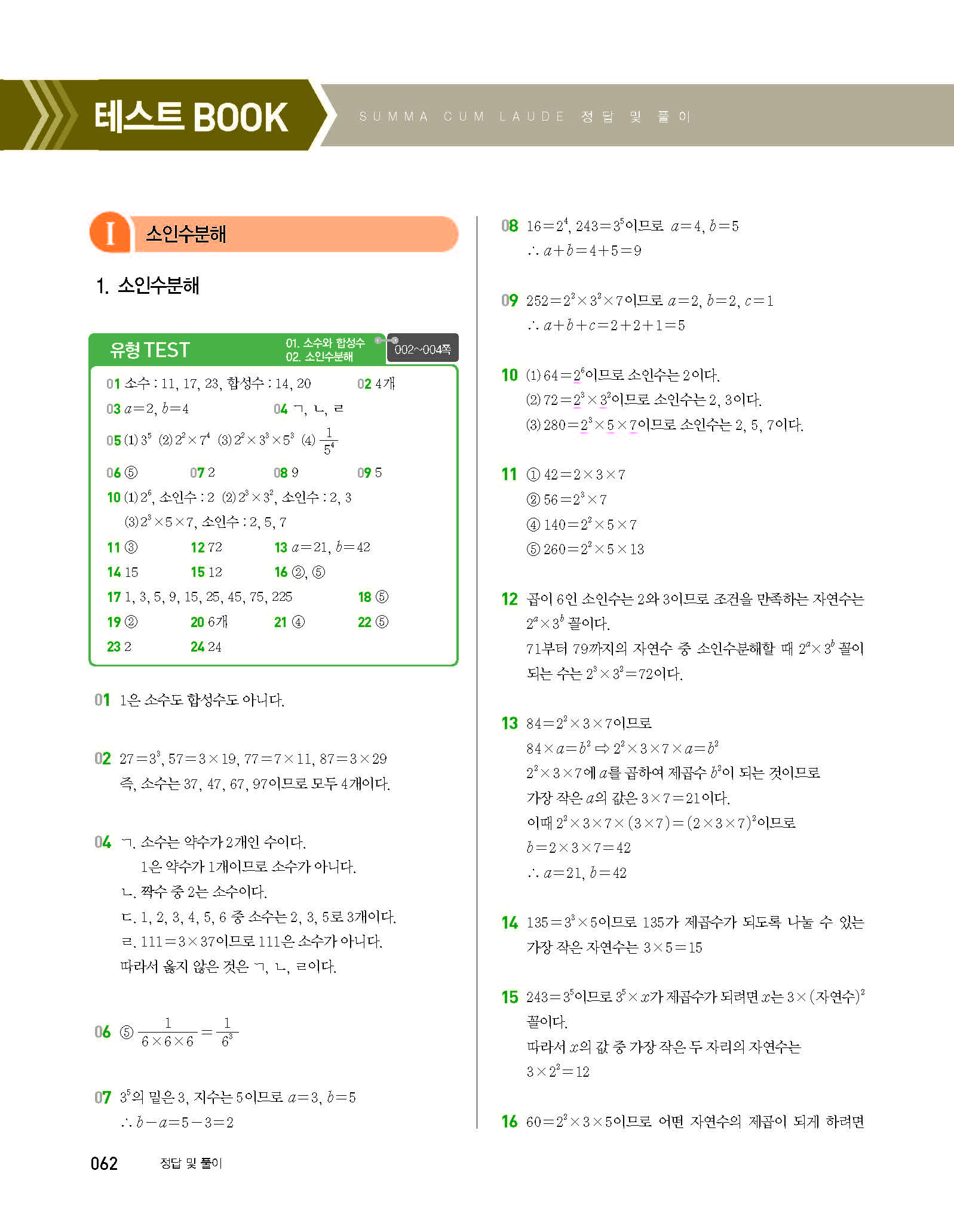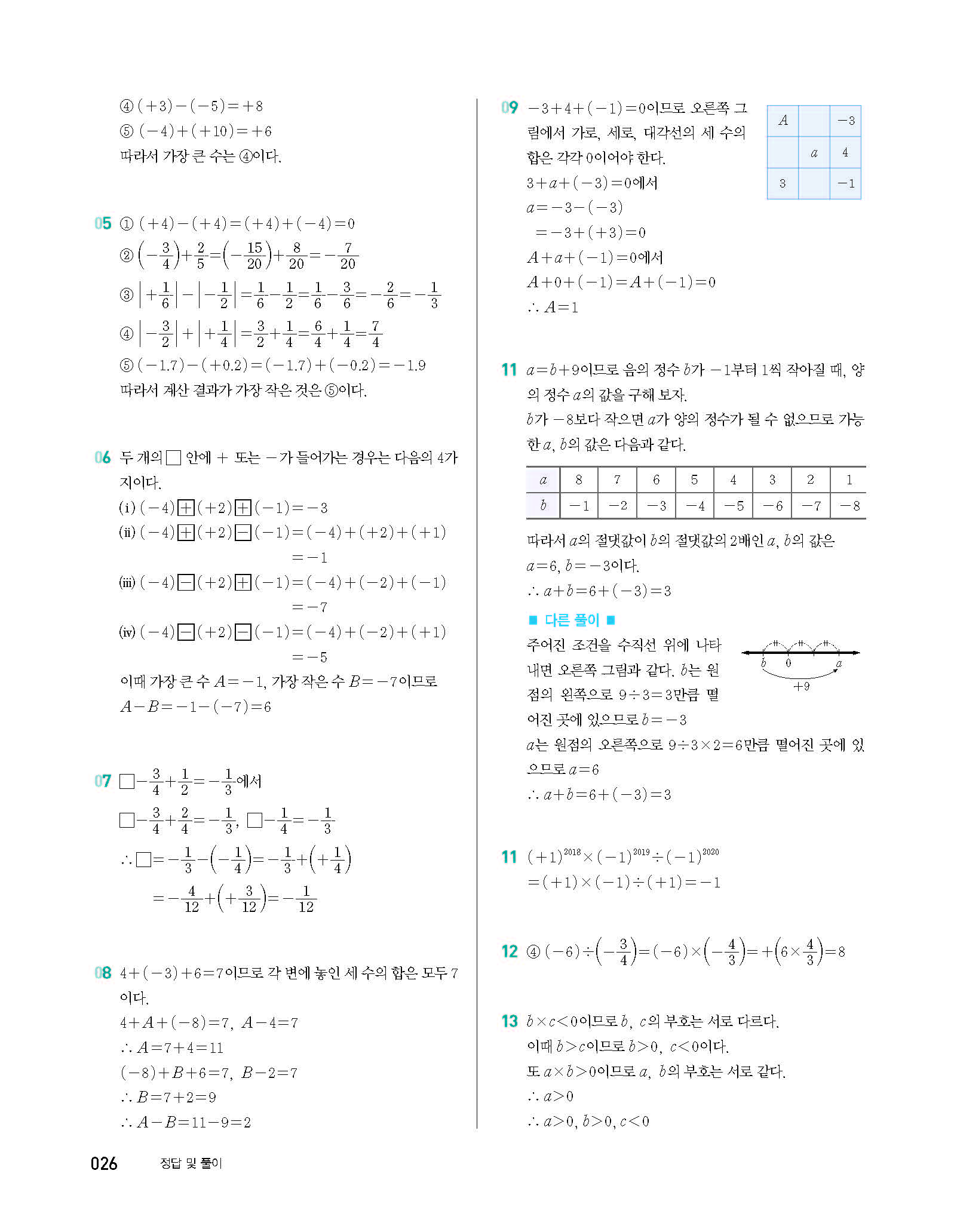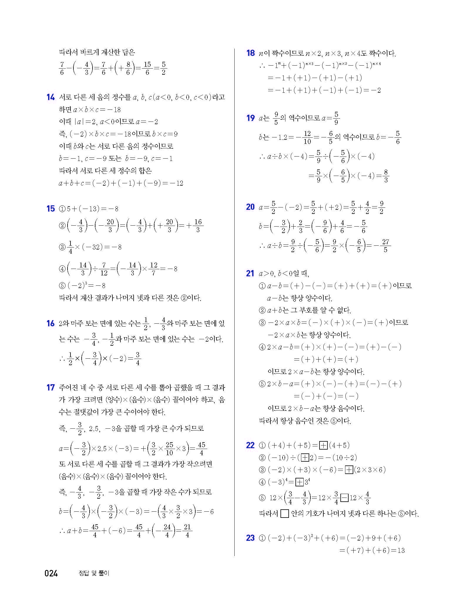 숨마쿰라우데 중학수학 개념기본서 중1상 1-1 사진답지 빠른답지 모바일최적화