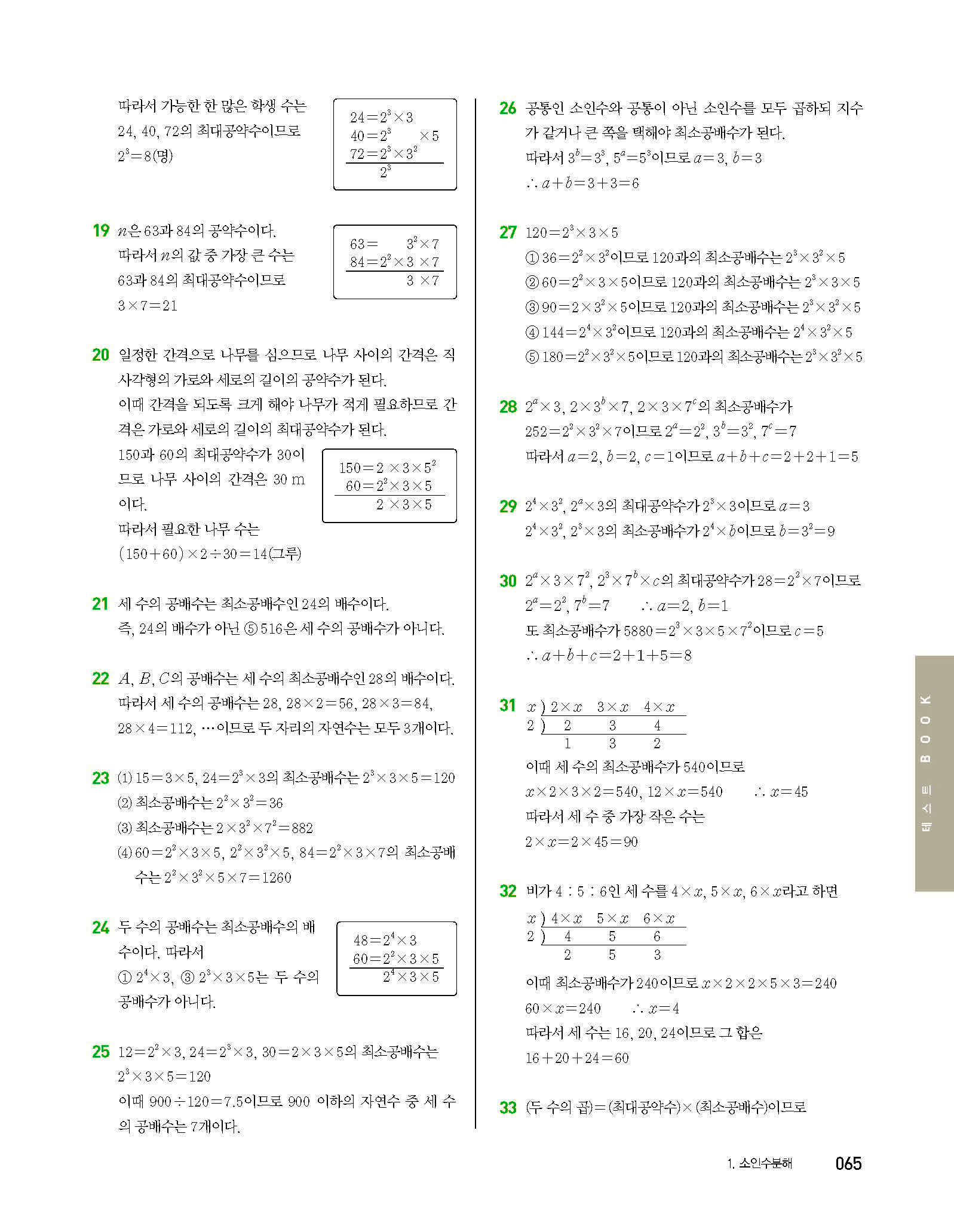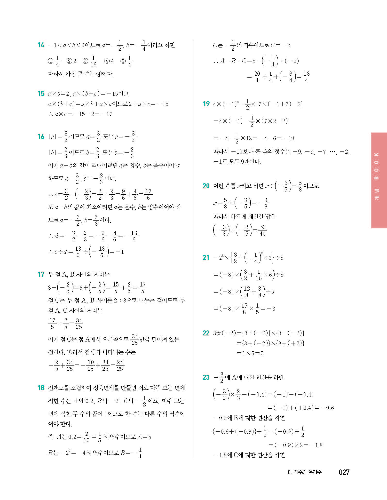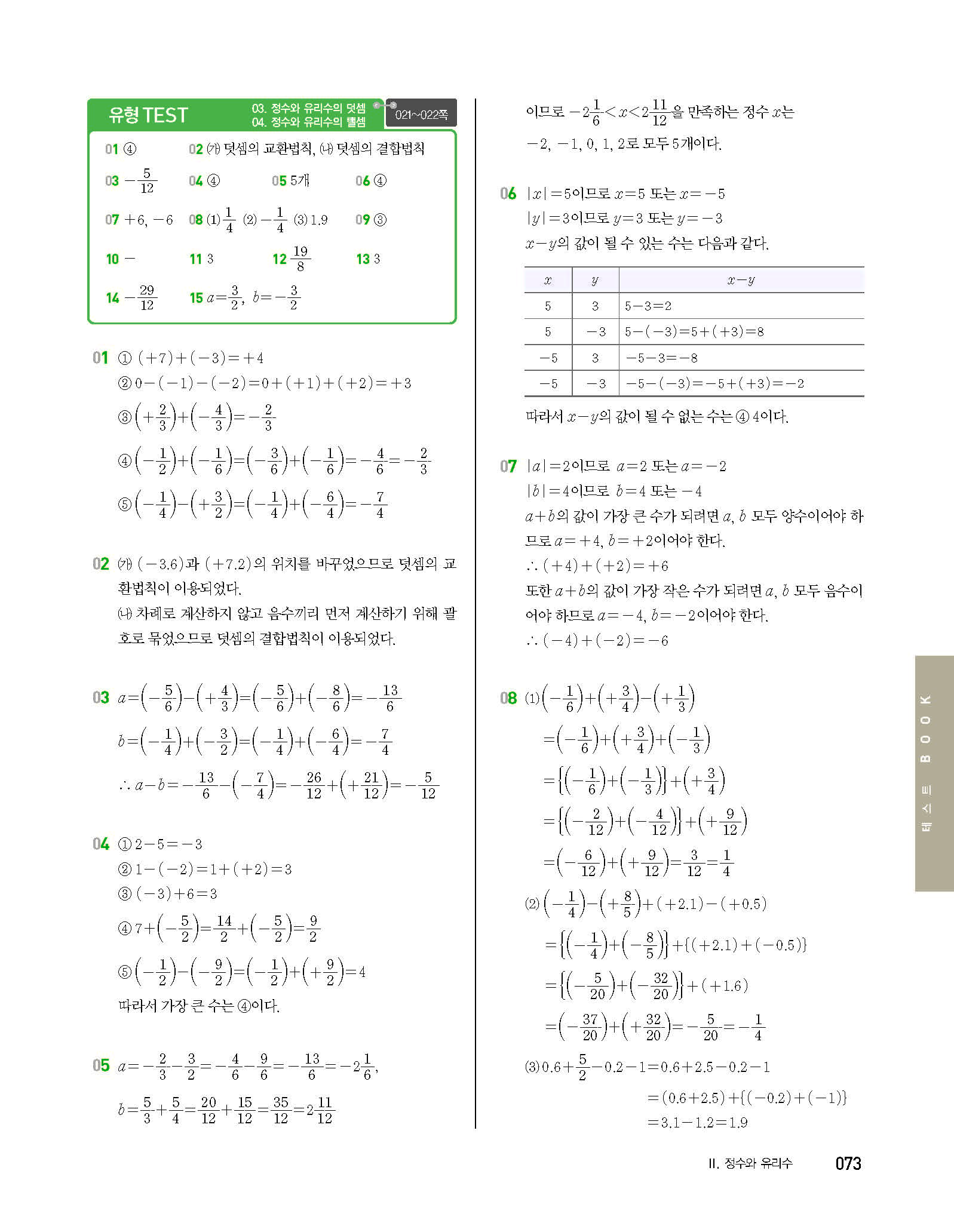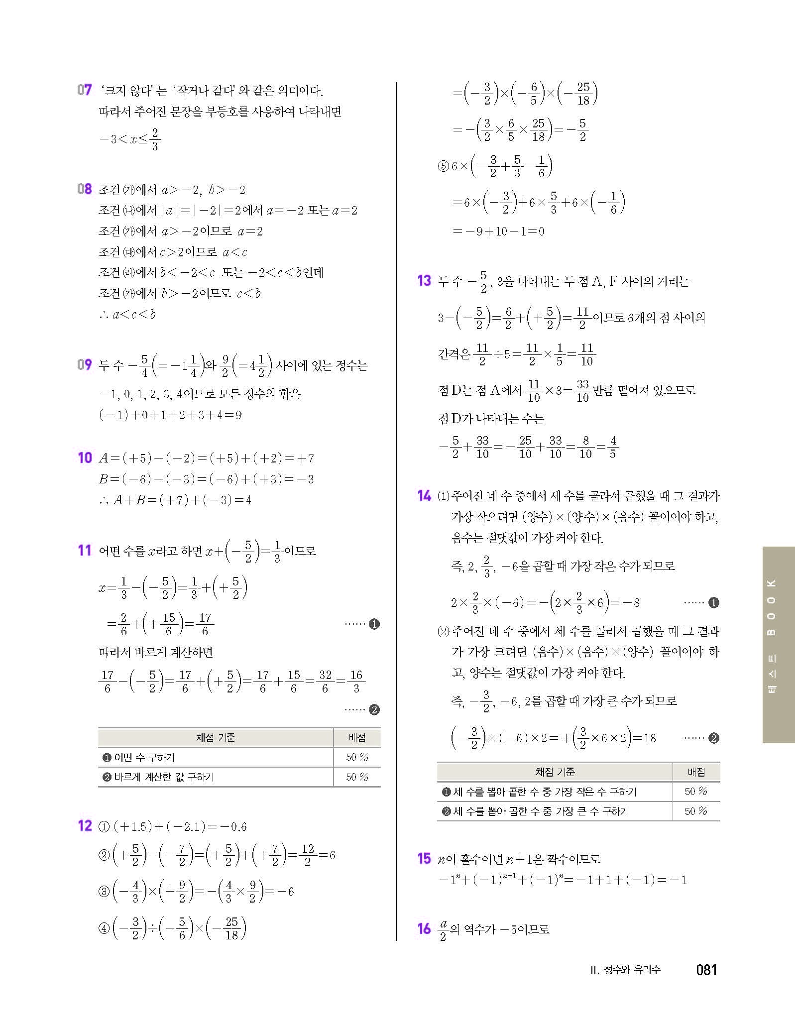 숨마쿰라우데 중학수학 개념기본서 중1상 1-1 사진답지 빠른답지 모바일최적화