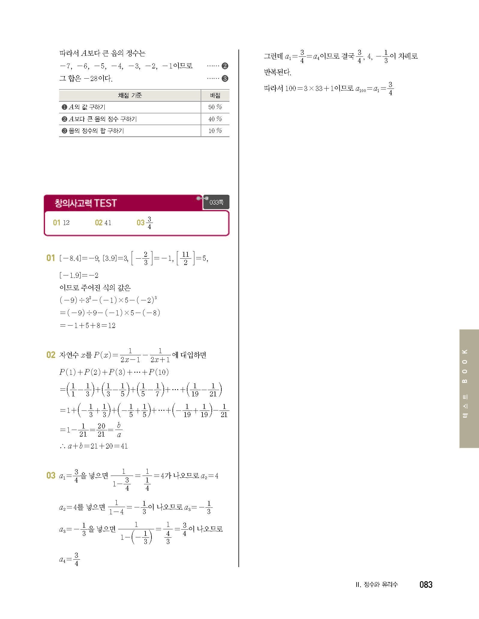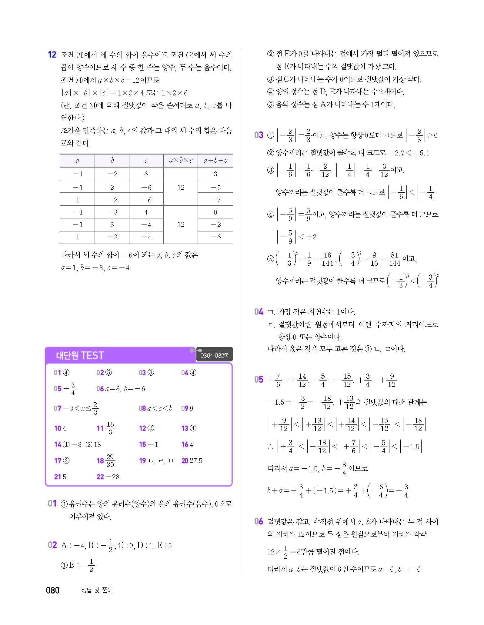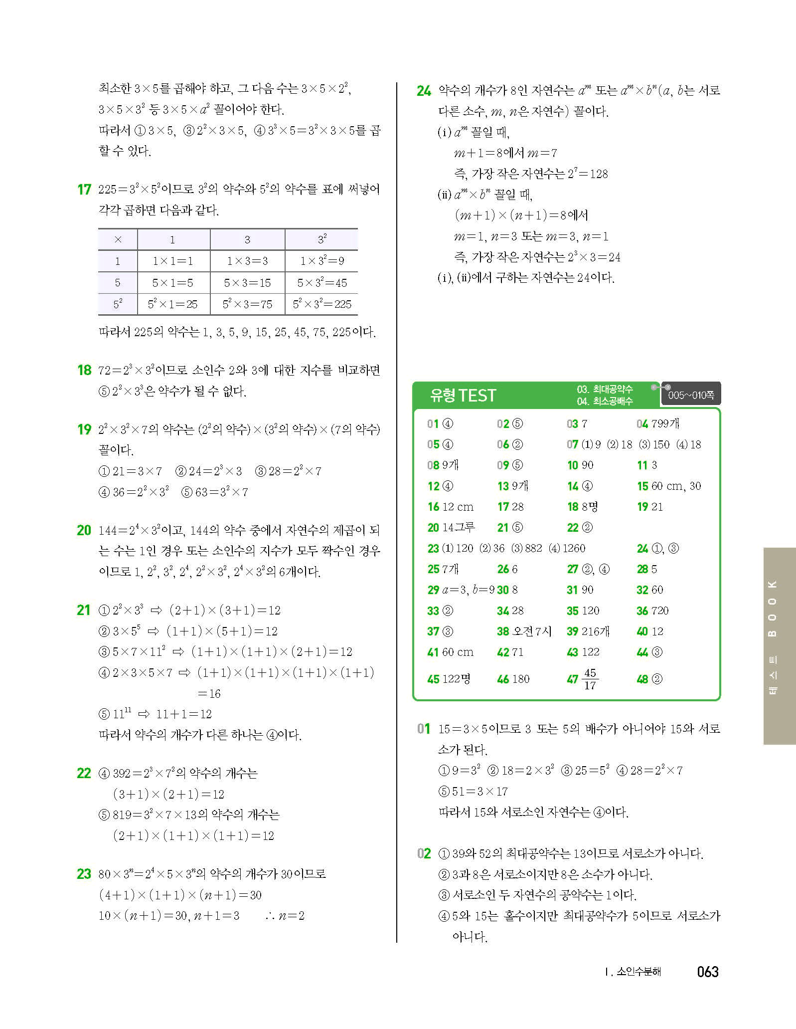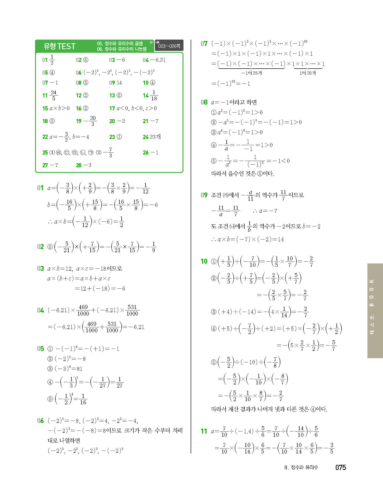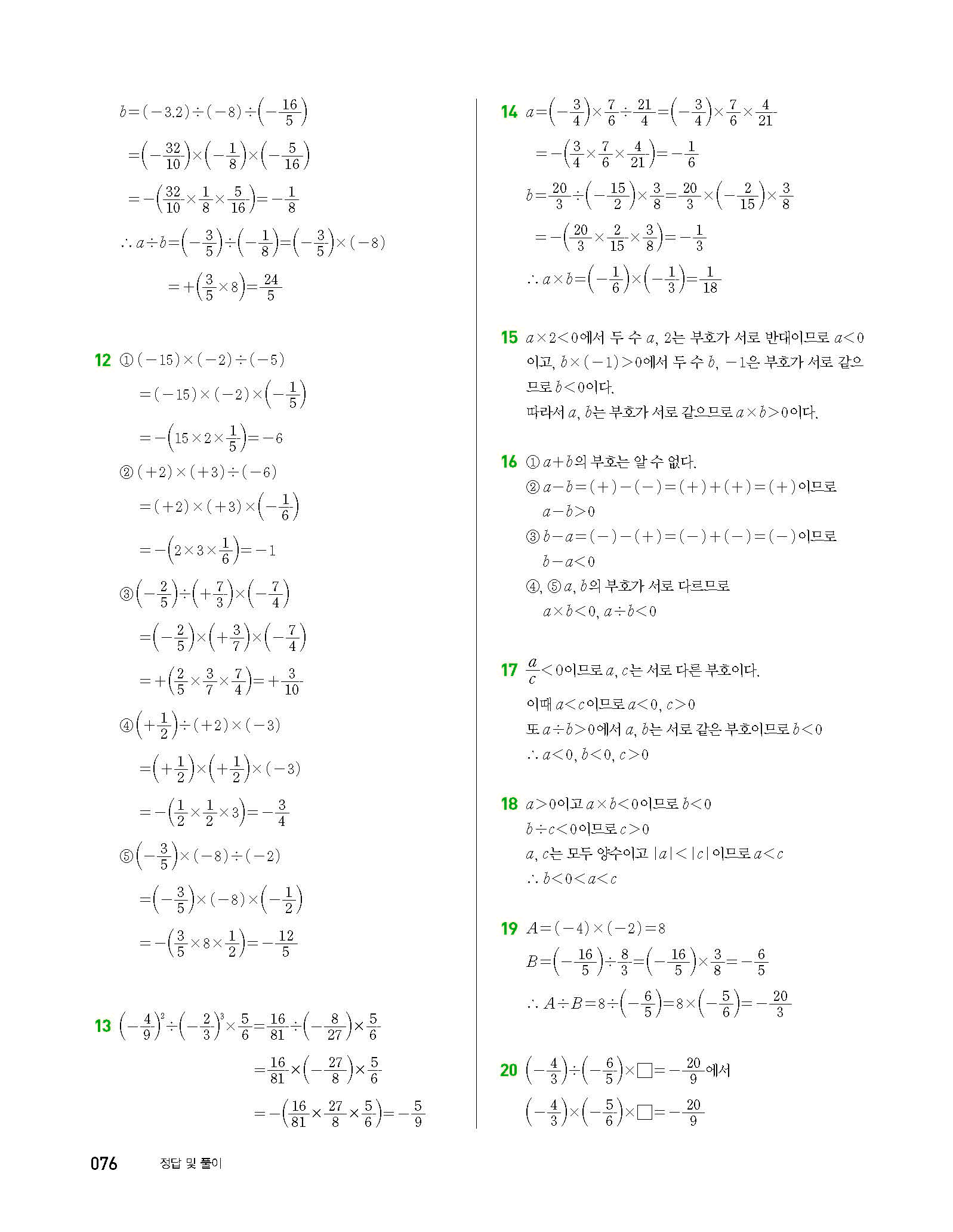 숨마쿰라우데 중학수학 개념기본서 중1상 1-1 사진답지 빠른답지 모바일최적화