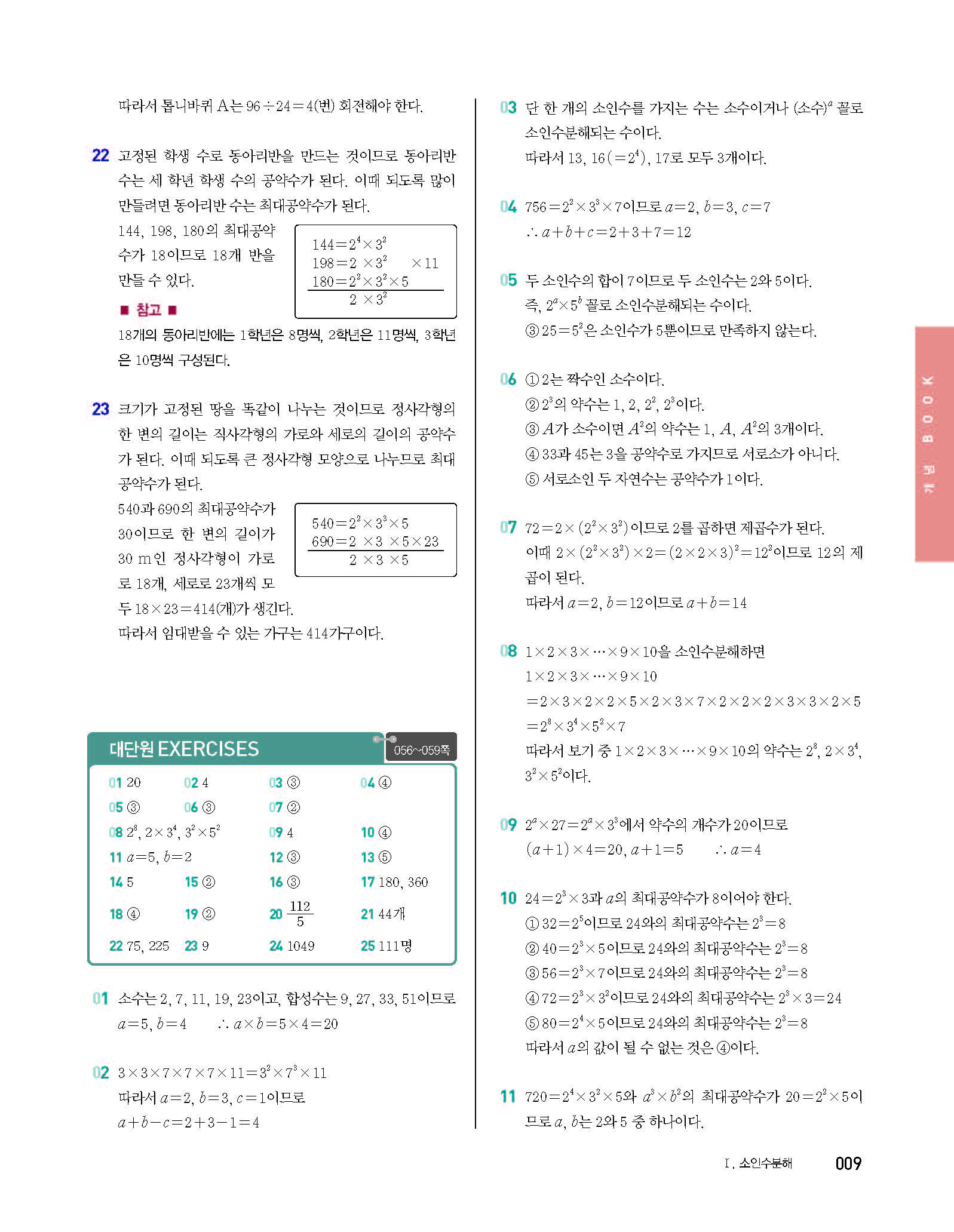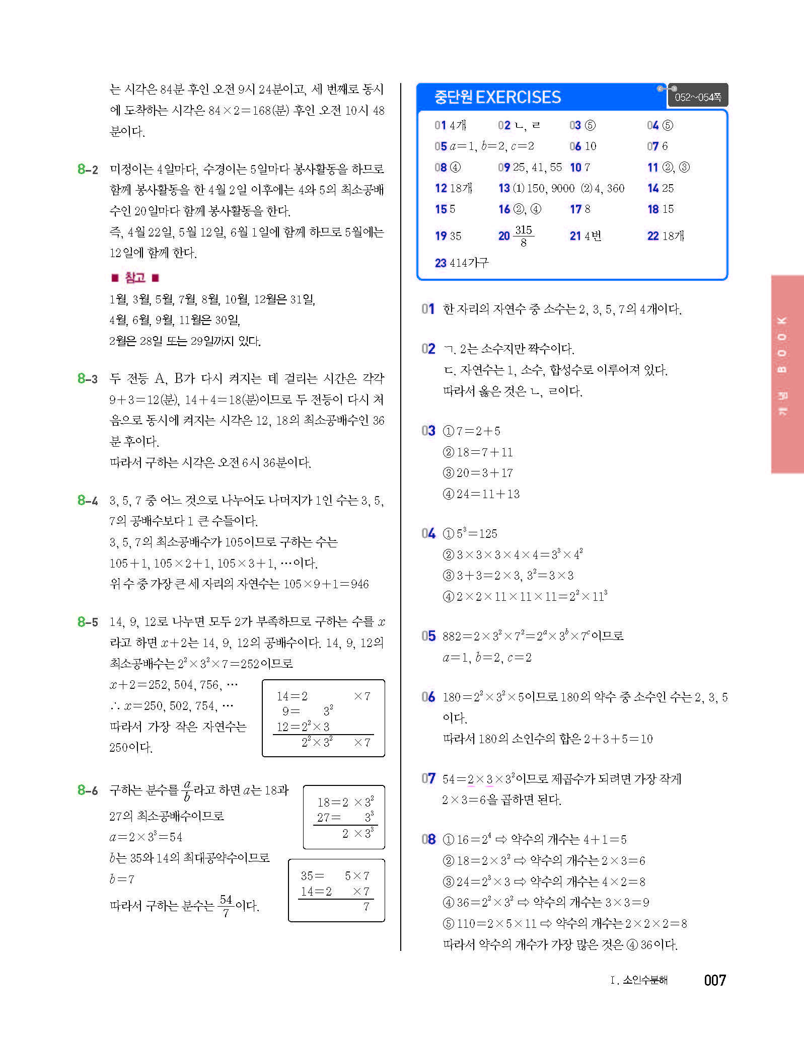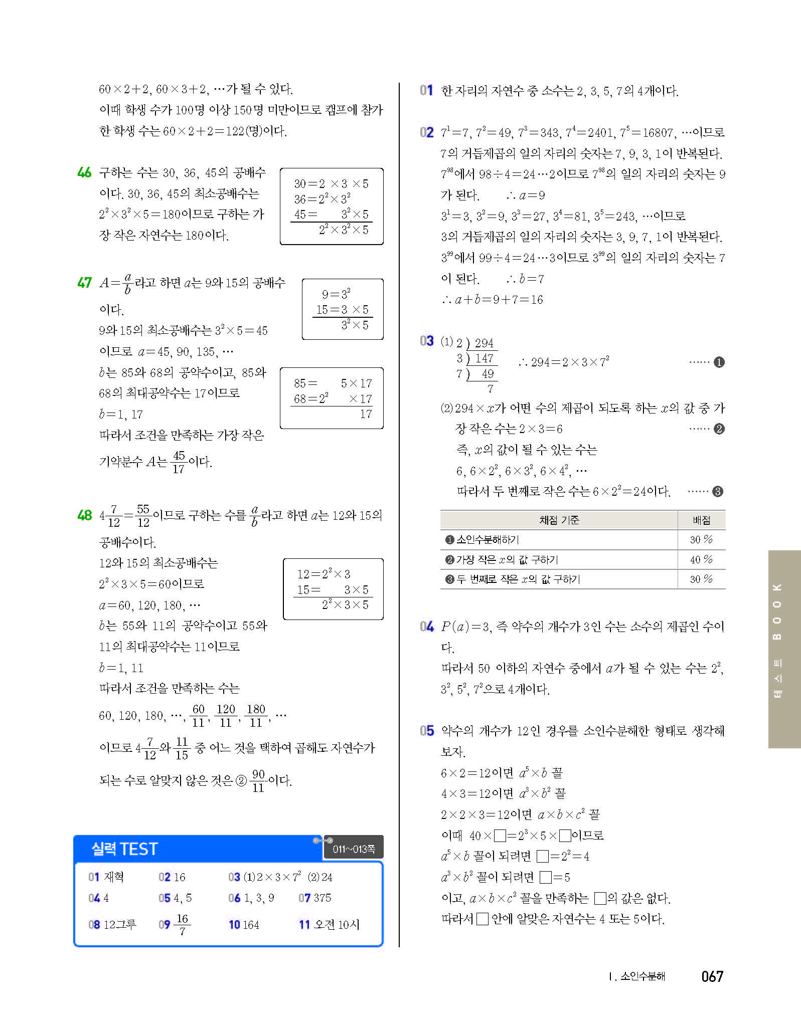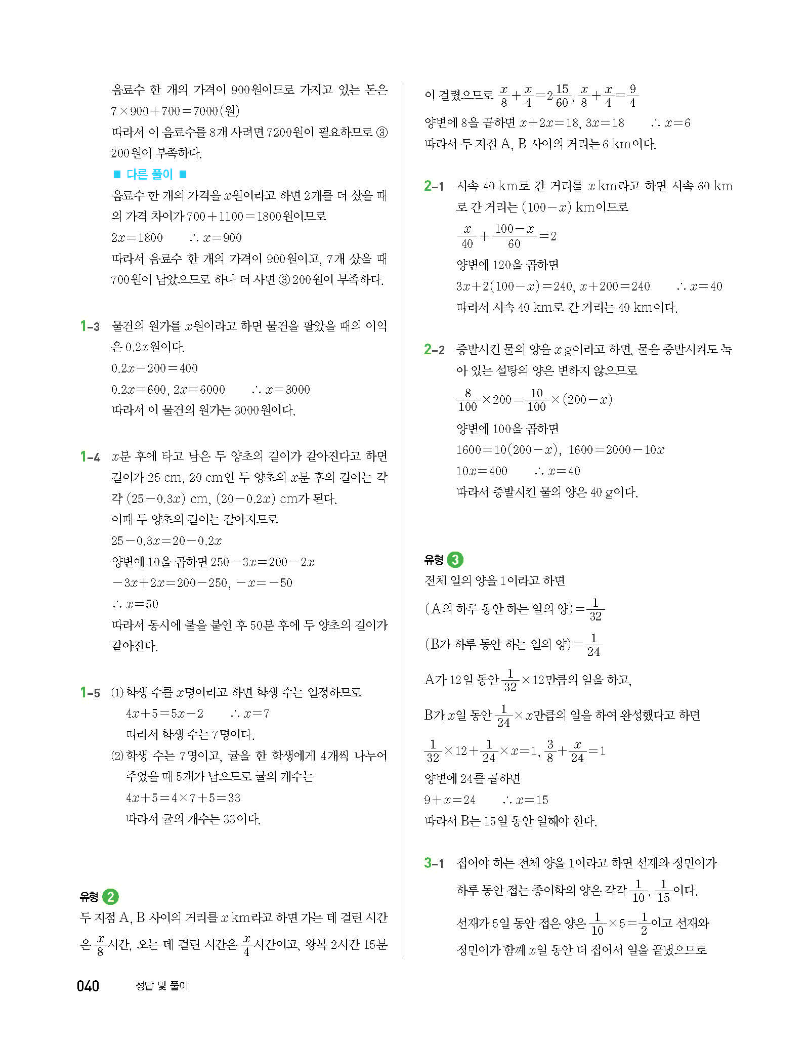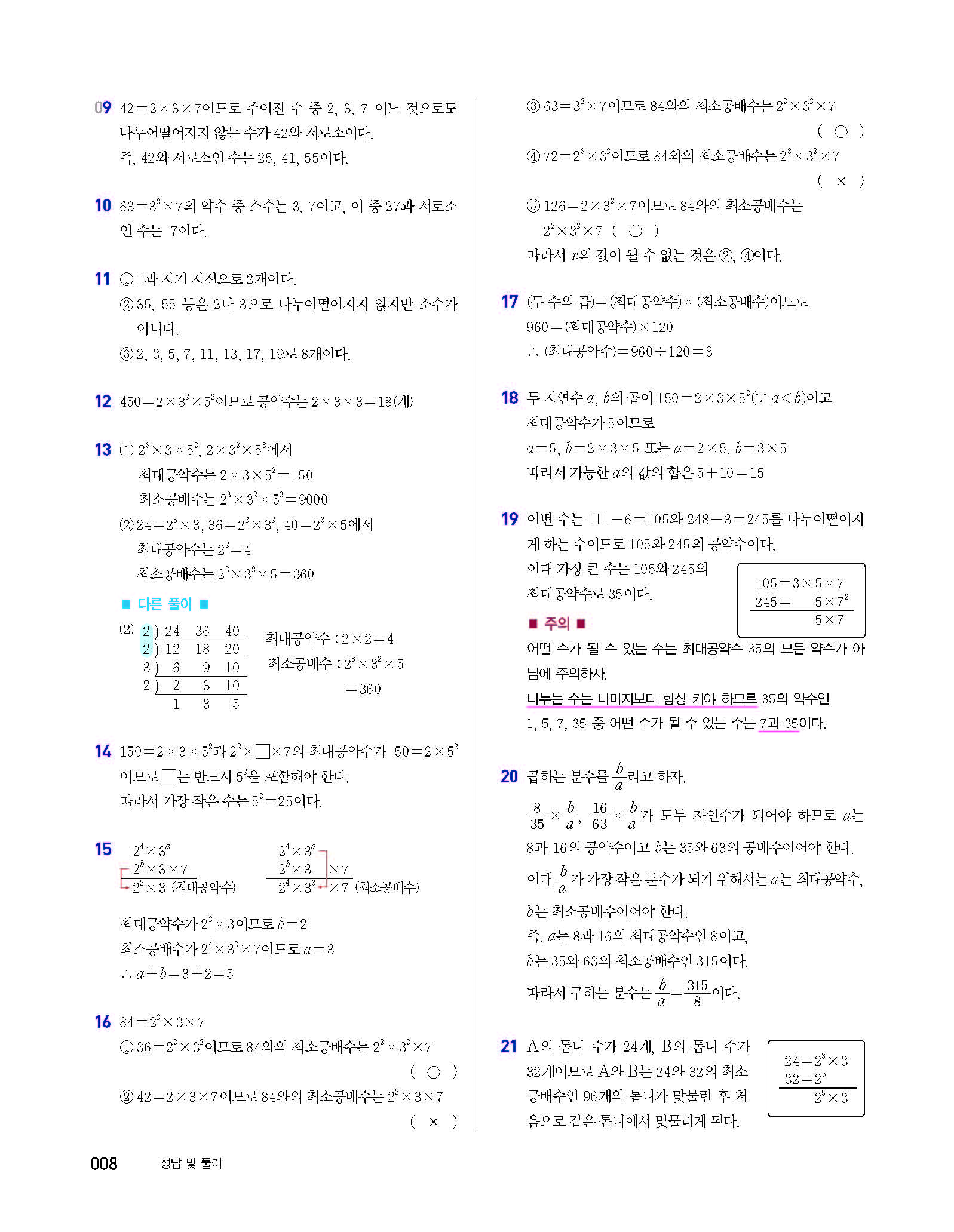 숨마쿰라우데 중학수학 개념기본서 중1상 1-1 사진답지 빠른답지 모바일최적화