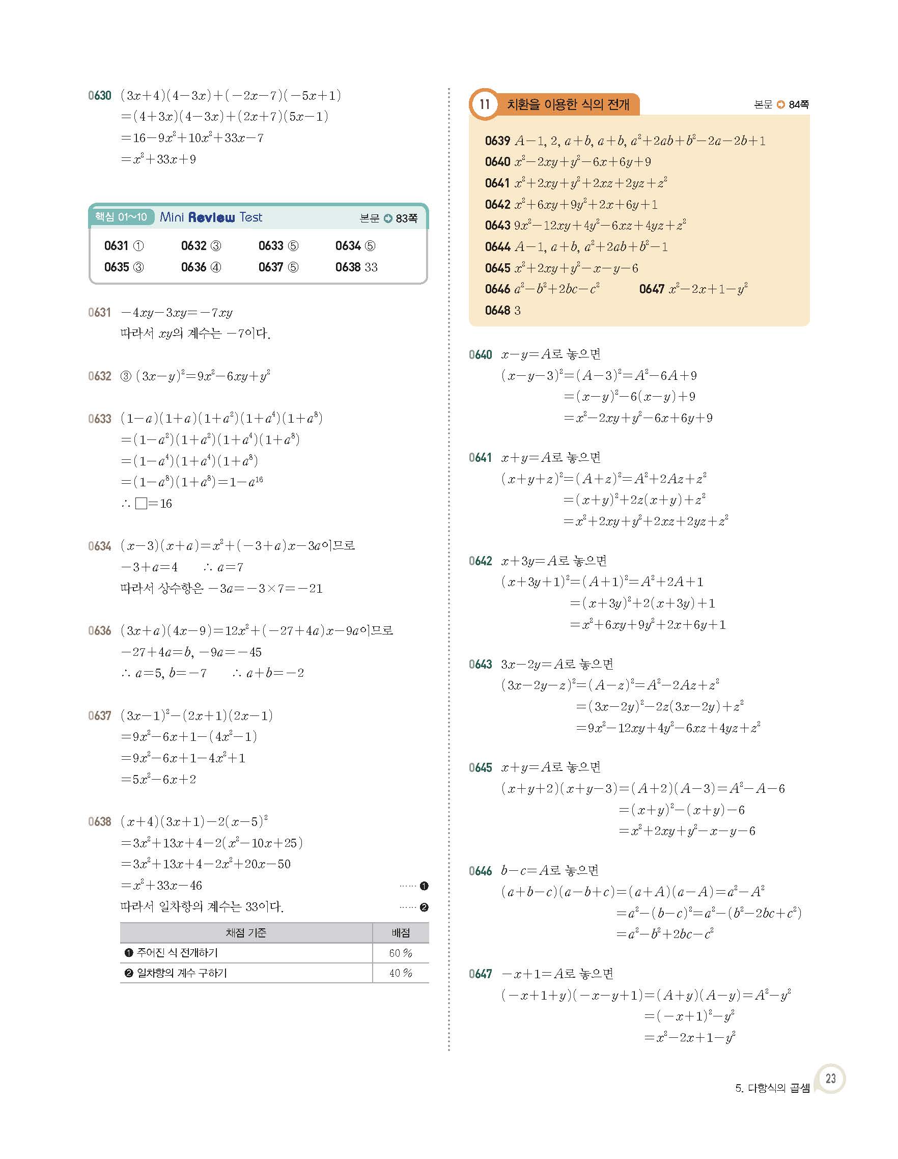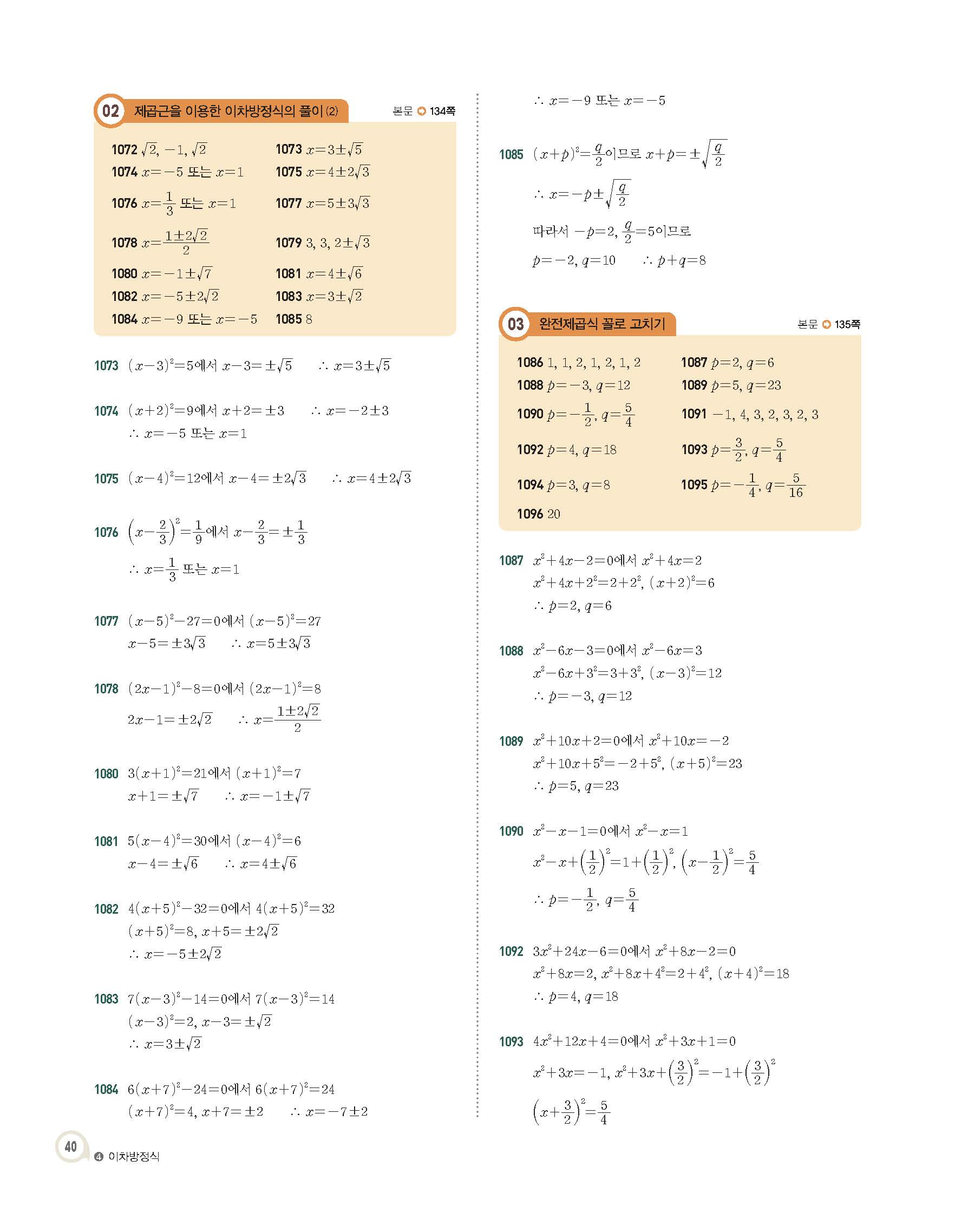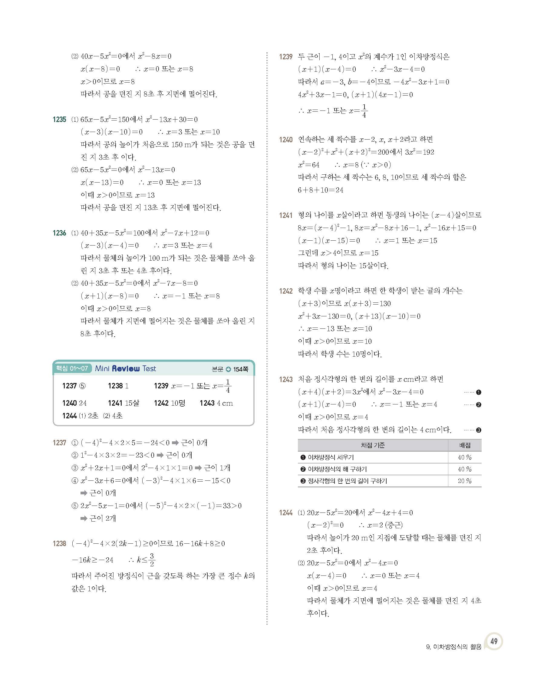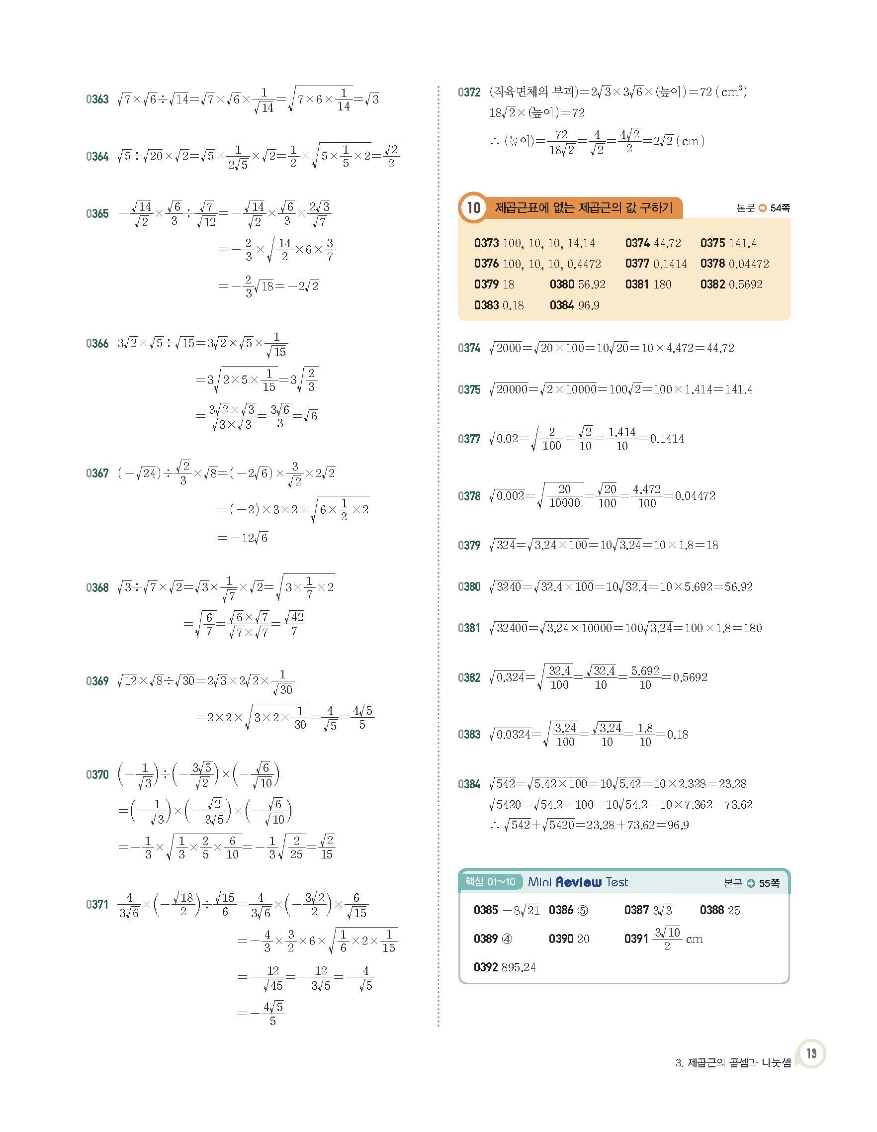 | 교학사 고호경 중3 수학교과서 답지 | |