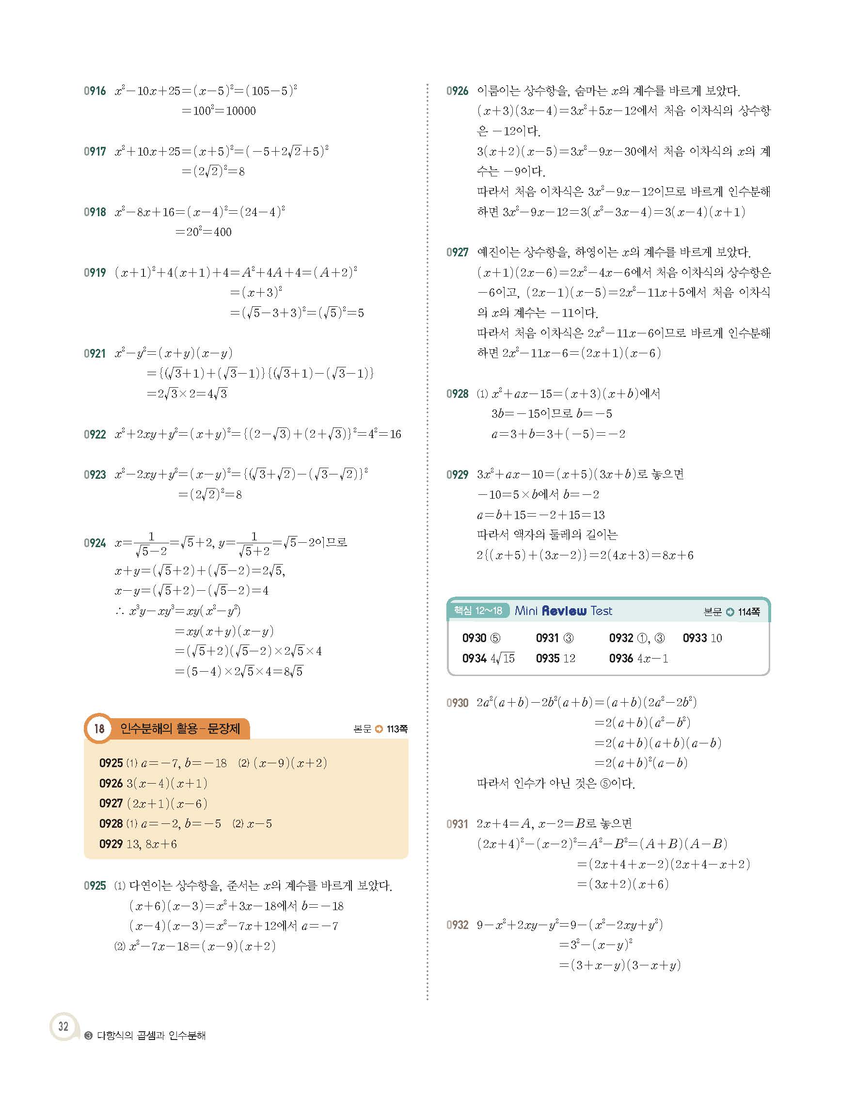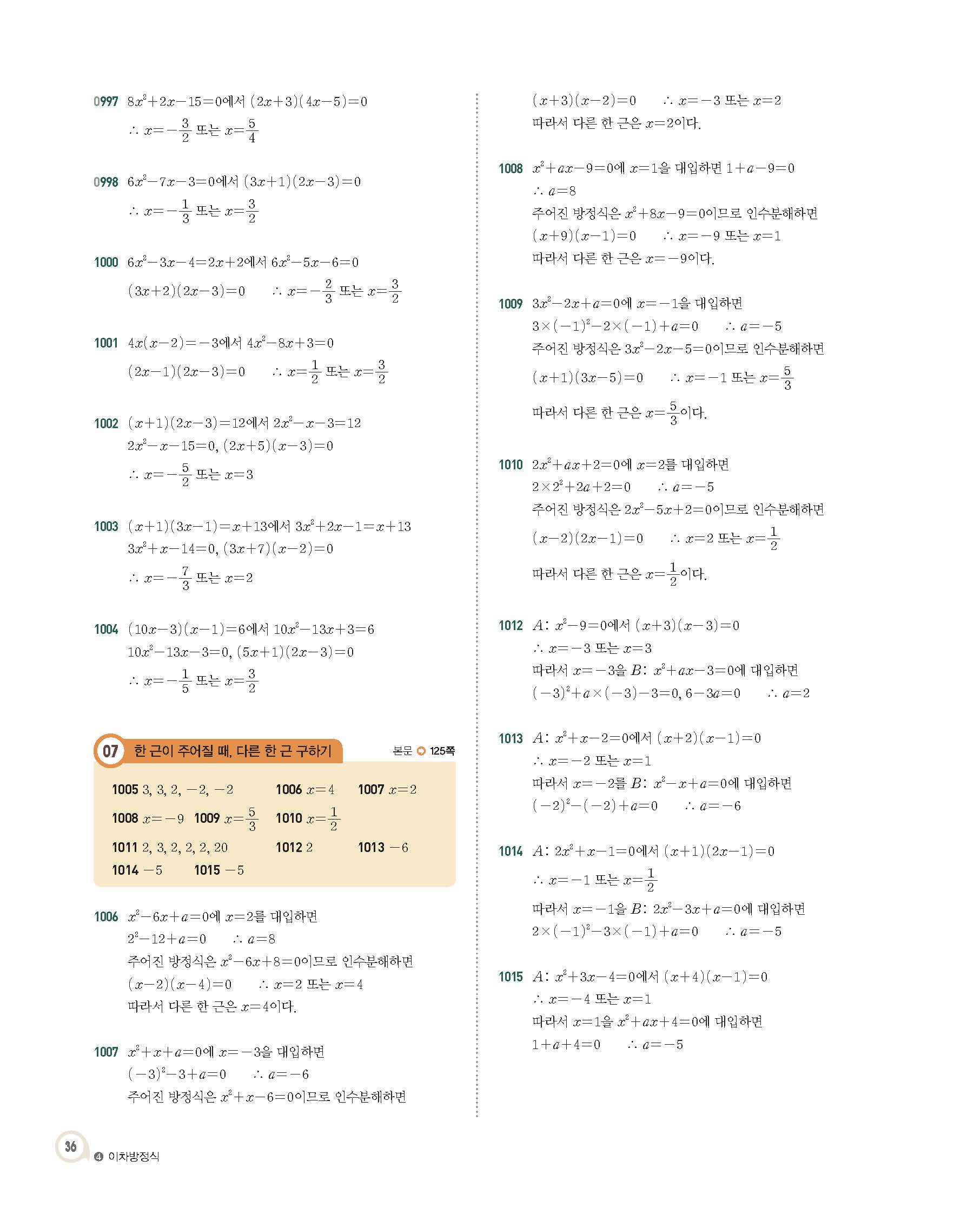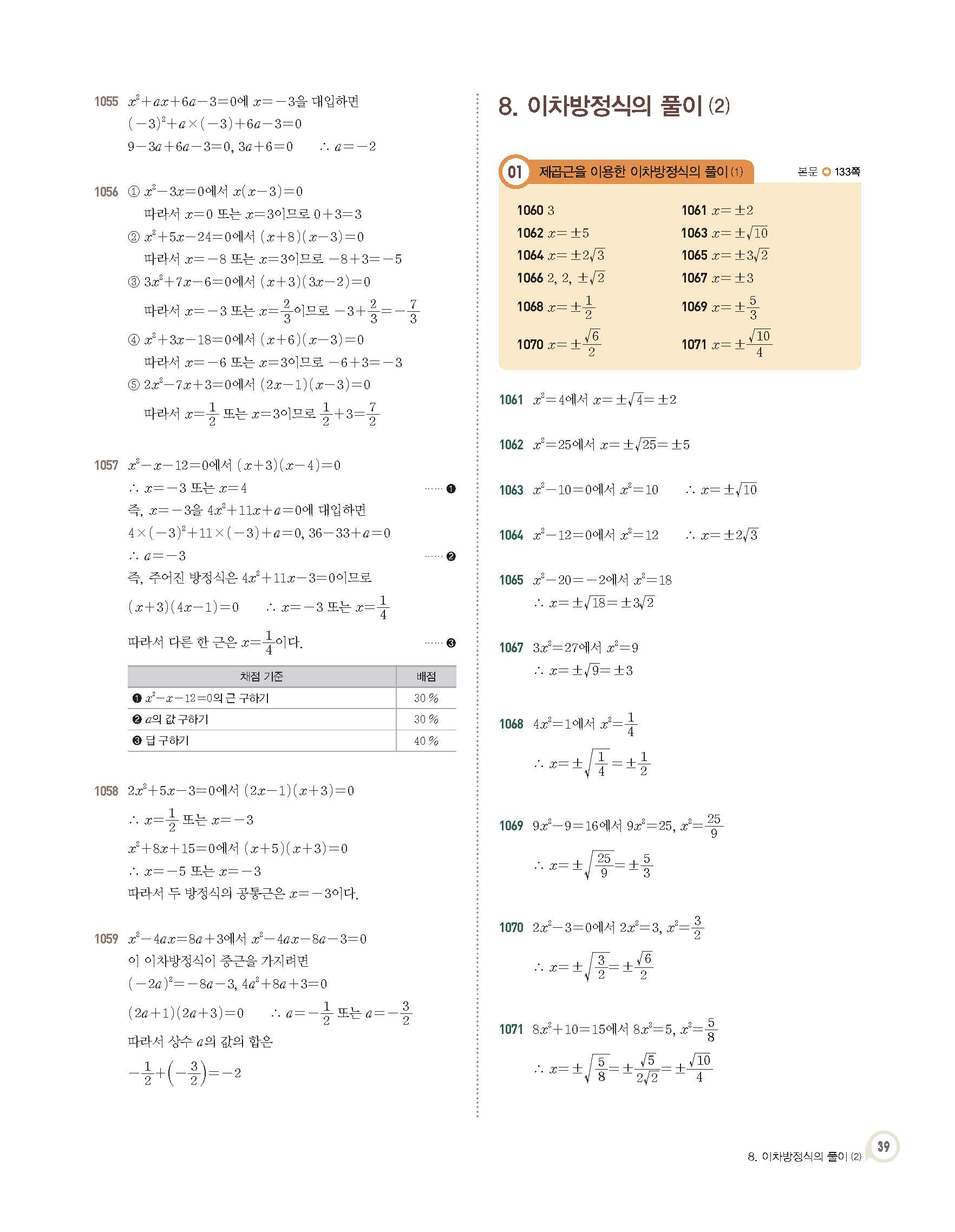 | 천재교육 이준열 중3 수학교과서 답지 | |