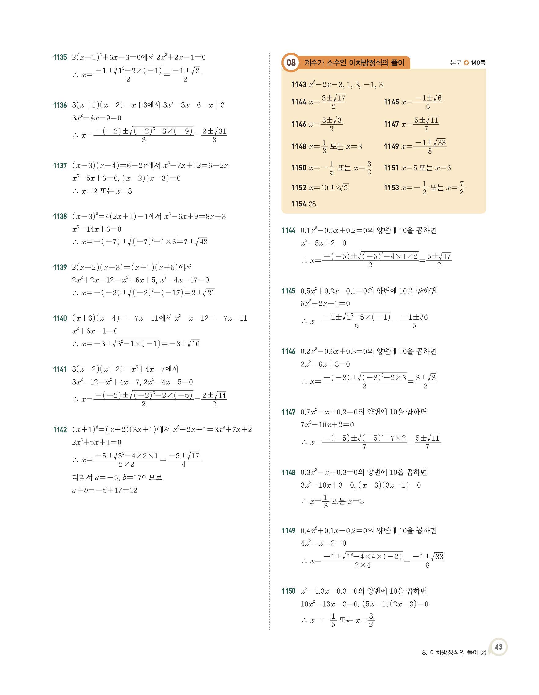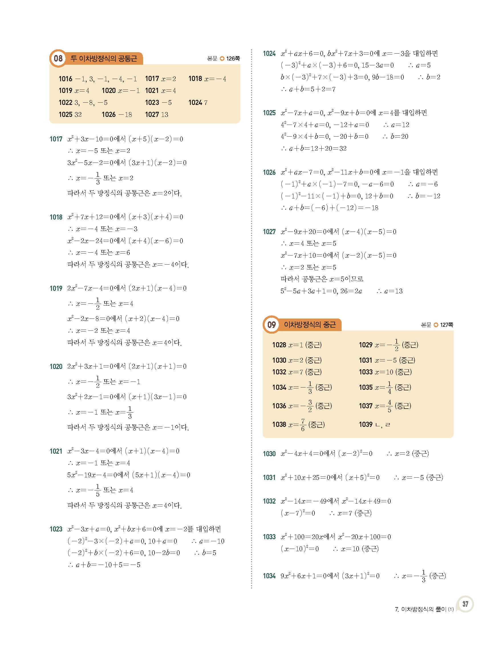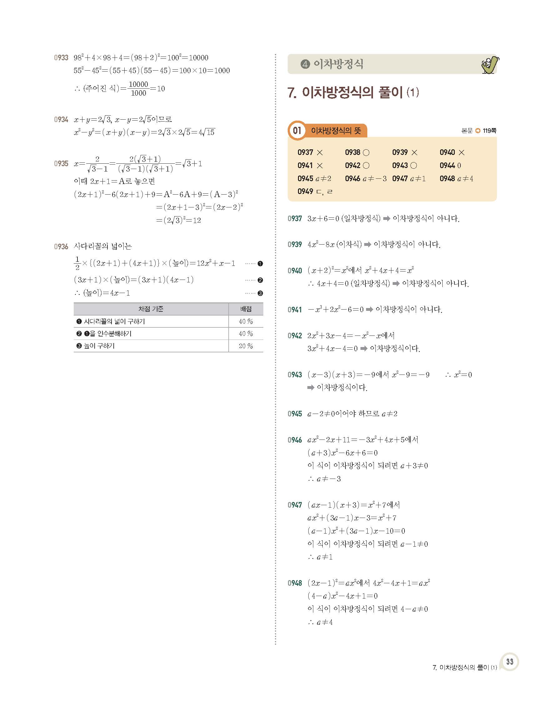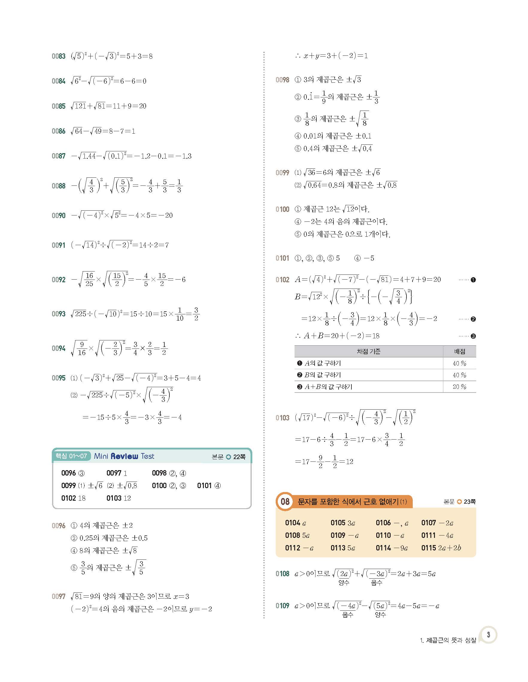 | 천재교육 이준열 중3 수학교과서 답지 | |