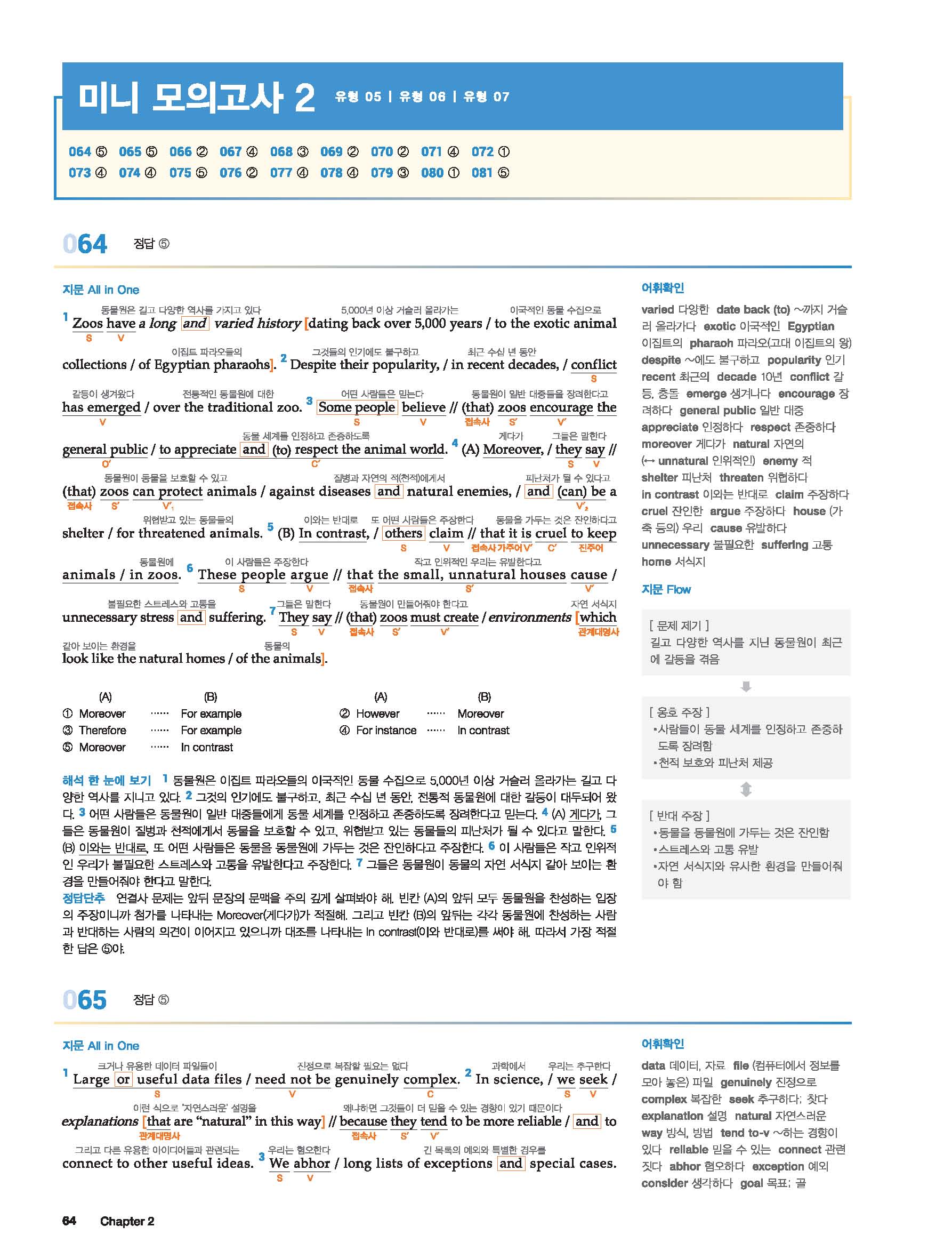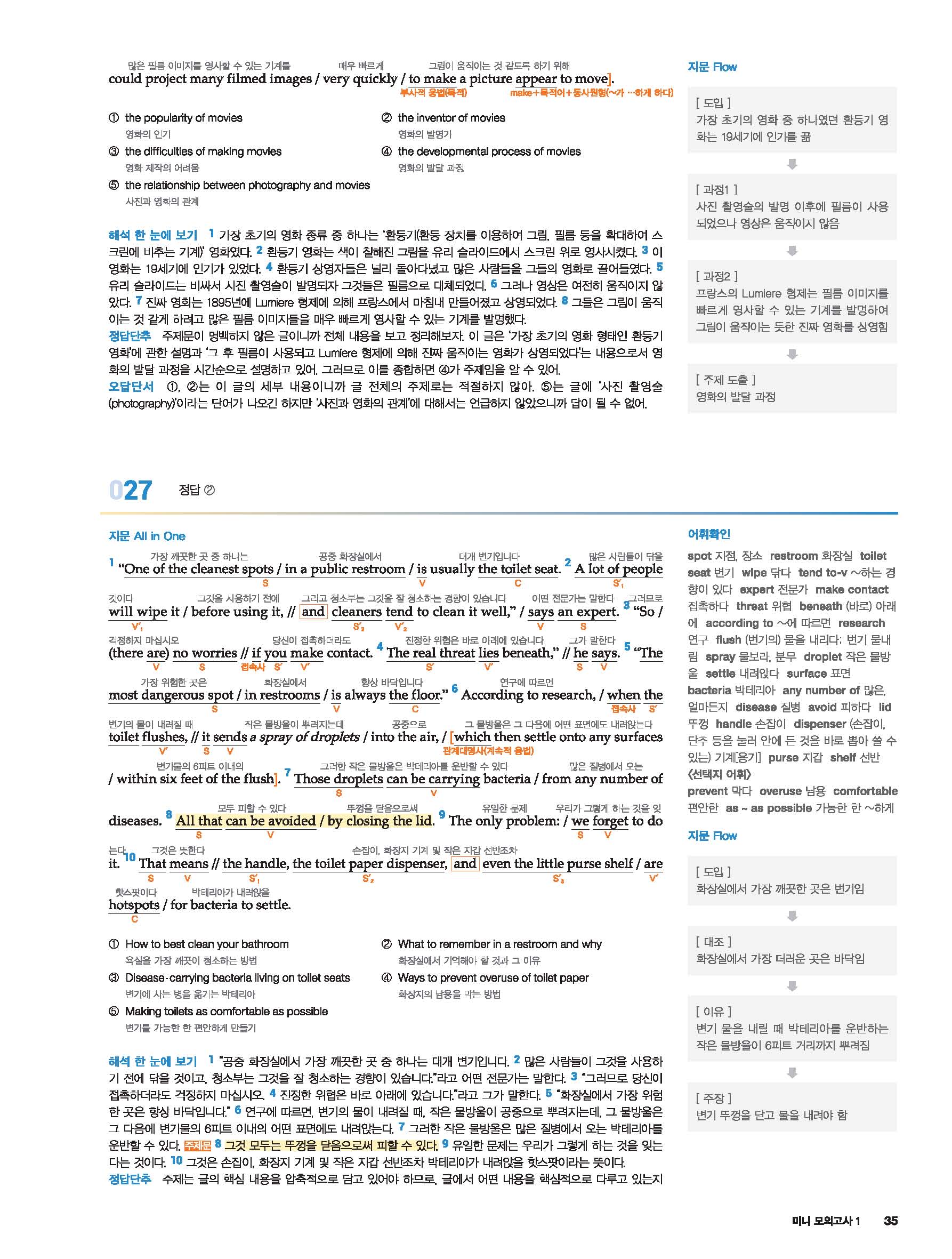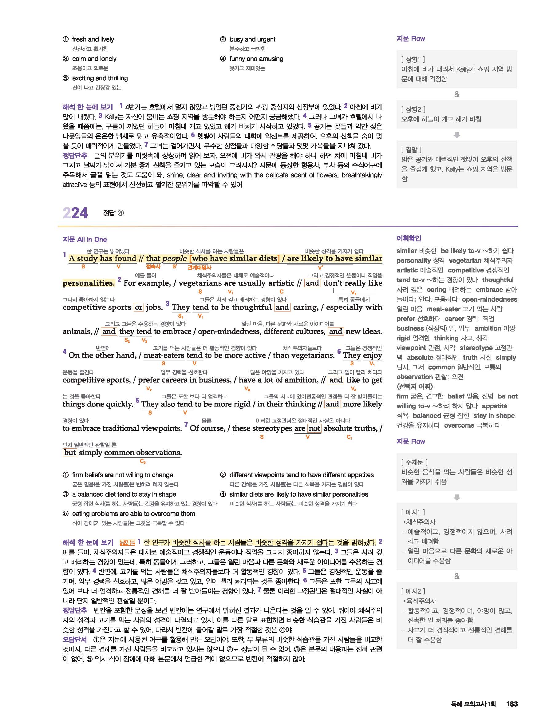 2021 세듀 첫단추모의고사 독해유형편 답지 빠른답지 사진답지 모바일최적화