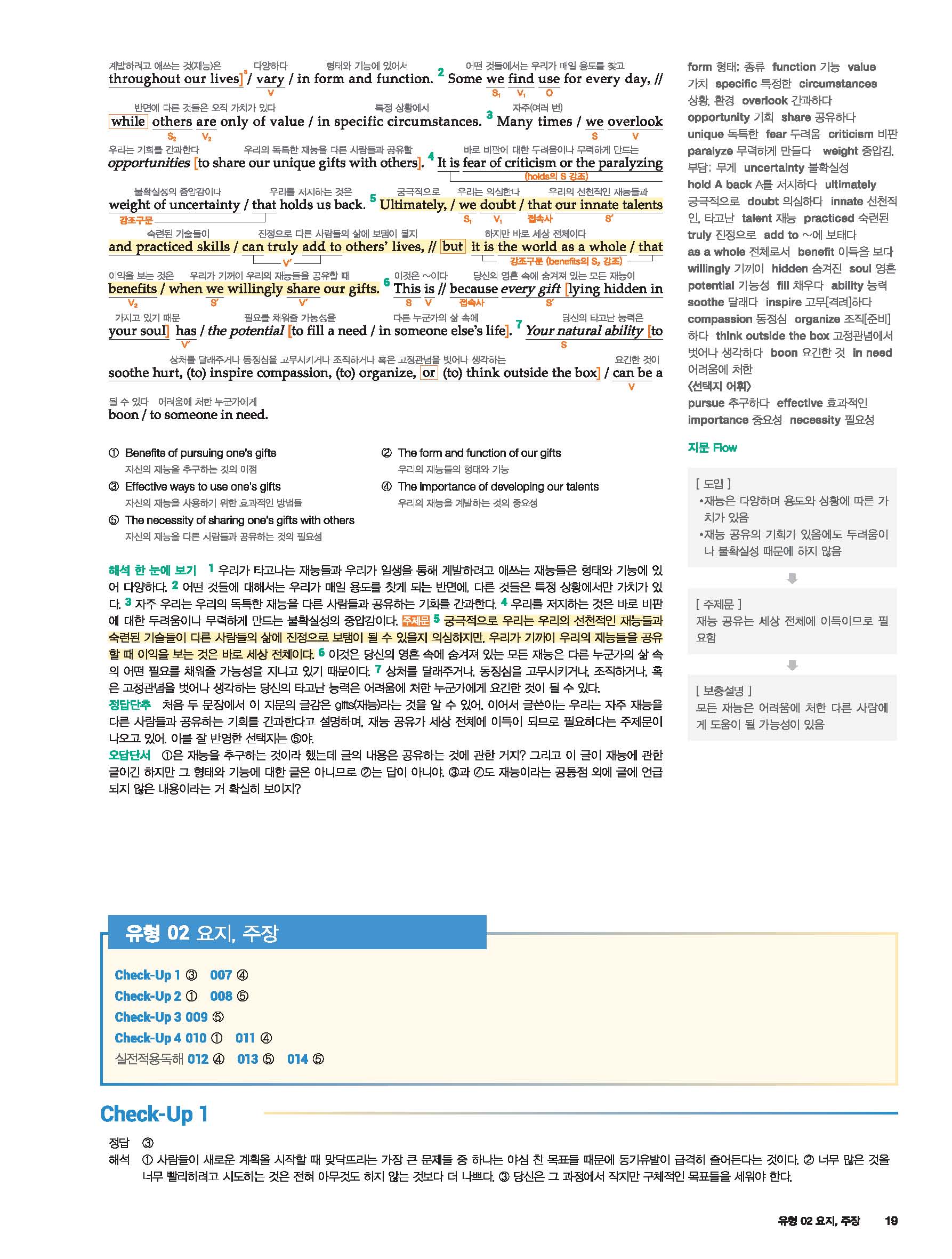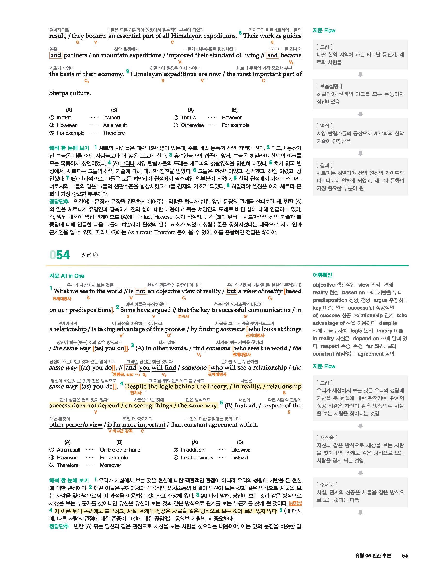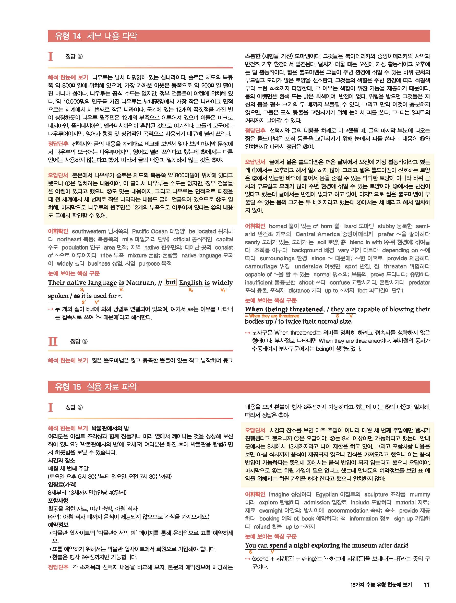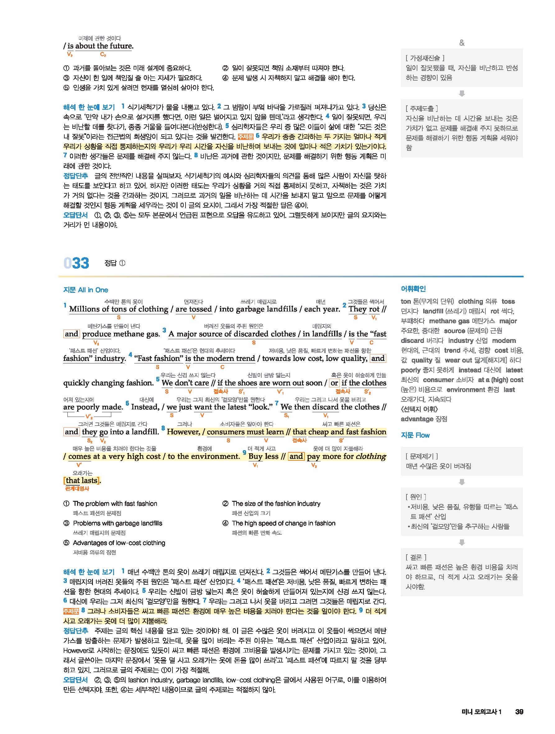 2021 세듀 첫단추모의고사 독해유형편 답지 빠른답지 사진답지 모바일최적화