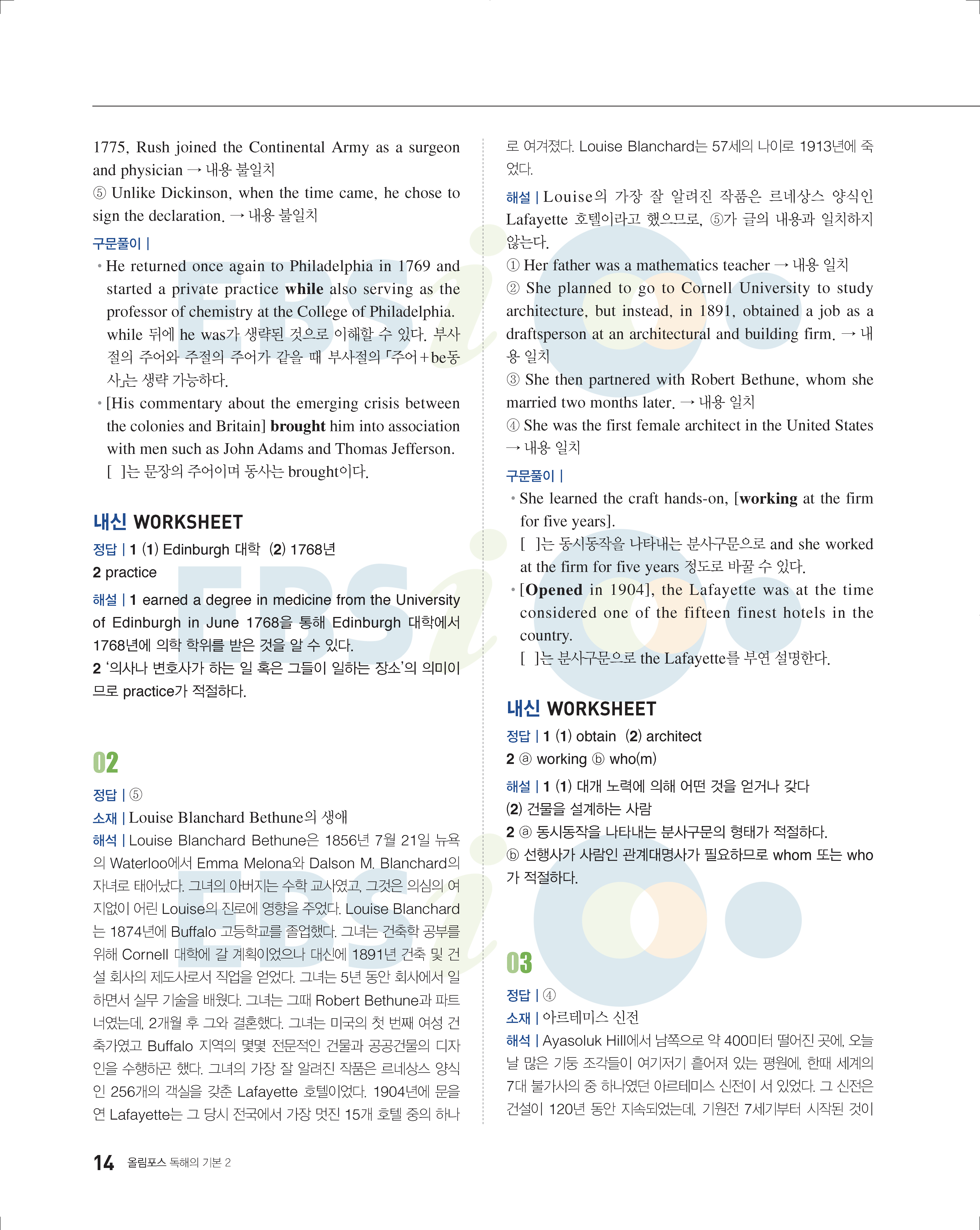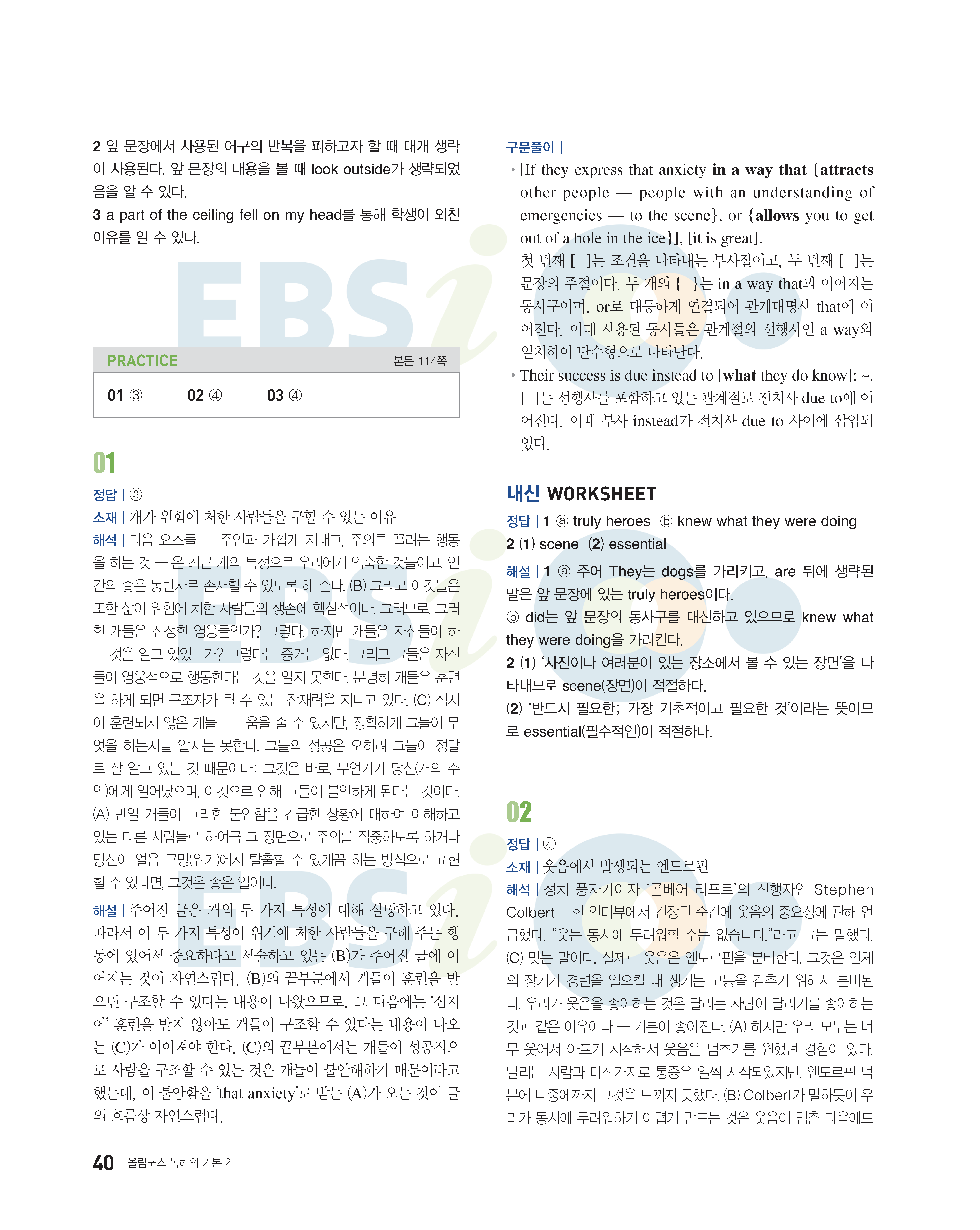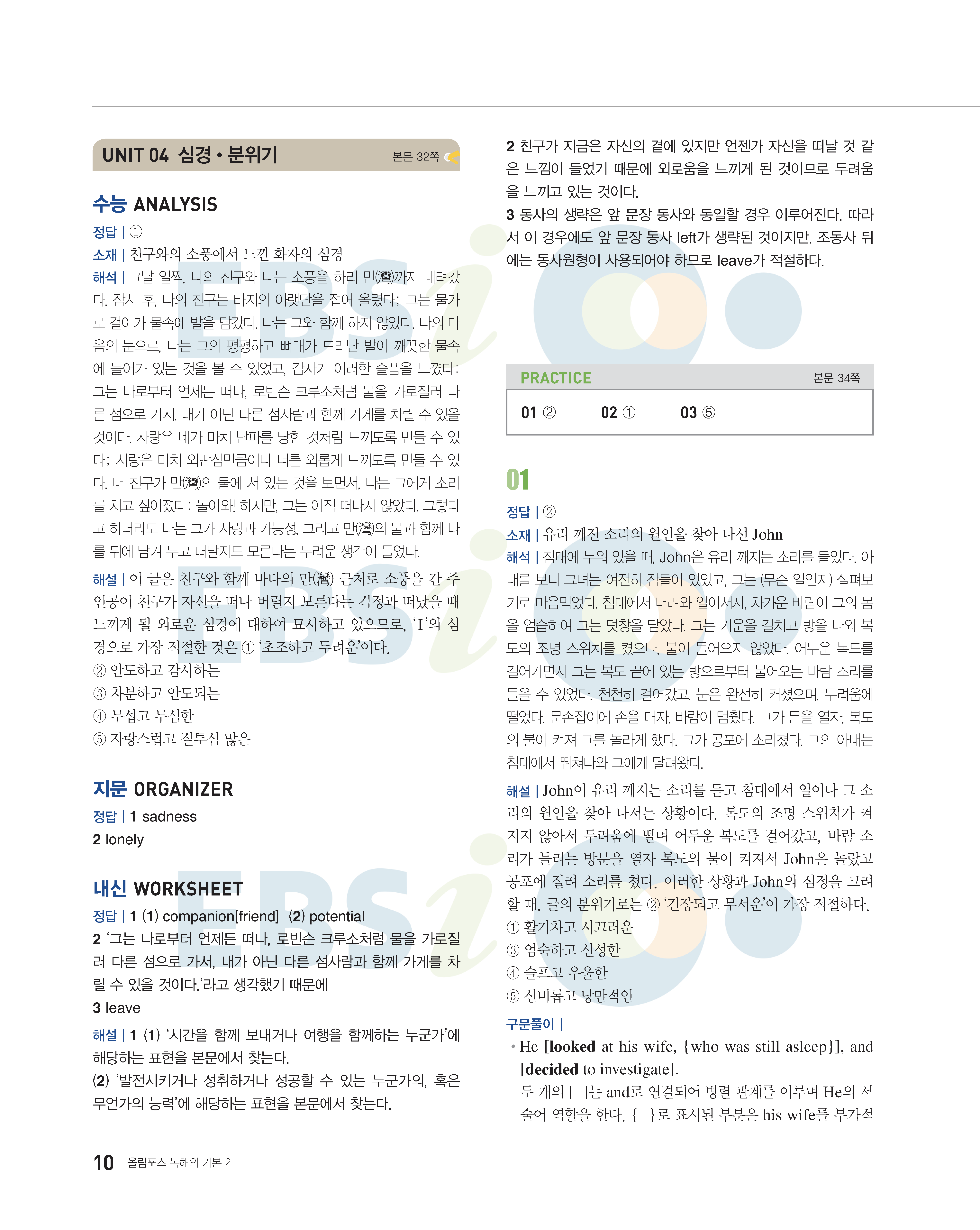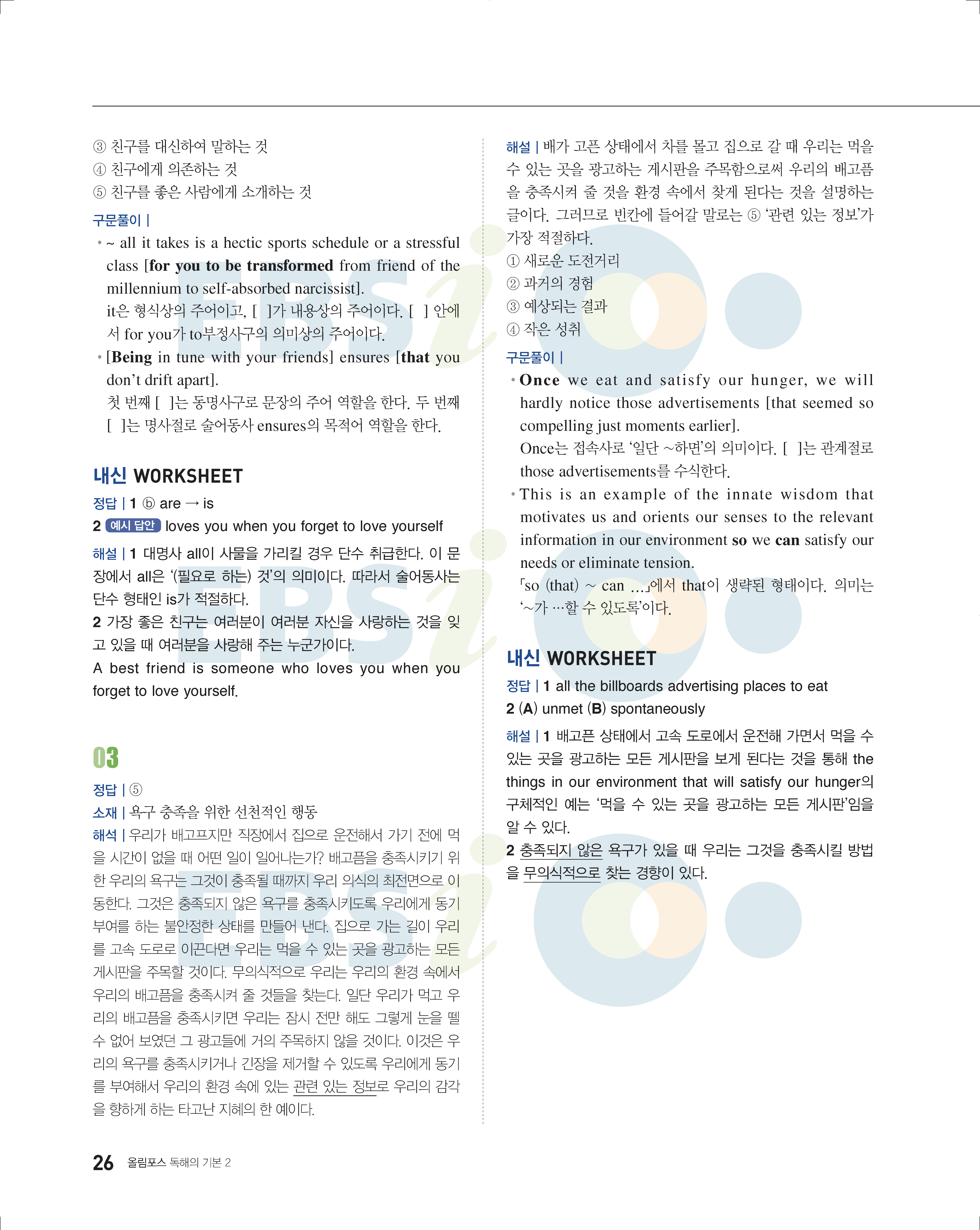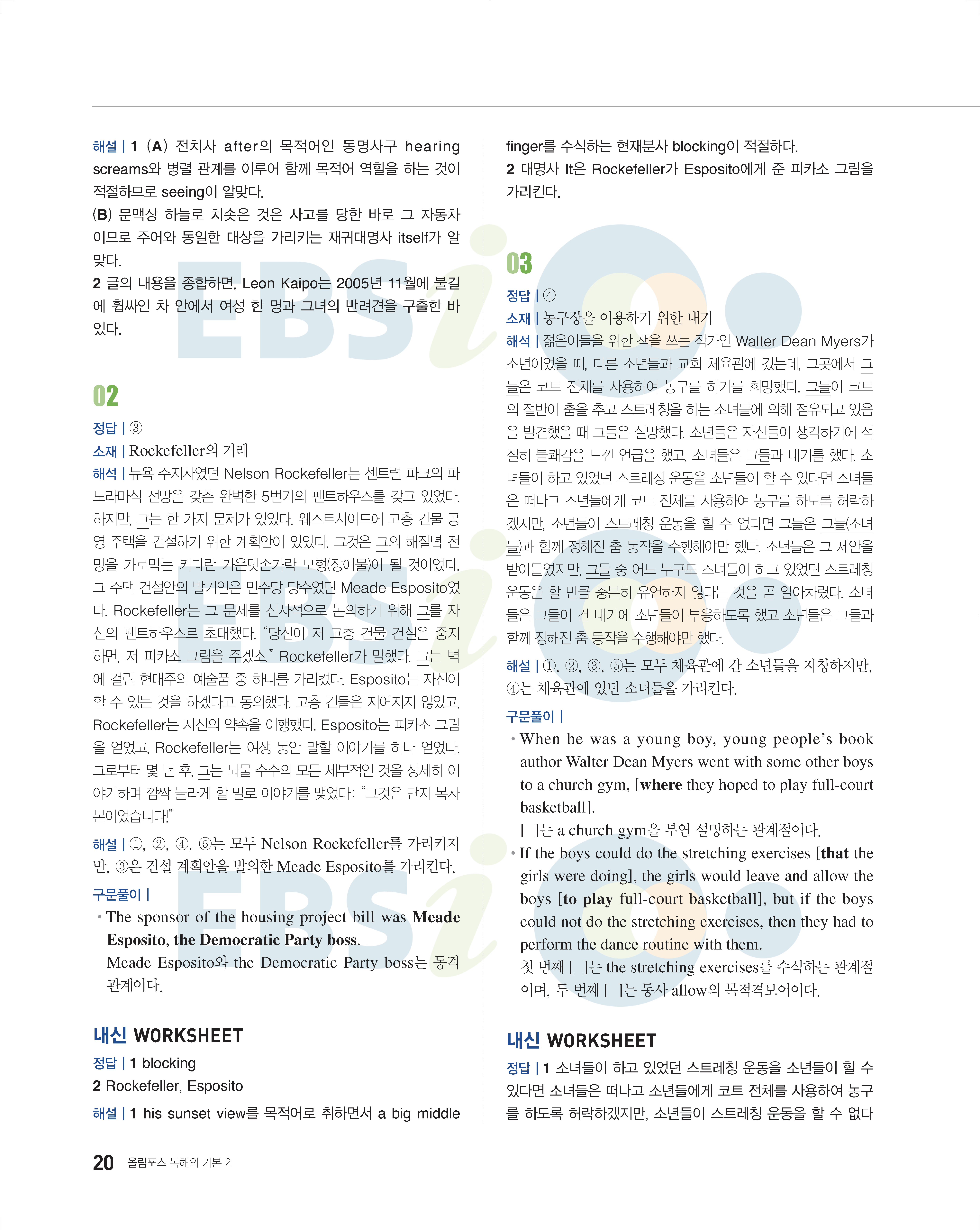올림포스 독해의기본 2 사진답지 빠른답지 모바일최적화