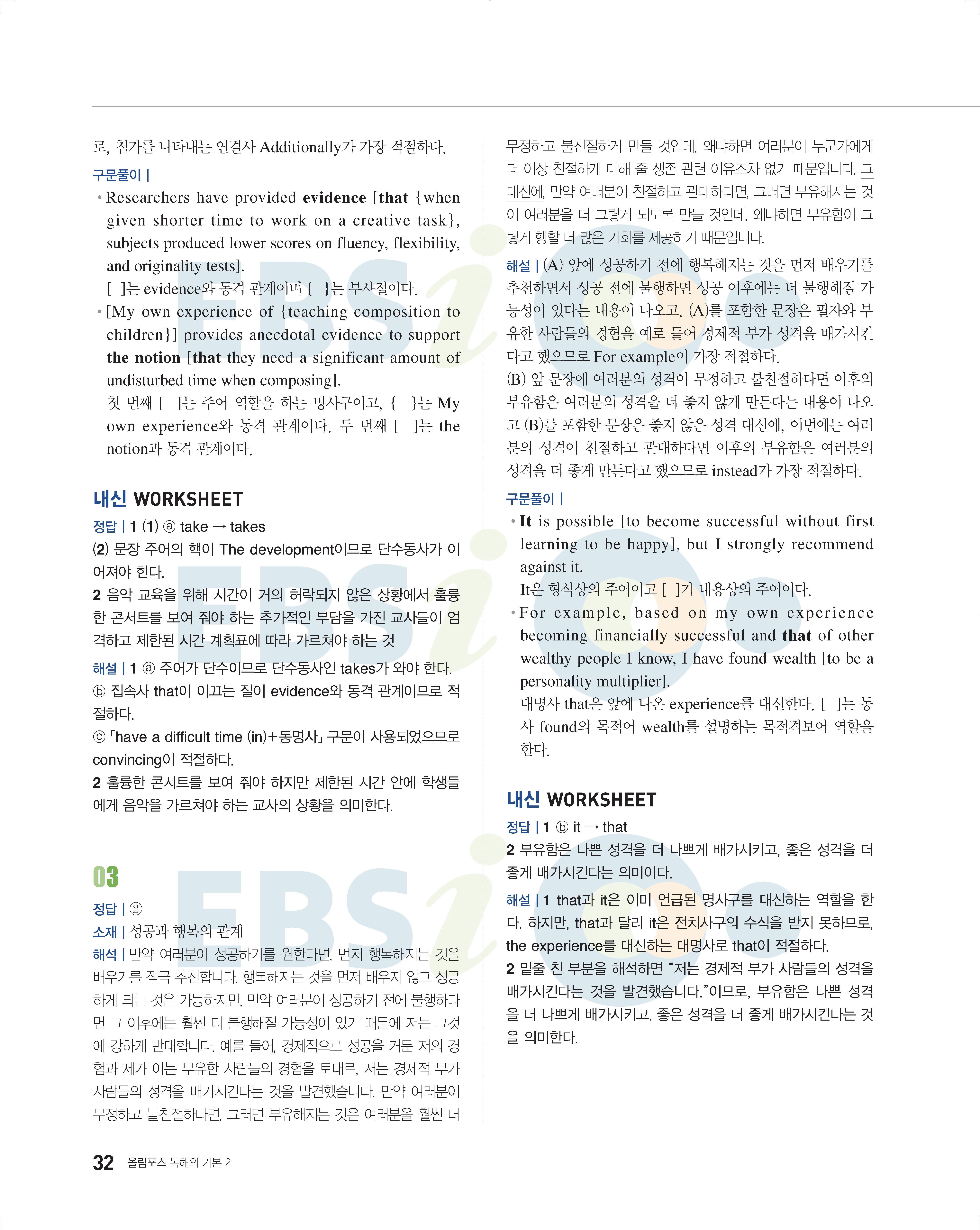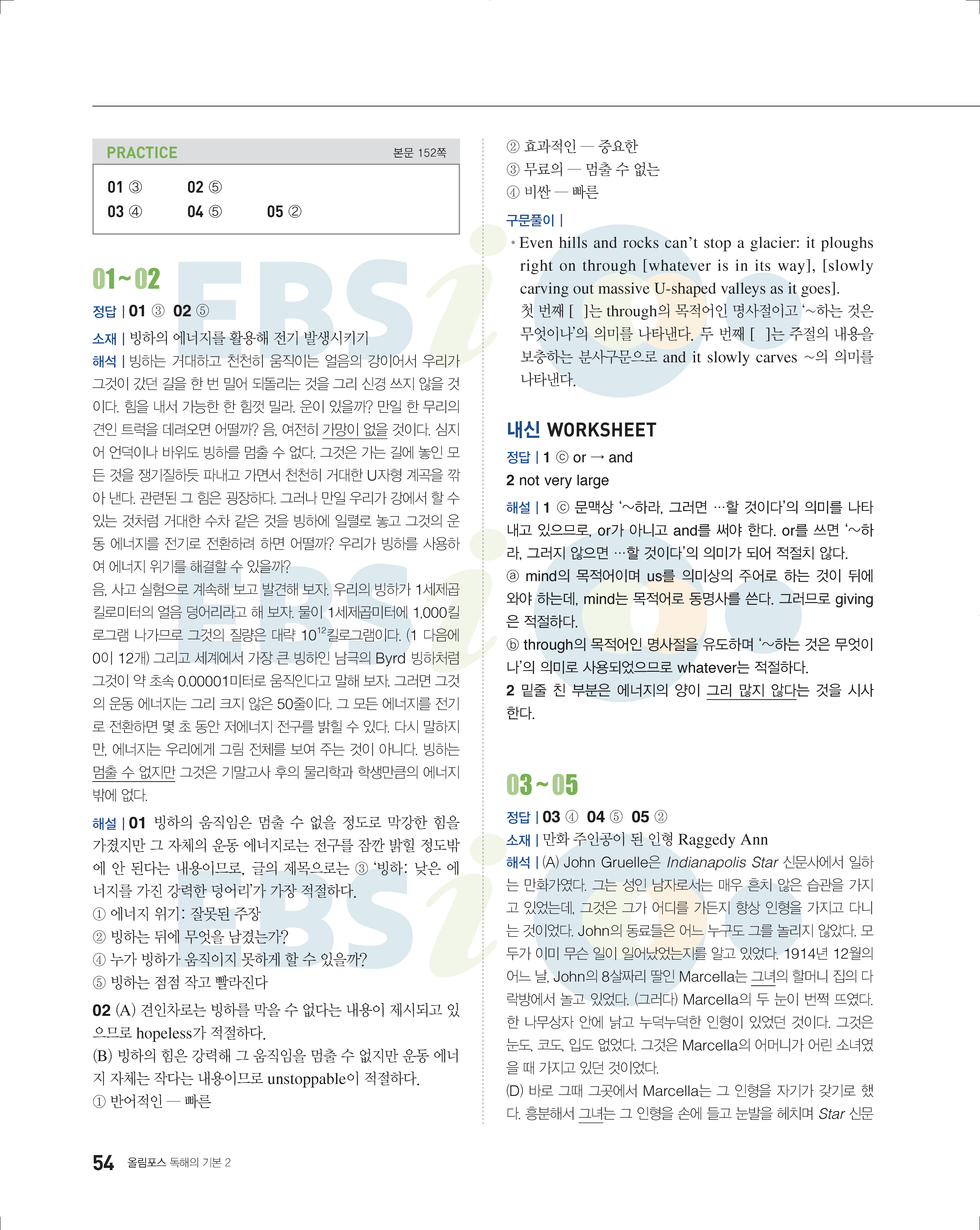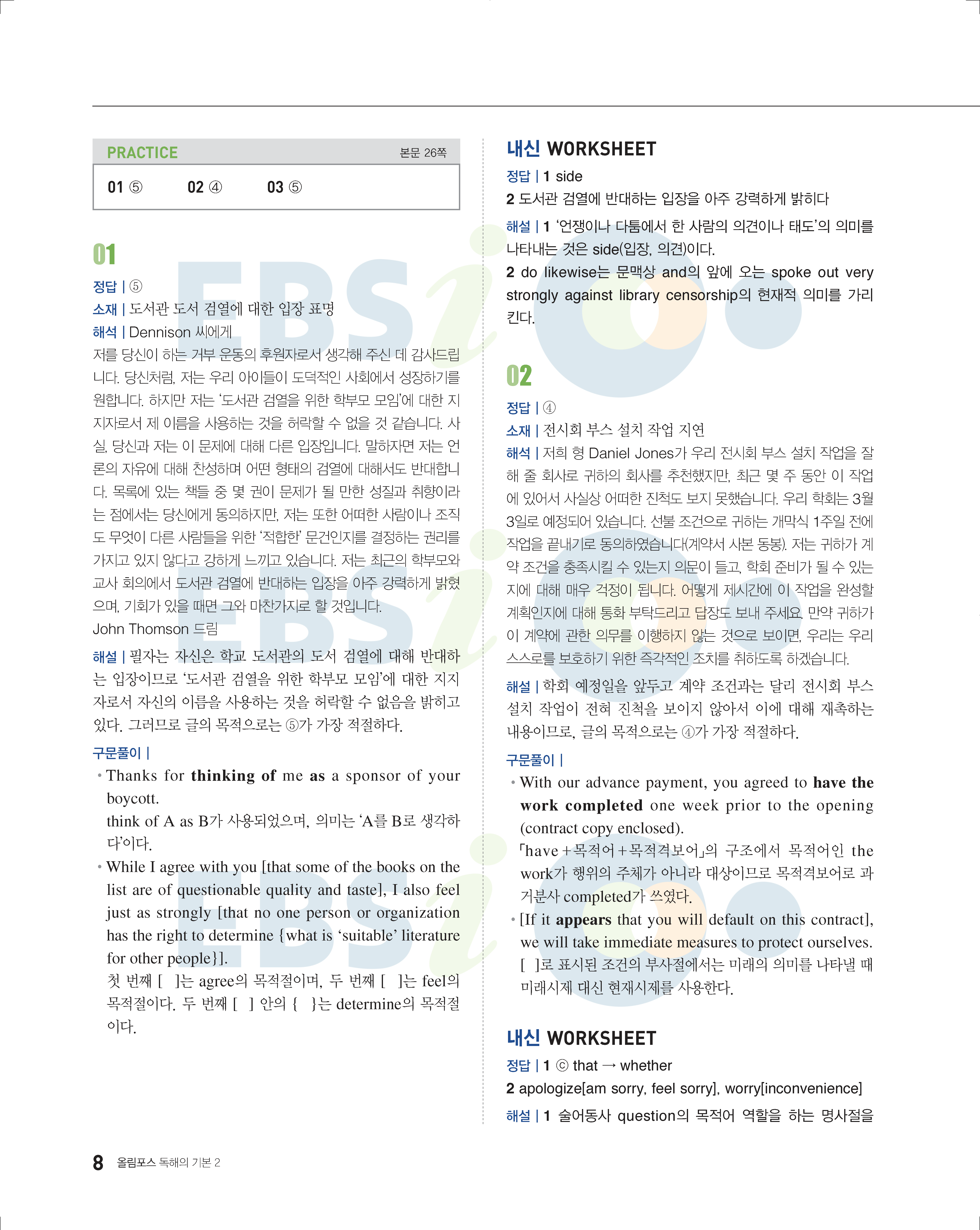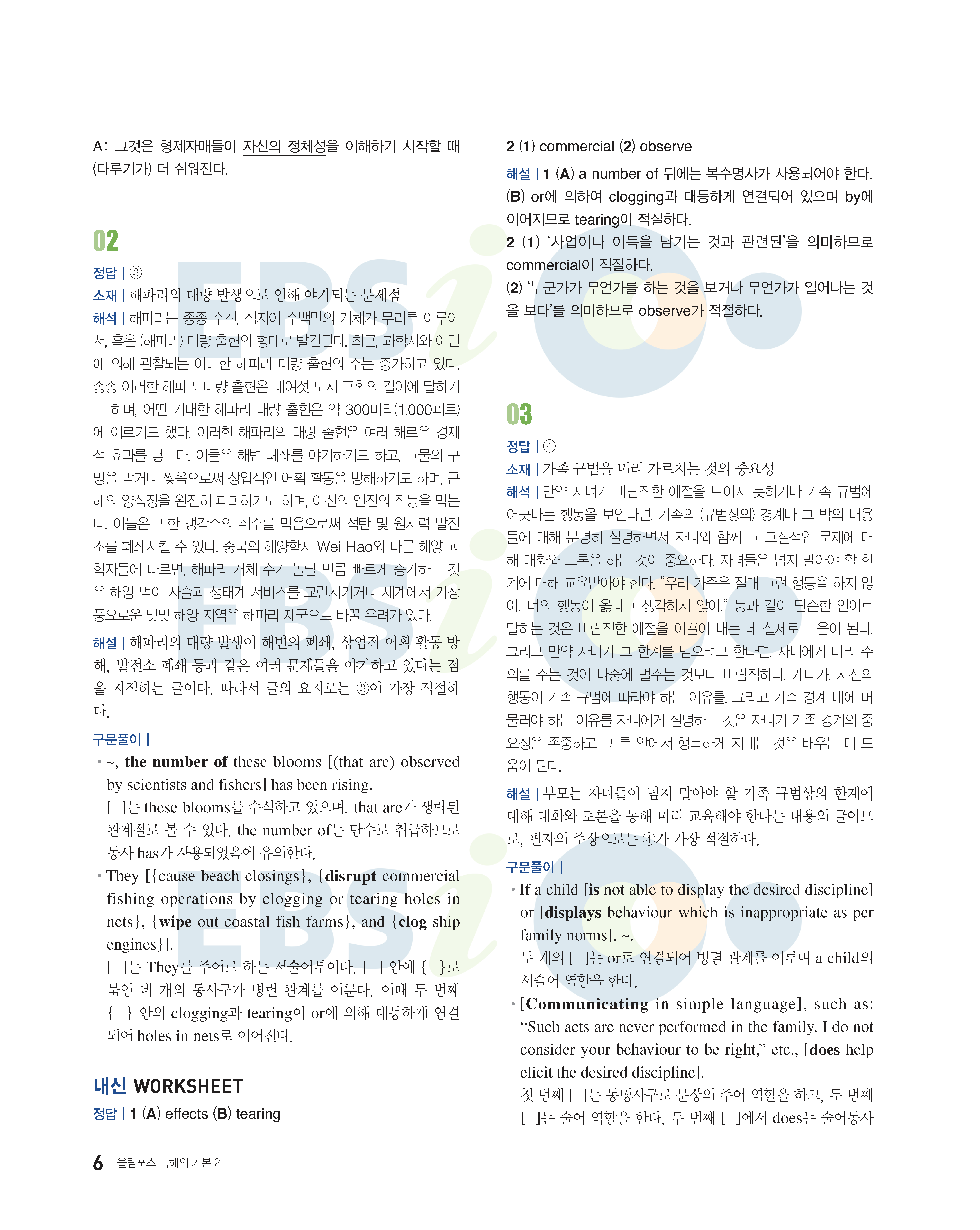 올림포스 독해의기본 2 사진답지 빠른답지 모바일최적화