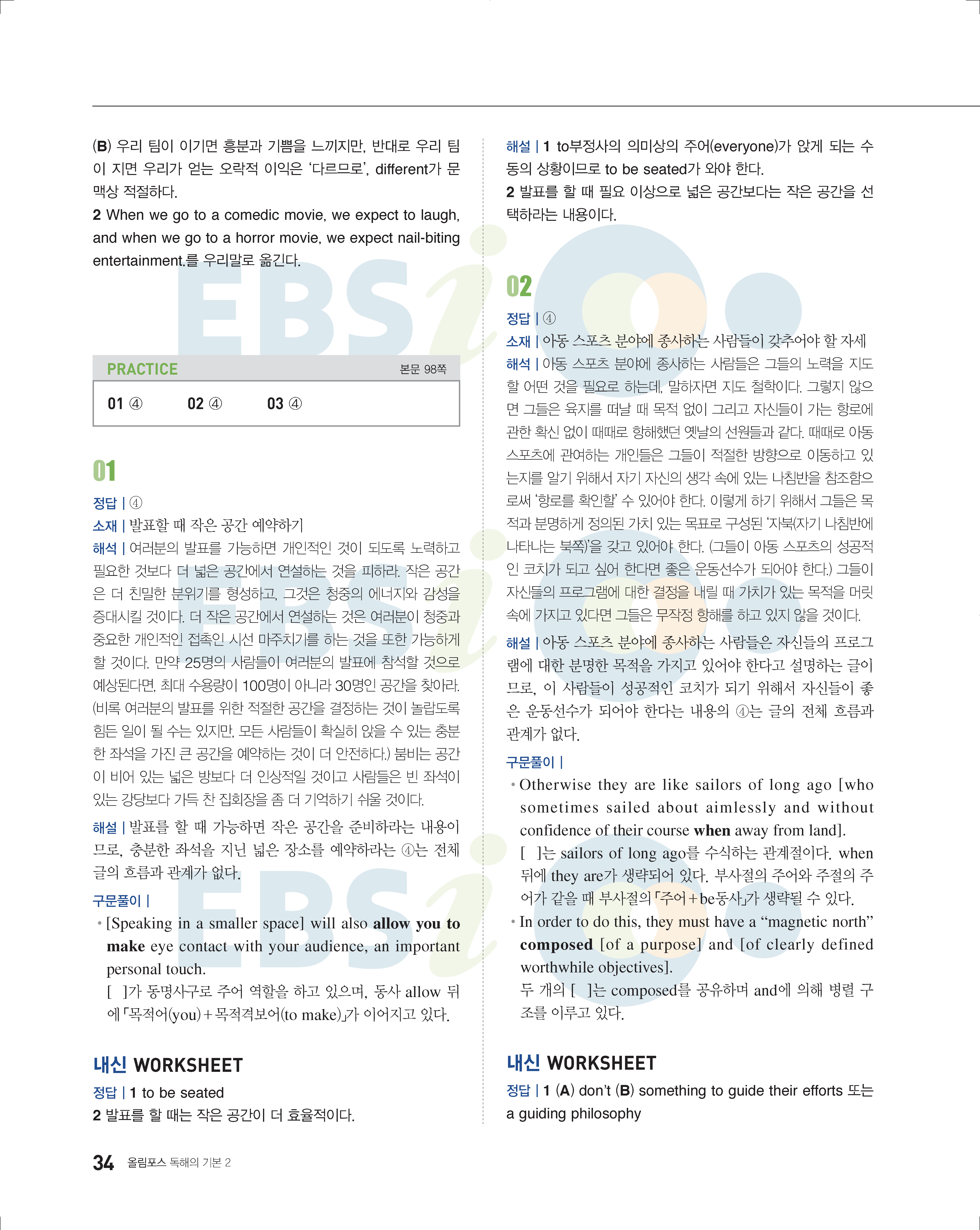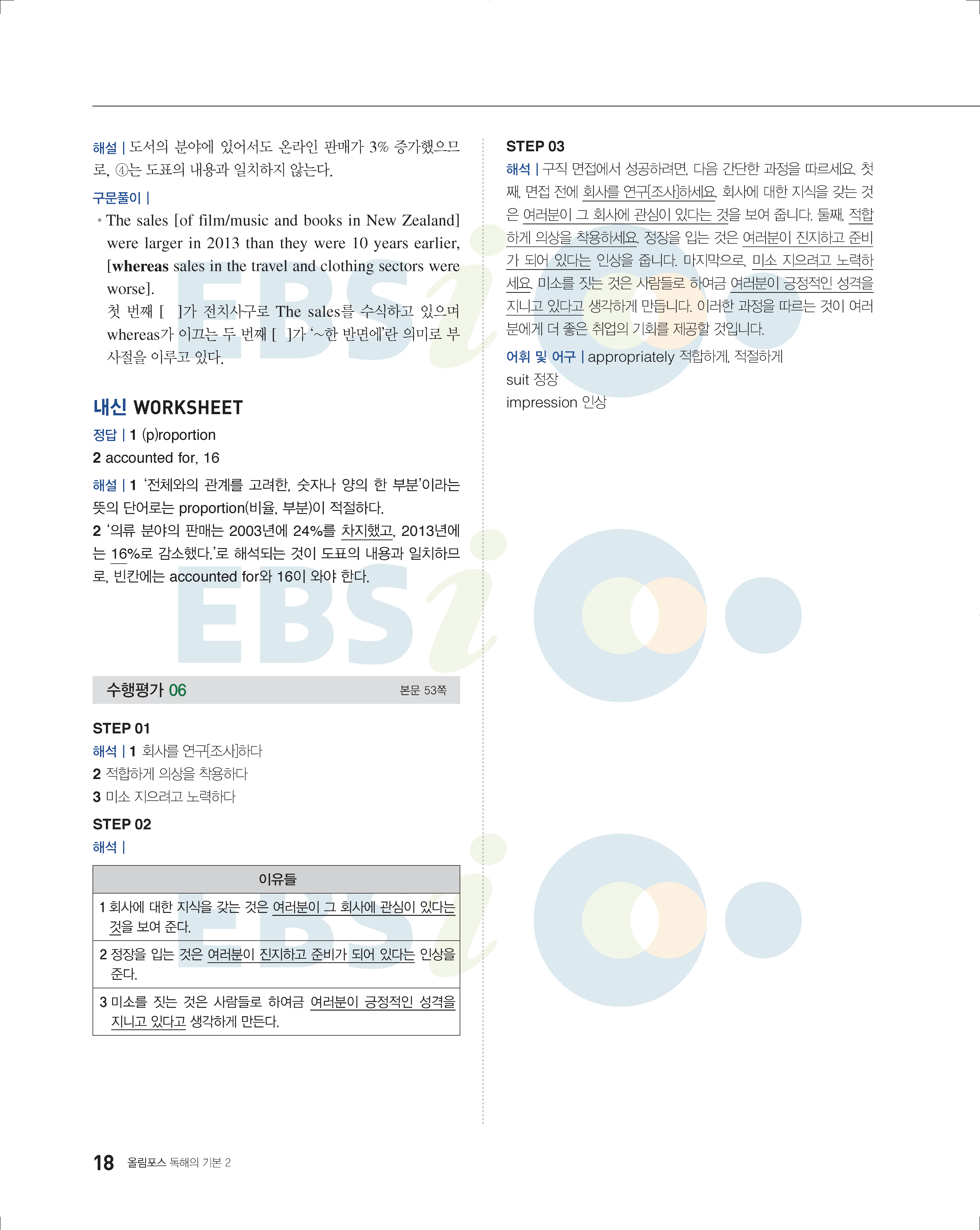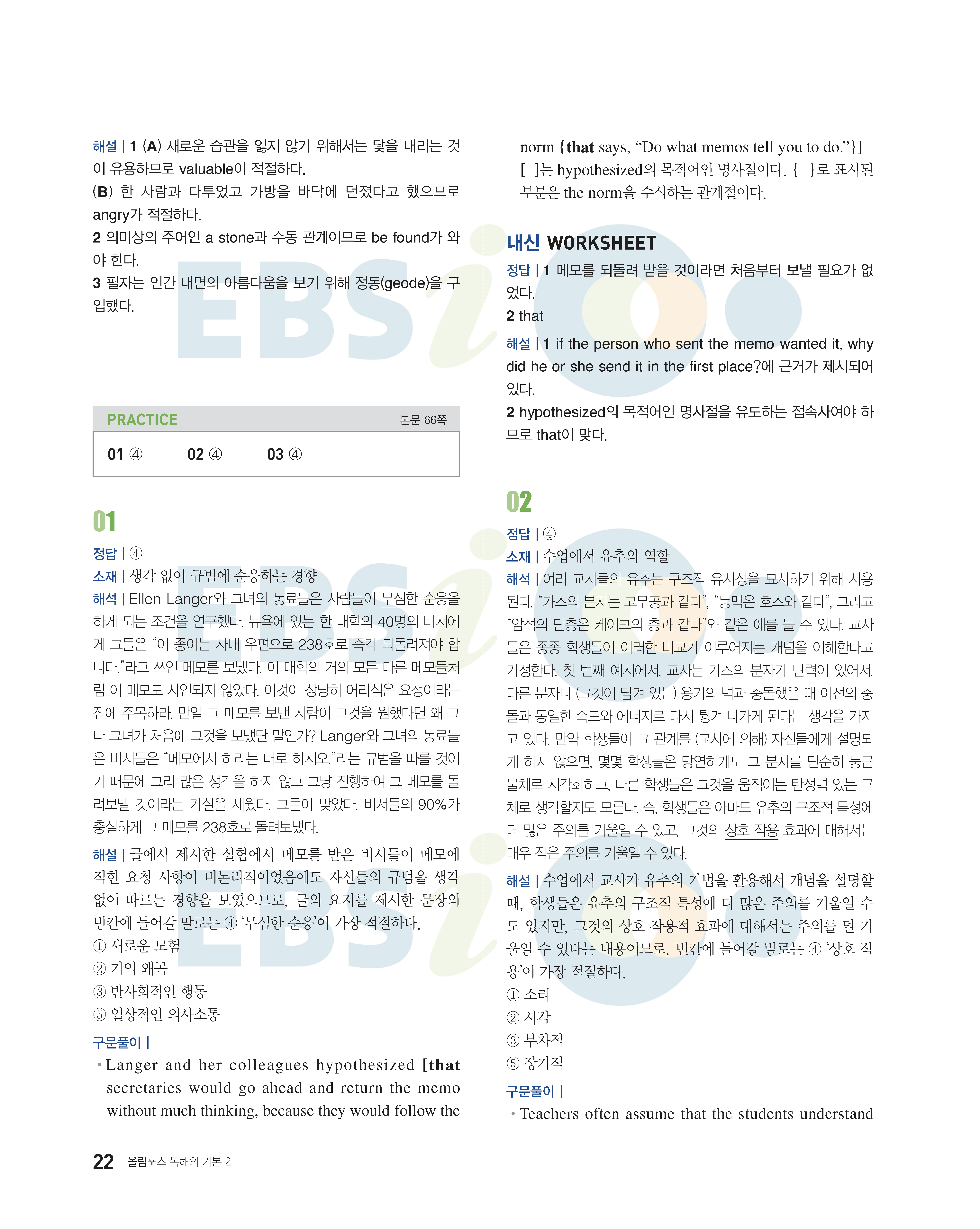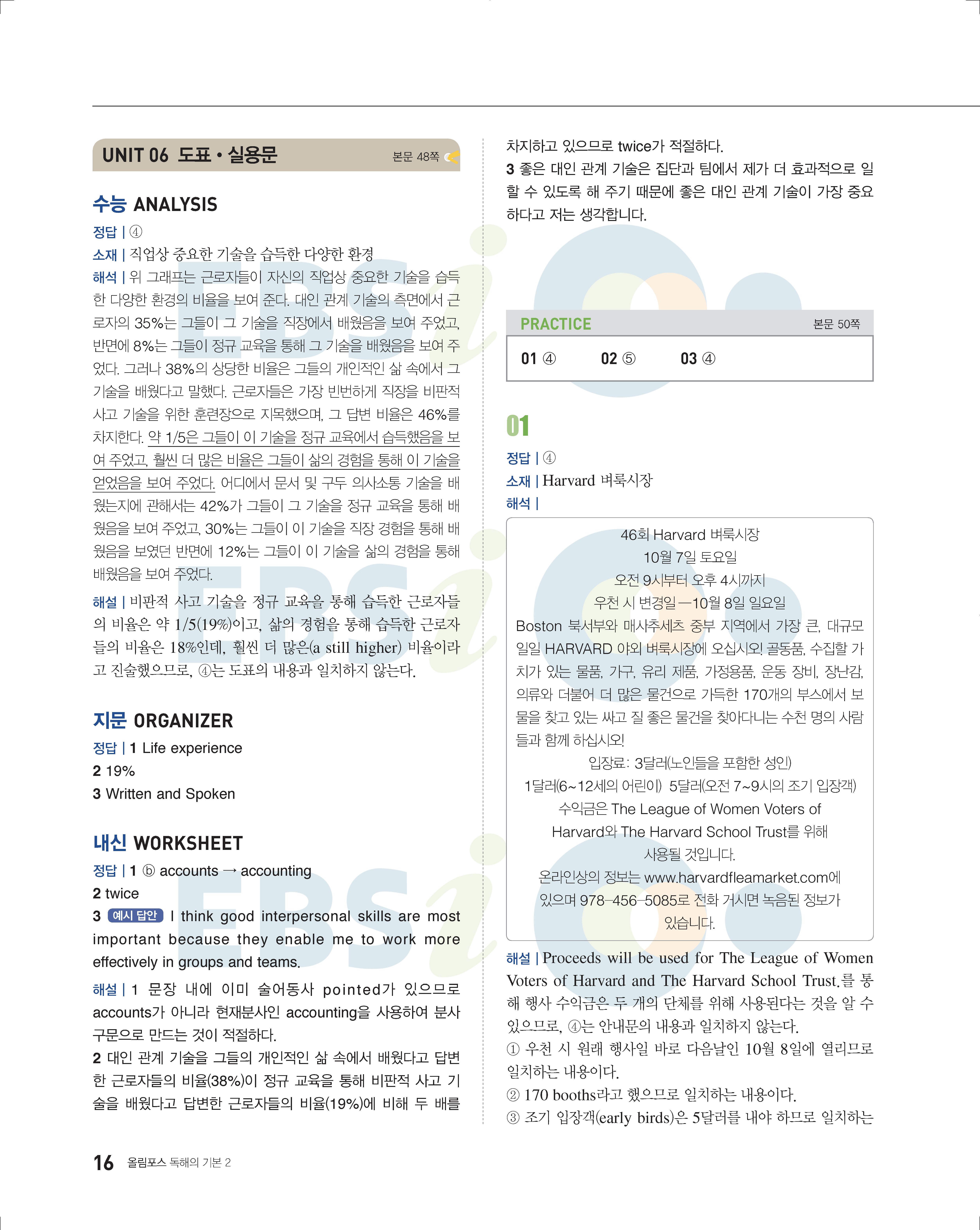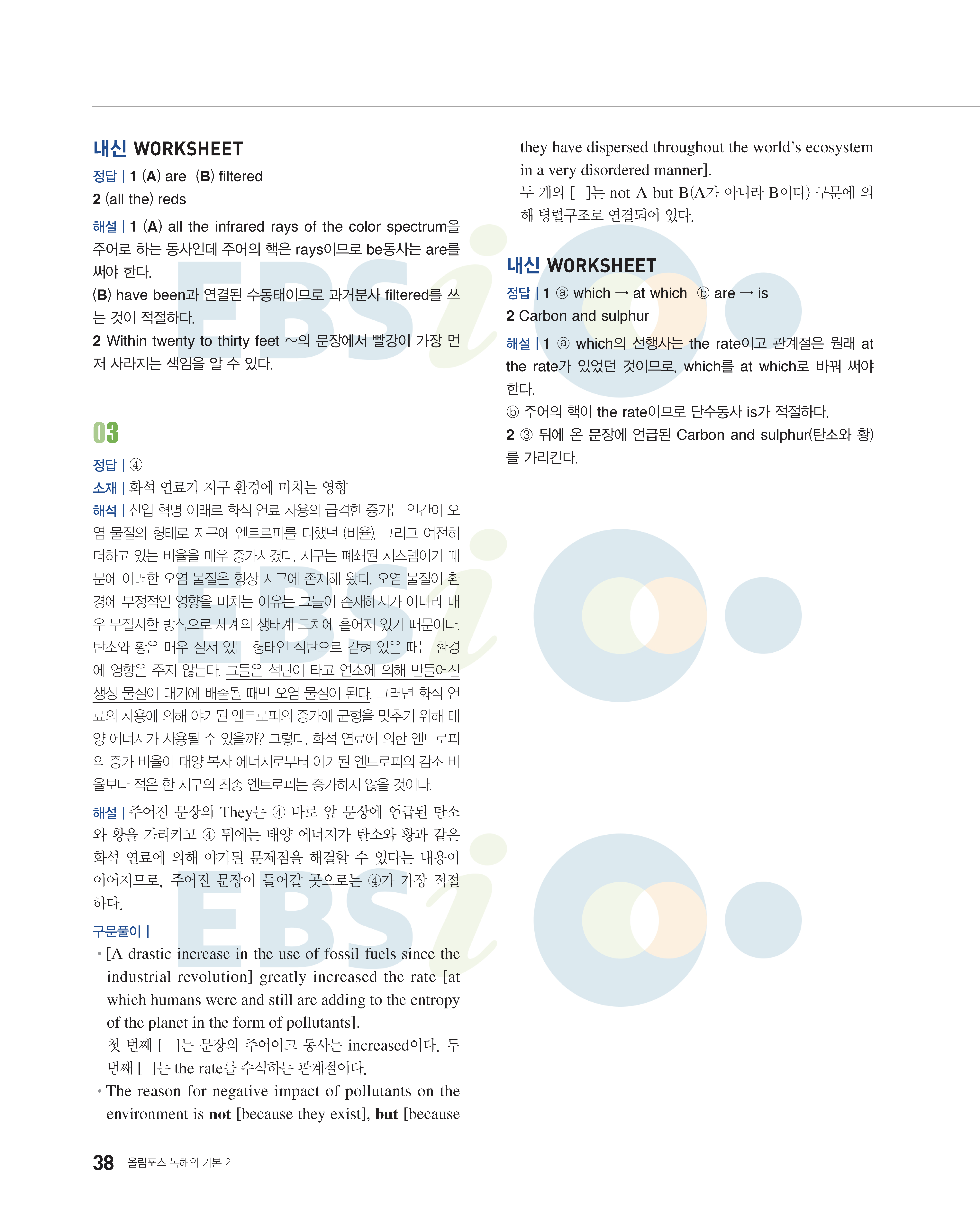 올림포스 독해의기본 2 사진답지 빠른답지 모바일최적화
