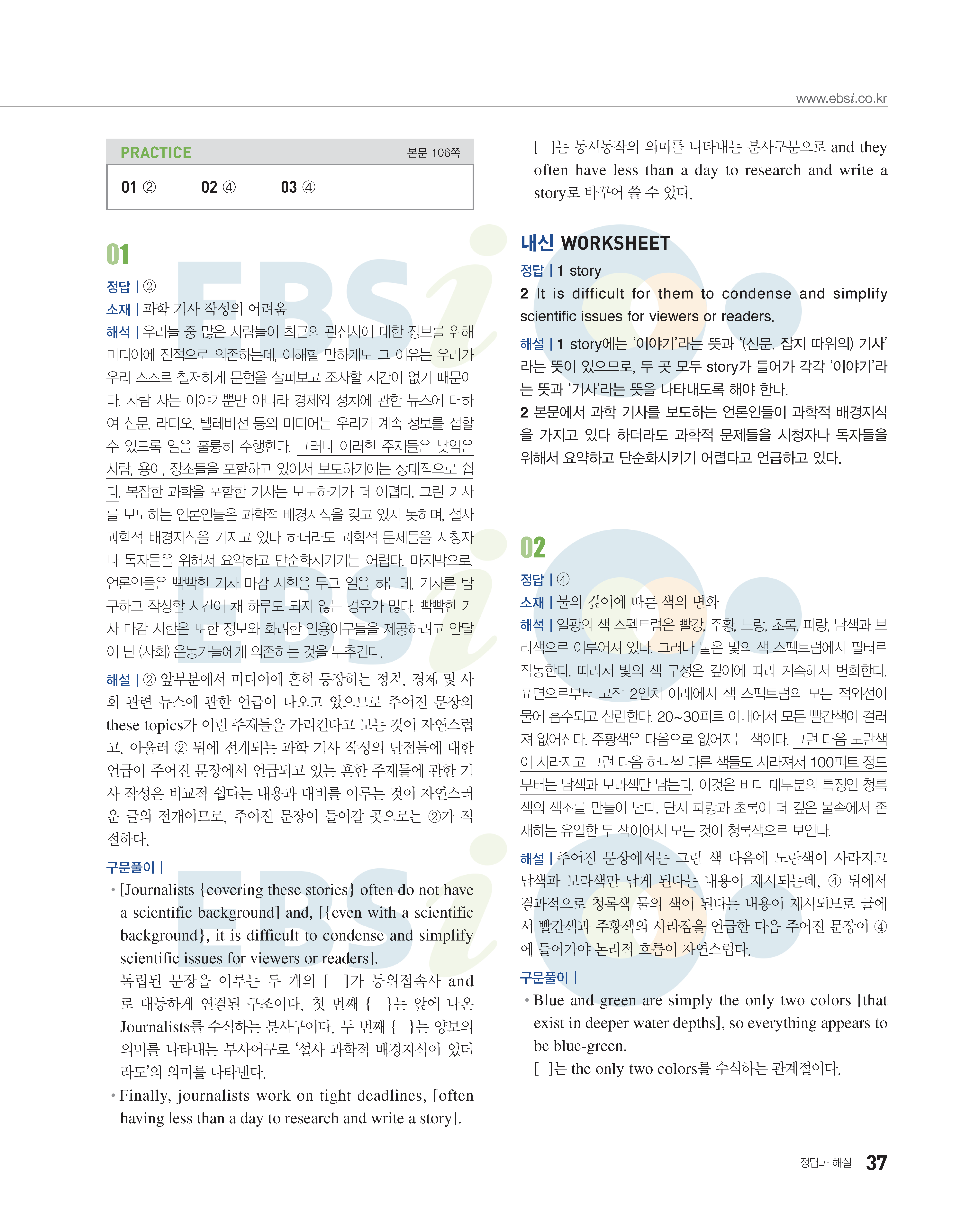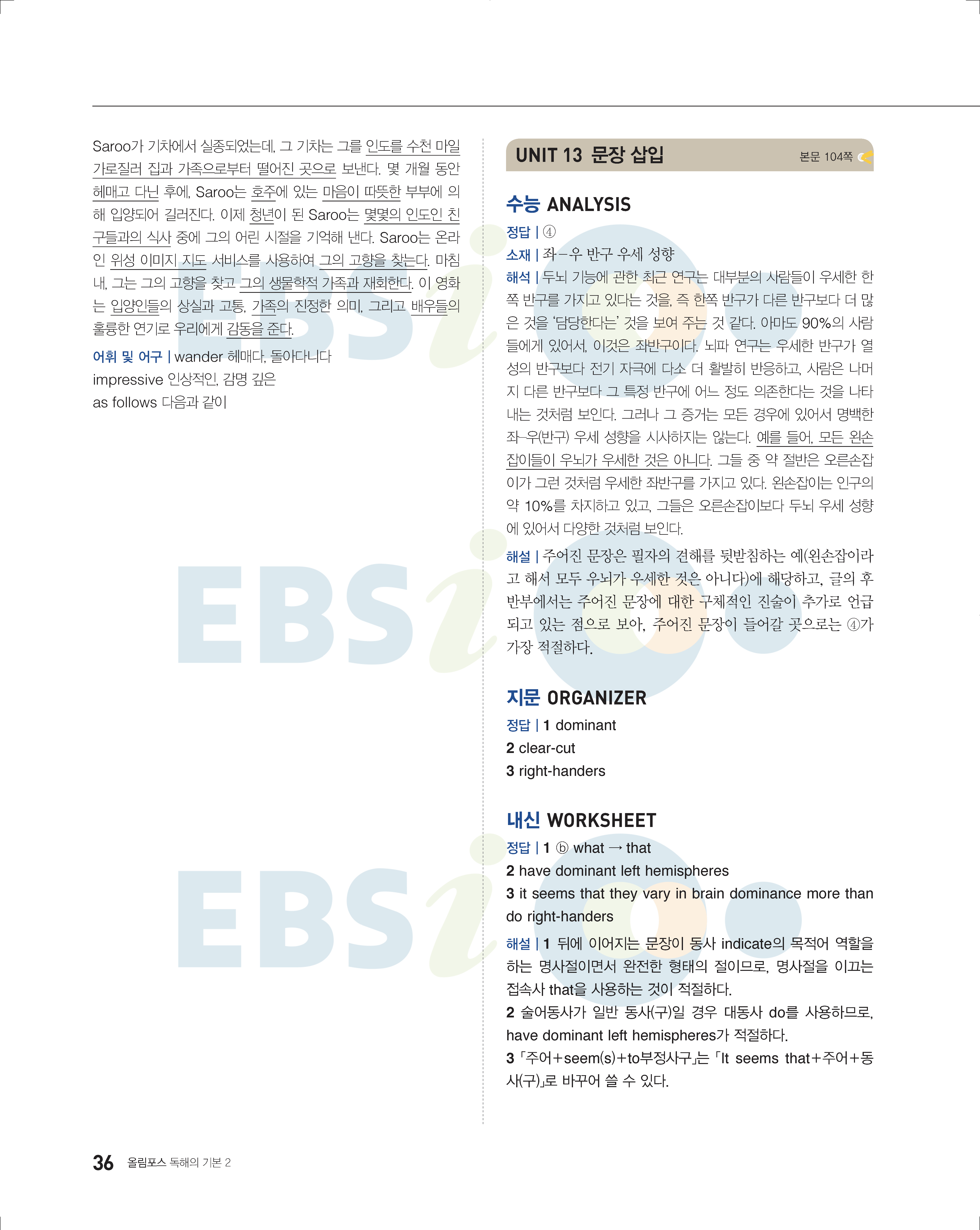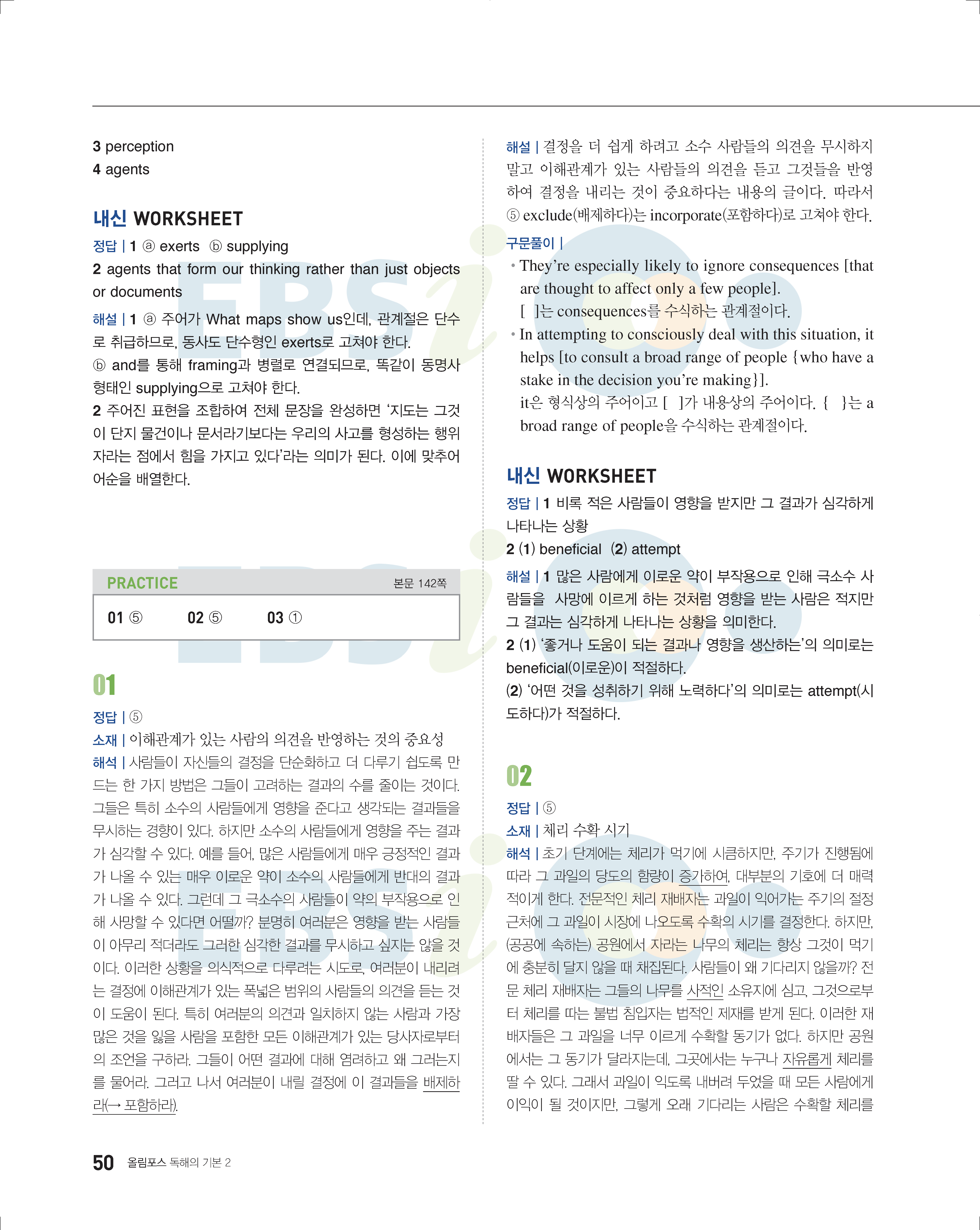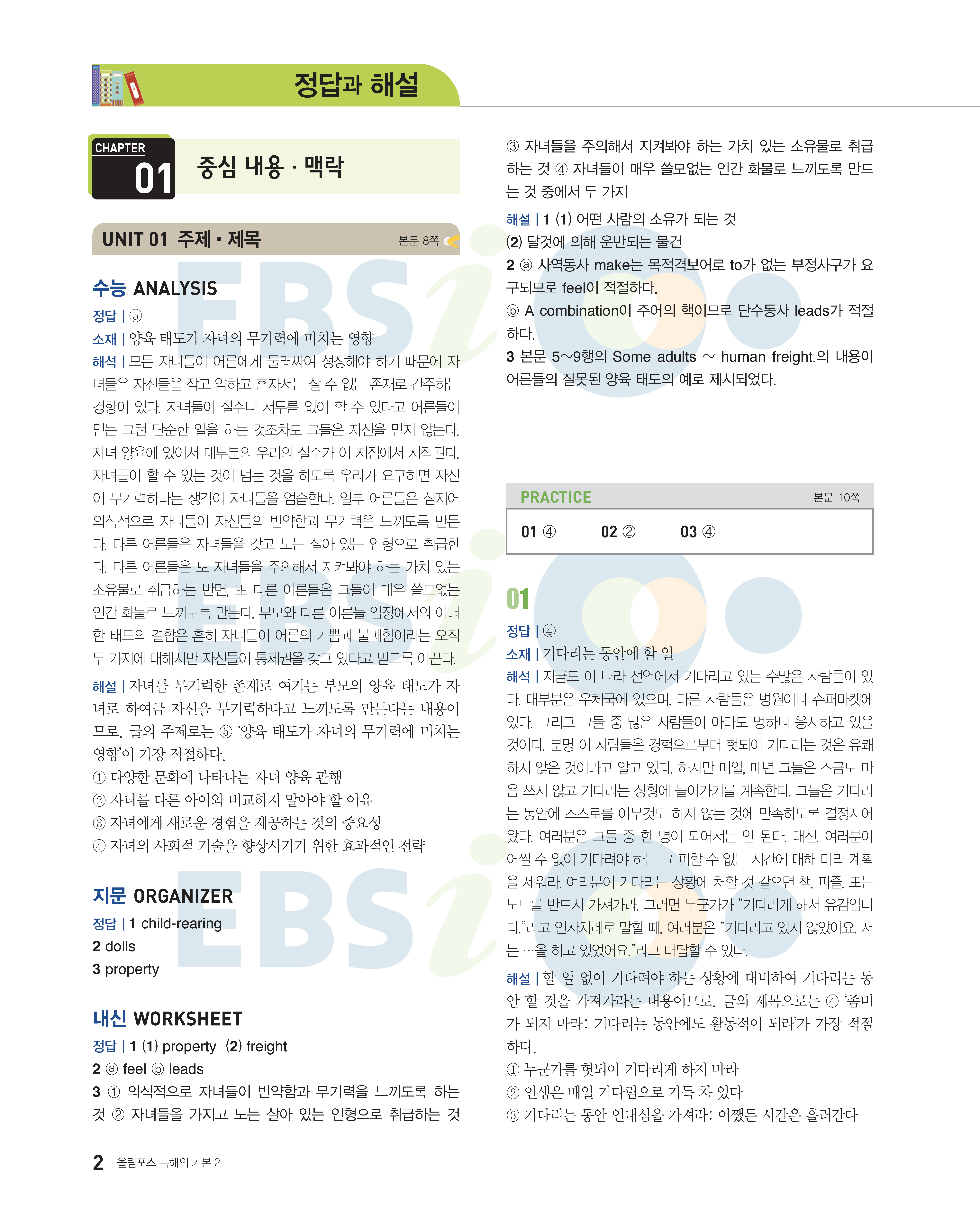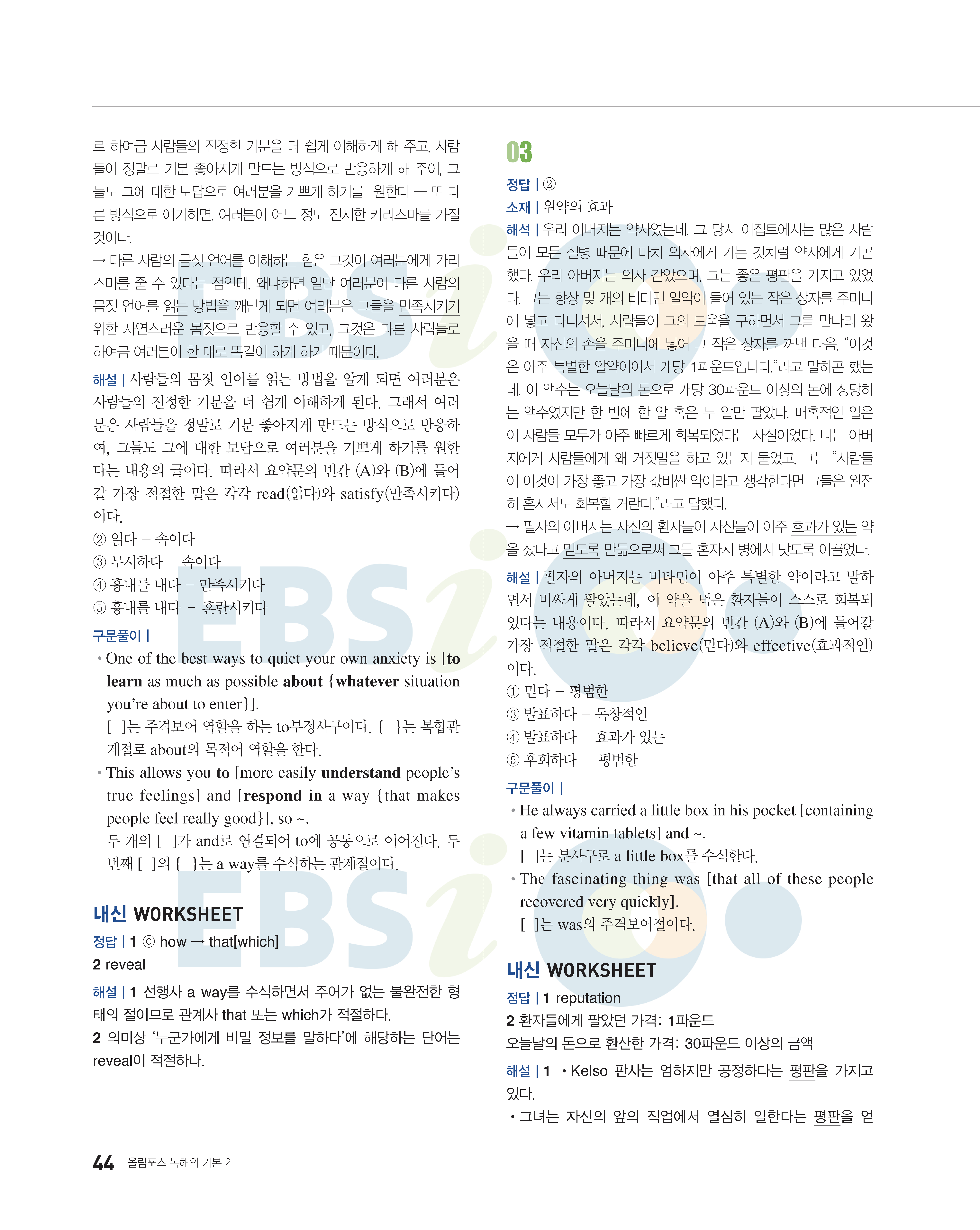 올림포스 독해의기본 2 사진답지 빠른답지 모바일최적화