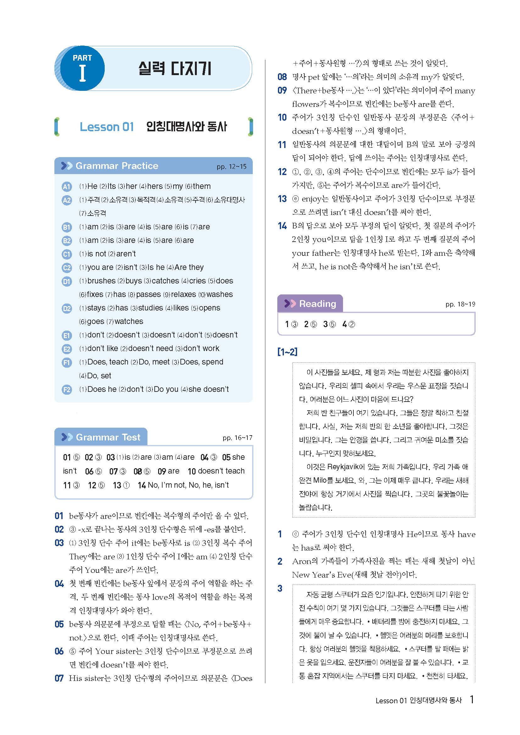 올댓중학영어 1-1 사진답지 빠른답지 모바일최적화