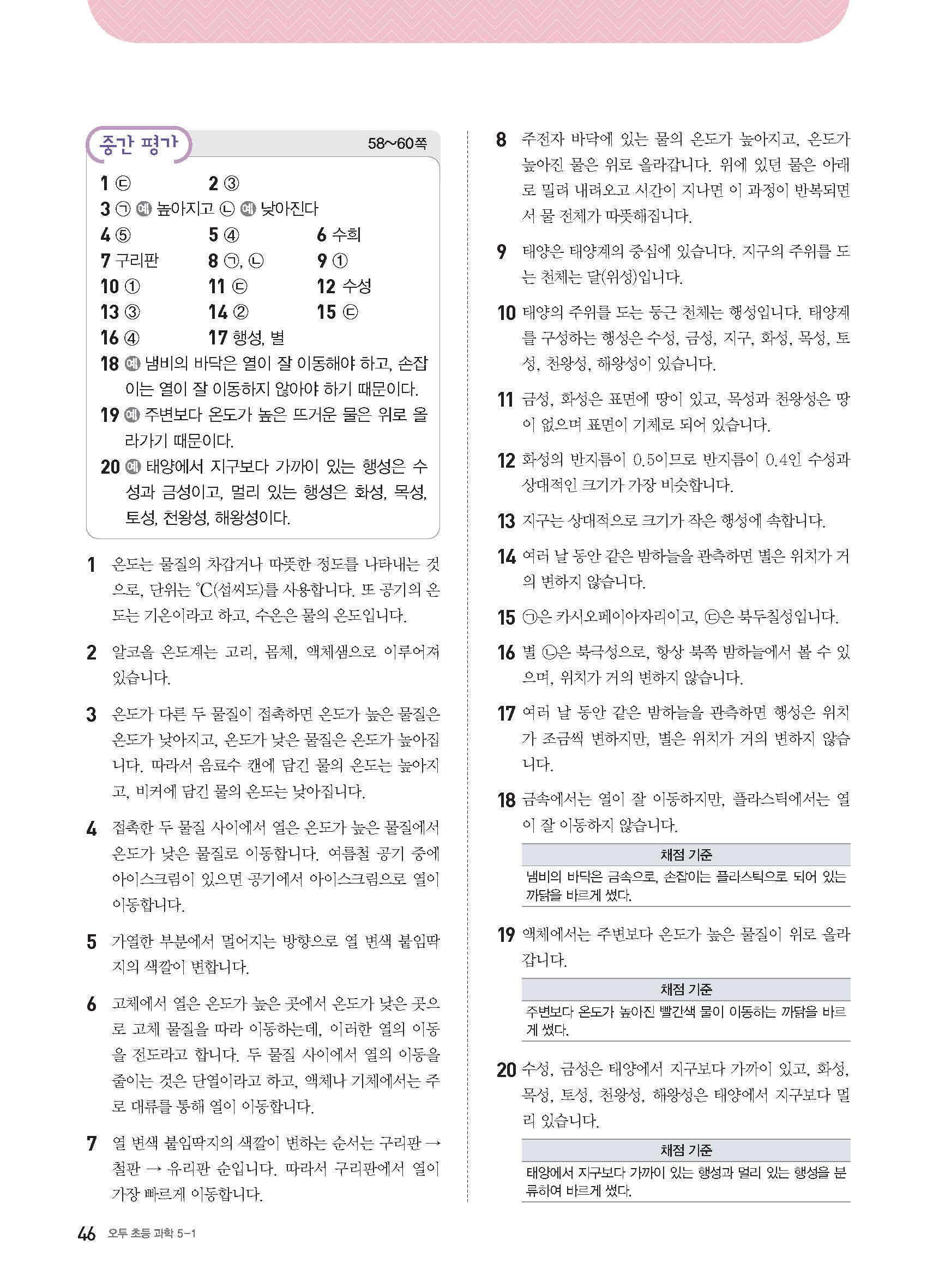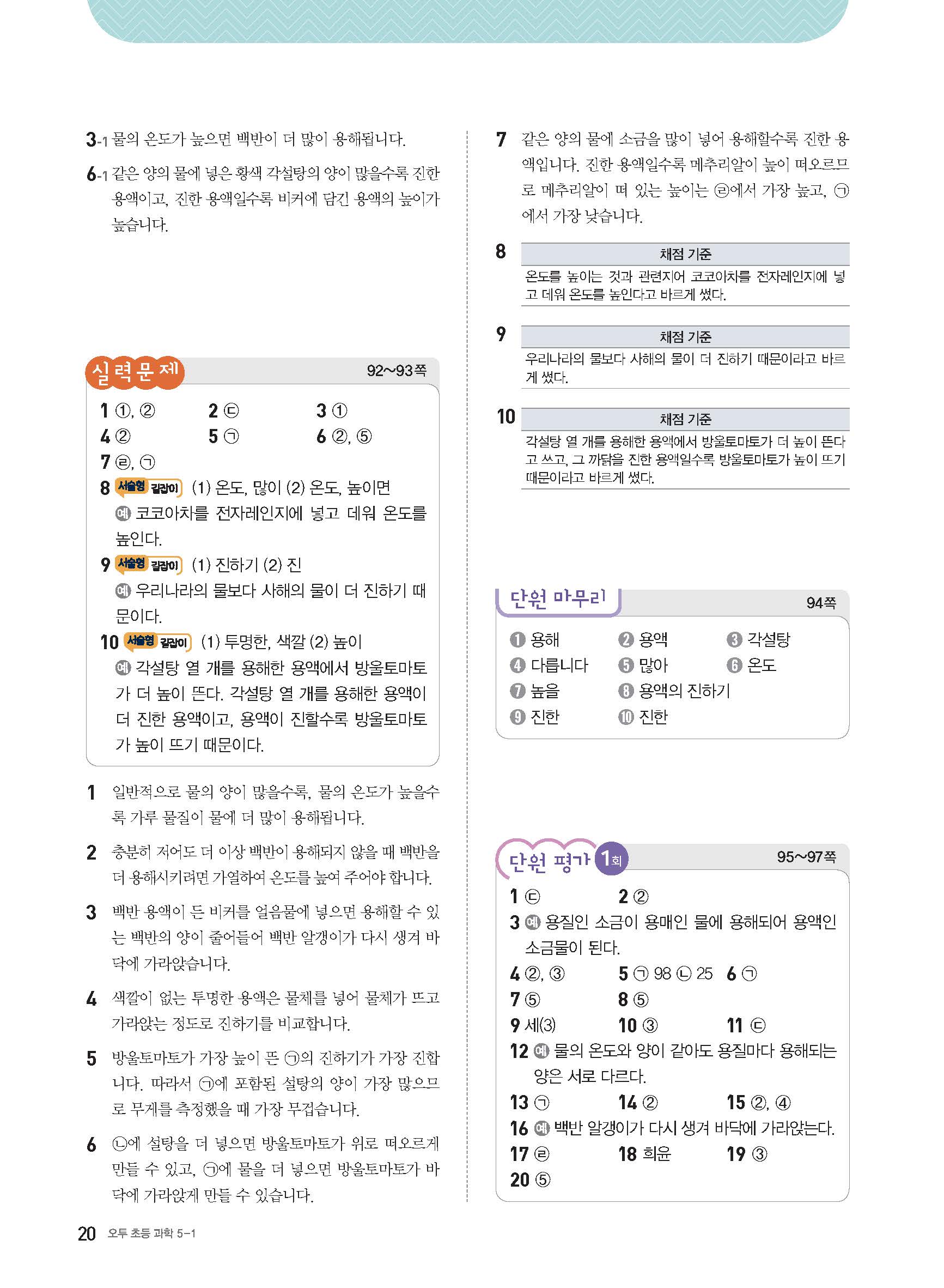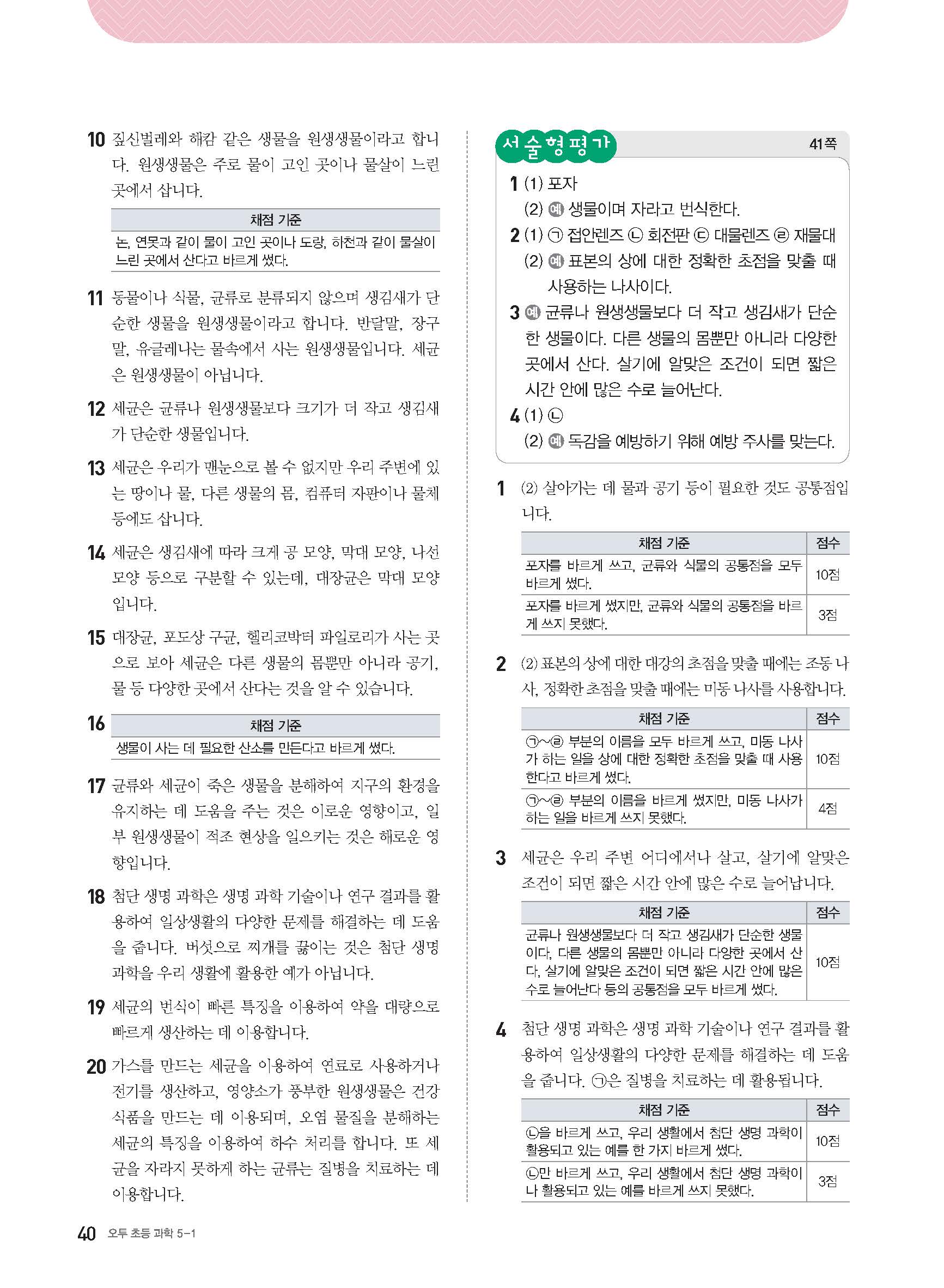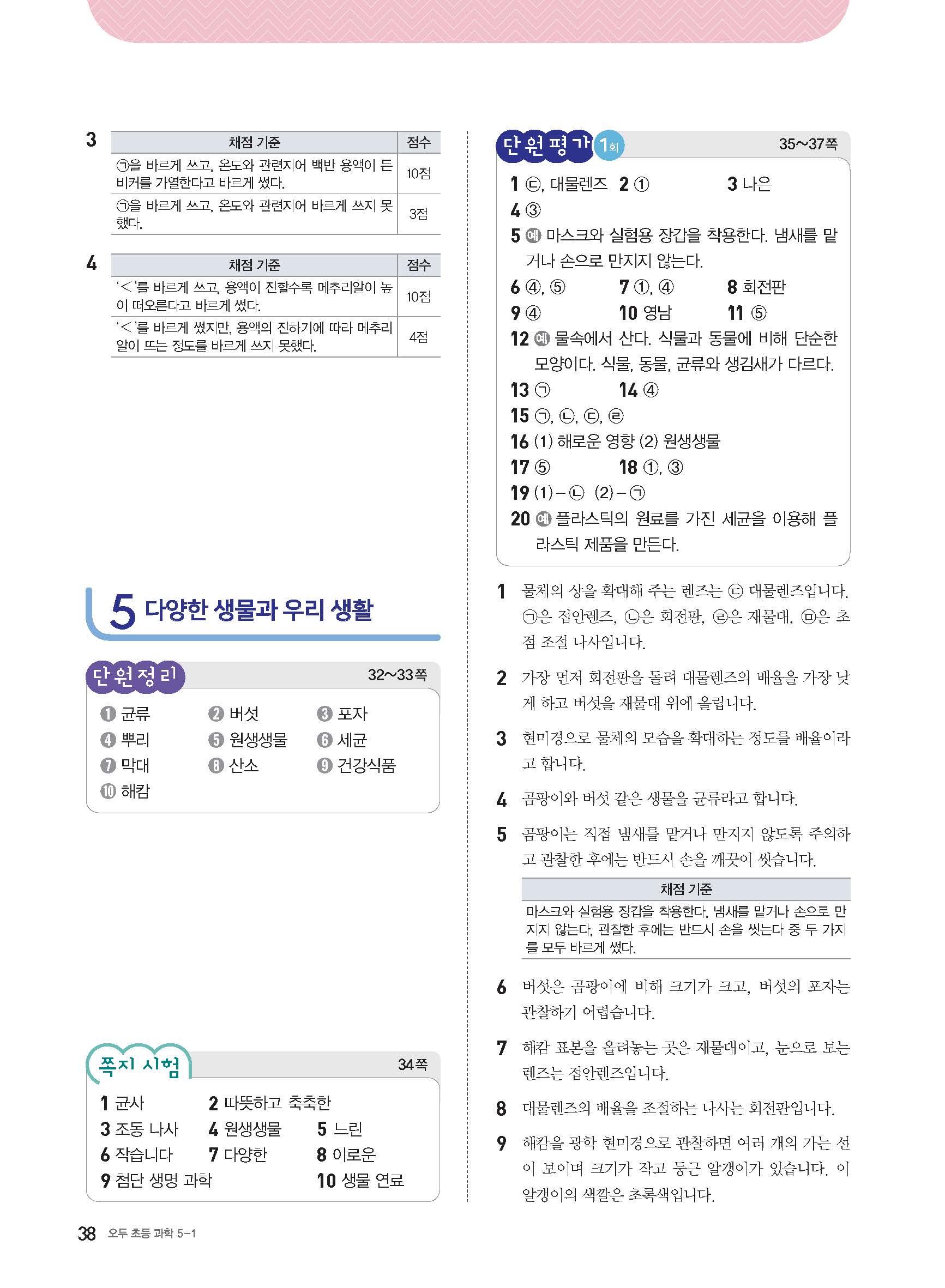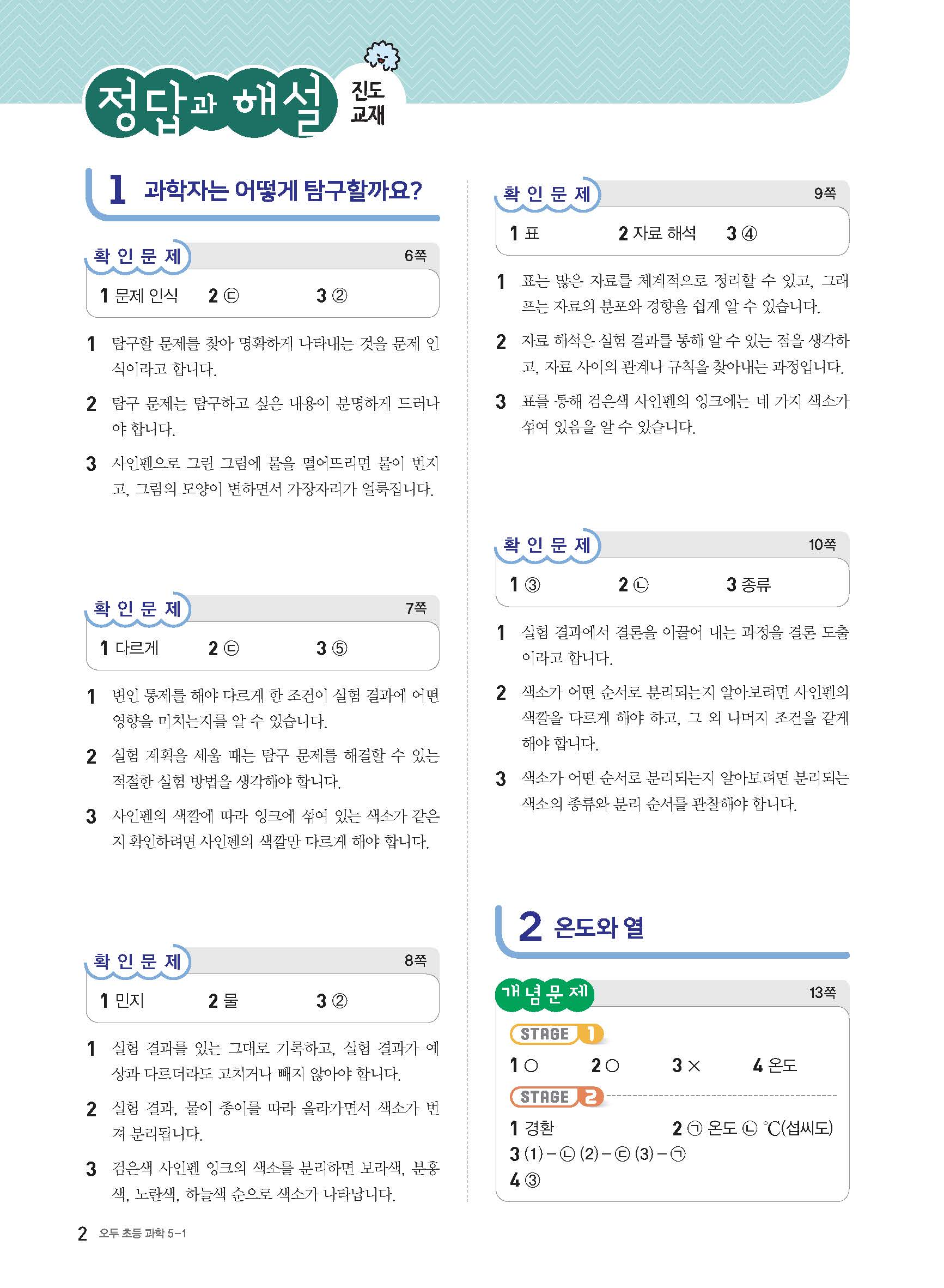오투초등과학 5-1 사진답지 빠른답지 모바일최적화