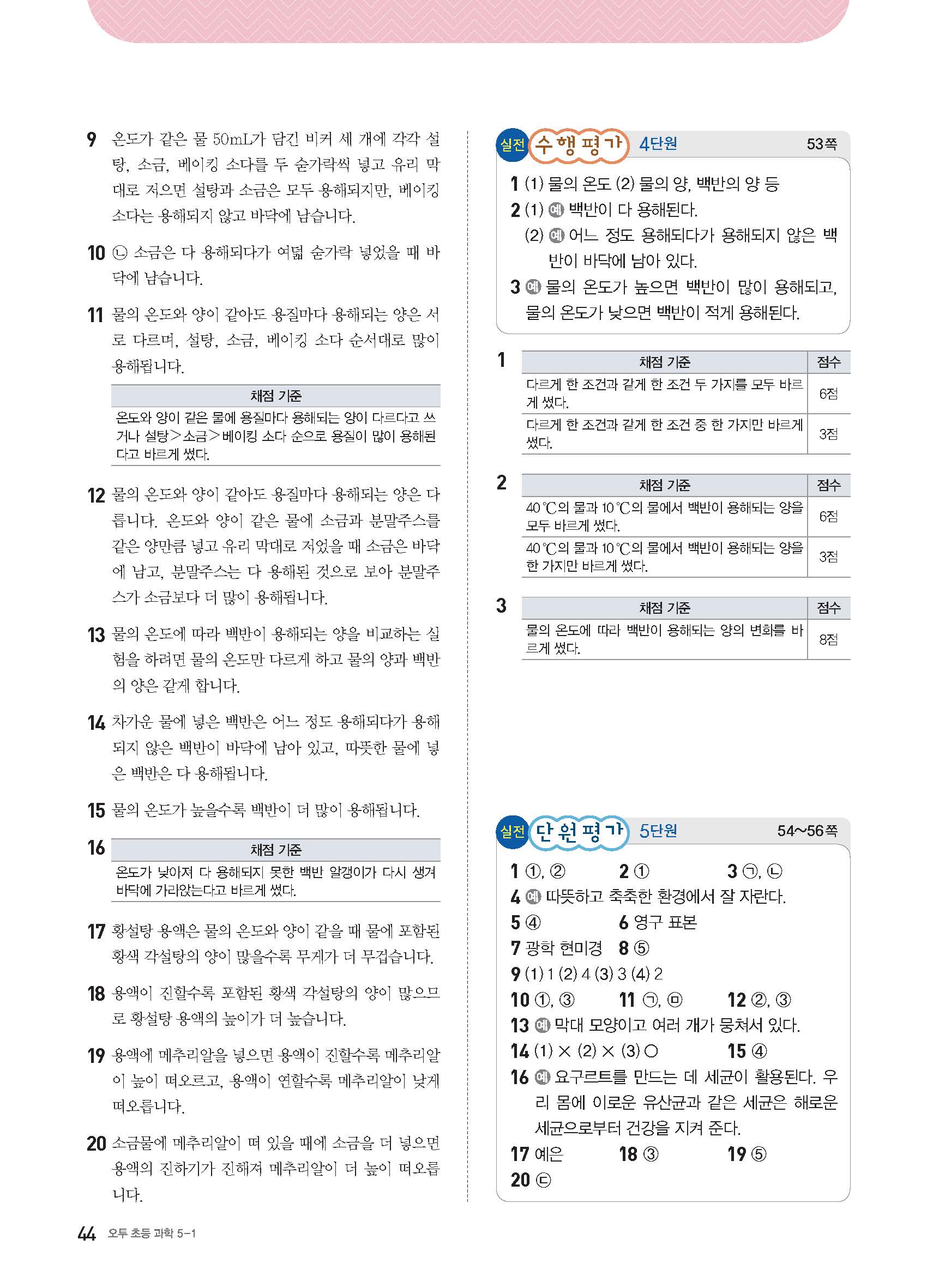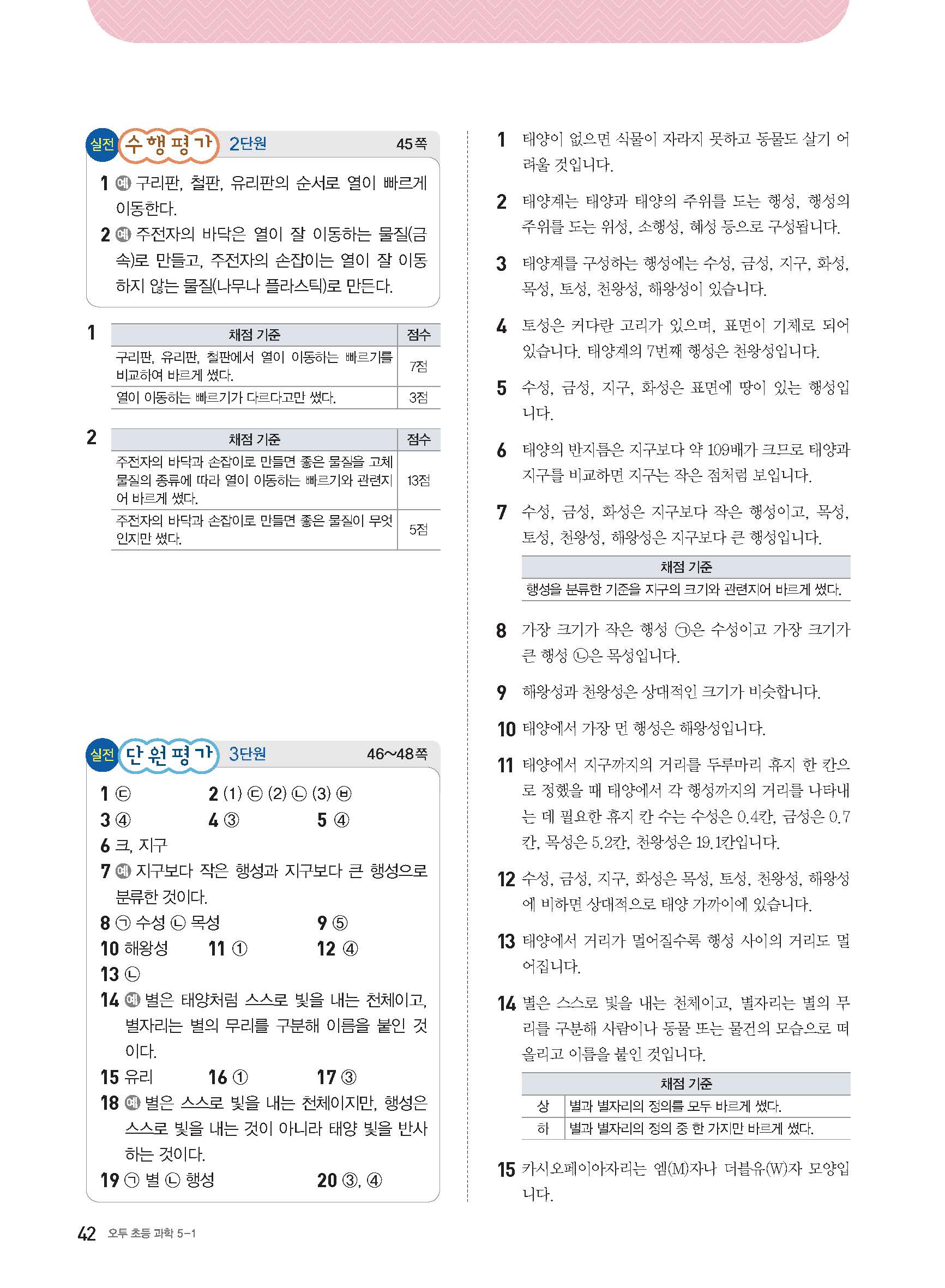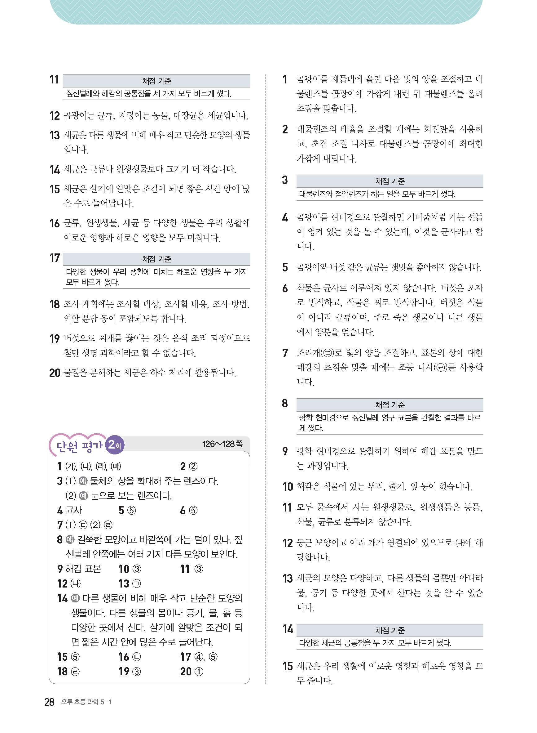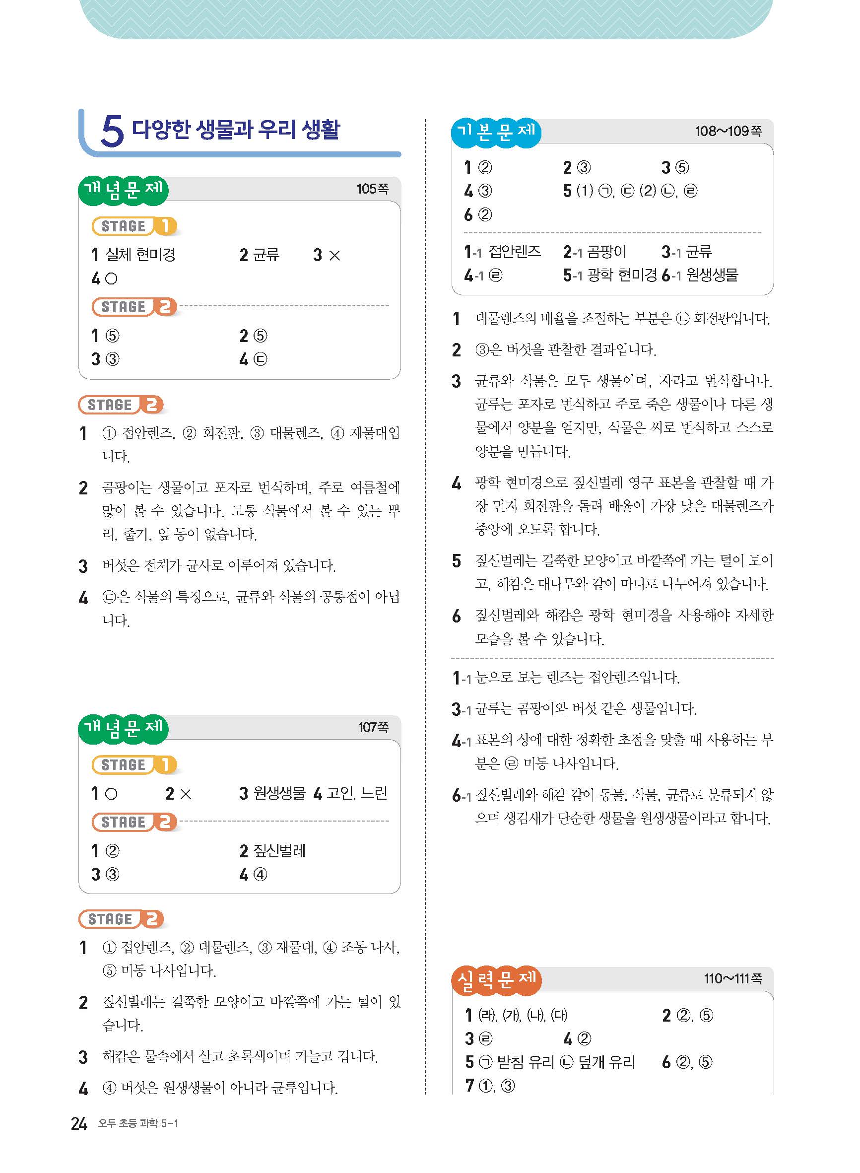 오투초등과학 5-1 사진답지 빠른답지 모바일최적화