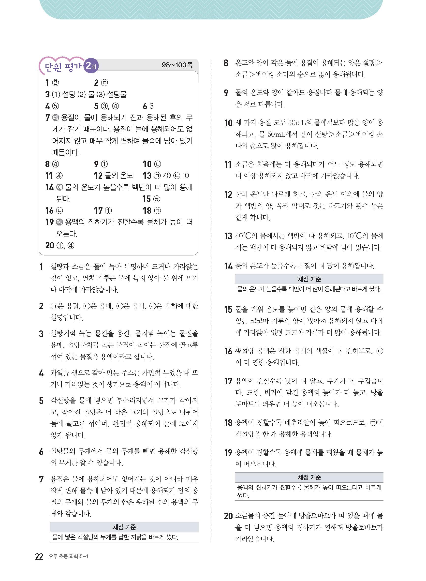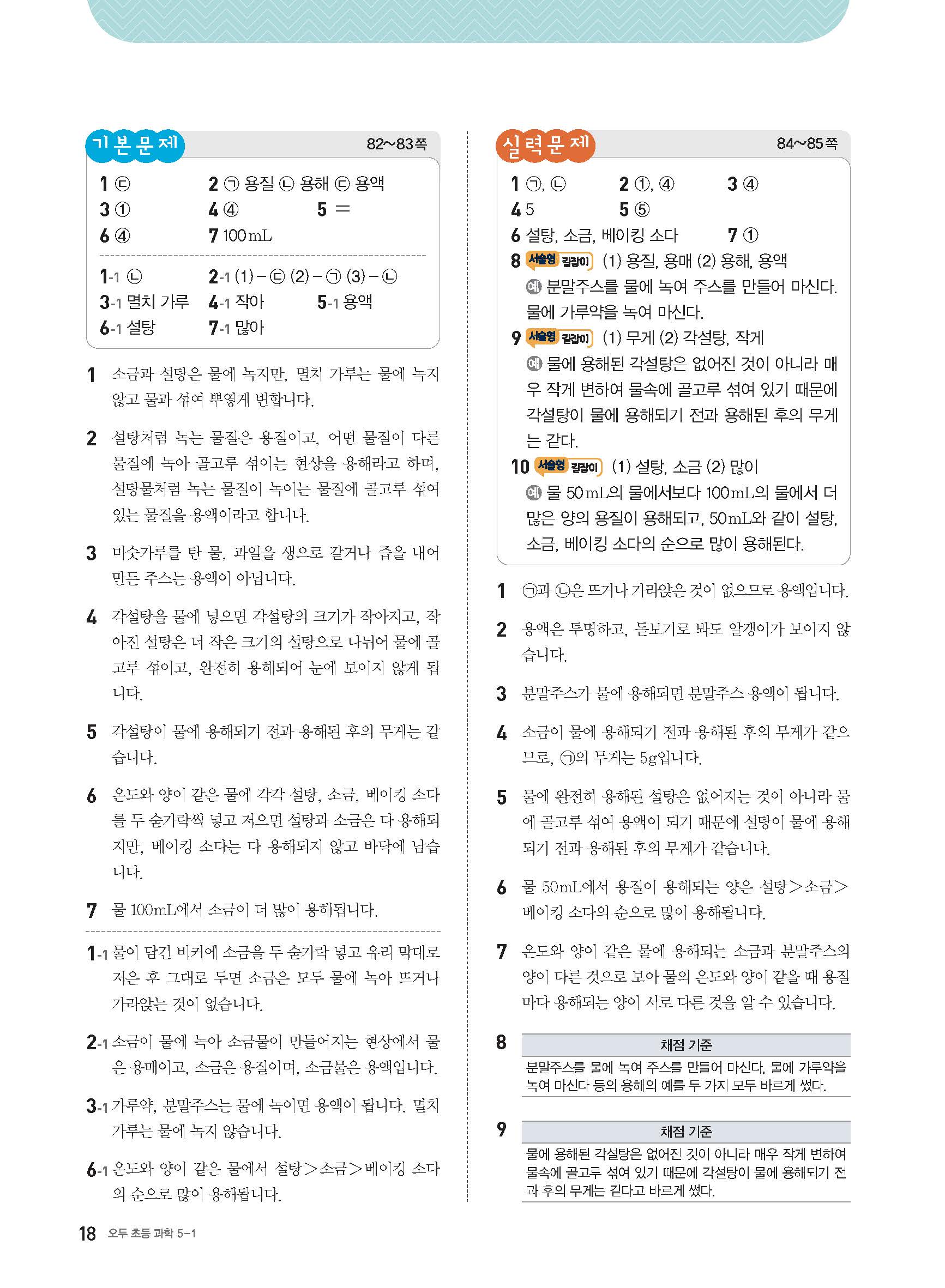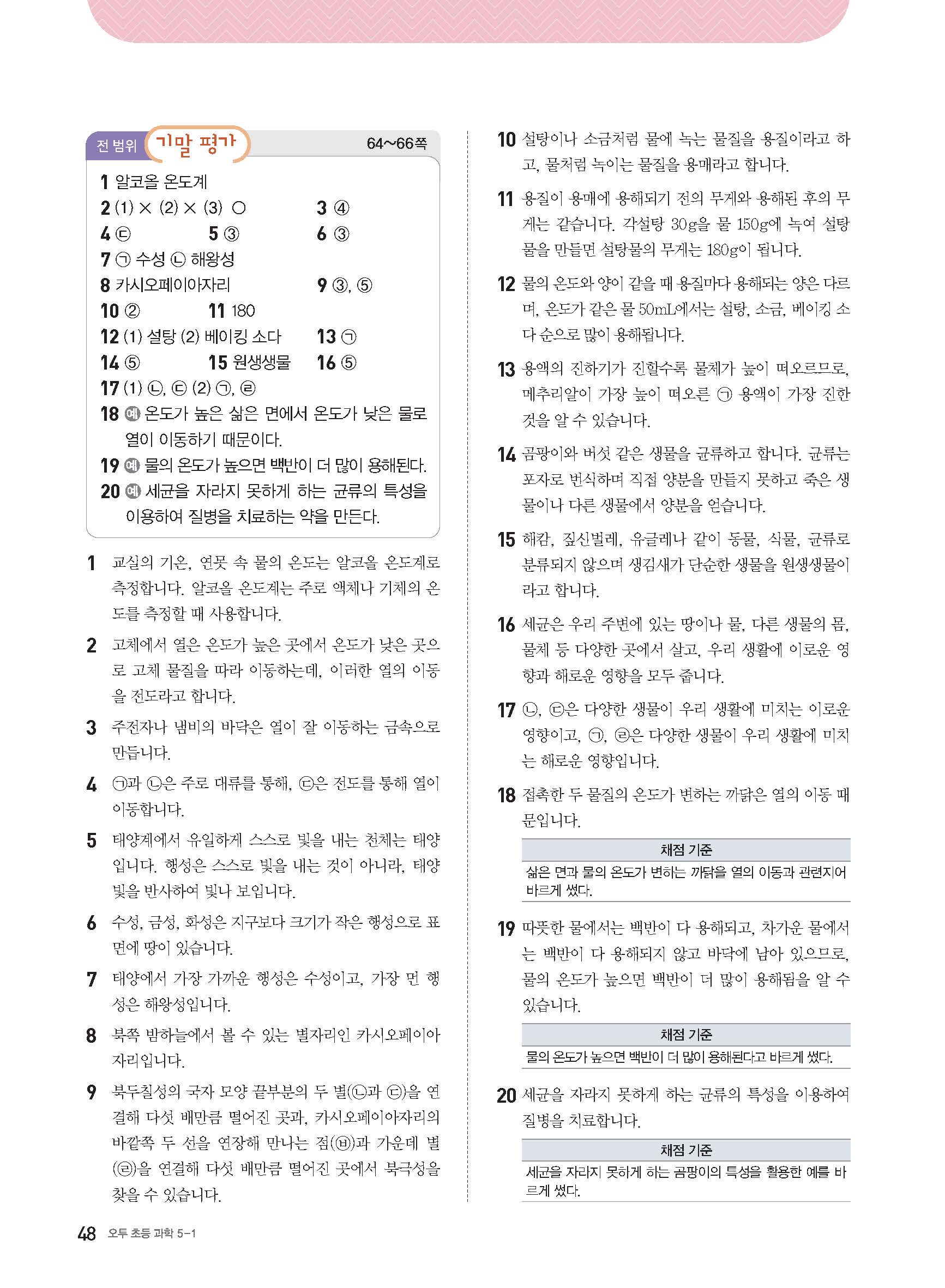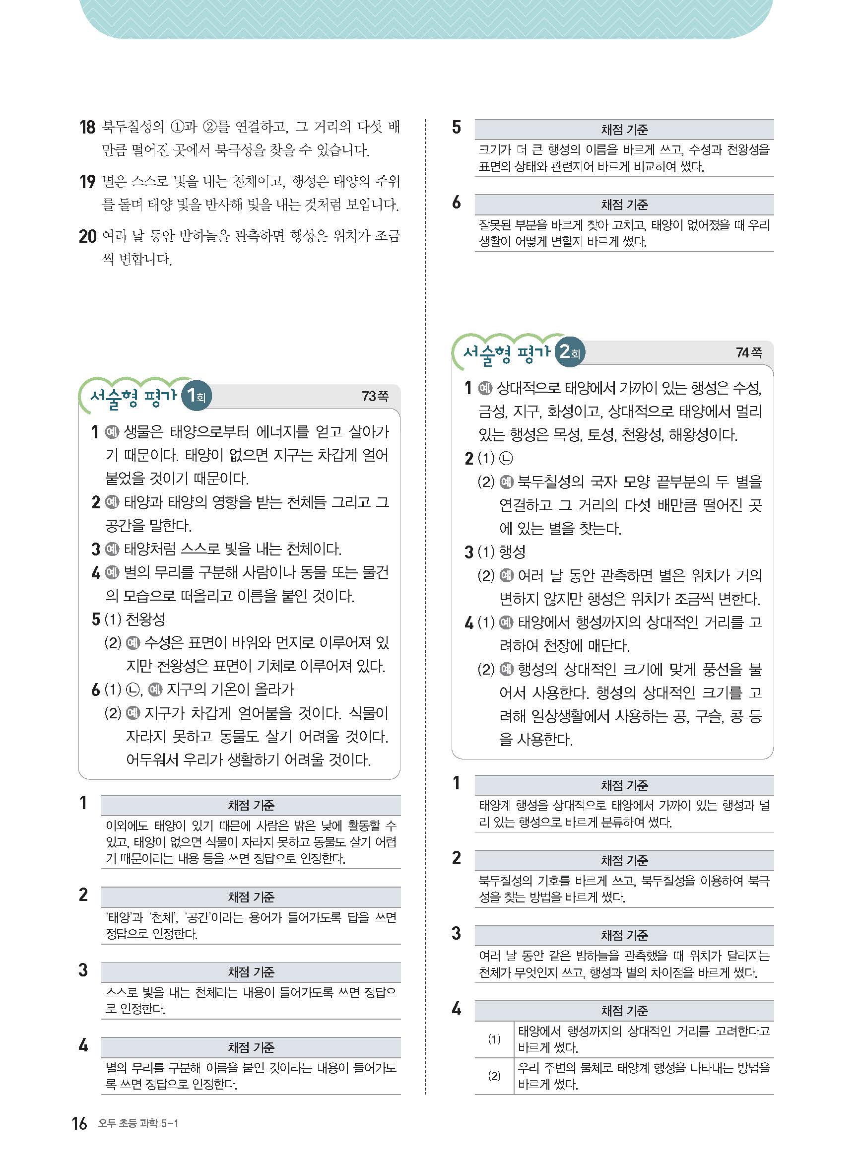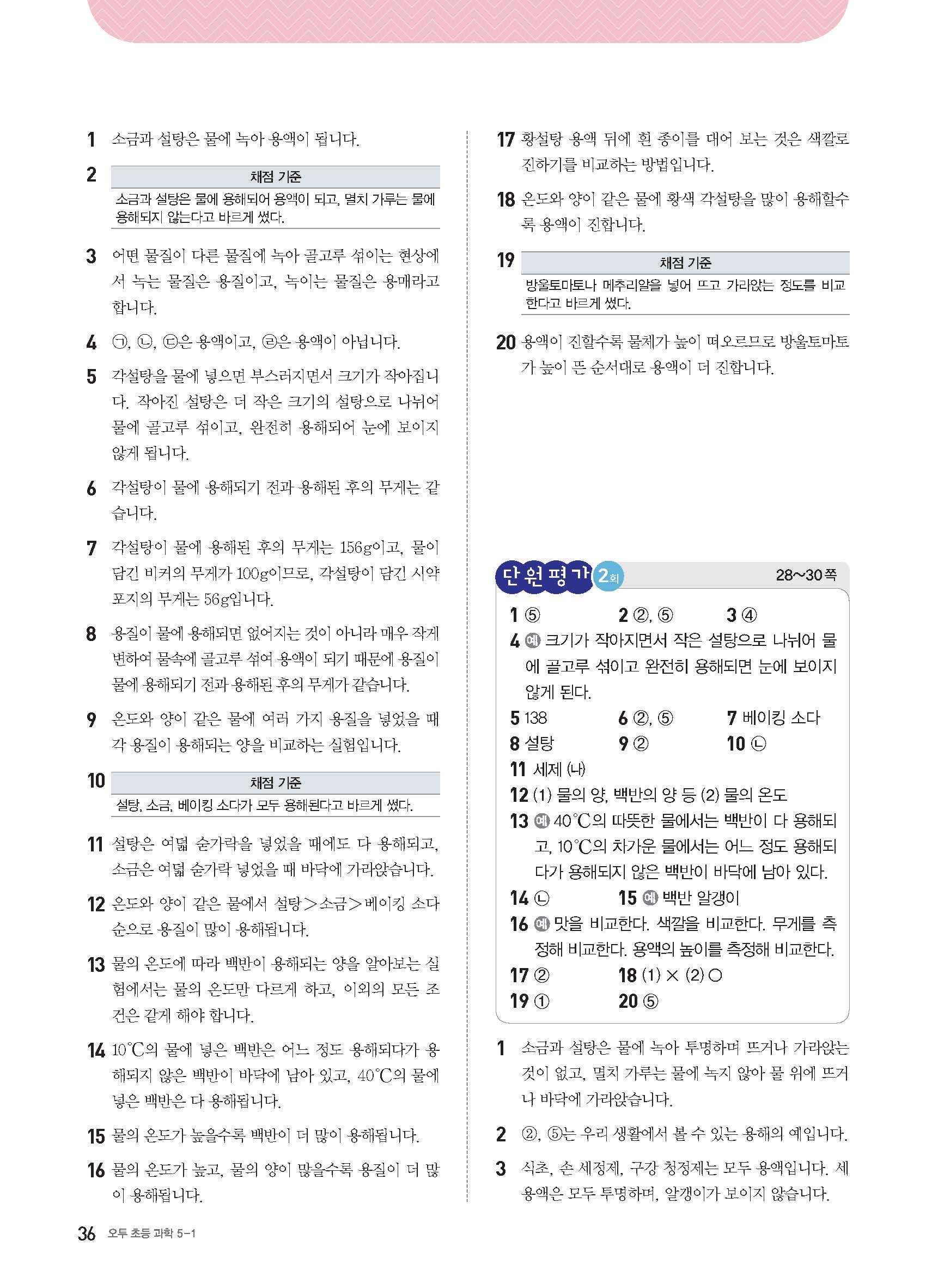 오투초등과학 5-1 사진답지 빠른답지 모바일최적화