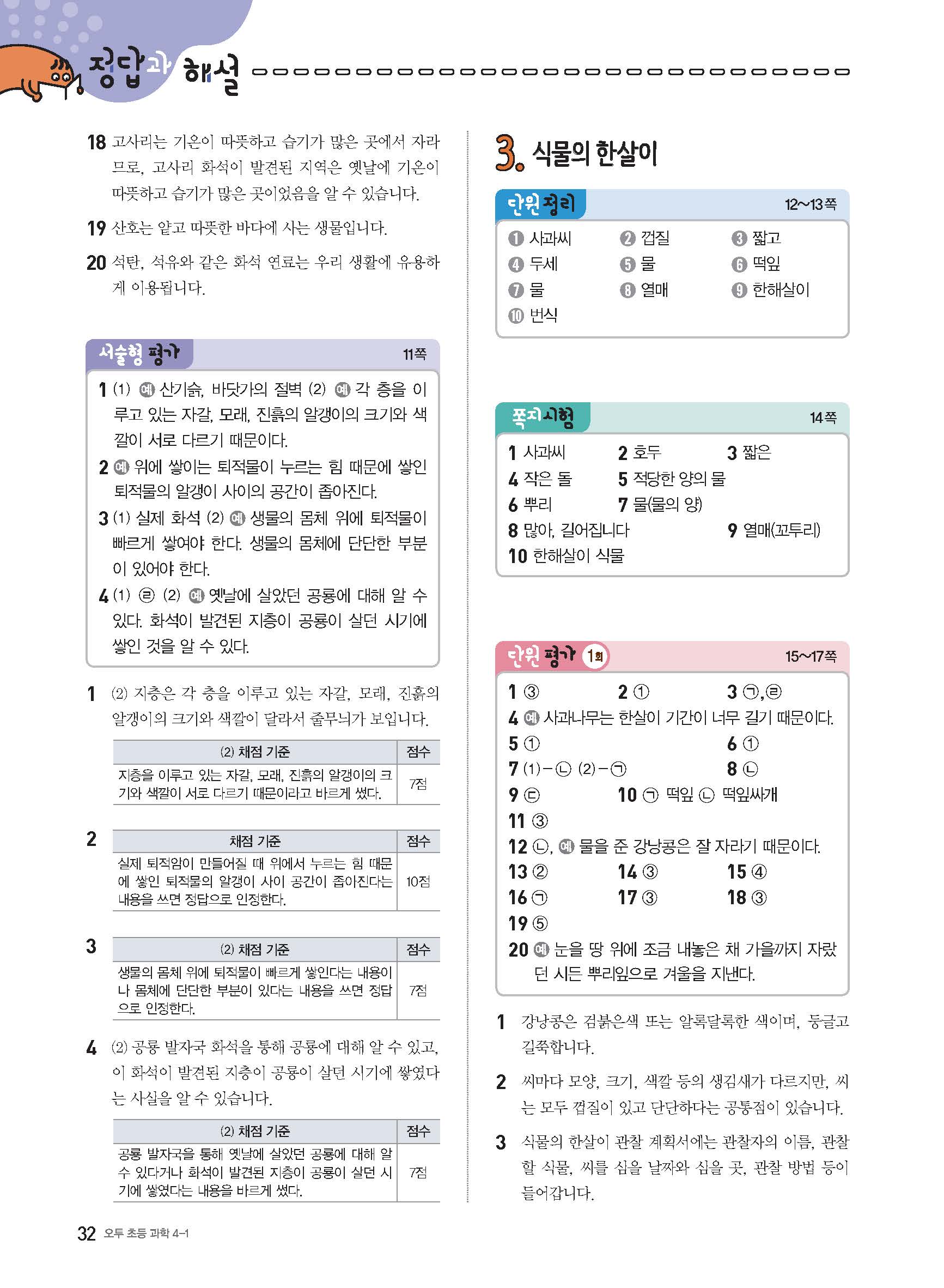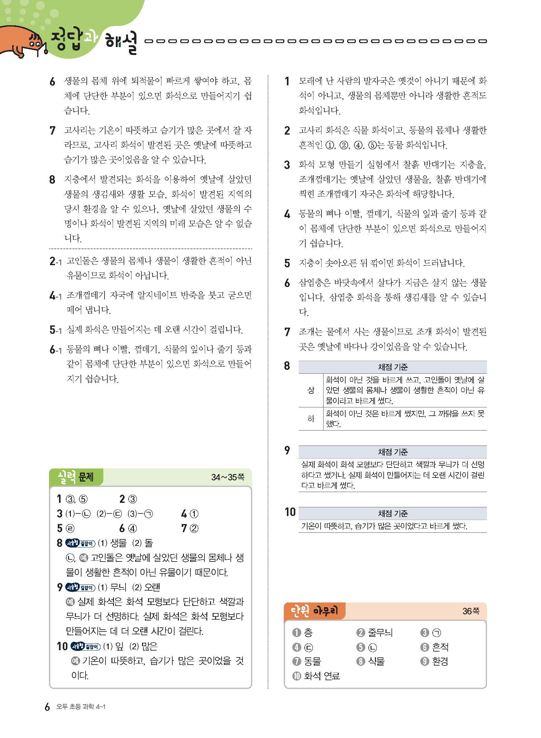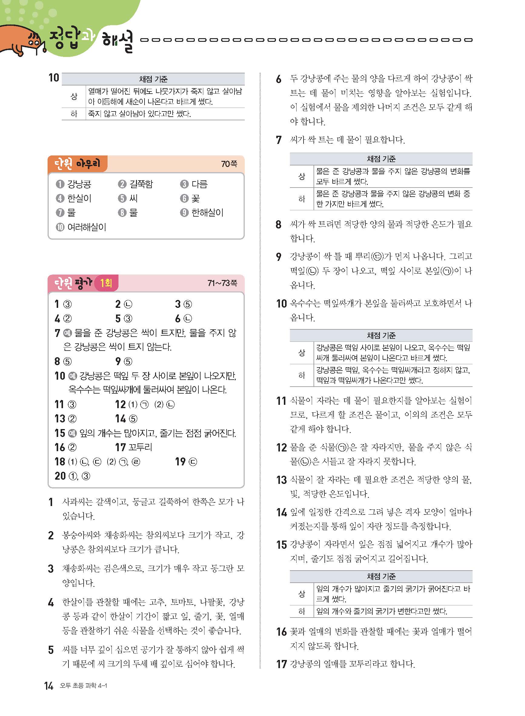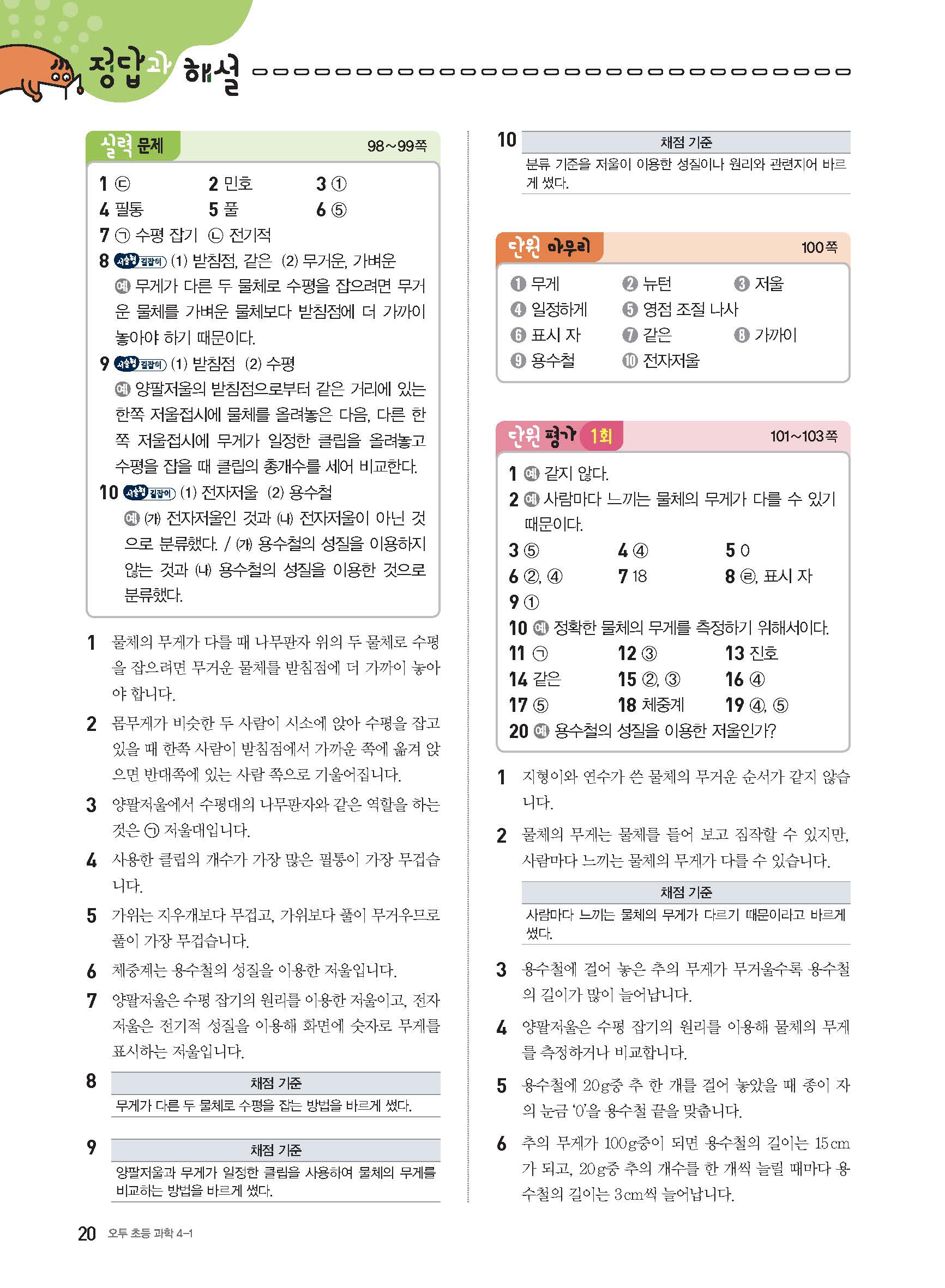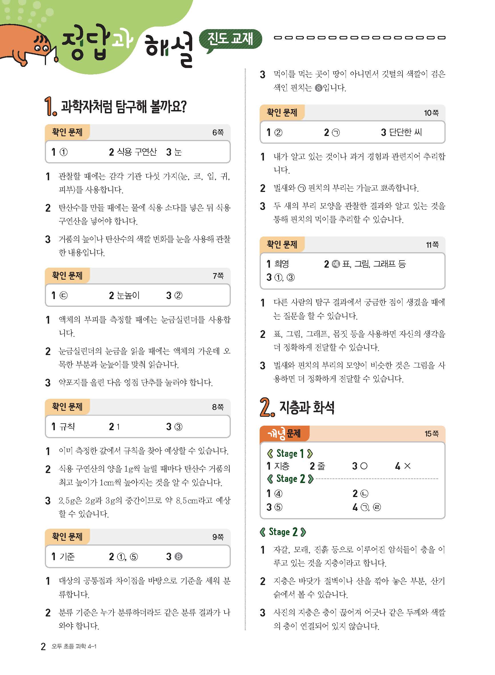 오투초등과학 4-1 사진답지 빠른답지 모바일최적화