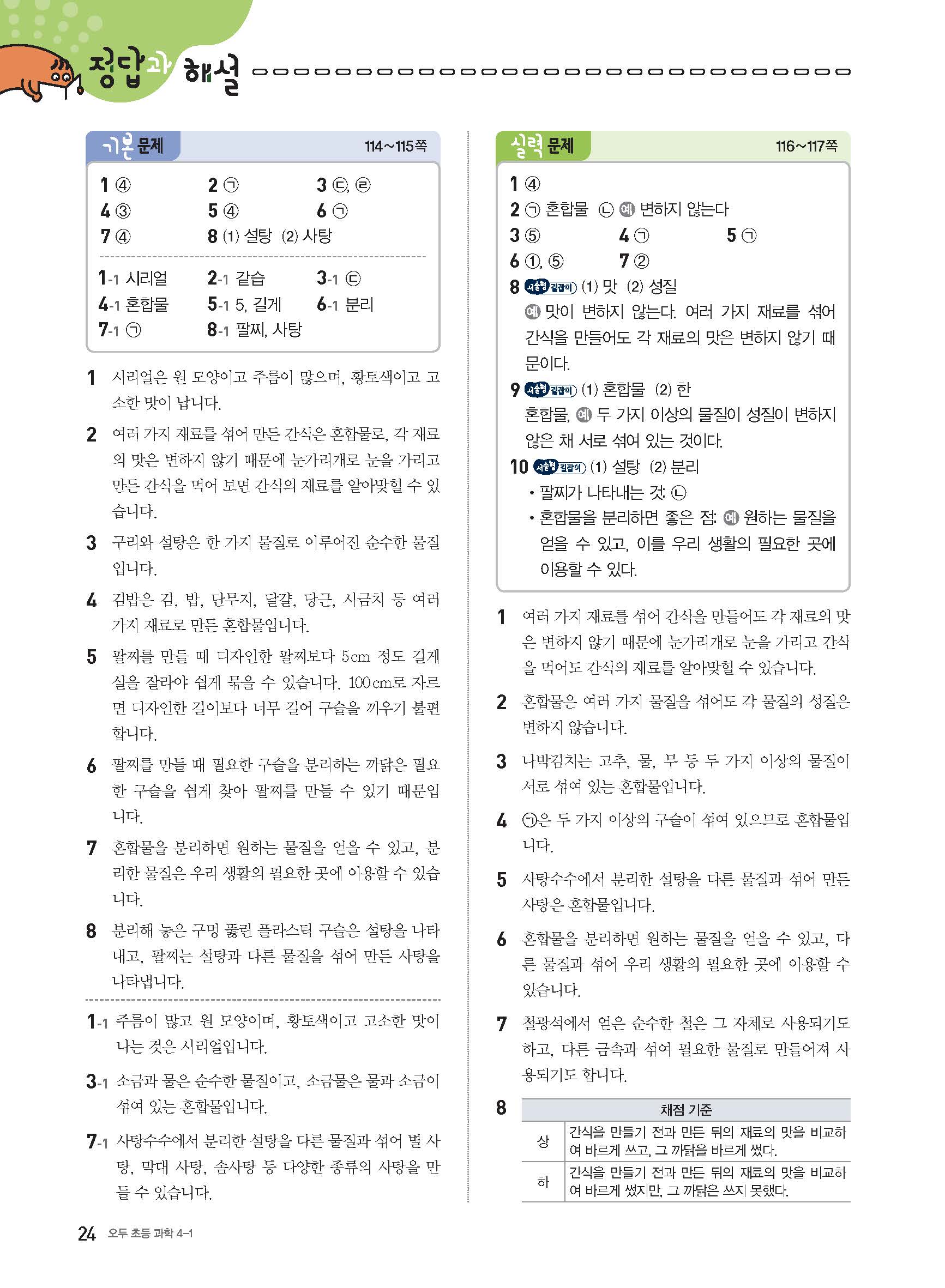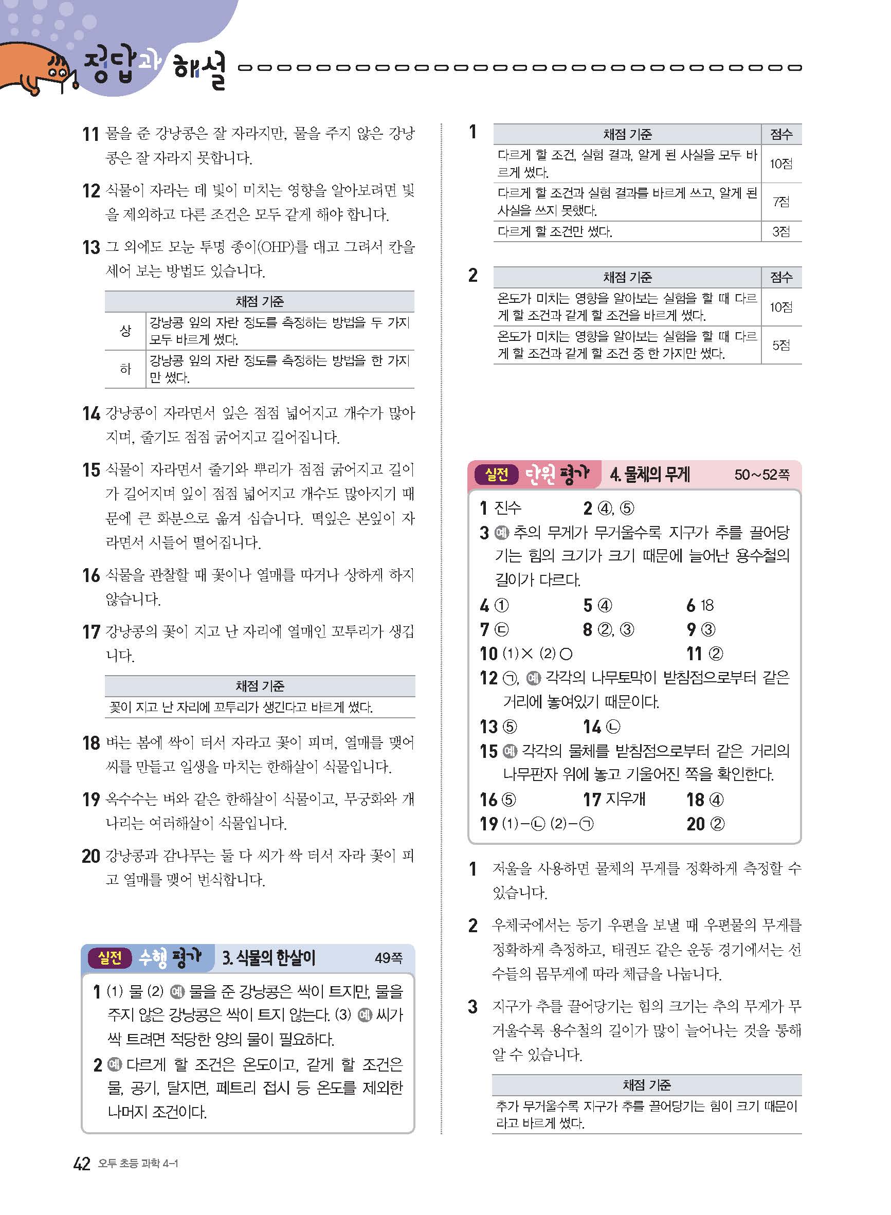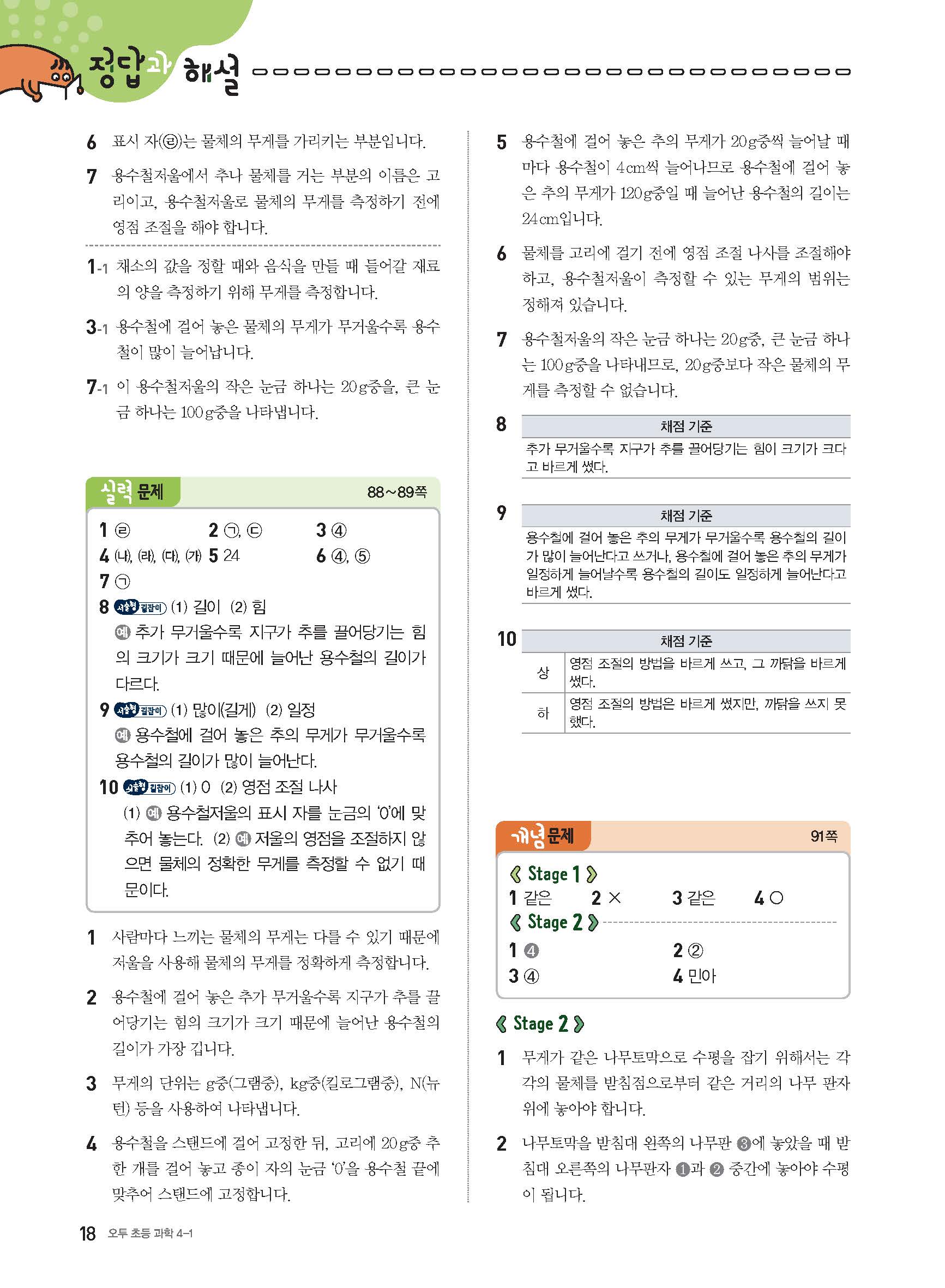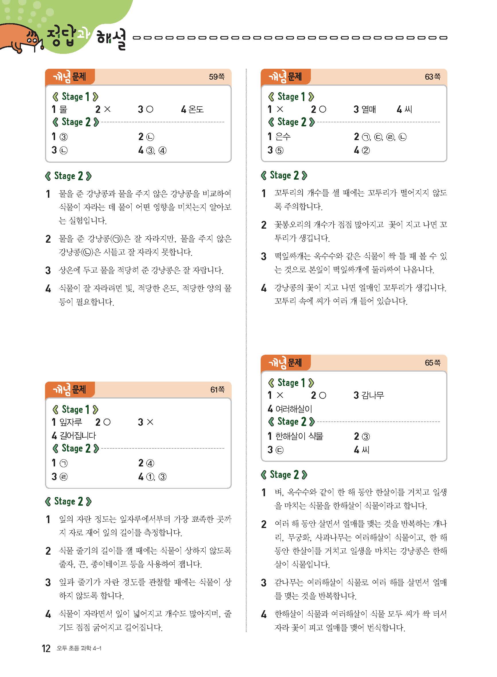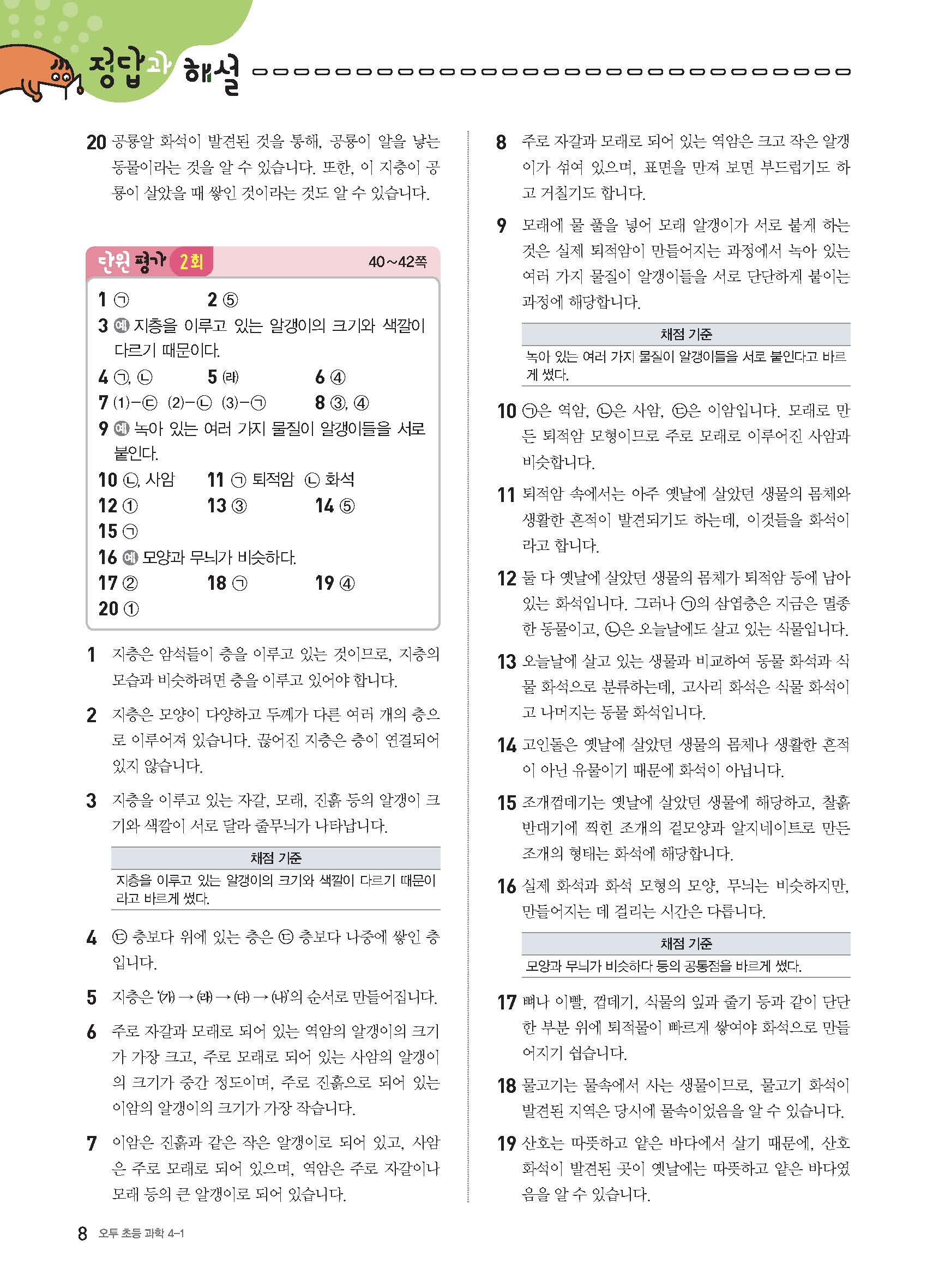 오투초등과학 4-1 사진답지 빠른답지 모바일최적화