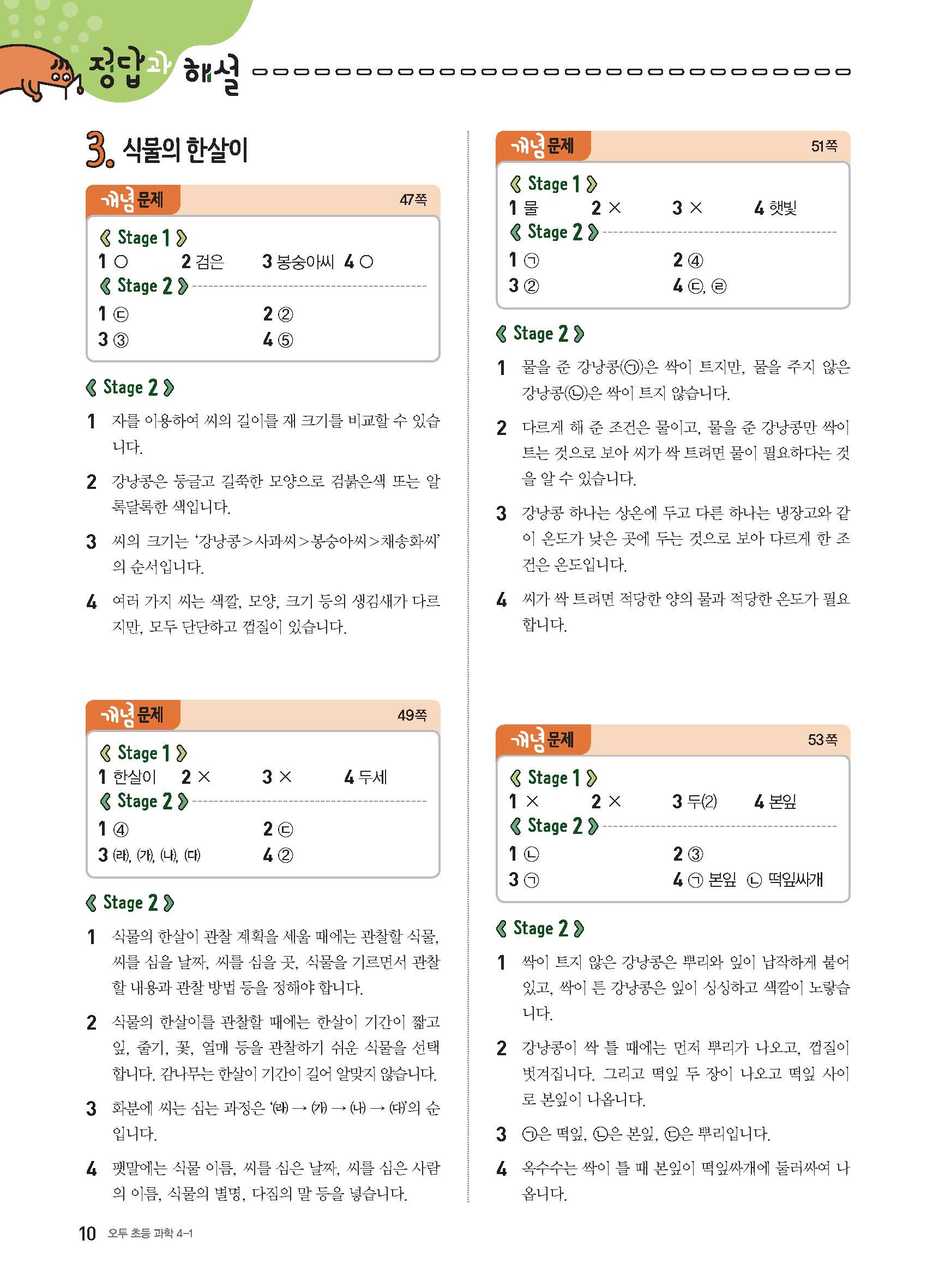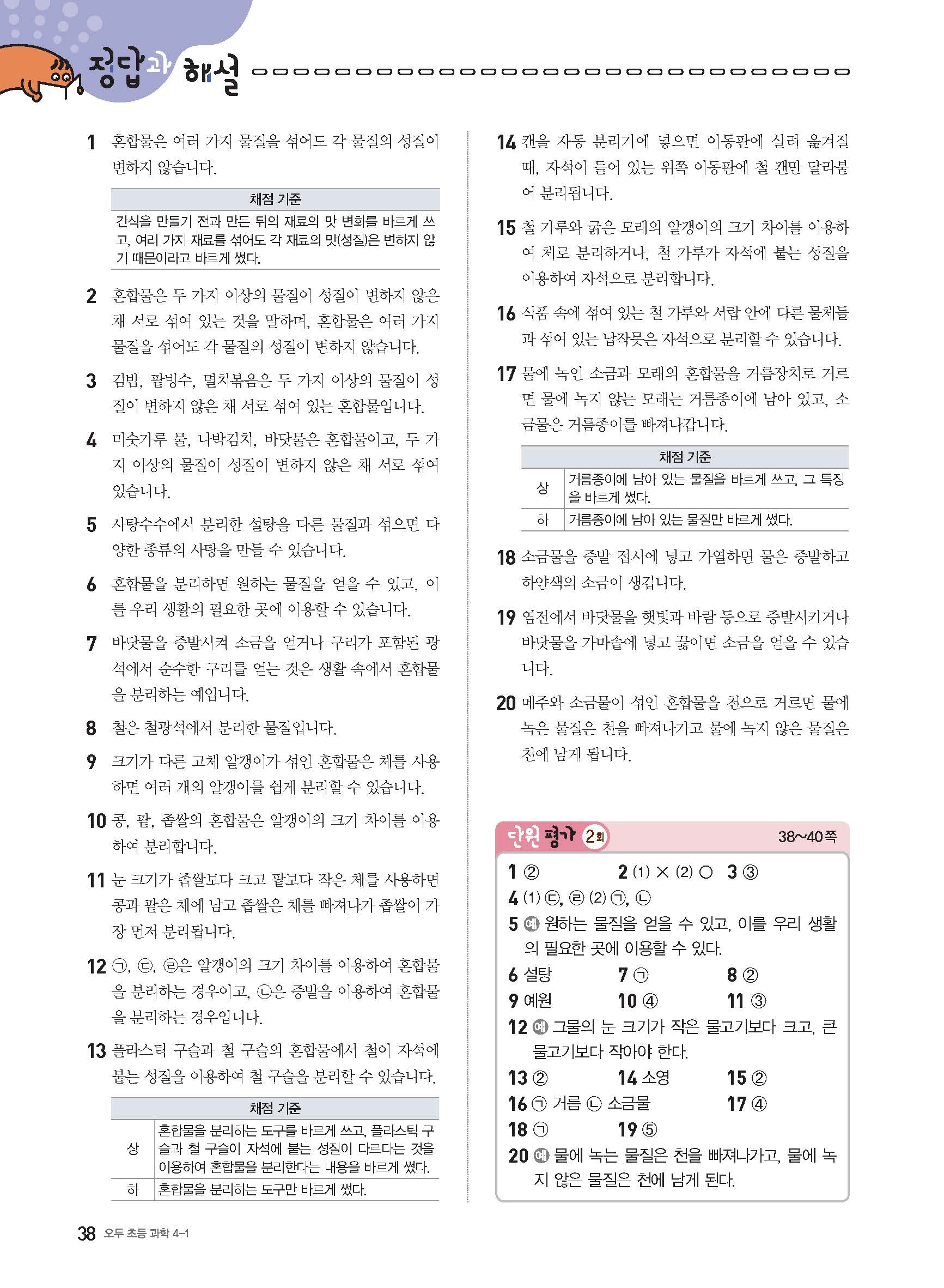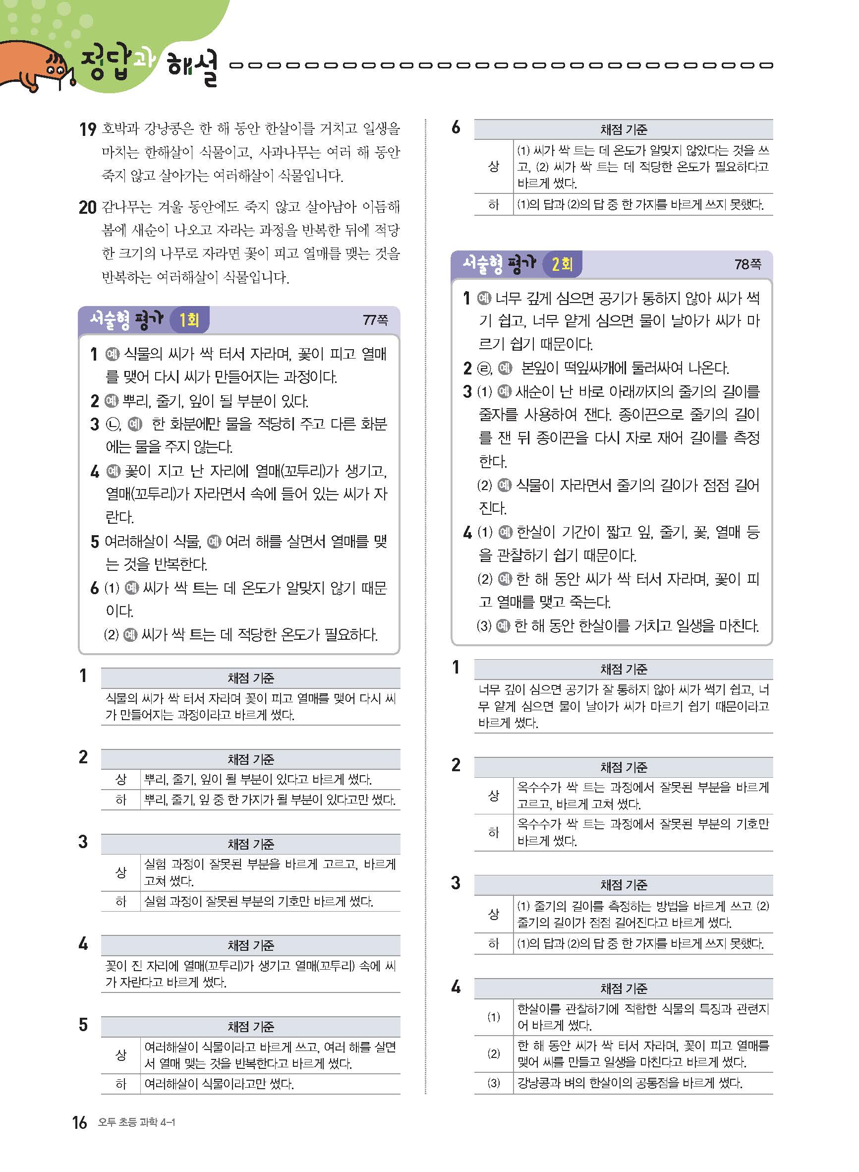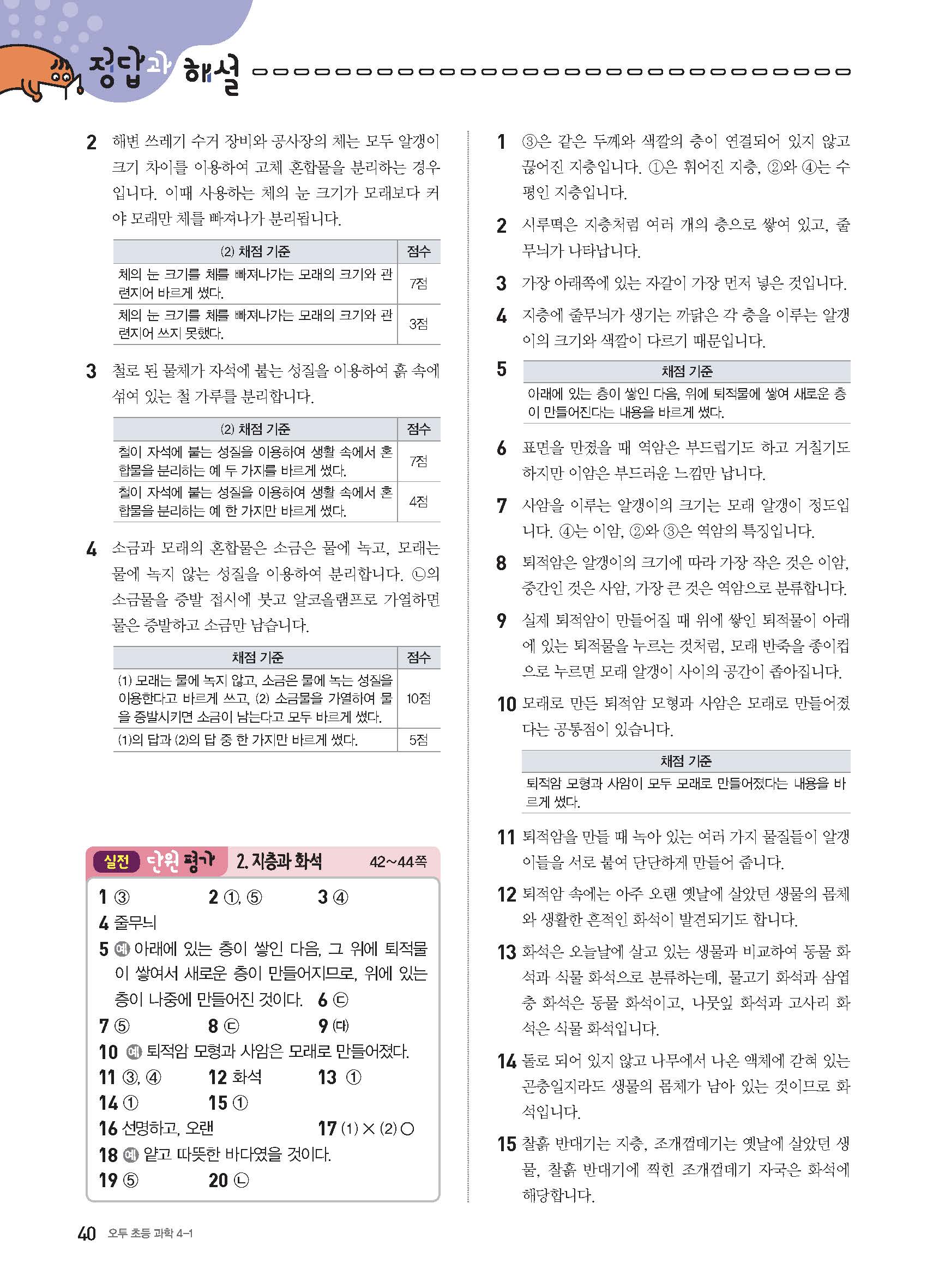 오투초등과학 4-1 사진답지 빠른답지 모바일최적화