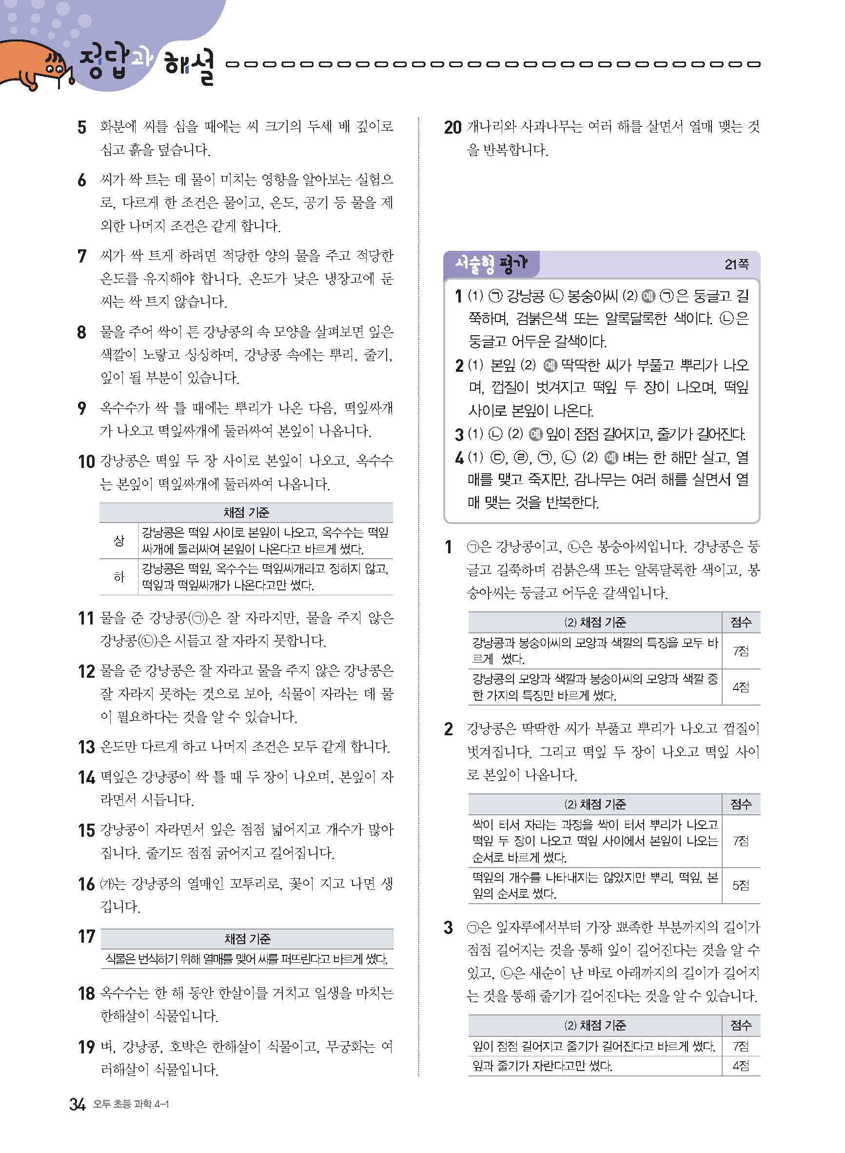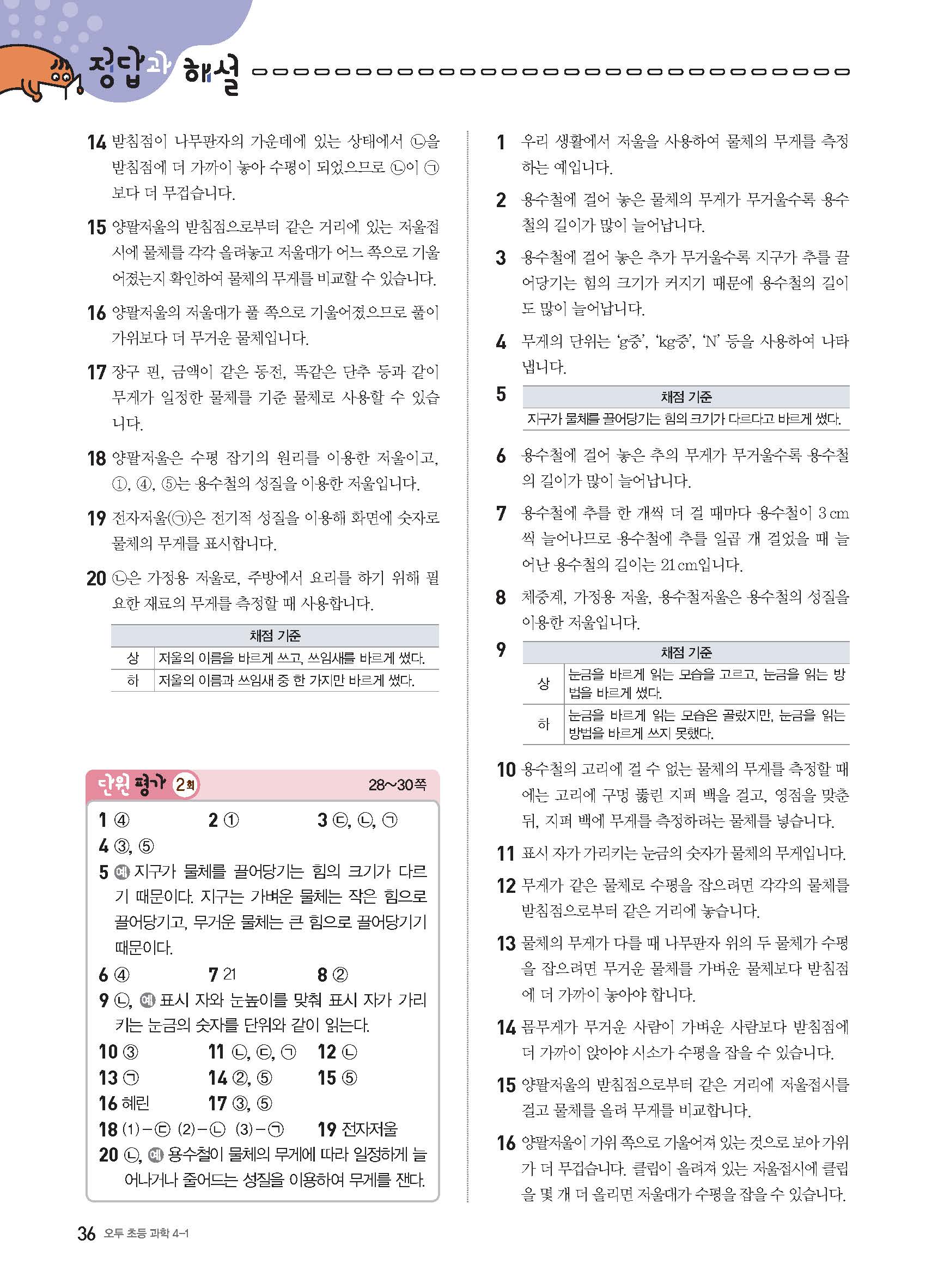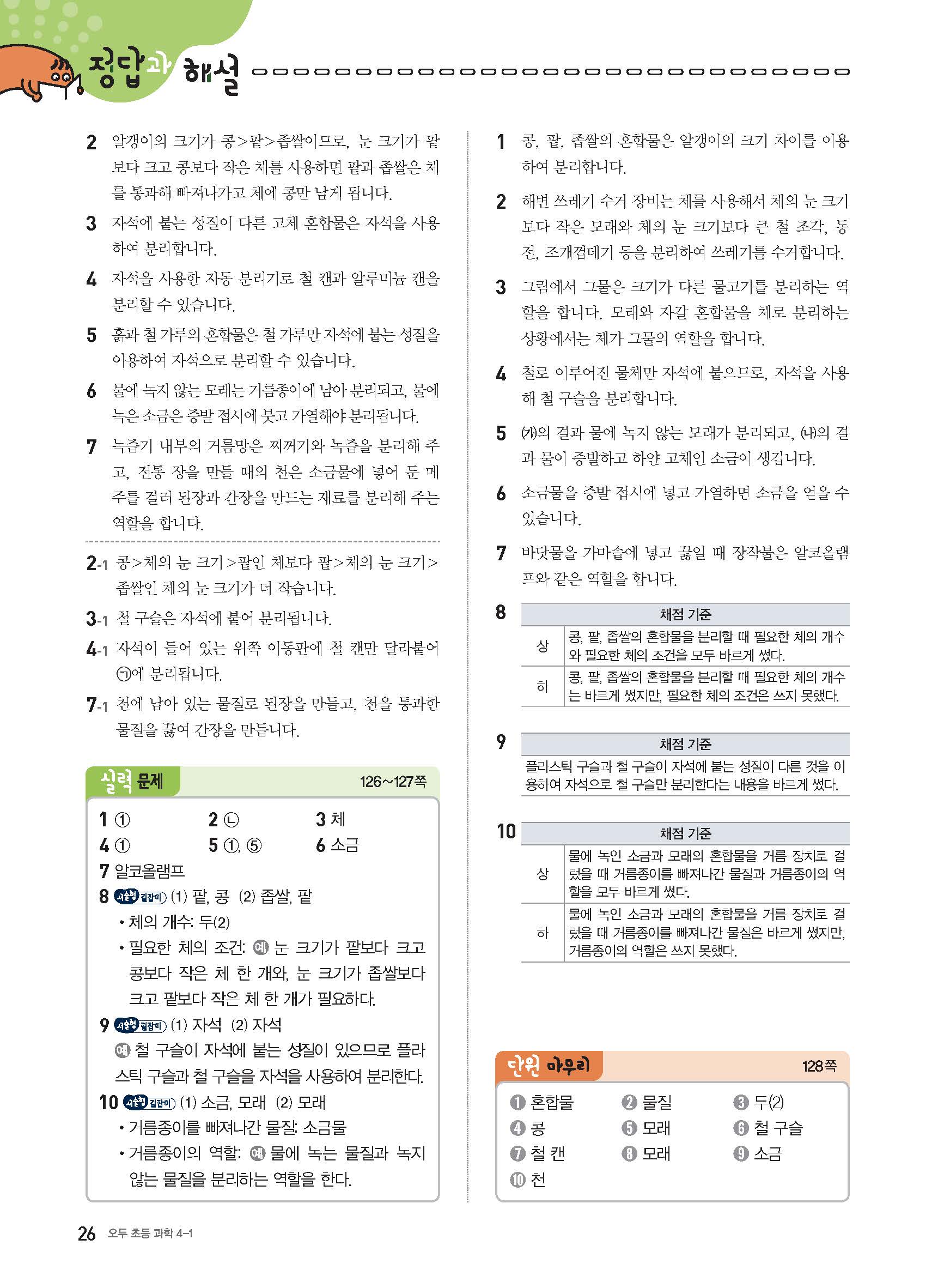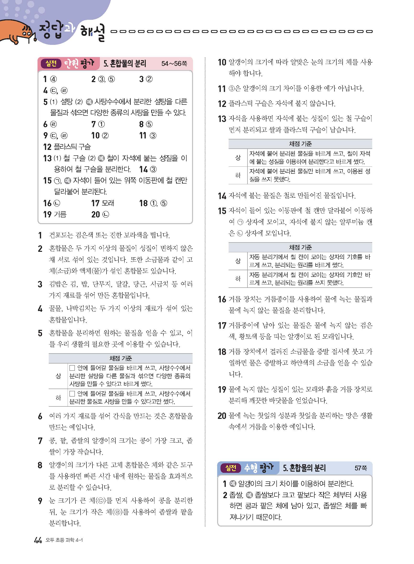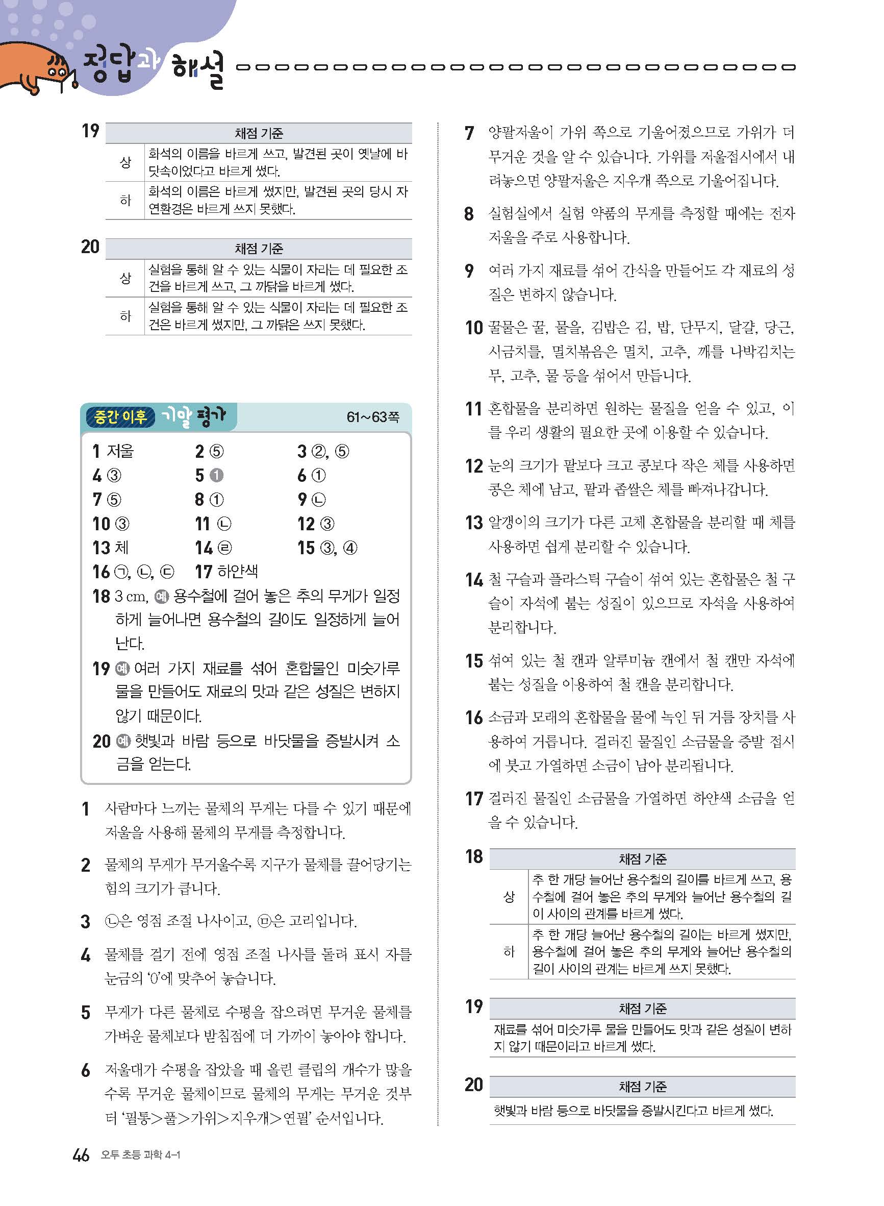 오투초등과학 4-1 사진답지 빠른답지 모바일최적화