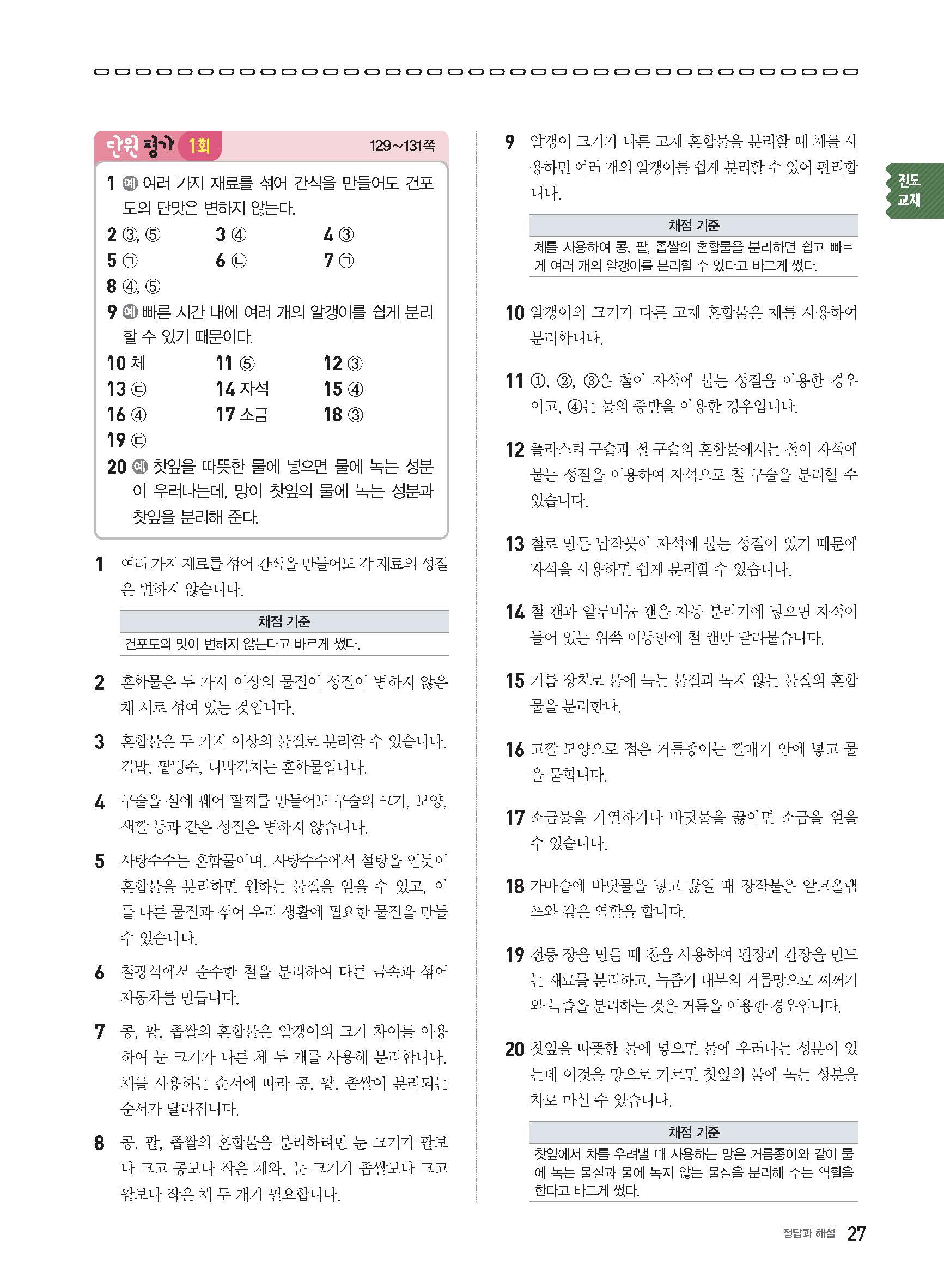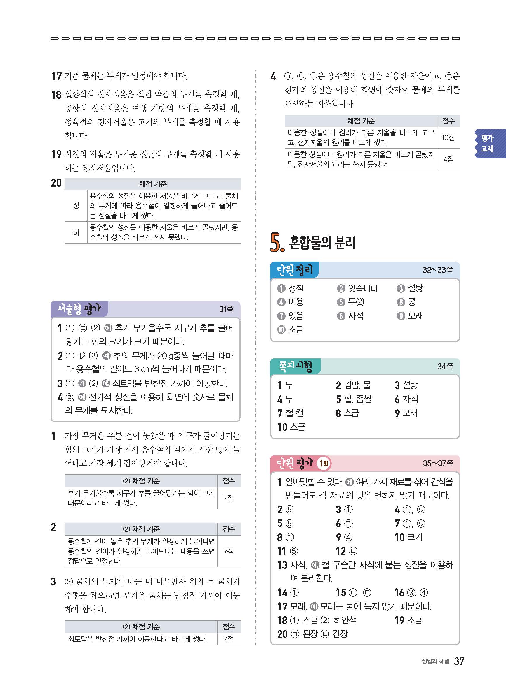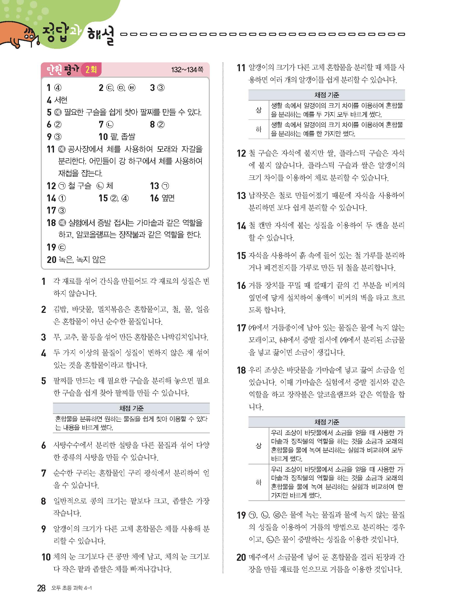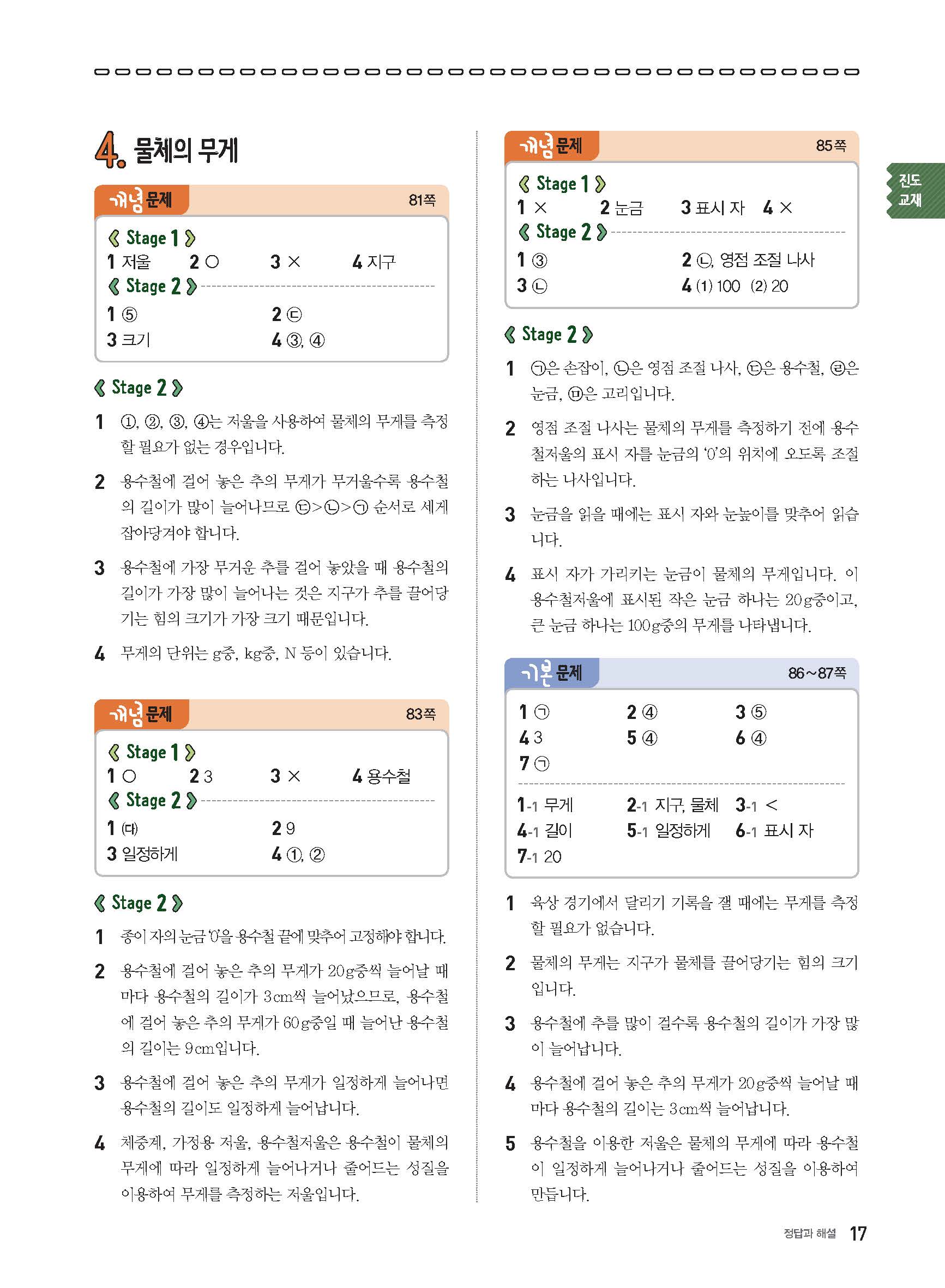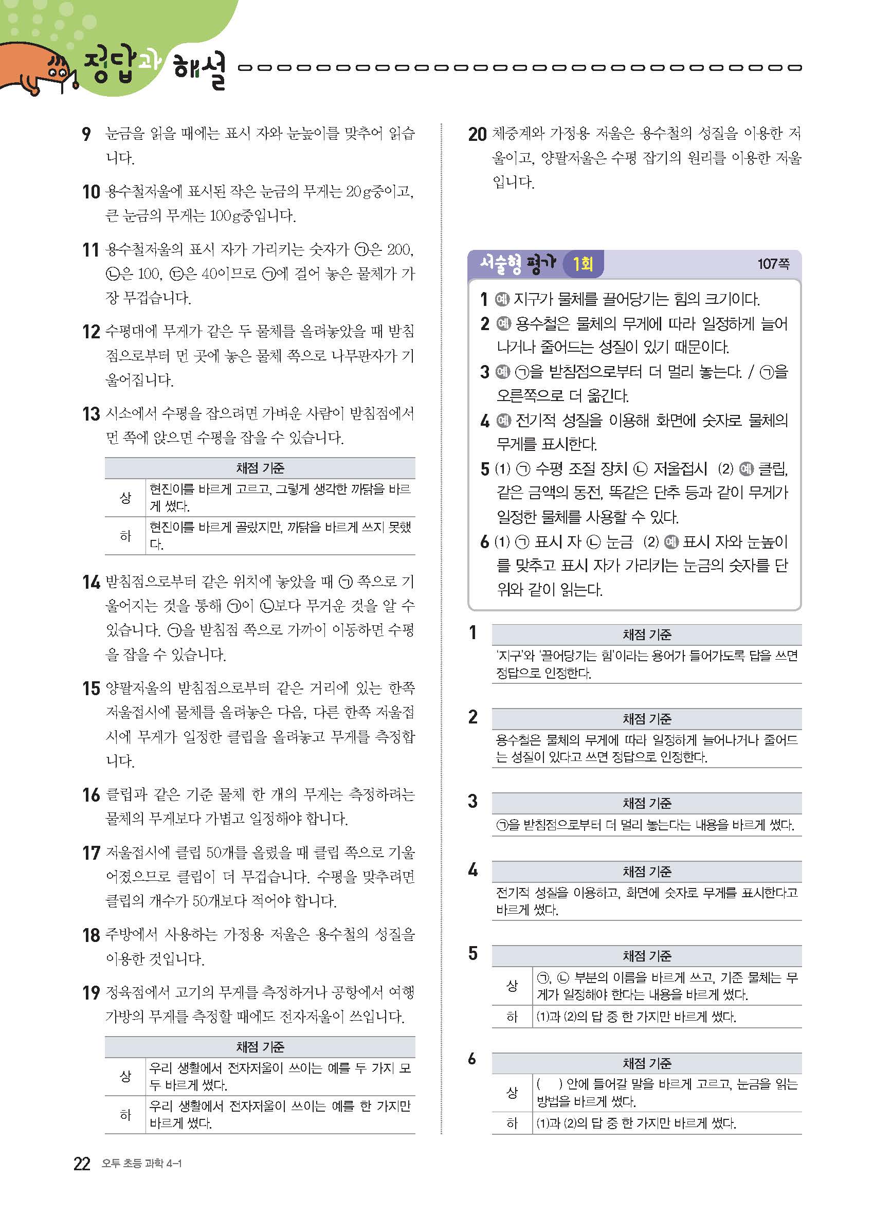 오투초등과학 4-1 사진답지 빠른답지 모바일최적화