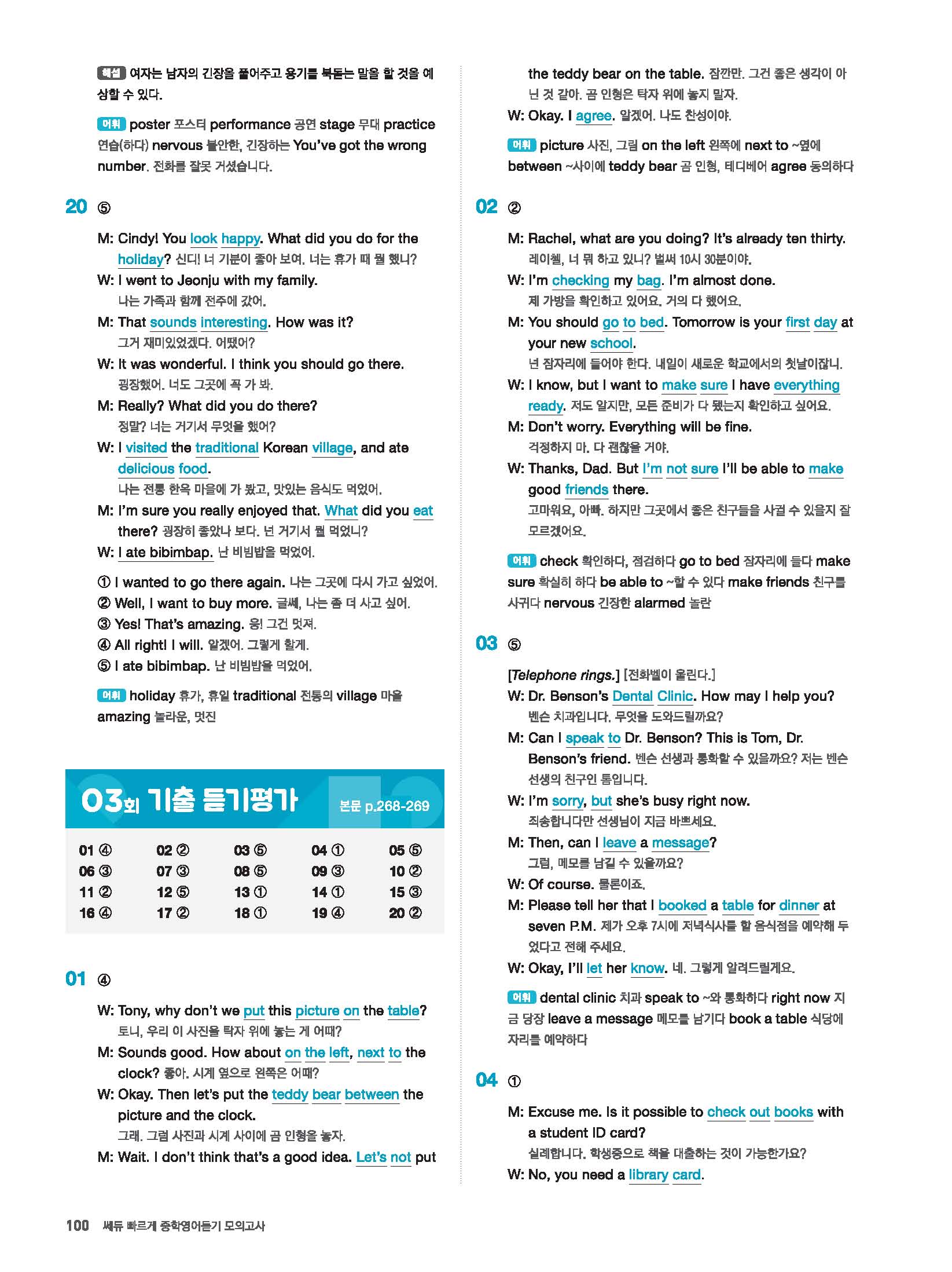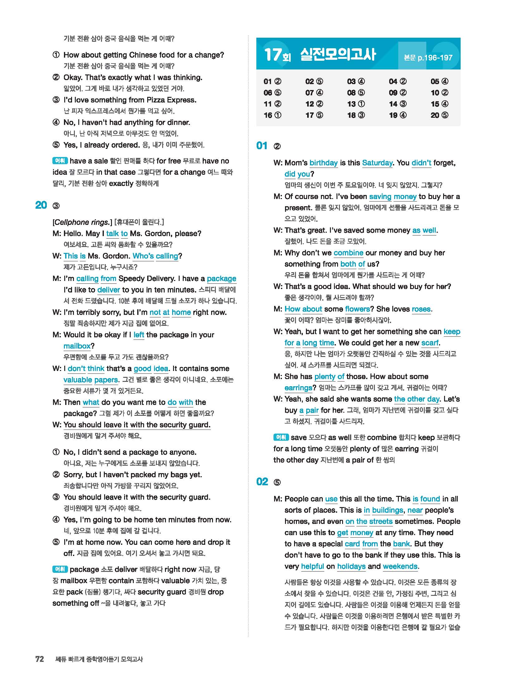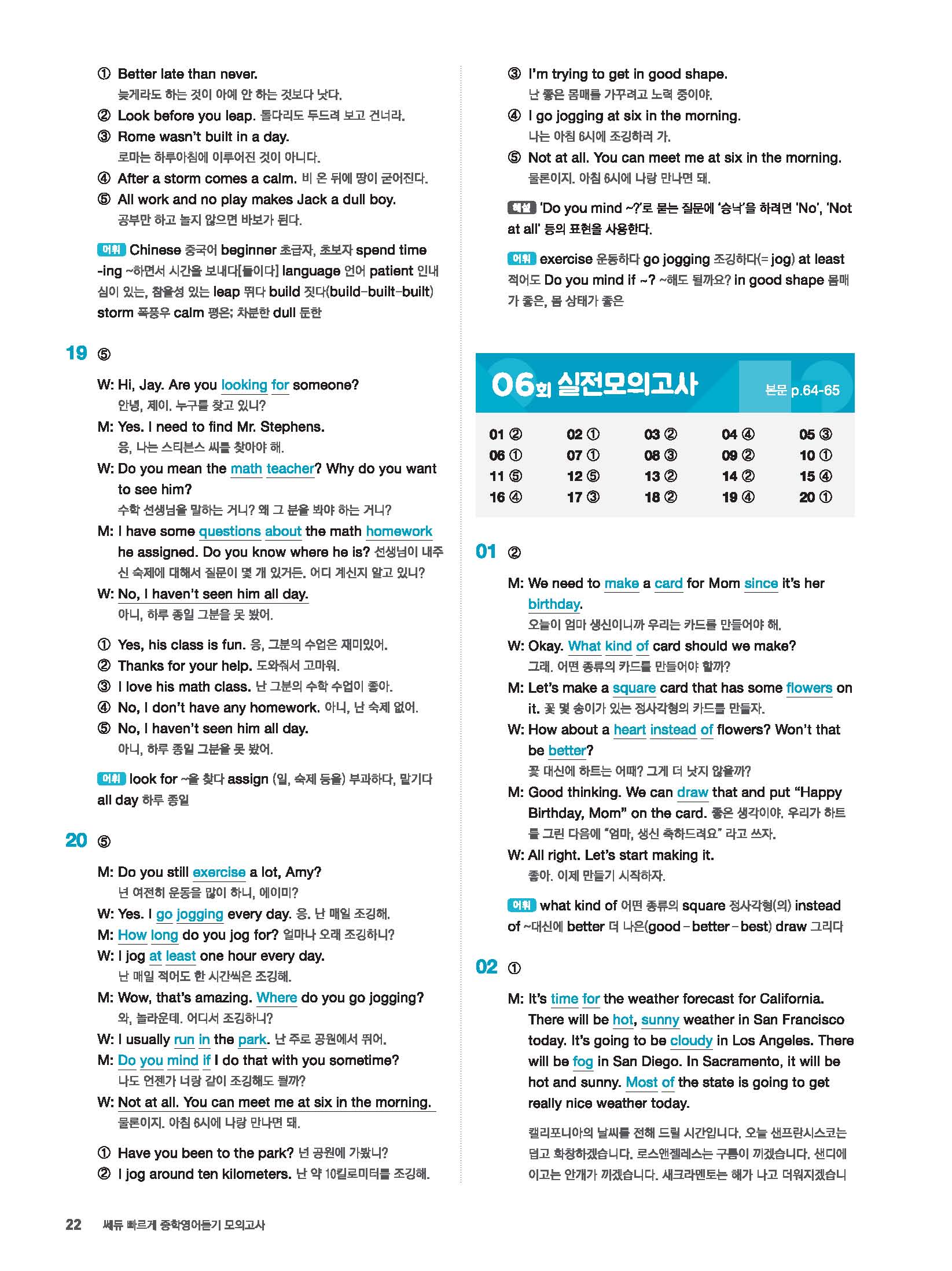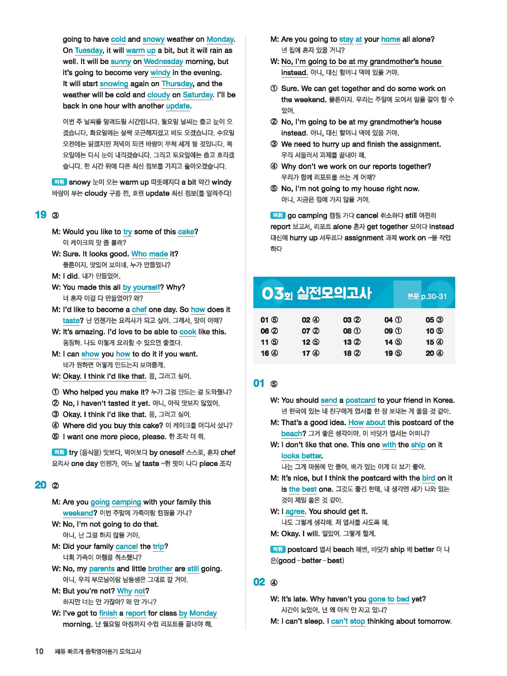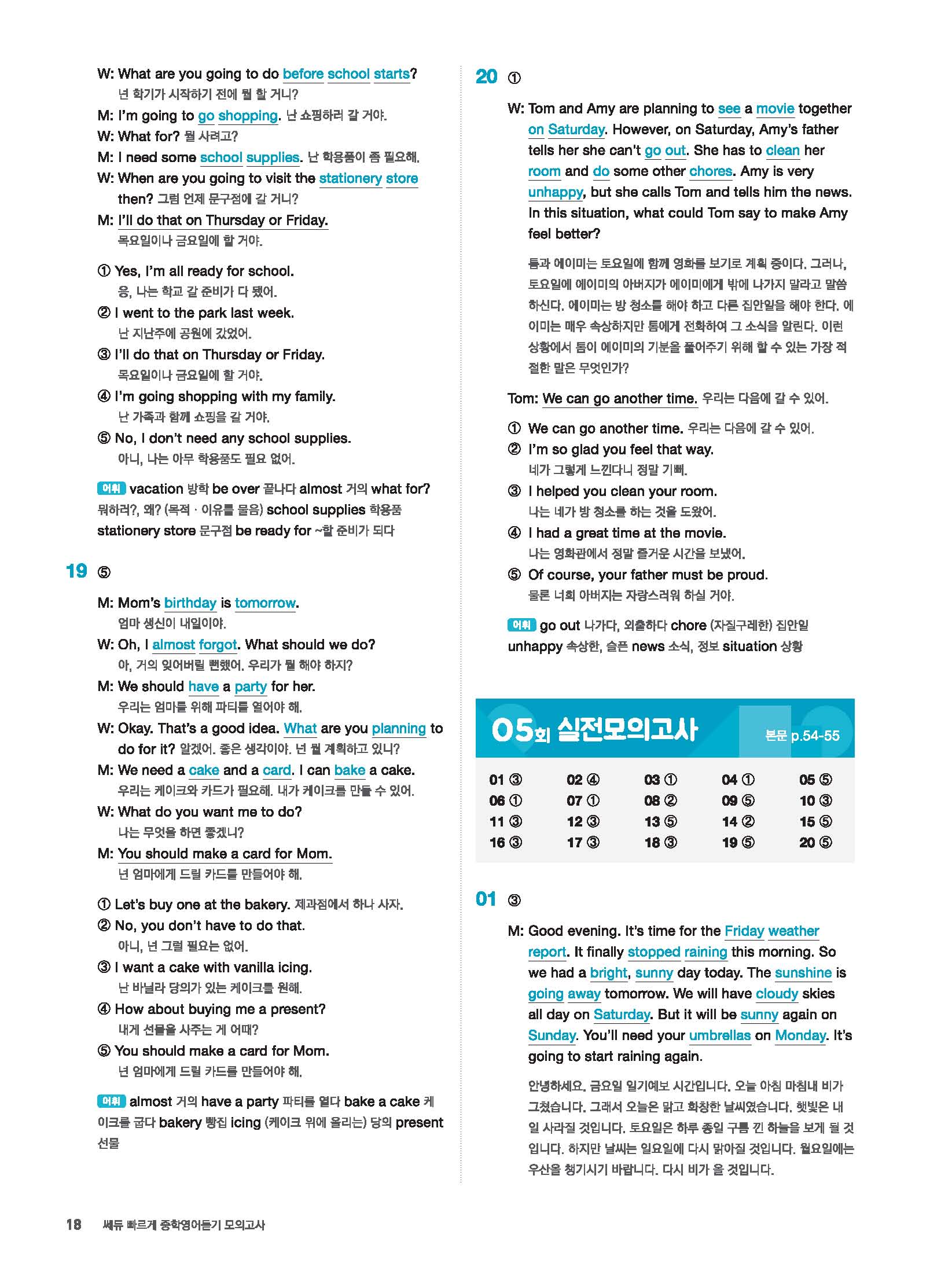 빠르게 중학 영어듣기 모의고사 20회 2 정답 및 해설 답지 빠른답지 사진답지 모바일최적화