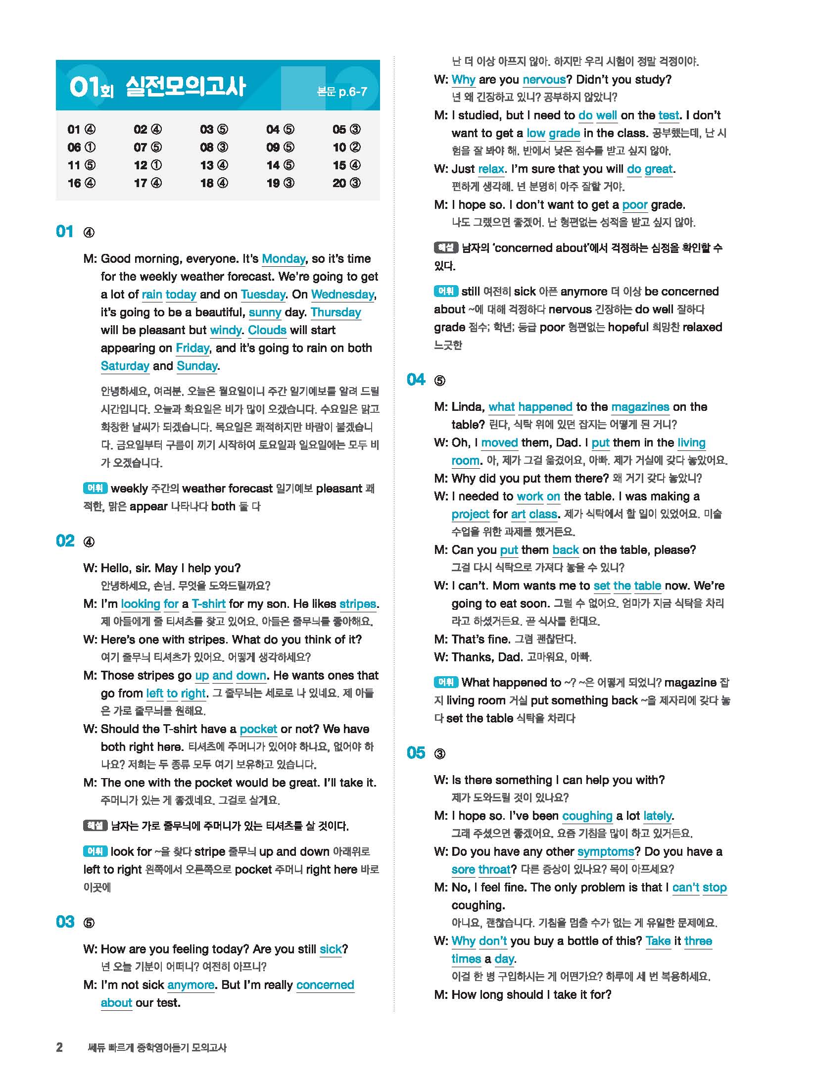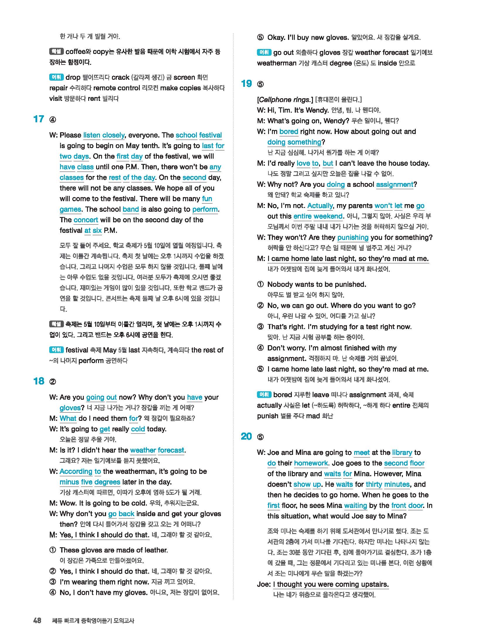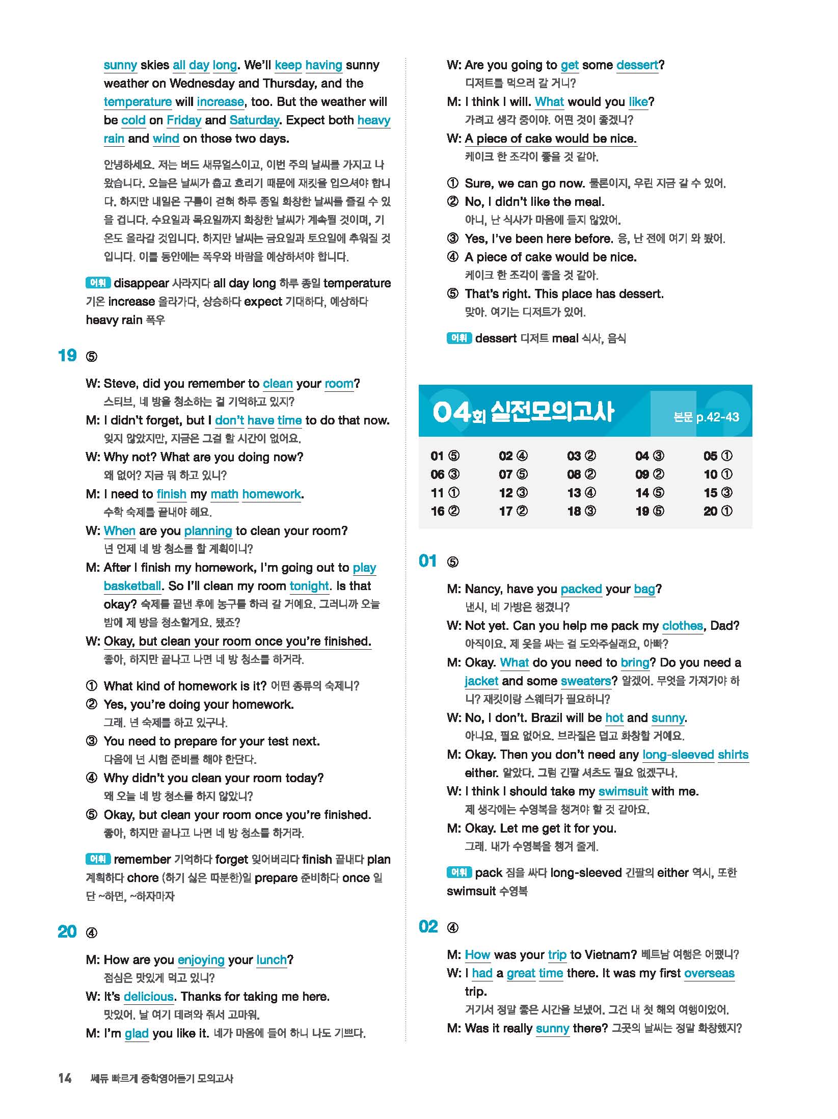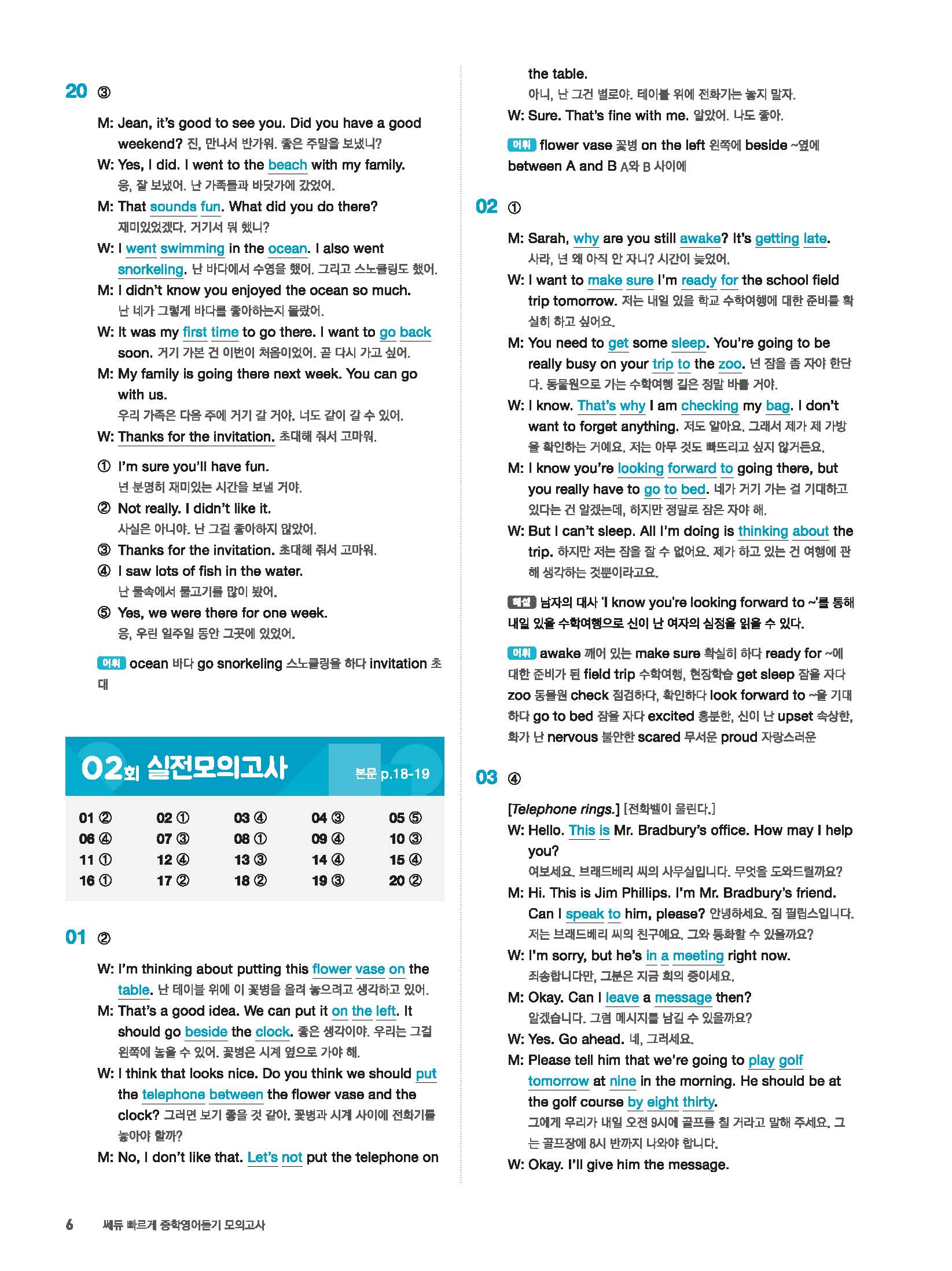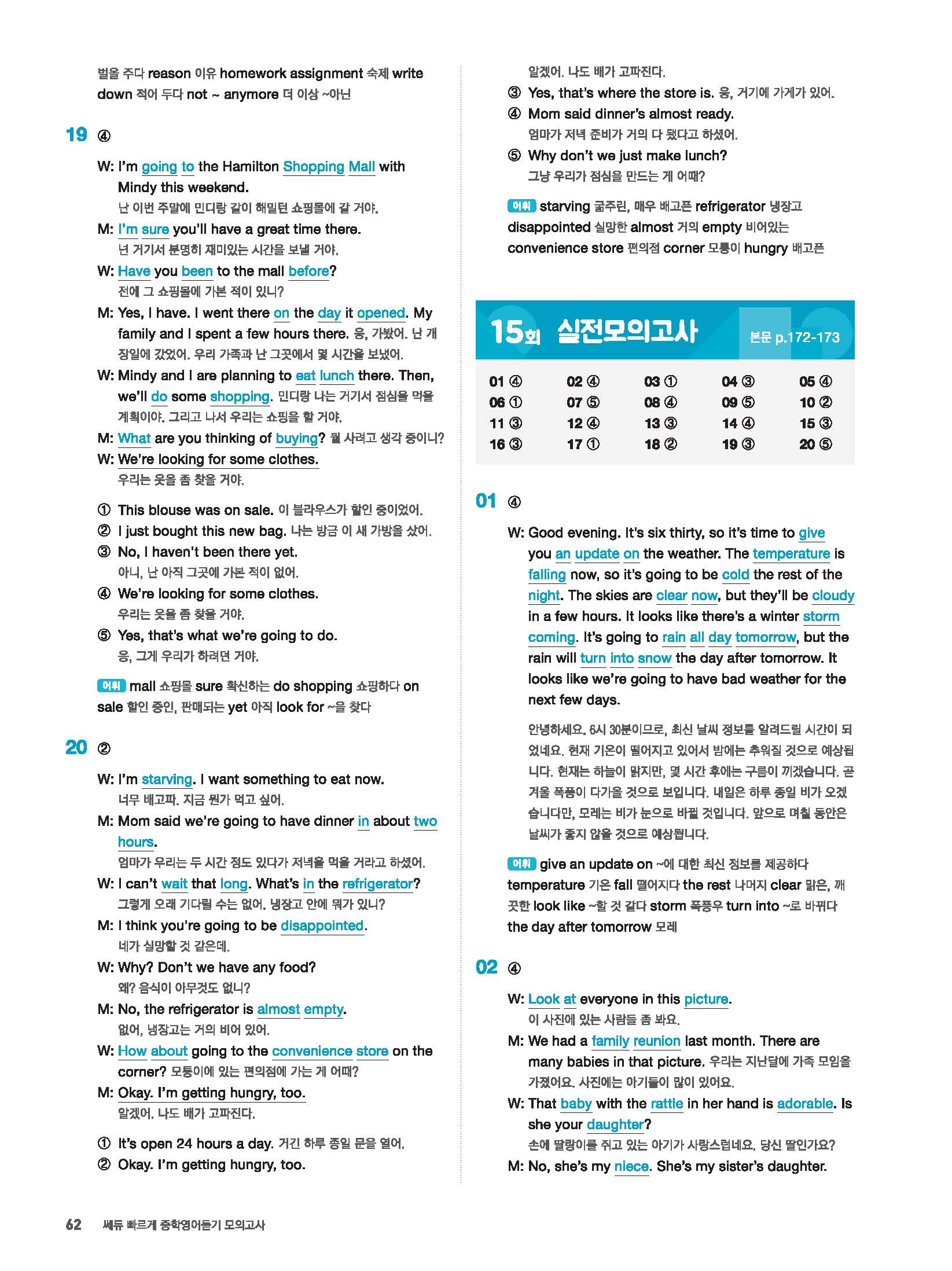 빠르게 중학 영어듣기 모의고사 20회 2 정답 및 해설 답지 빠른답지 사진답지 모바일최적화
