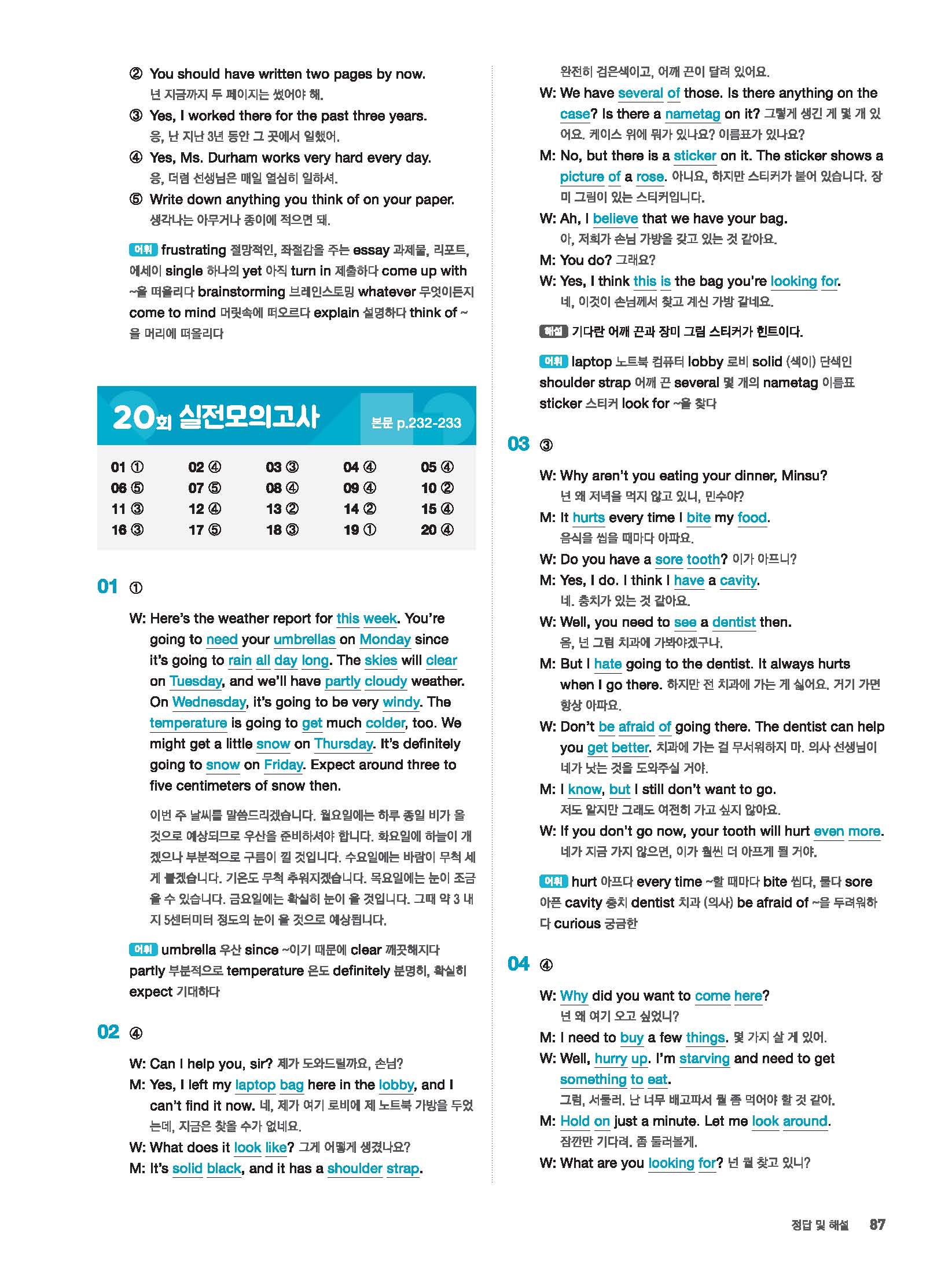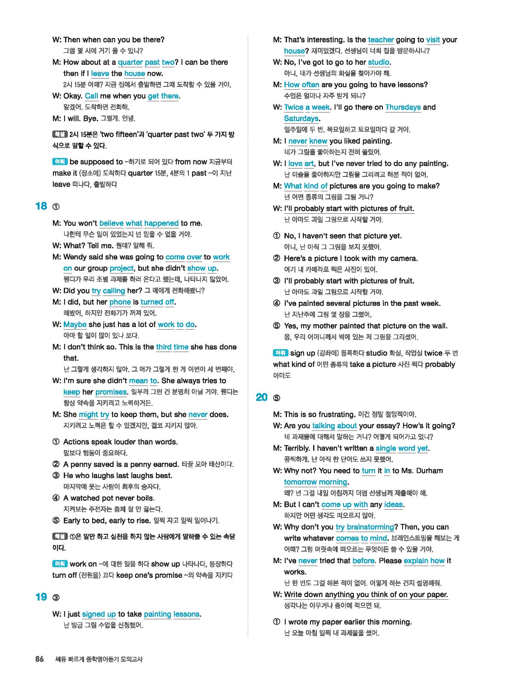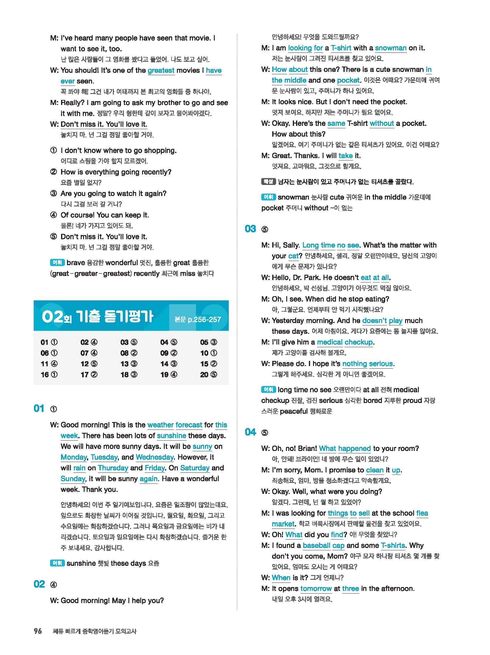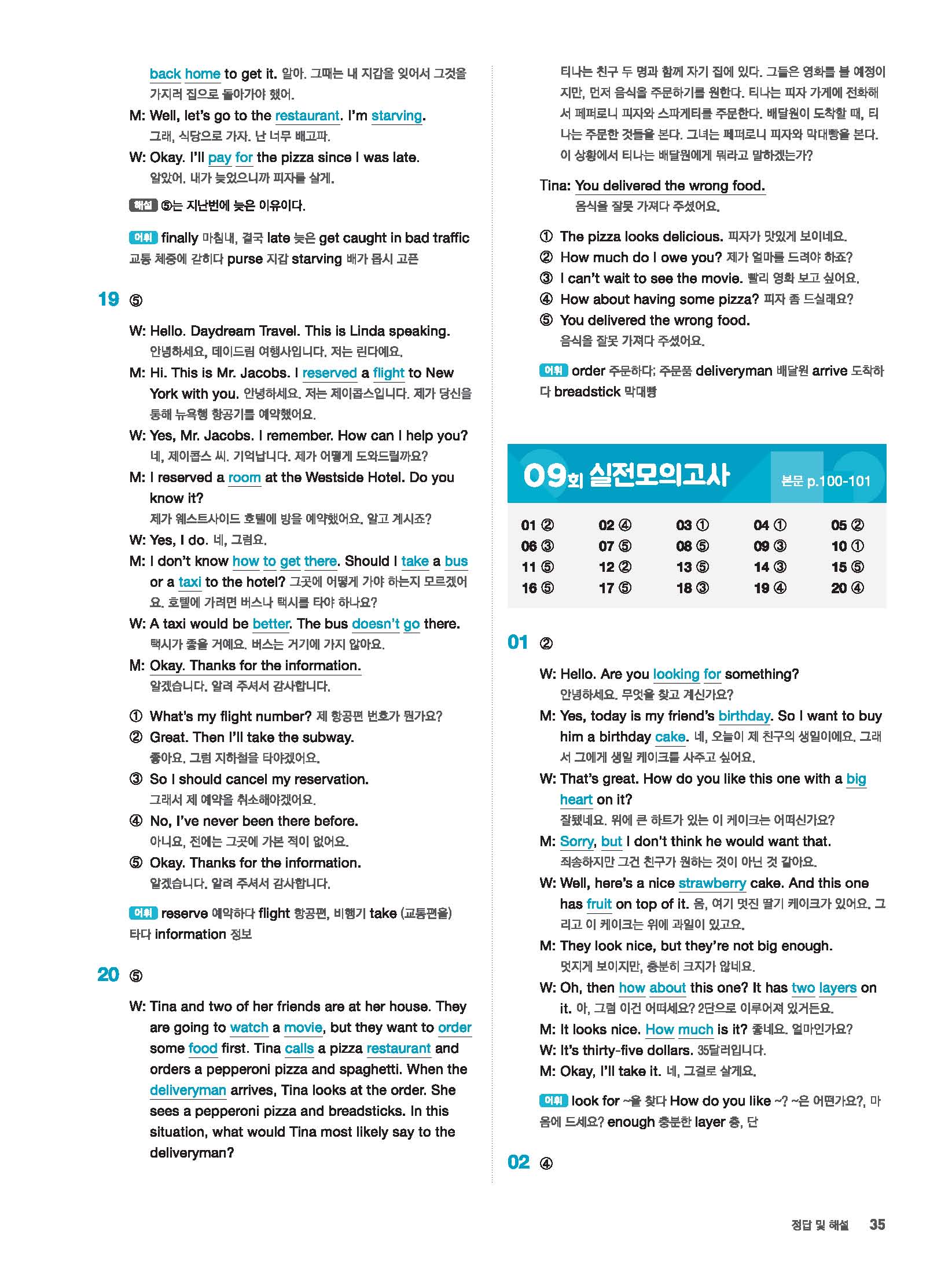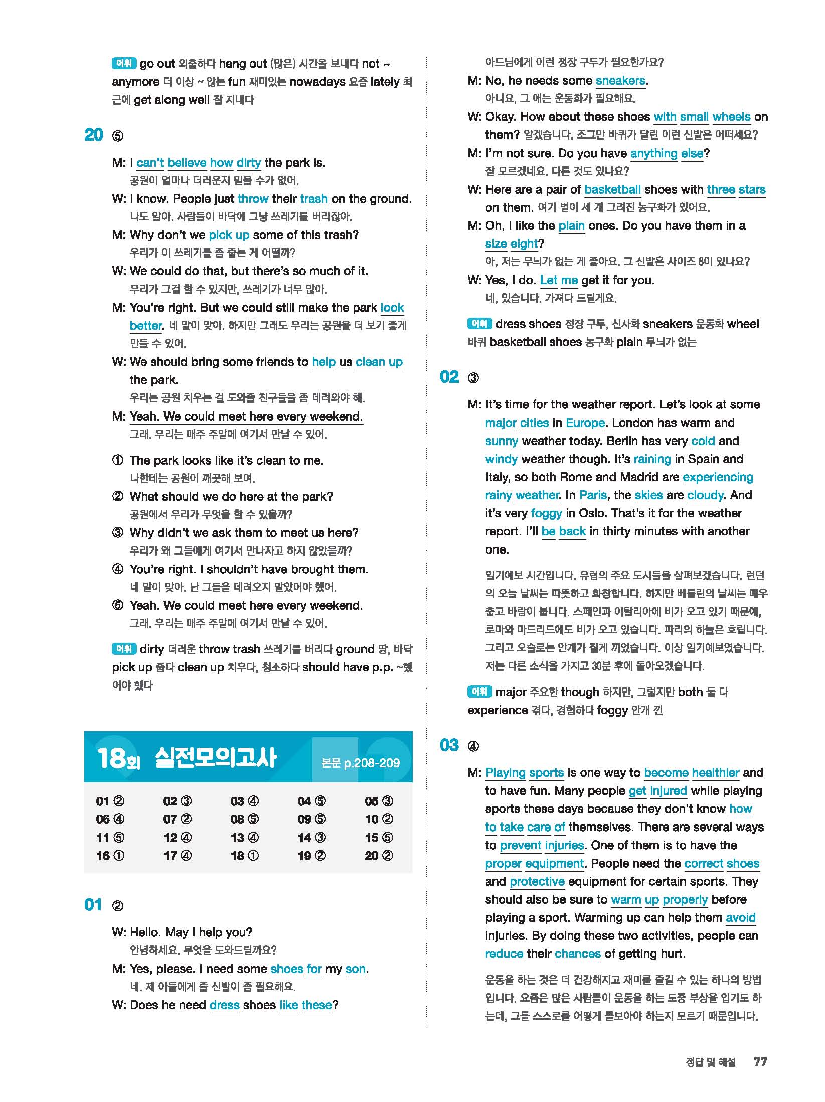 빠르게 중학 영어듣기 모의고사 20회 2 정답 및 해설 답지 빠른답지 사진답지 모바일최적화