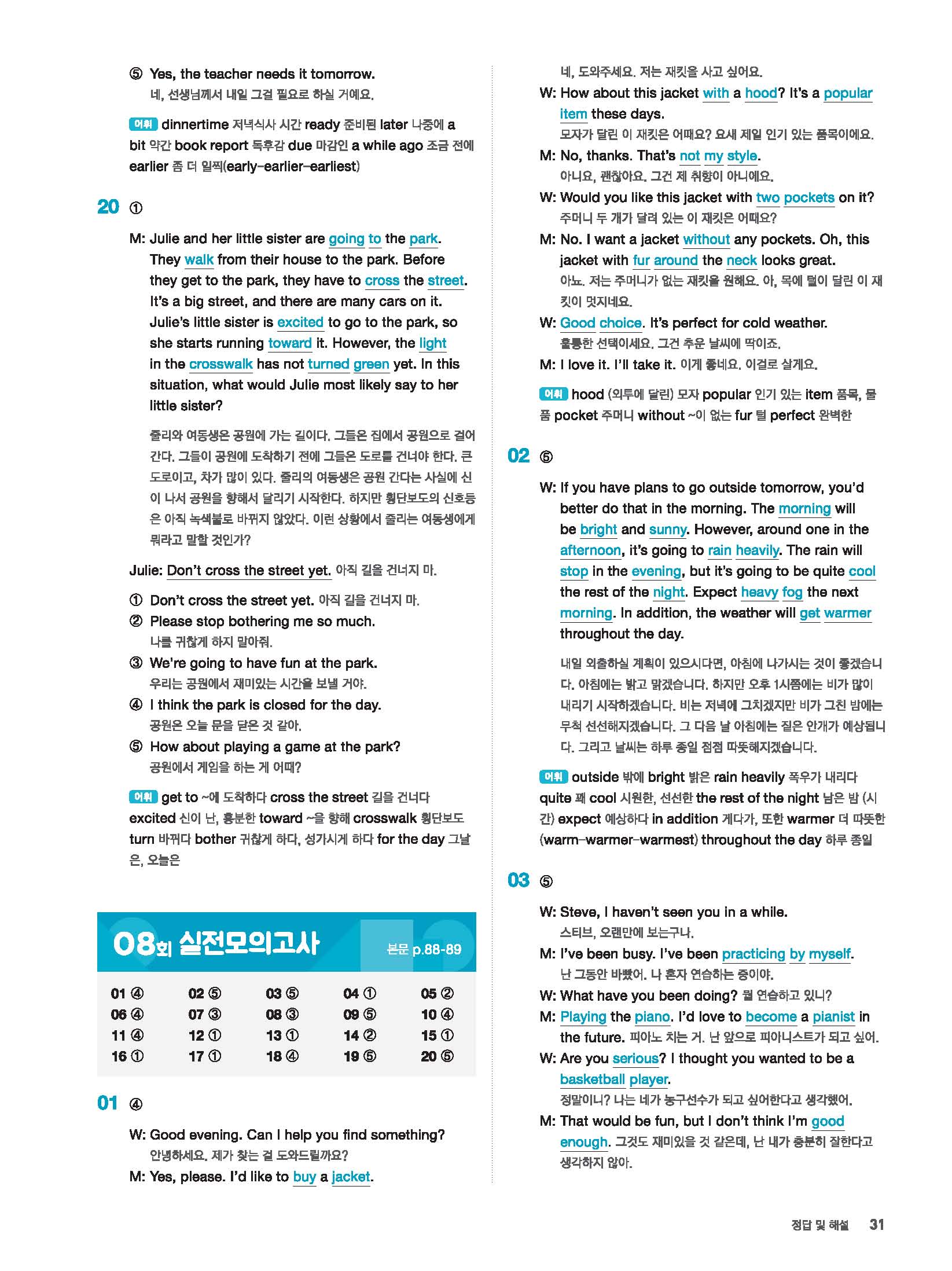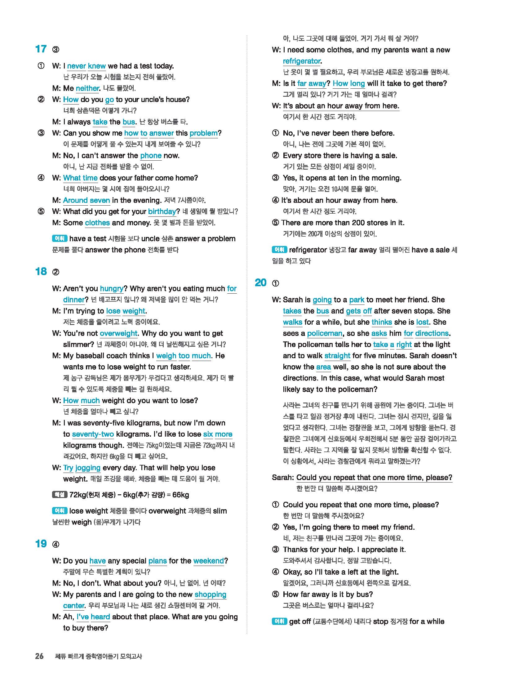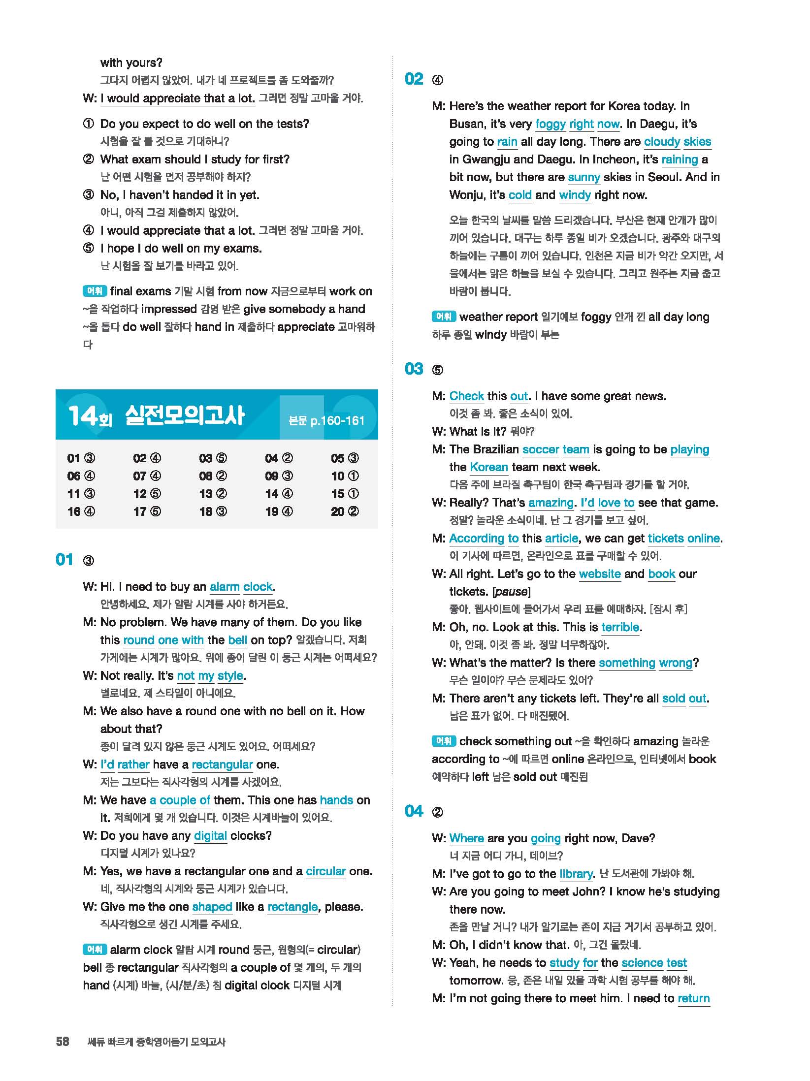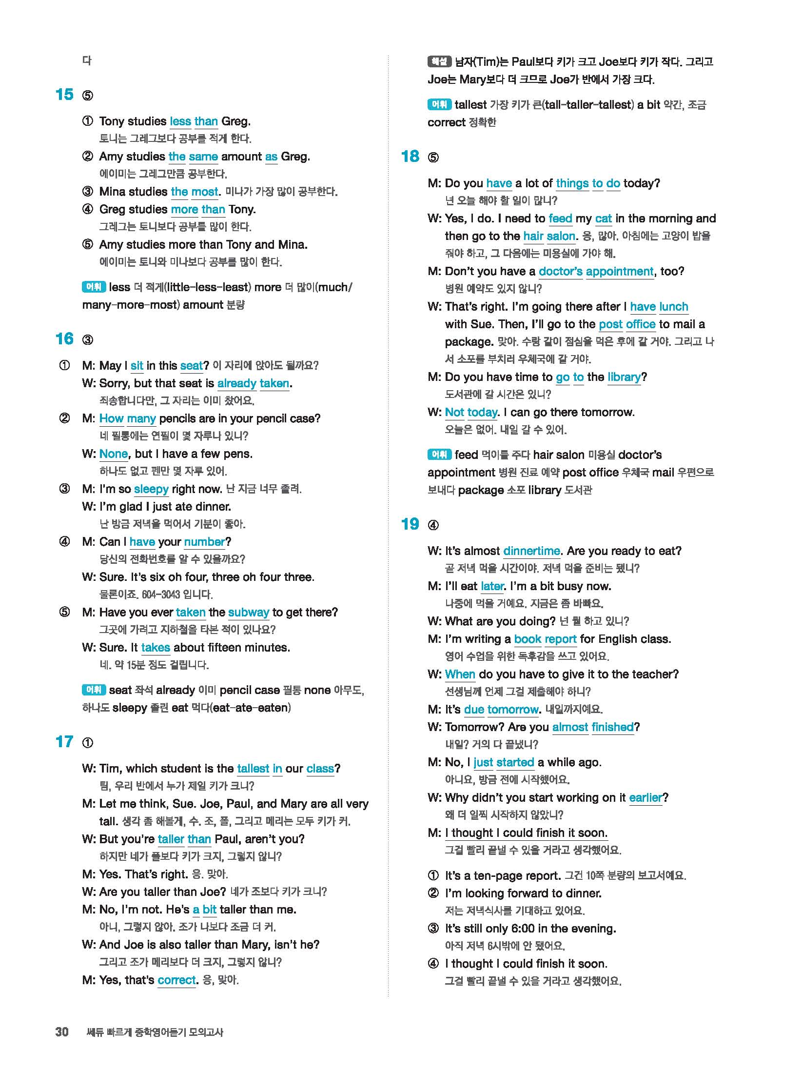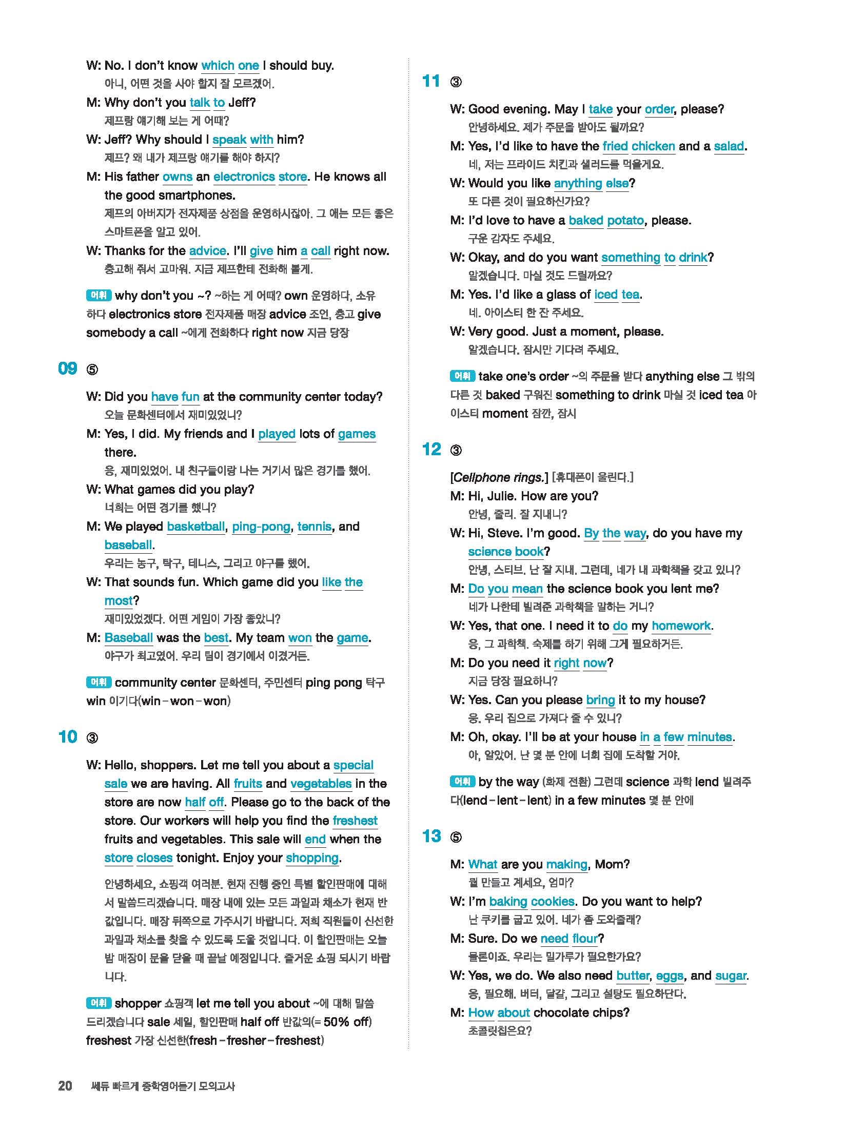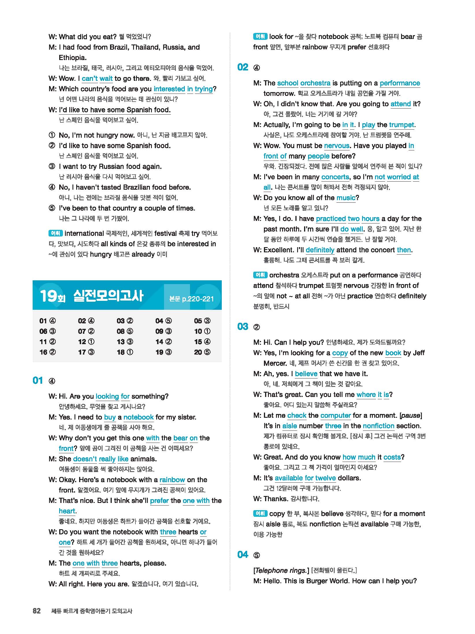 빠르게 중학 영어듣기 모의고사 20회 2 정답 및 해설 답지 빠른답지 사진답지 모바일최적화