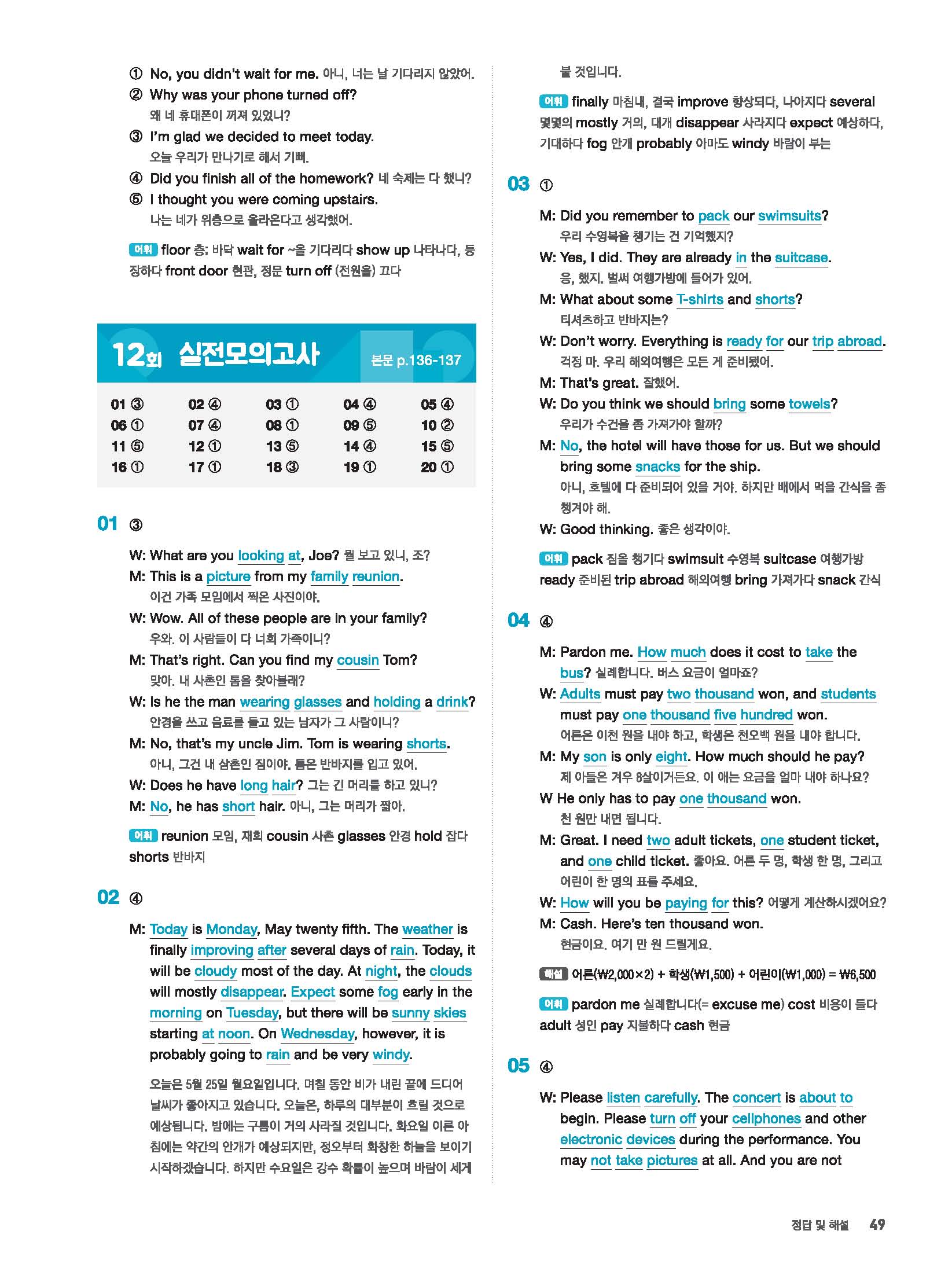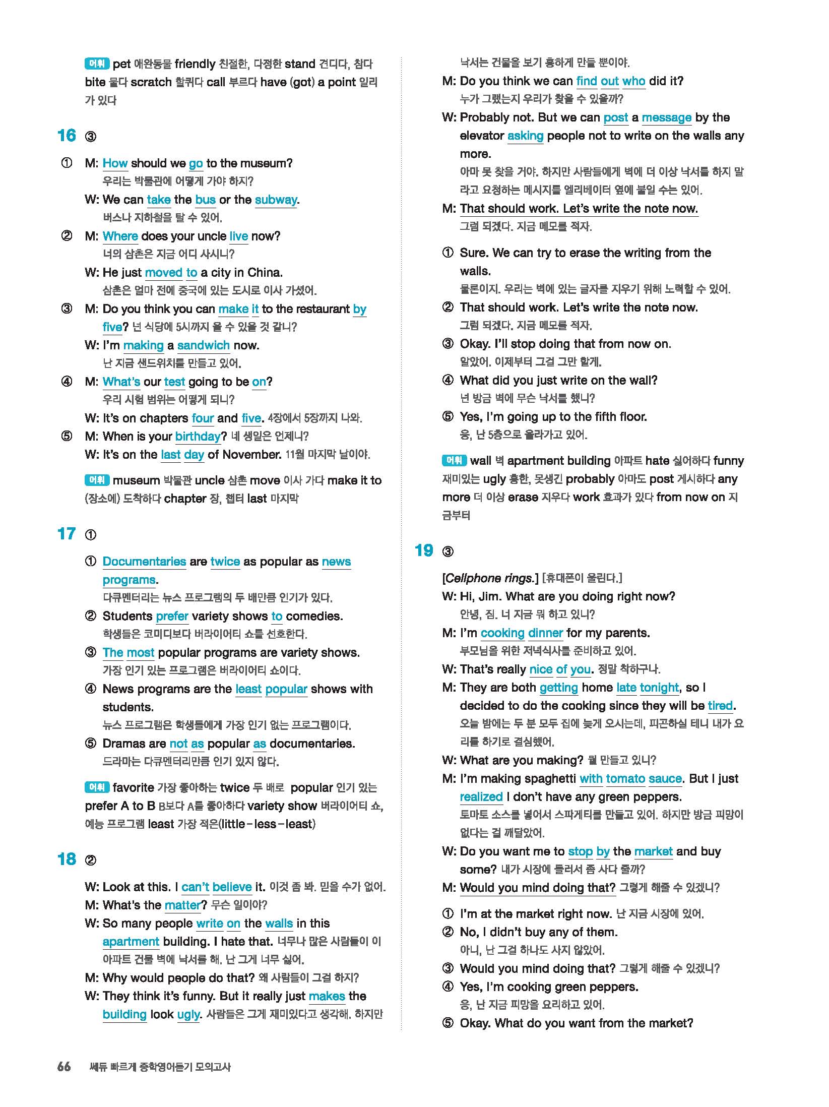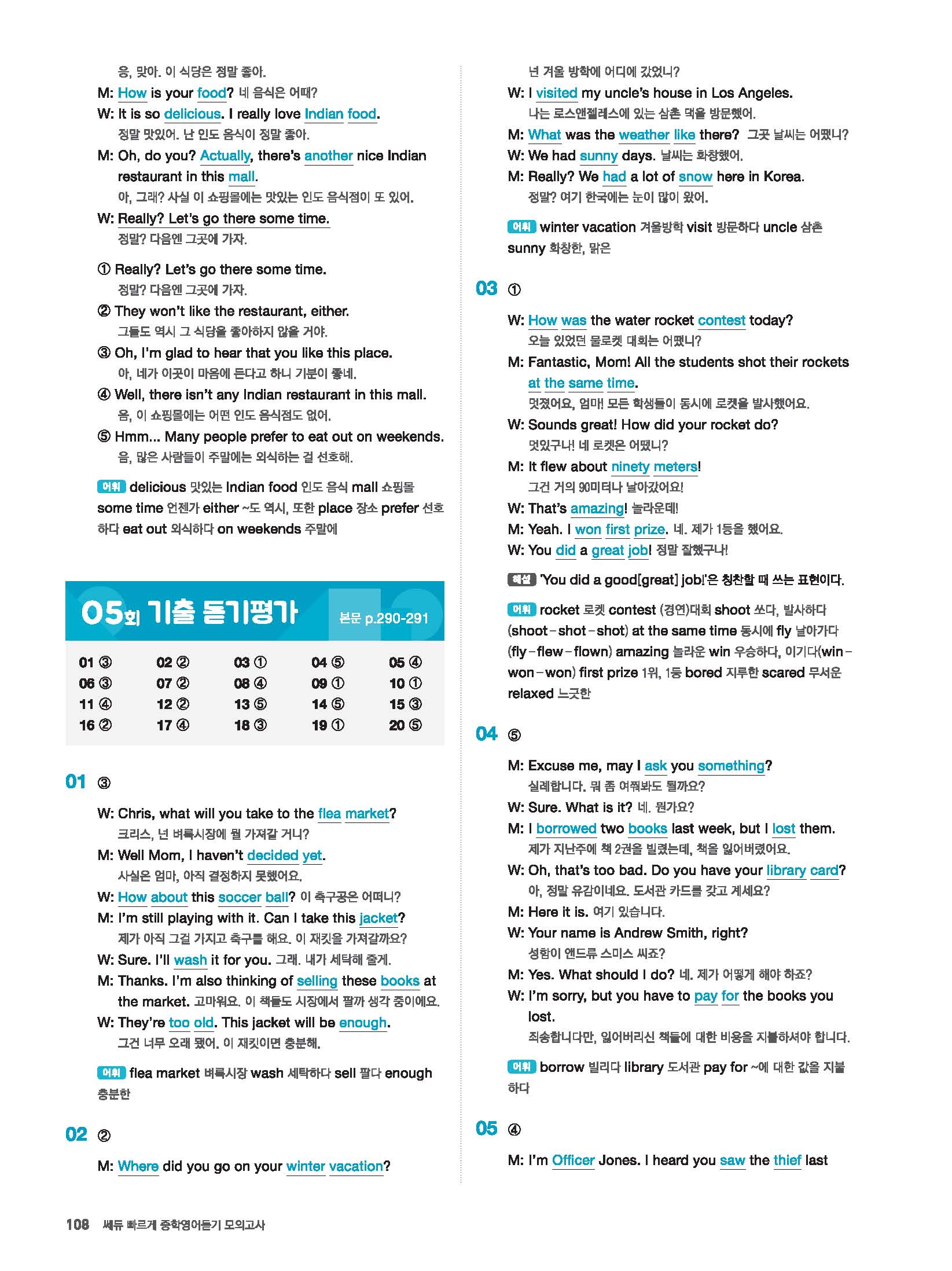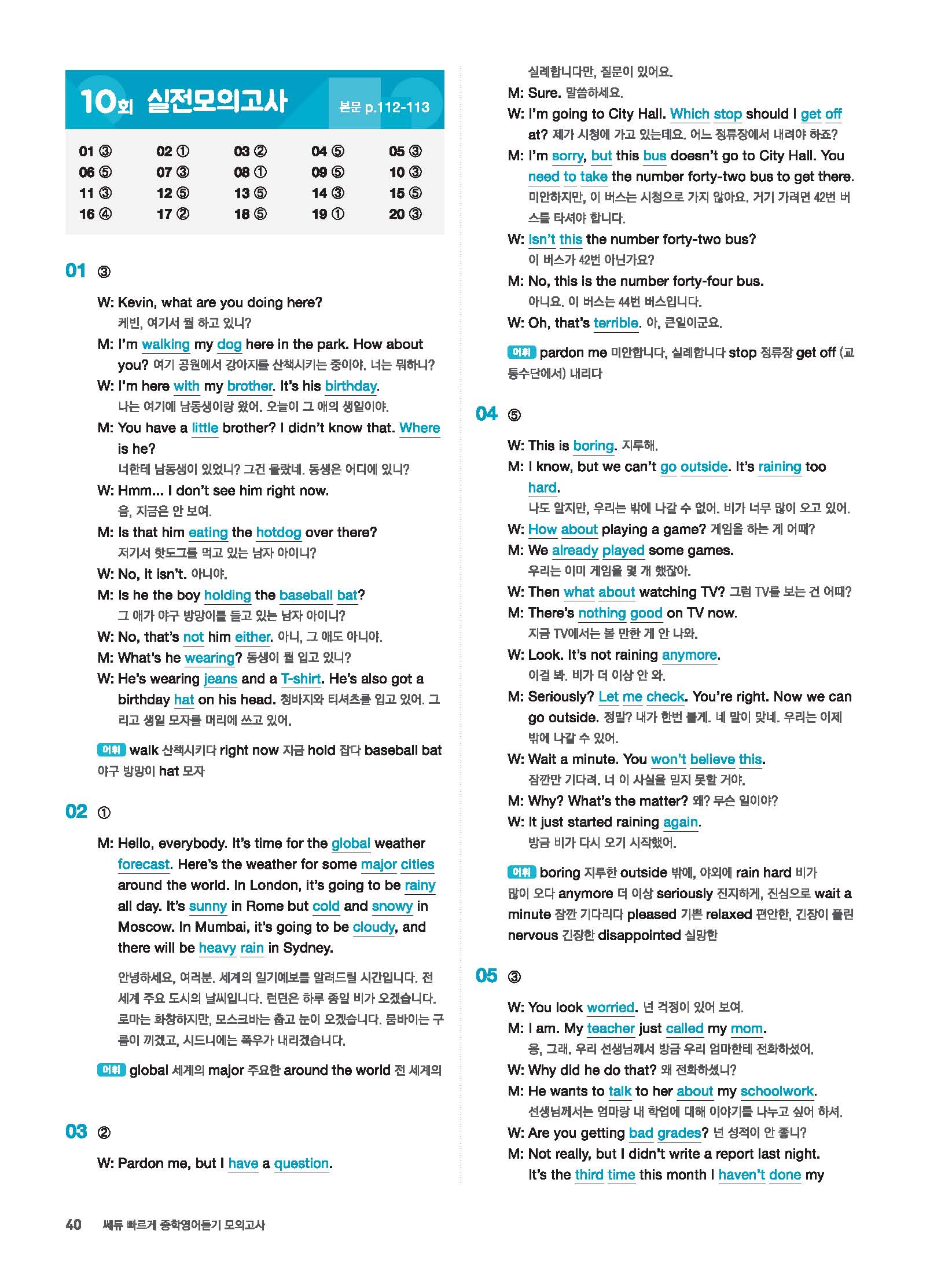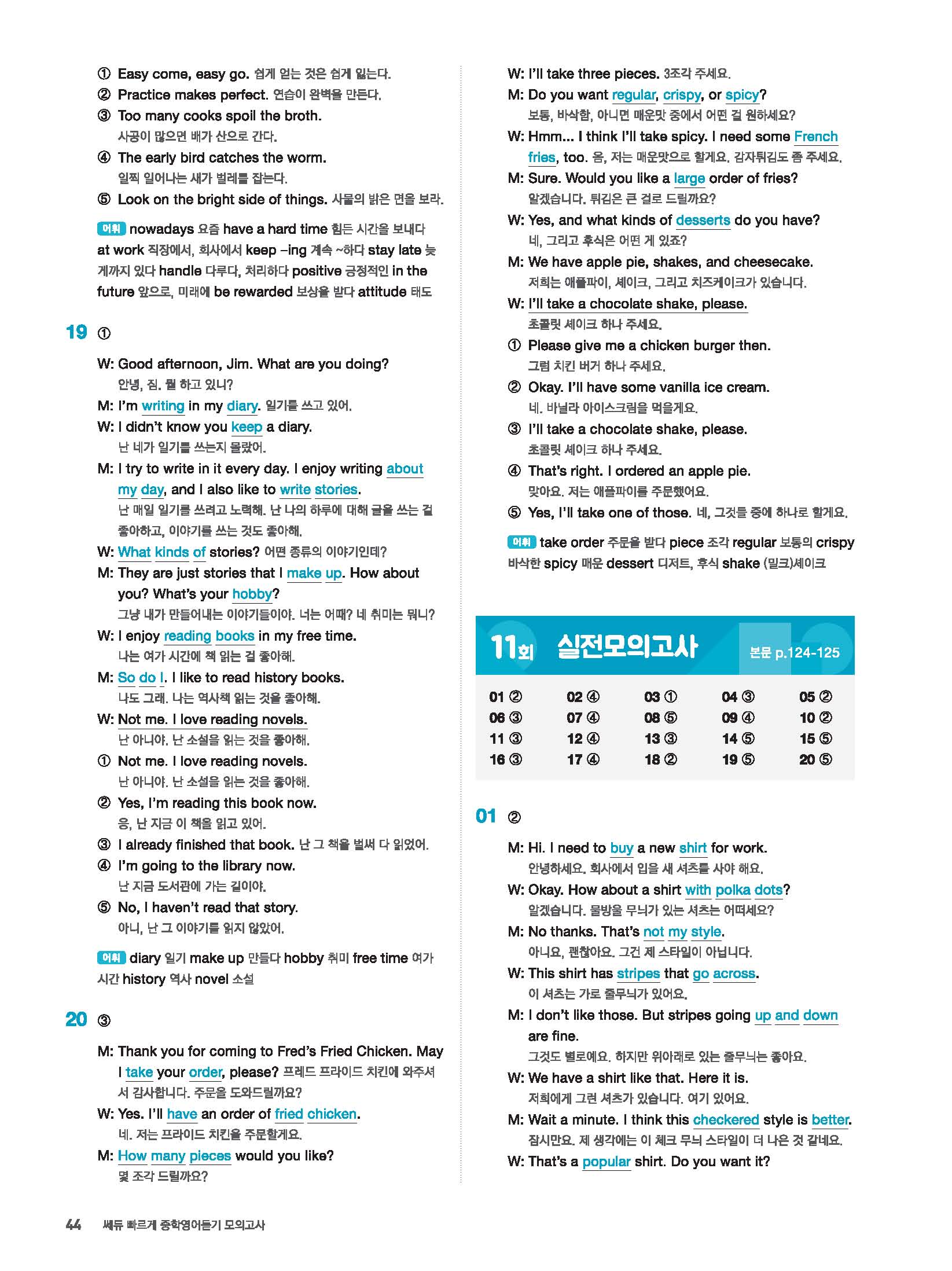 빠르게 중학 영어듣기 모의고사 20회 2 정답 및 해설 답지 빠른답지 사진답지 모바일최적화