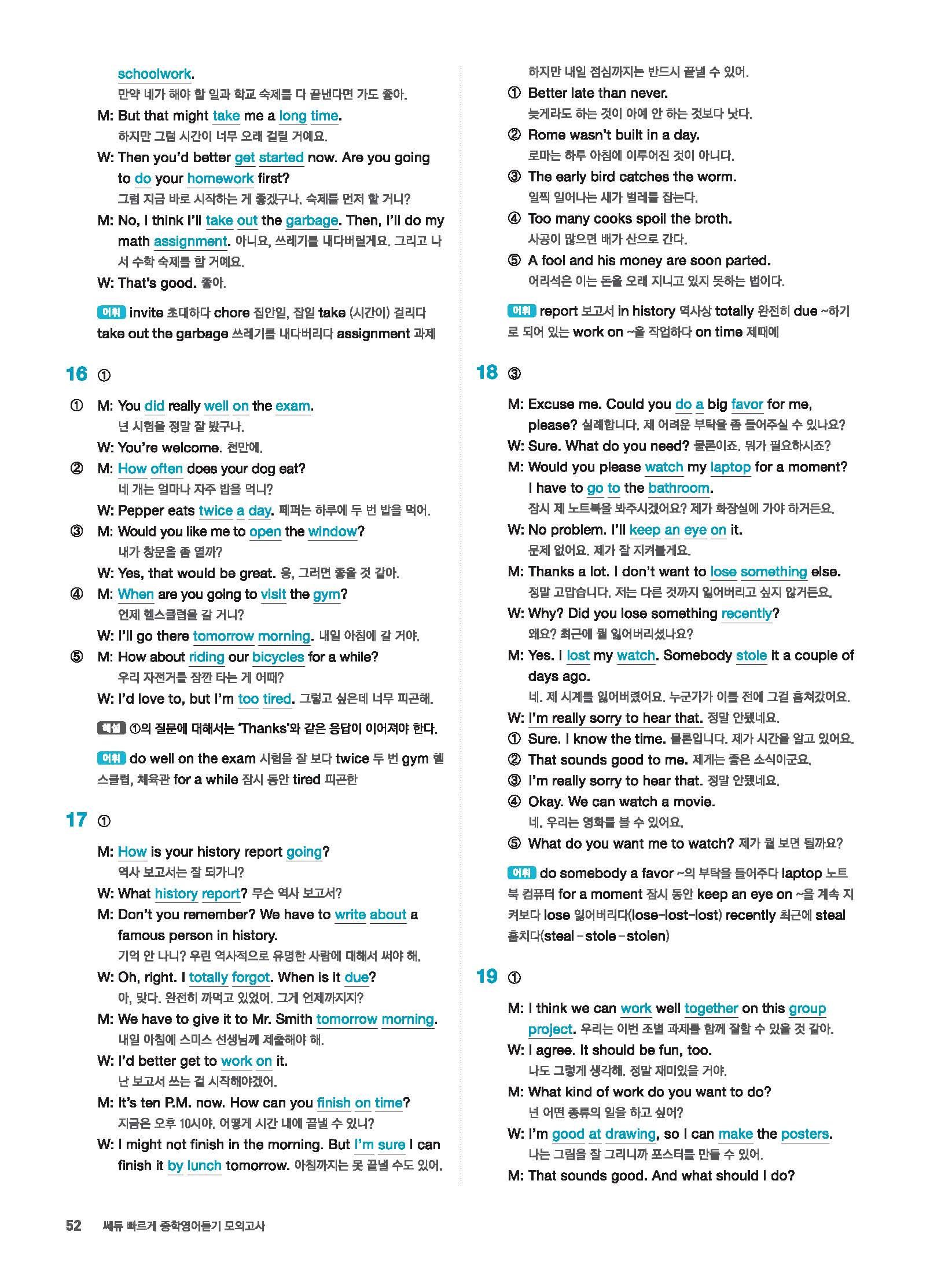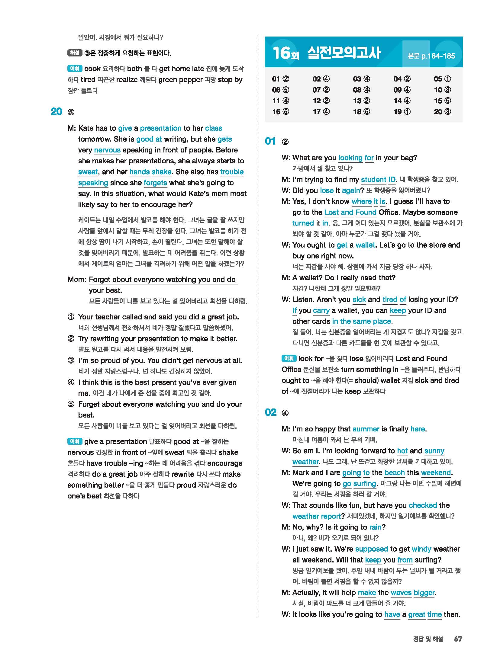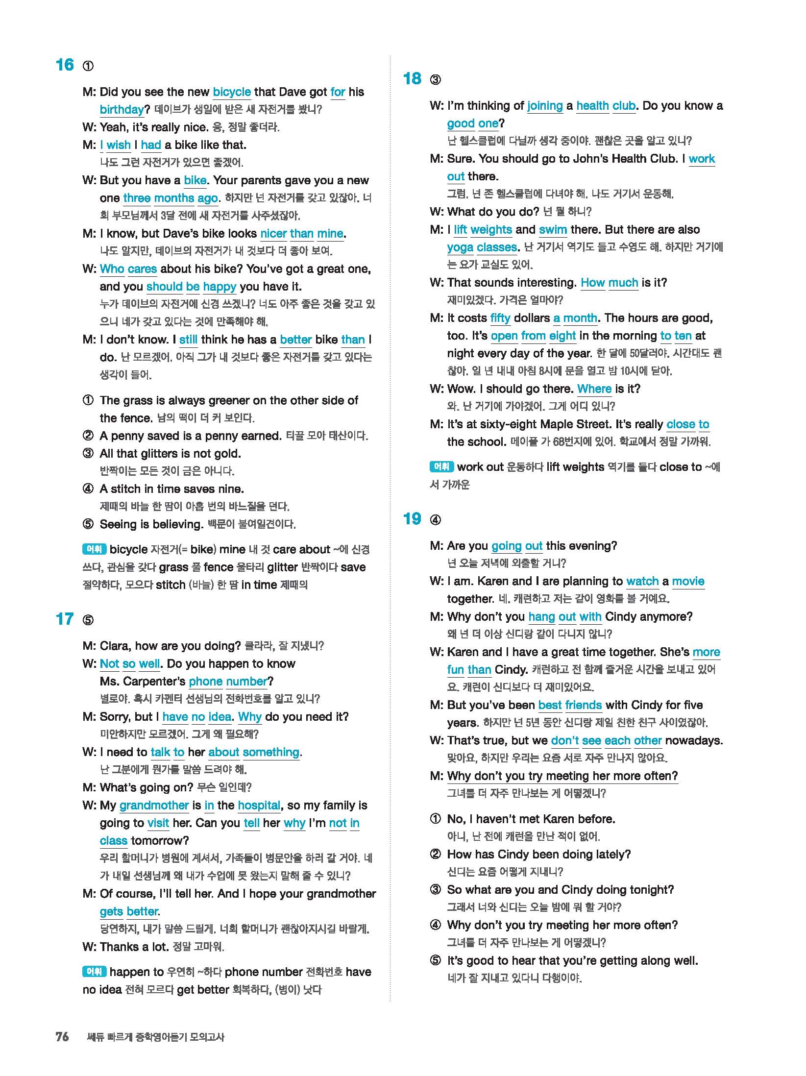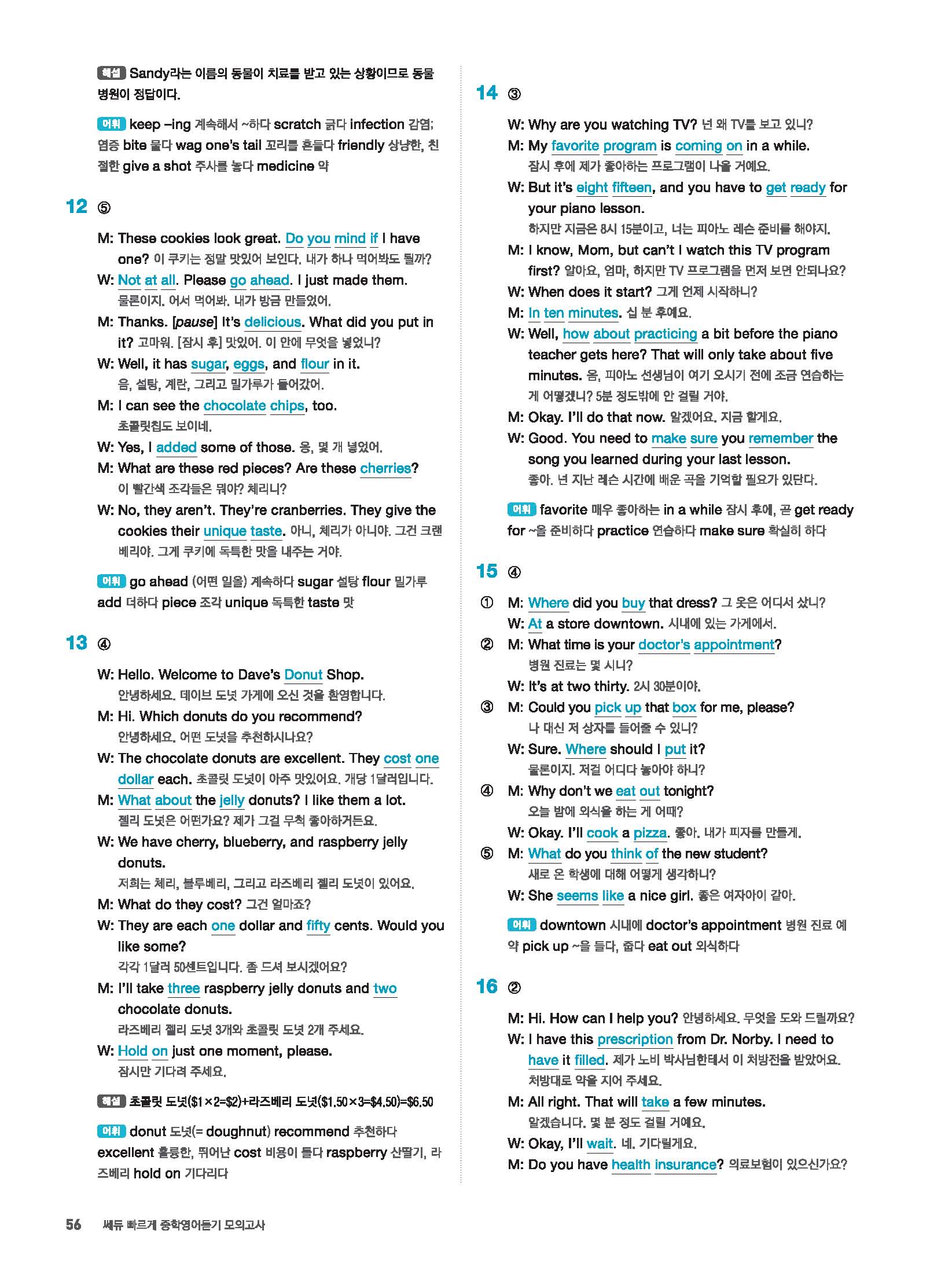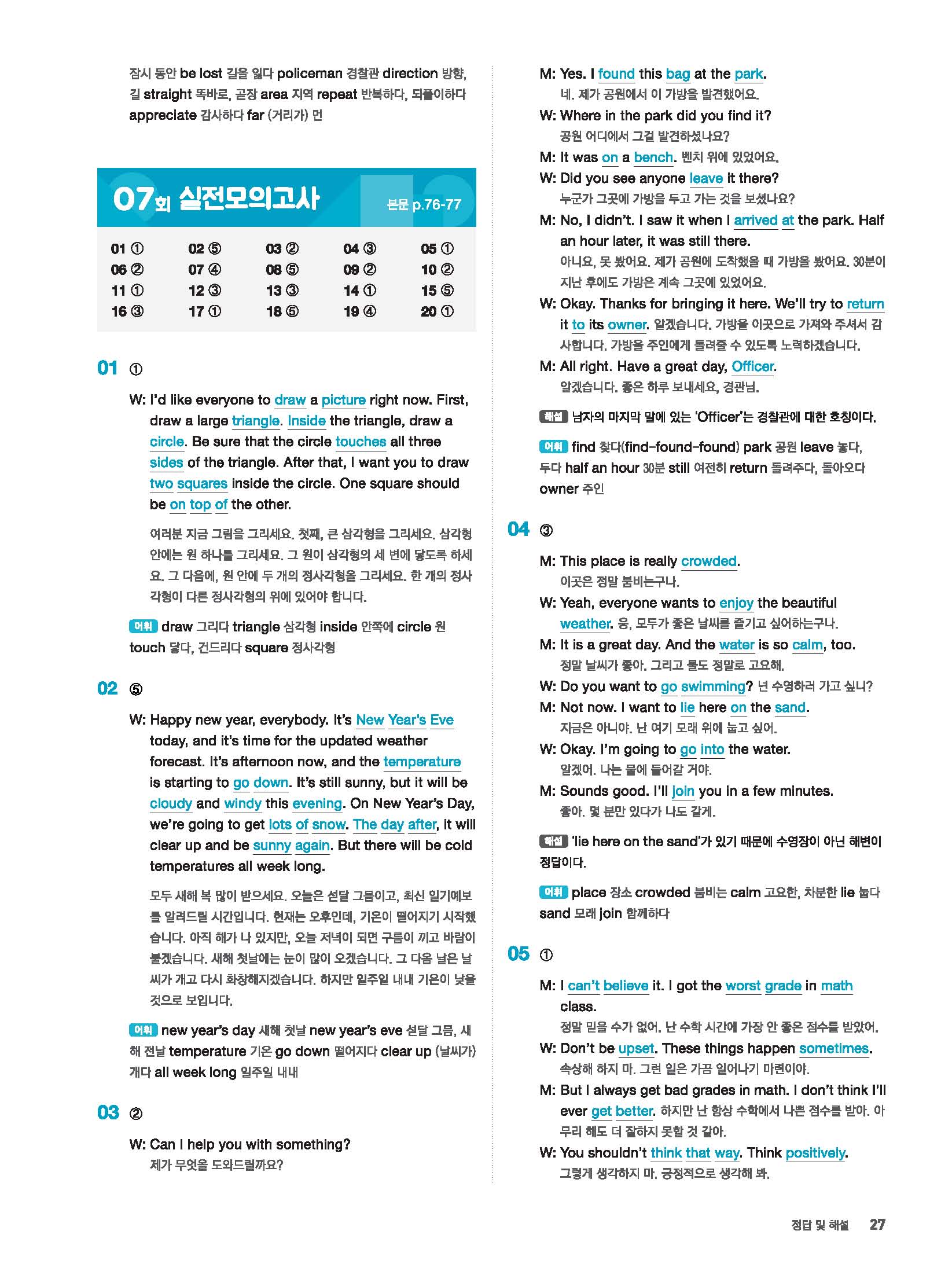 빠르게 중학 영어듣기 모의고사 20회 2 정답 및 해설 답지 빠른답지 사진답지 모바일최적화