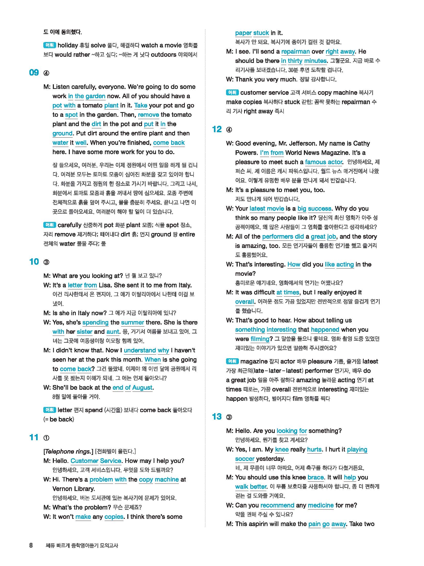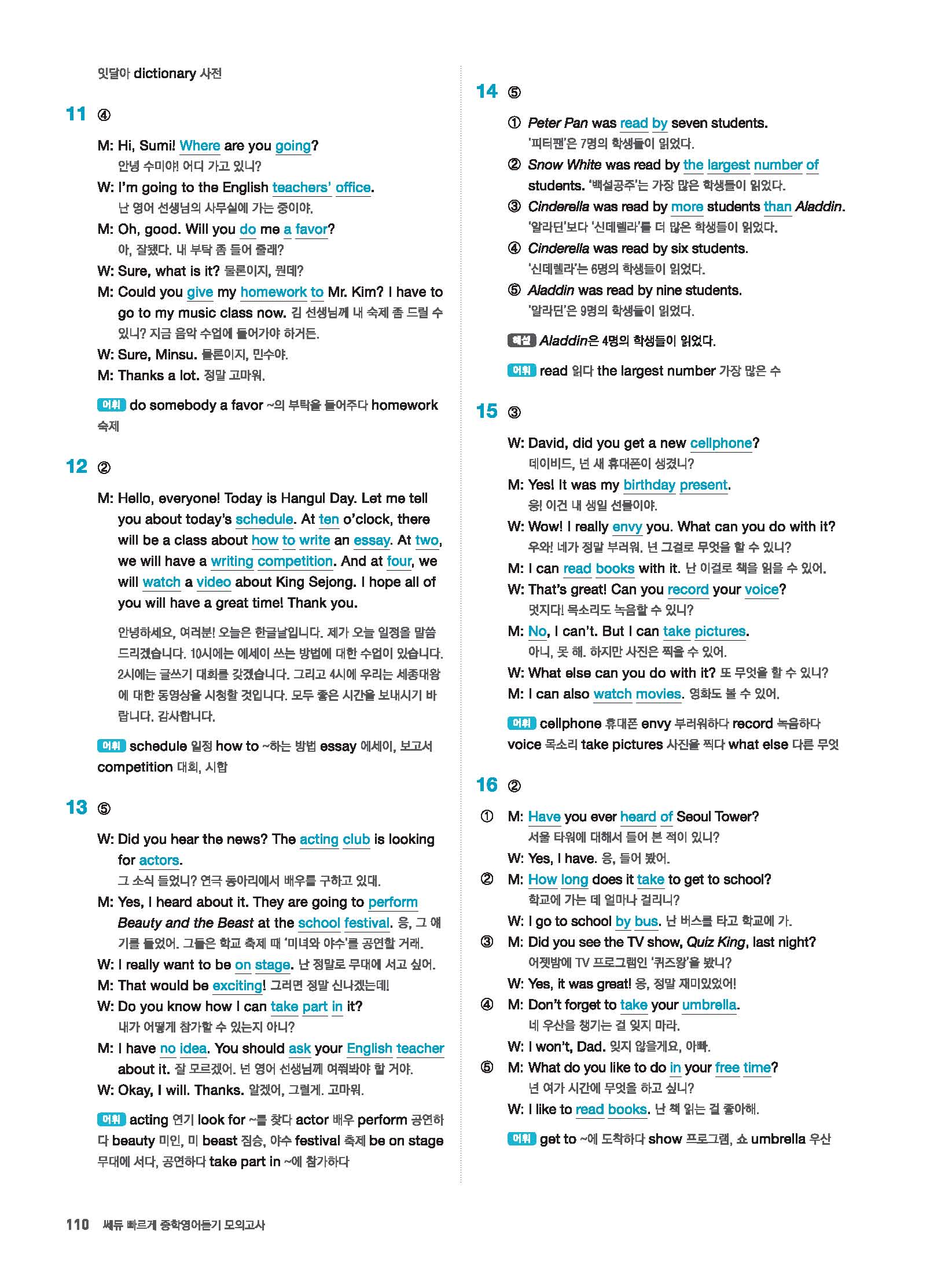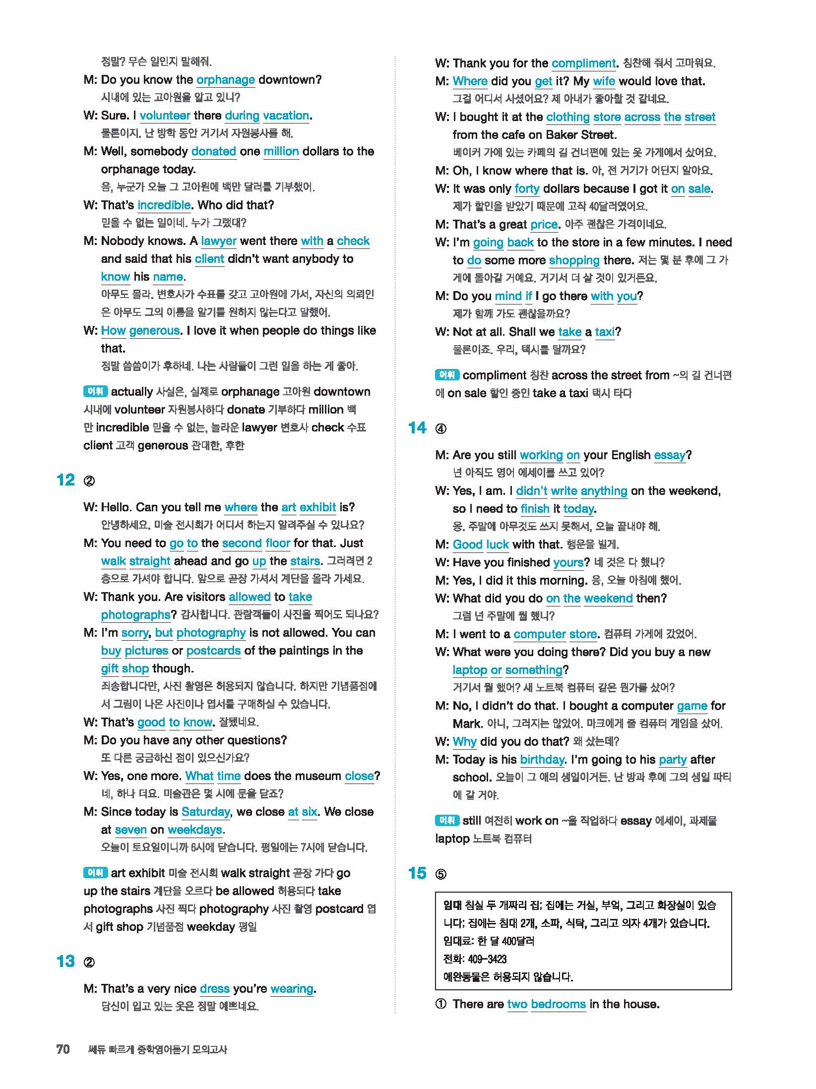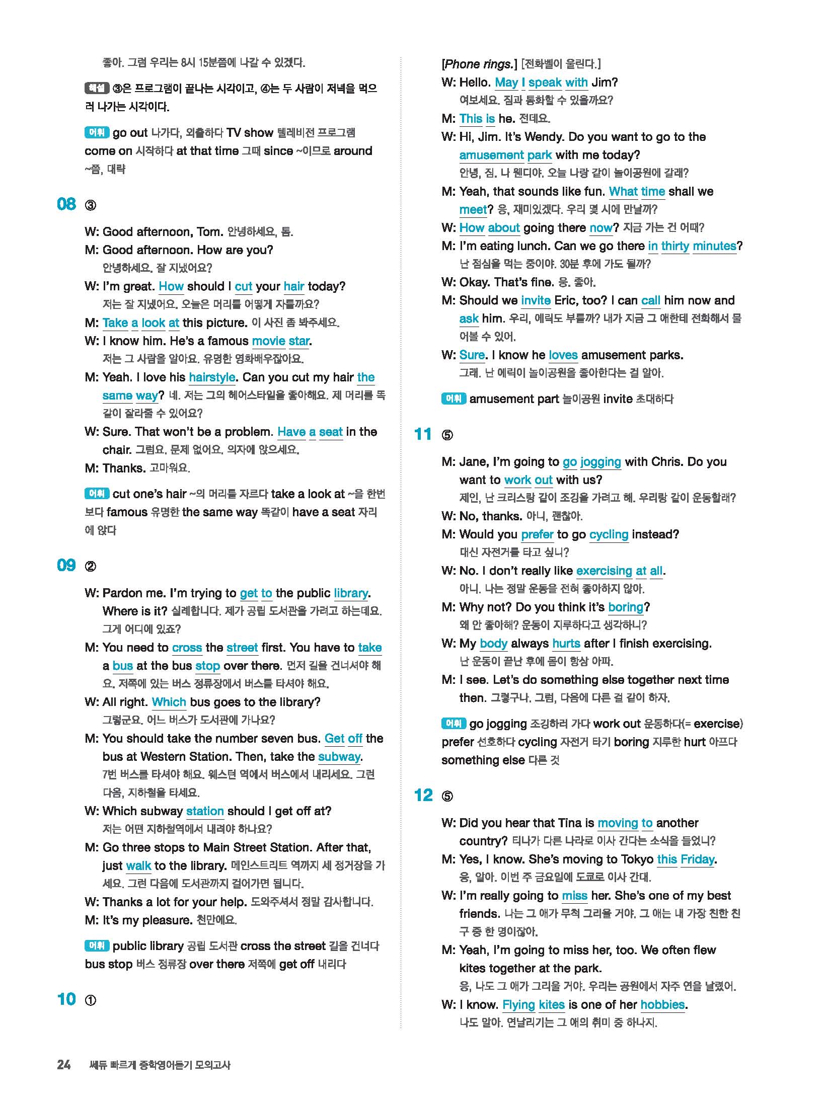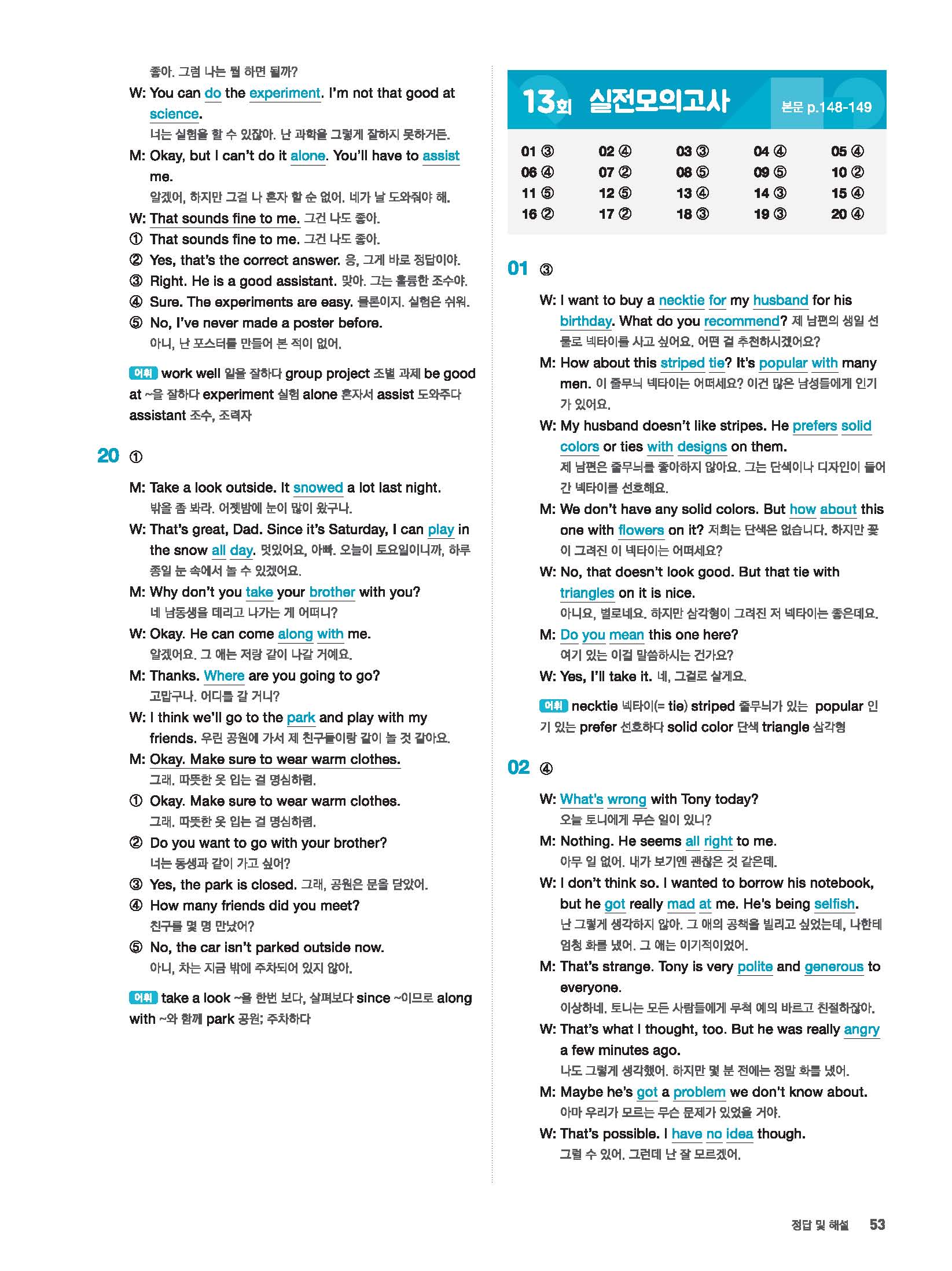 빠르게 중학 영어듣기 모의고사 20회 2 정답 및 해설 답지 빠른답지 사진답지 모바일최적화