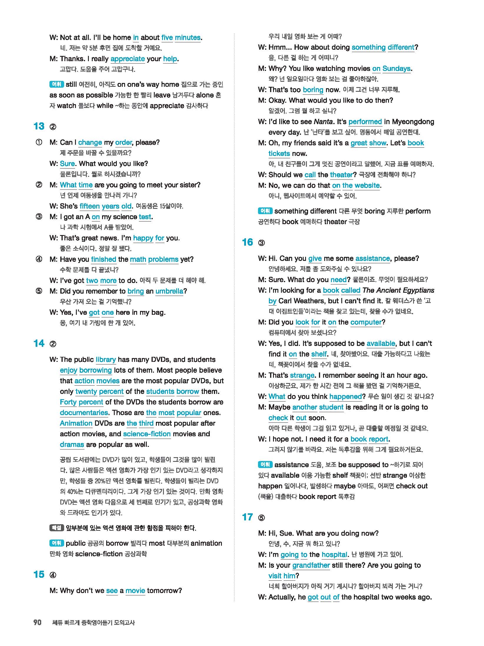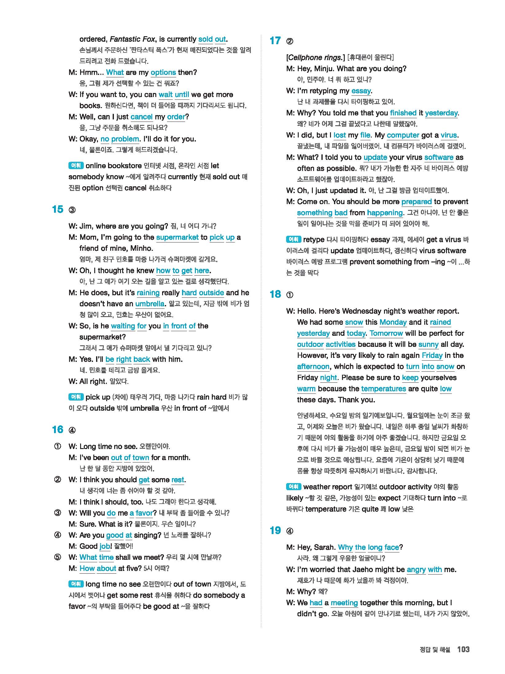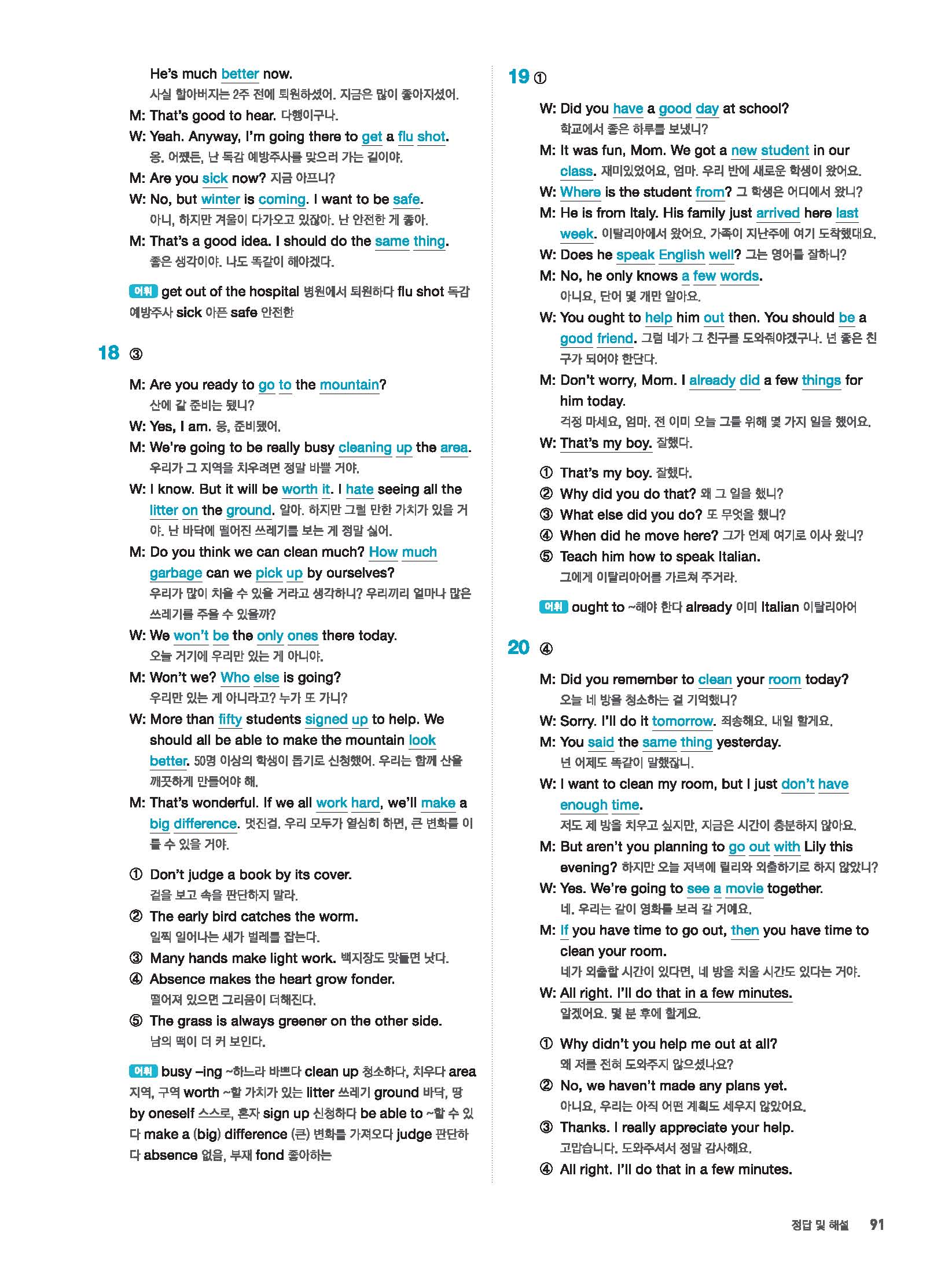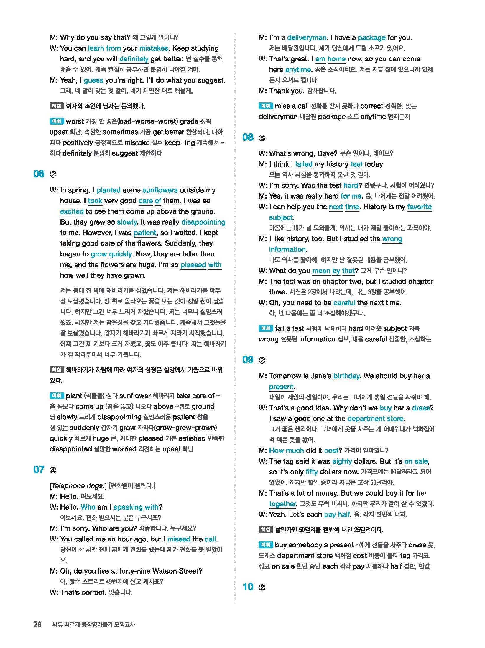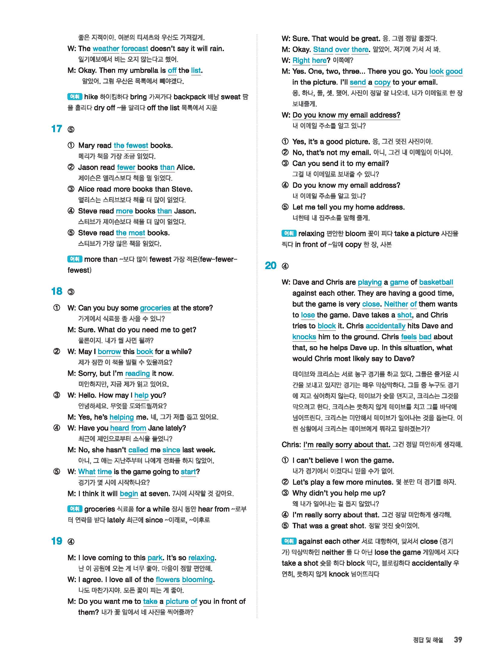 빠르게 중학 영어듣기 모의고사 20회 2 정답 및 해설 답지 빠른답지 사진답지 모바일최적화
